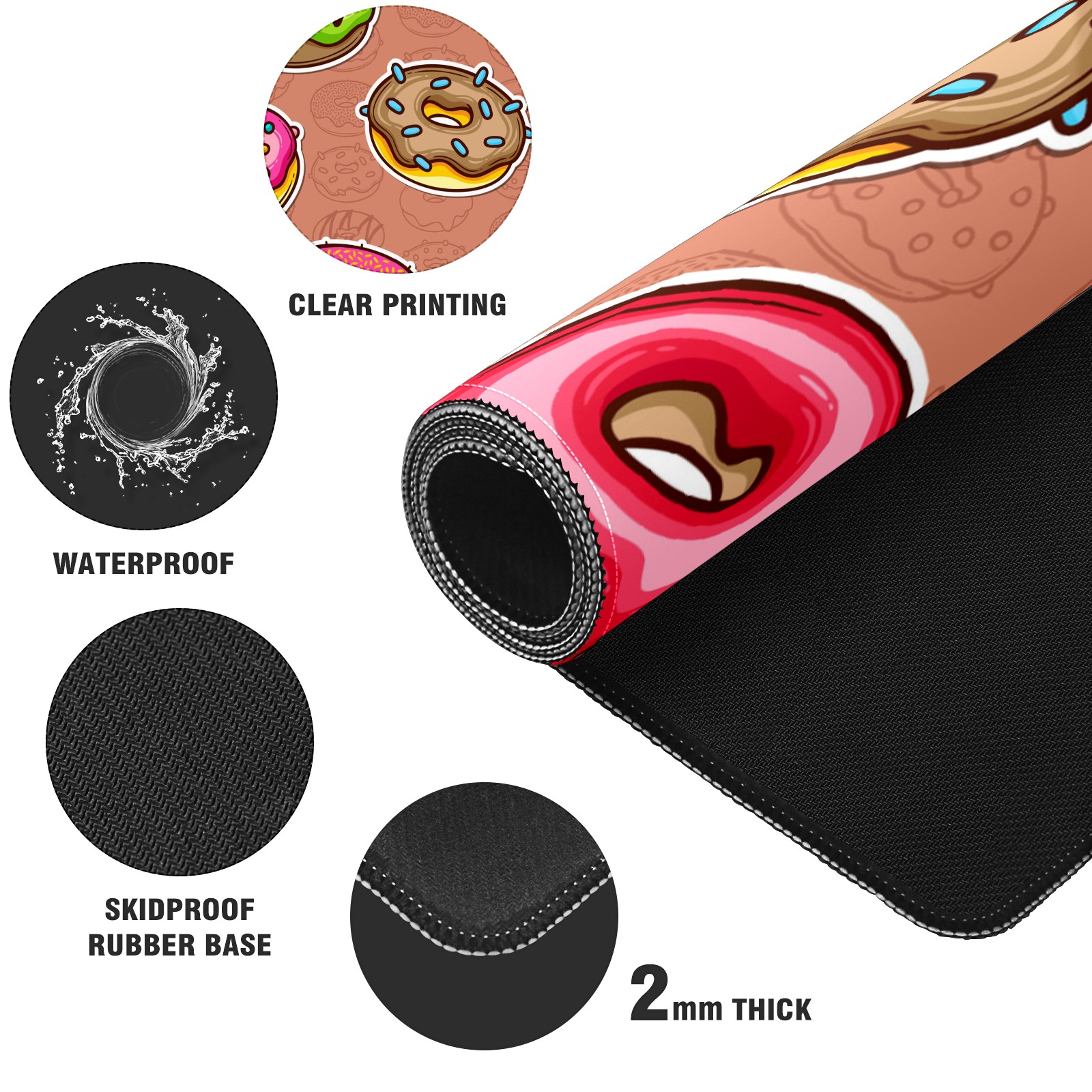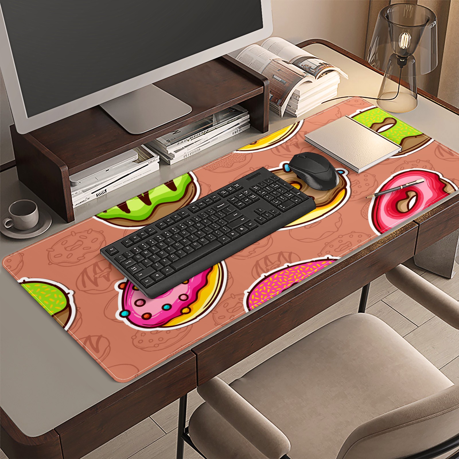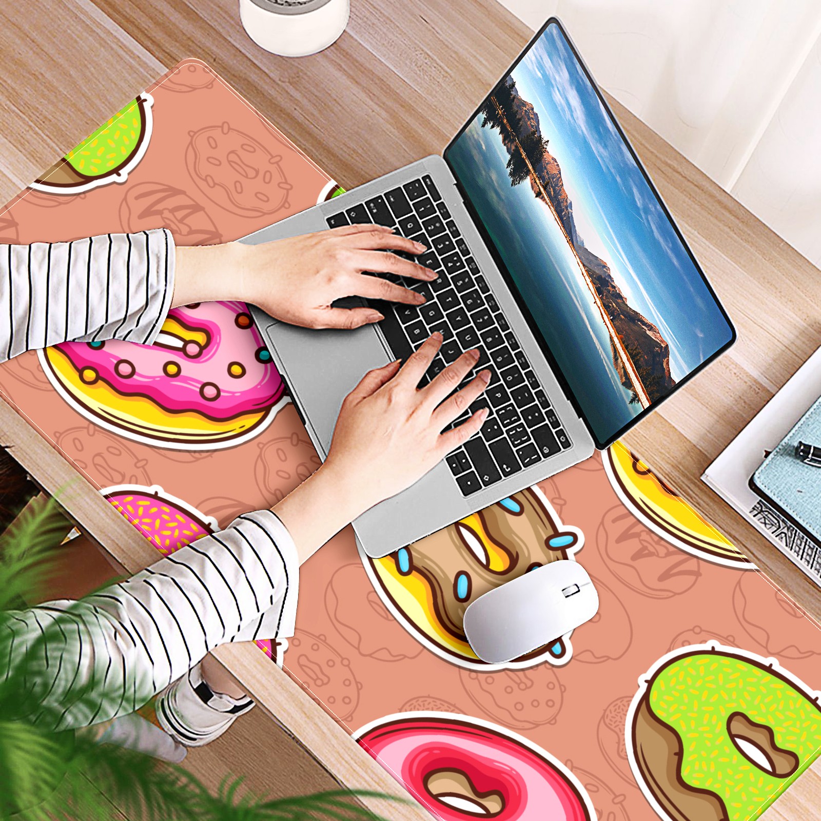 Large Mouse Pad for Desktop, Cute Desk Mat Pad Protector for Work & Gaming, Aesthetic Pretty Anti-Slip Laptop Blotter Cover for Office School Home Supplies, Doughnut Colorful Seamless , 35.4inx15.7in