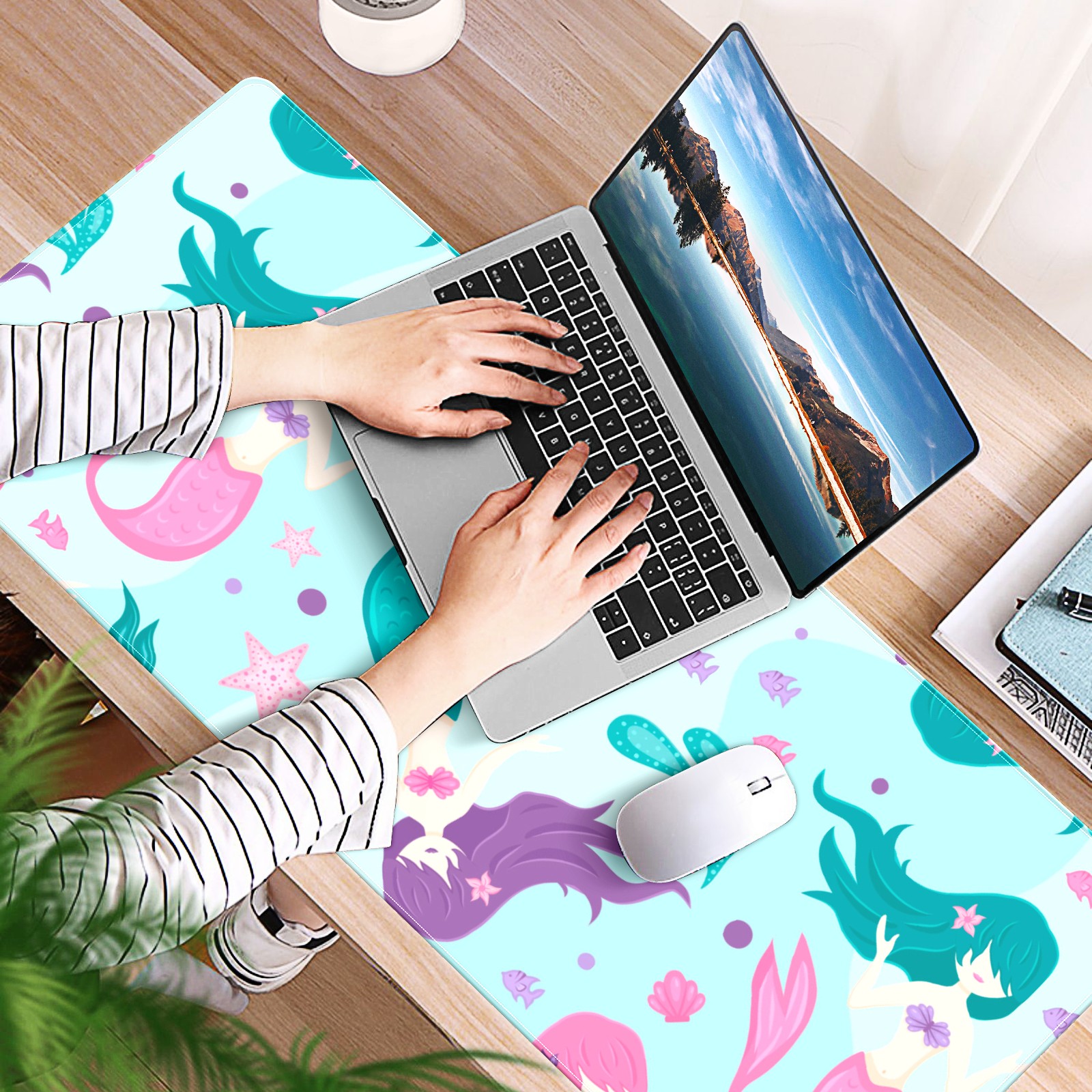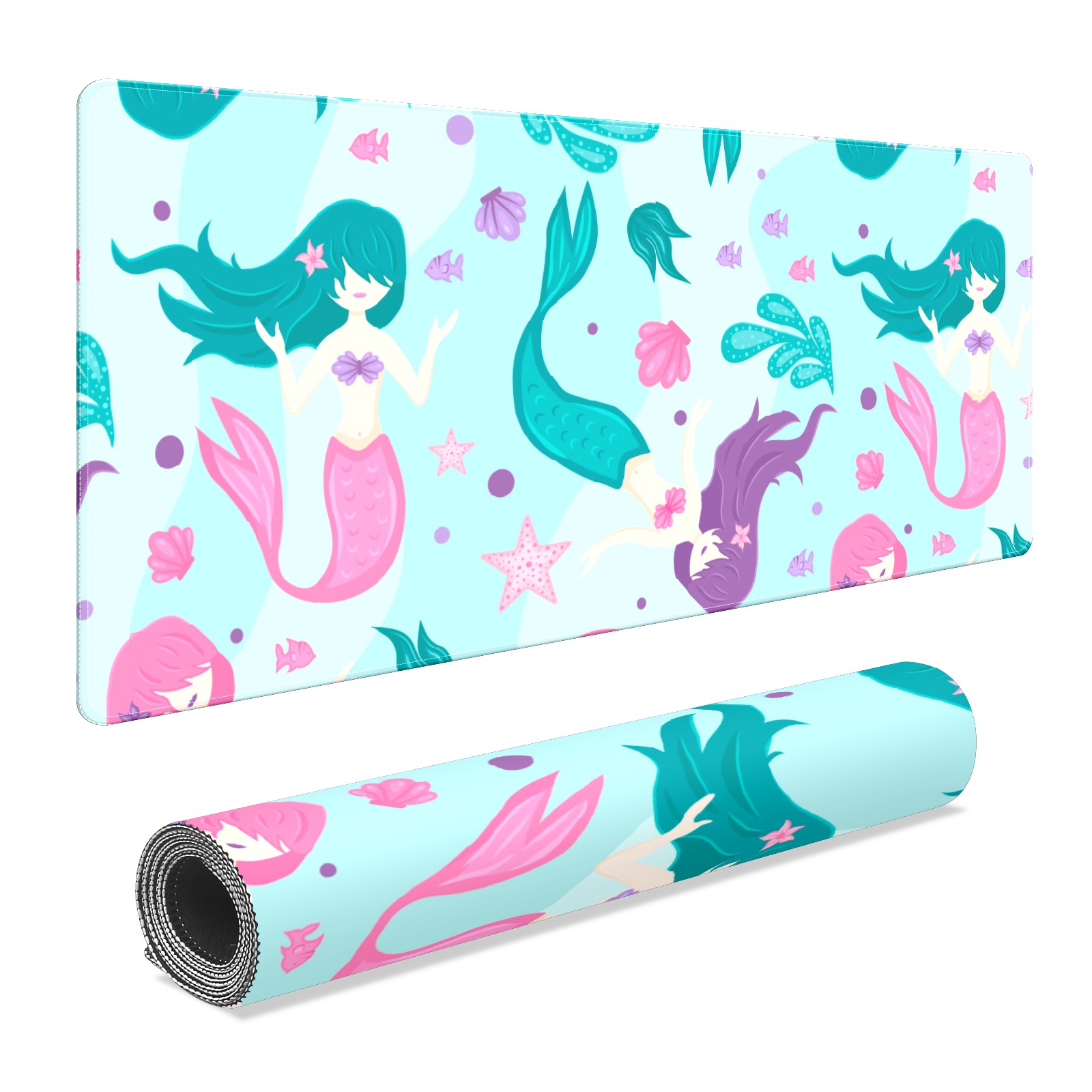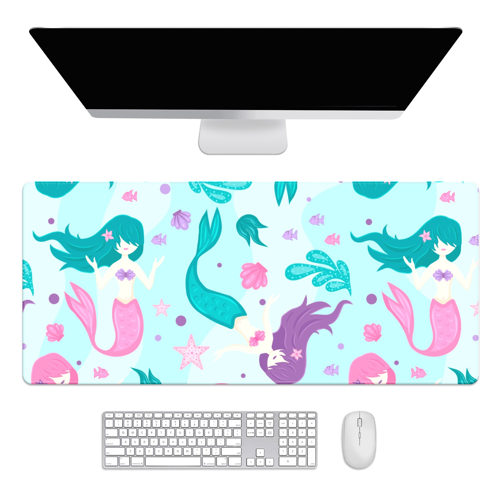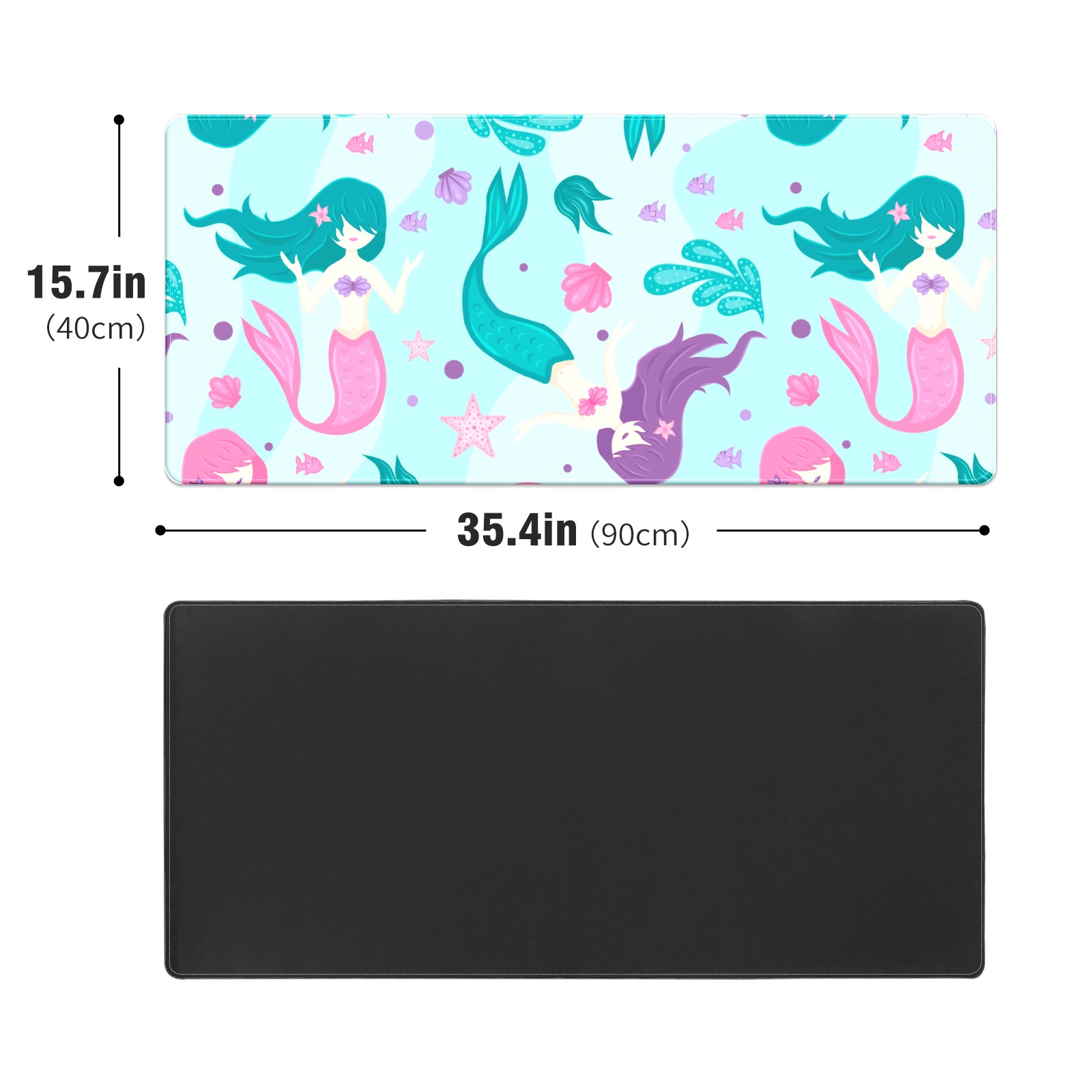 Large Mouse Pad for Desktop, Cute Desk Mat Pad Protector for Work & Gaming, Aesthetic Pretty Anti-Slip Laptop Blotter Cover for Office School Home Supplies, Cute Mermaid Seamless , 35.4inx15.7in