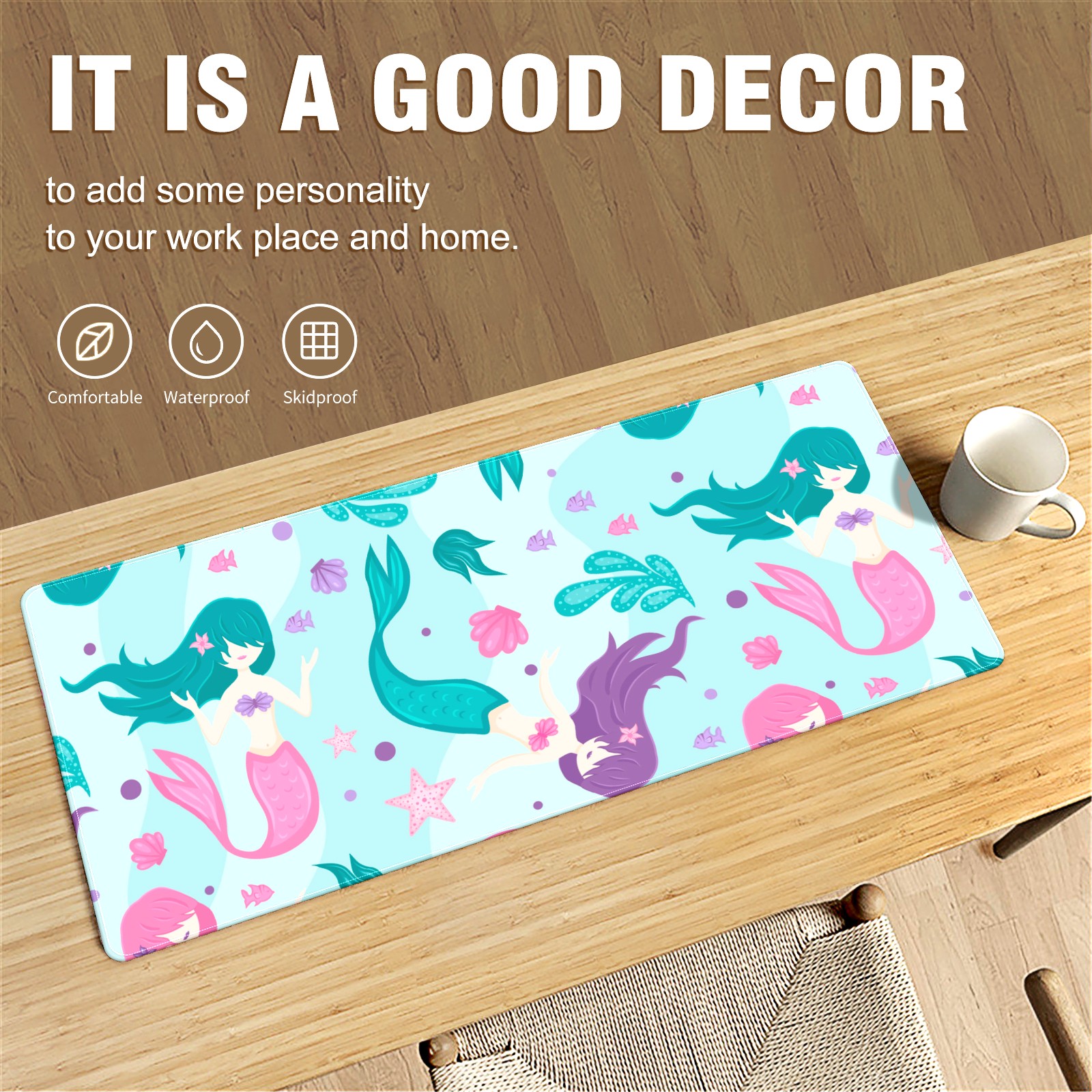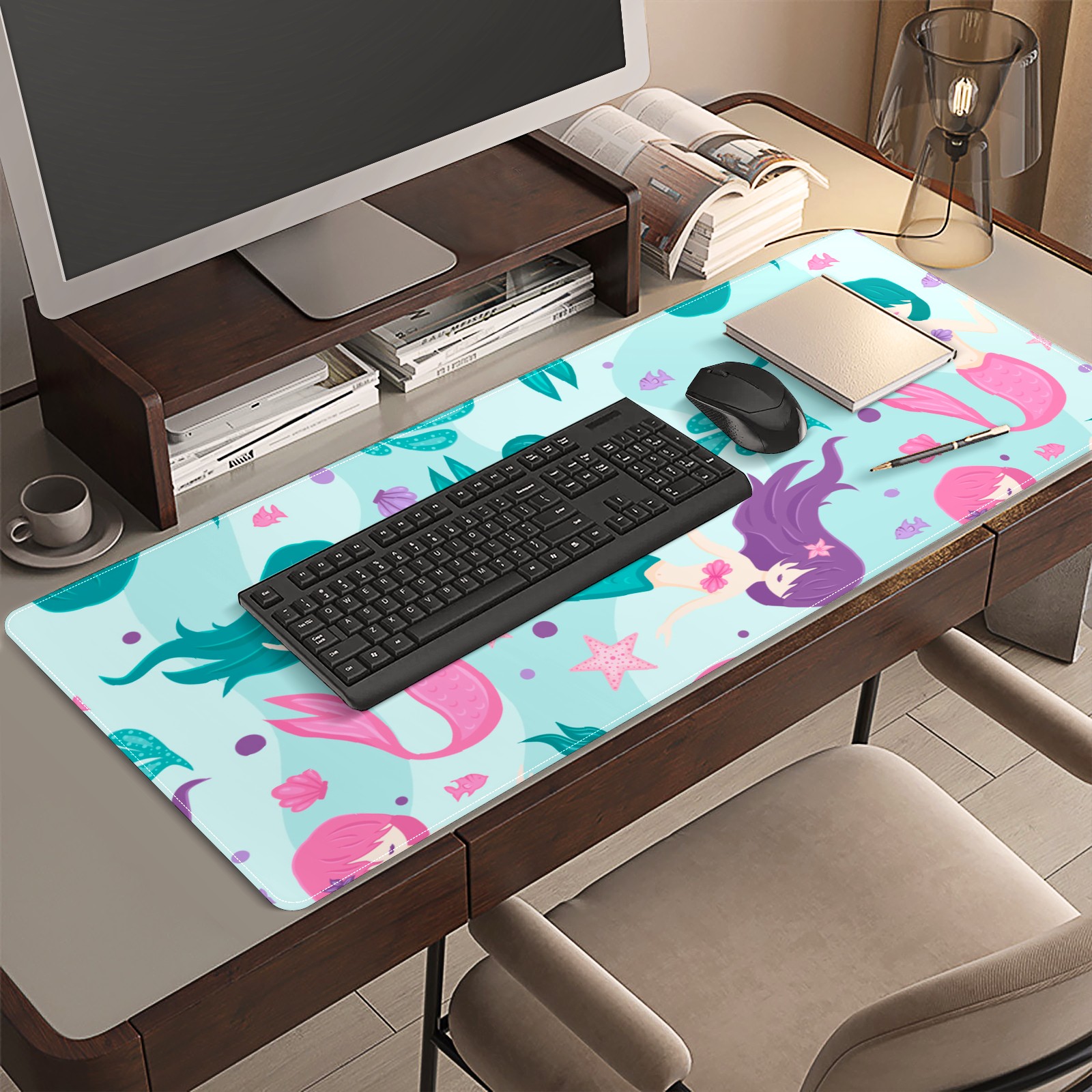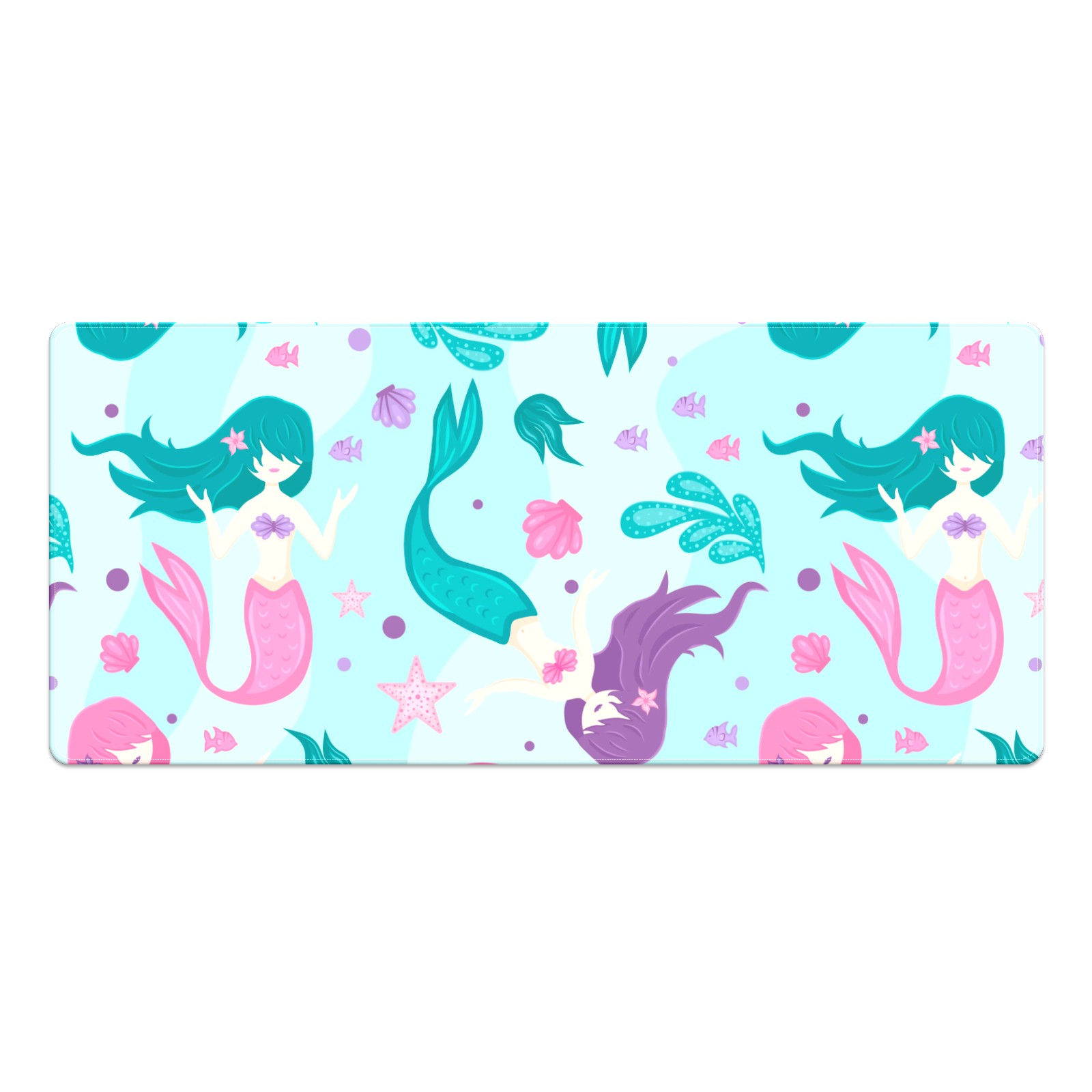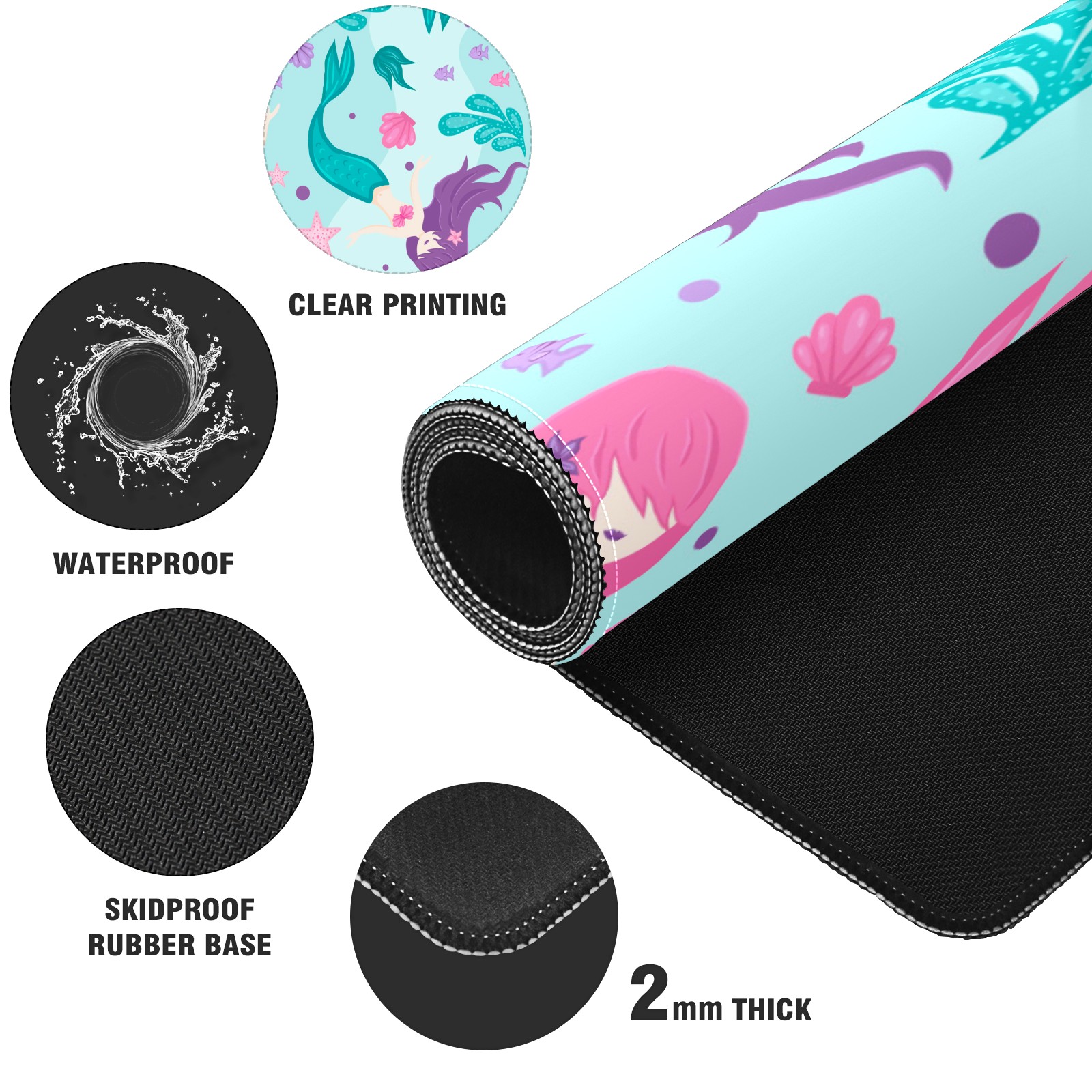 Large Mouse Pad for Desktop, Cute Desk Mat Pad Protector for Work & Gaming, Aesthetic Pretty Anti-Slip Laptop Blotter Cover for Office School Home Supplies, Cute Mermaid Seamless , 35.4inx15.7in