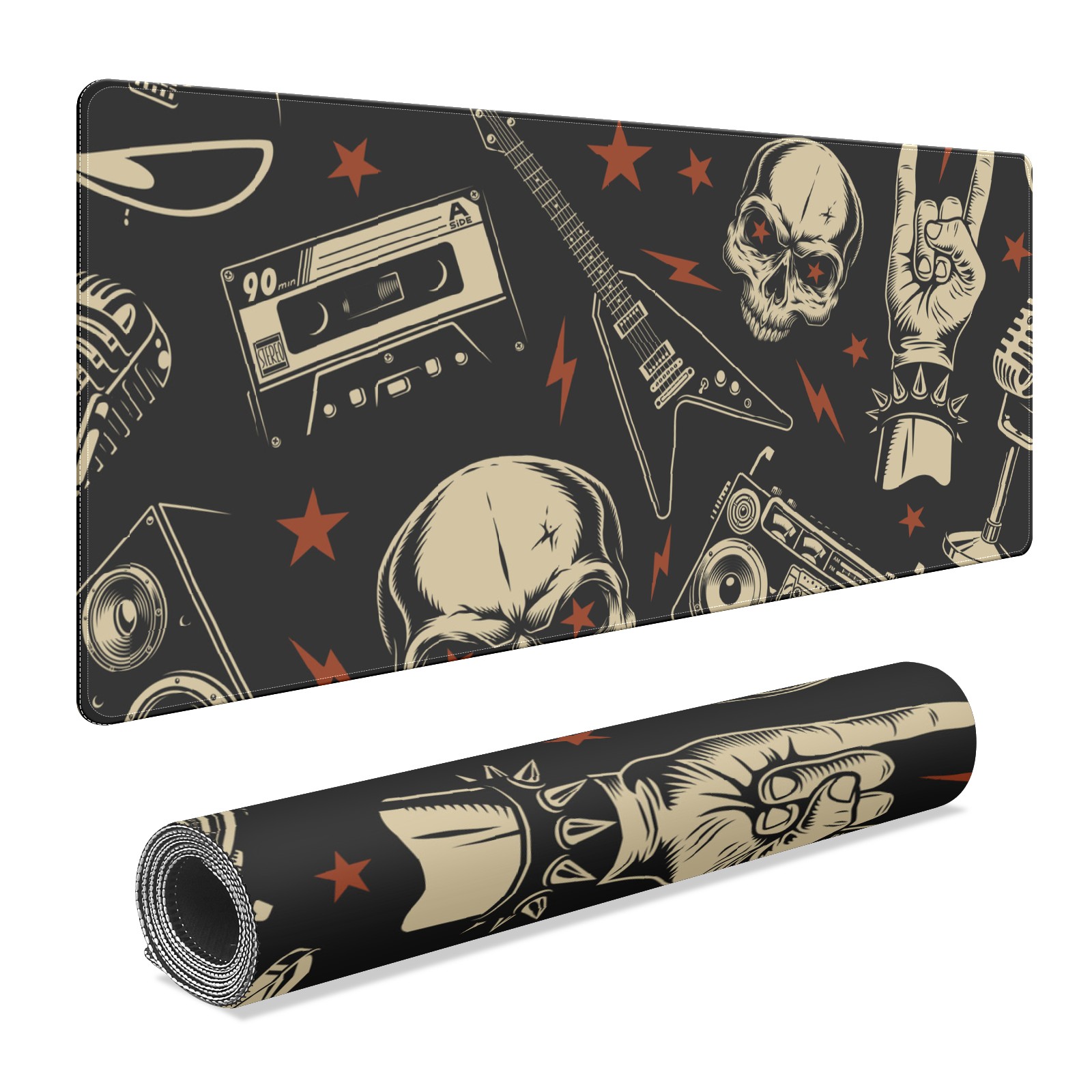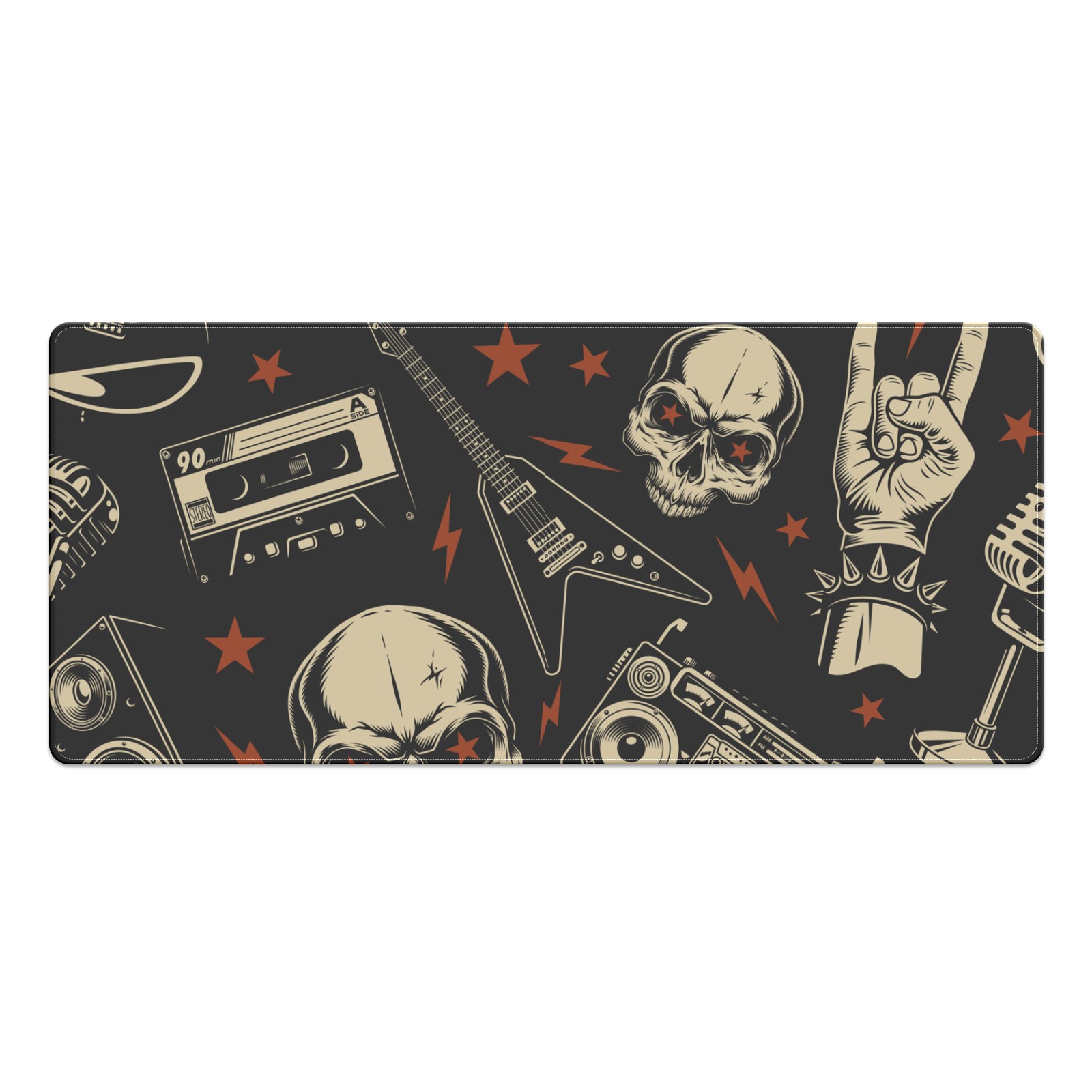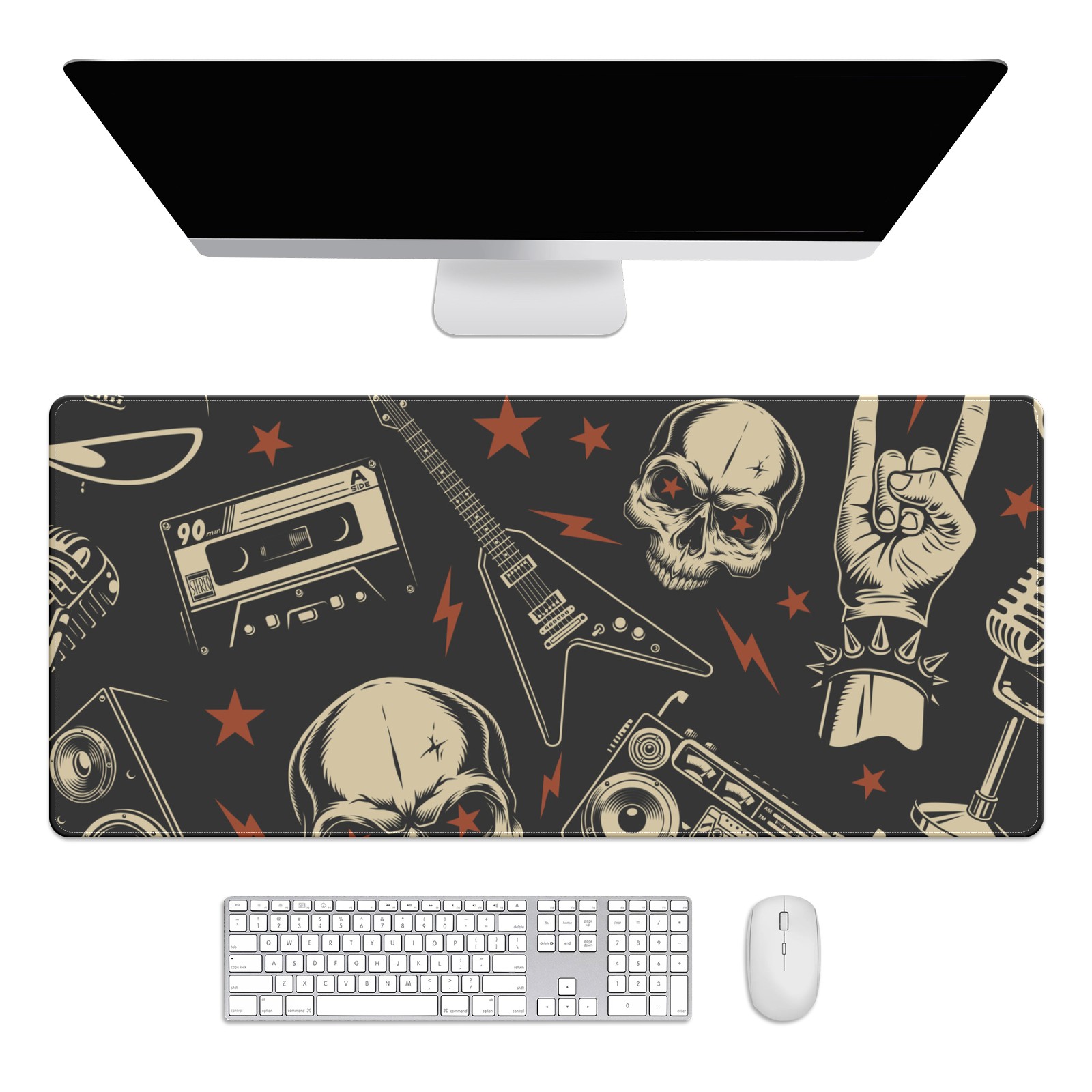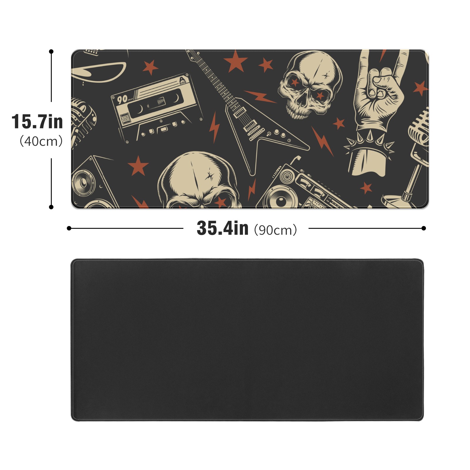 Large Mouse Pad for Desktop, Cute Desk Mat Pad Protector for Work & Gaming, Aesthetic Pretty Anti-Slip Laptop Blotter Cover for Office School Home Supplies, Skulls Rock Music Seamless , 35.4inx15.7in