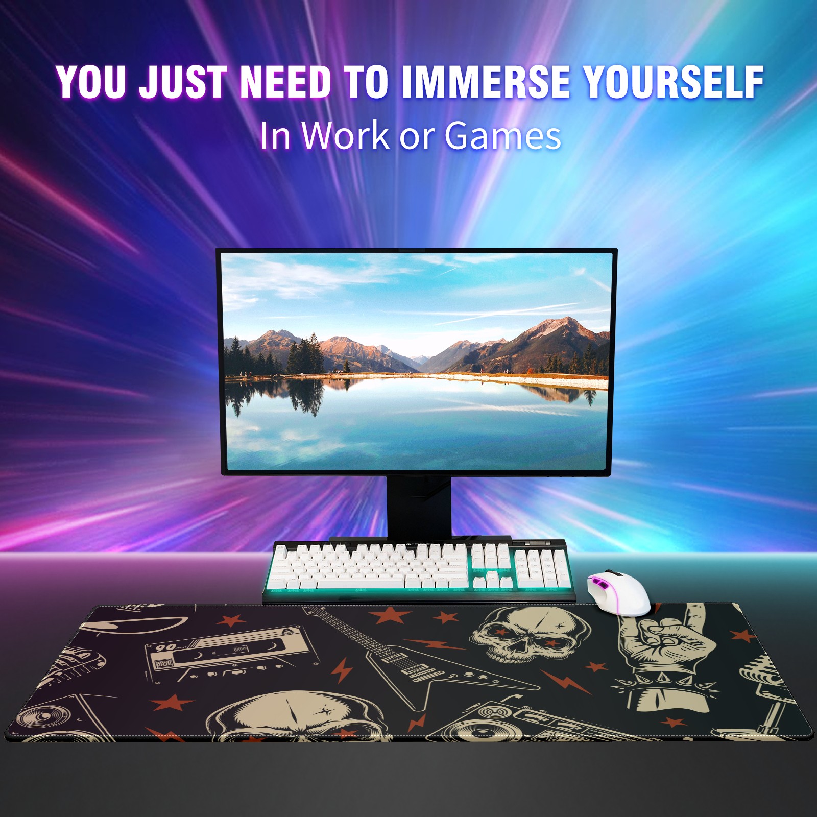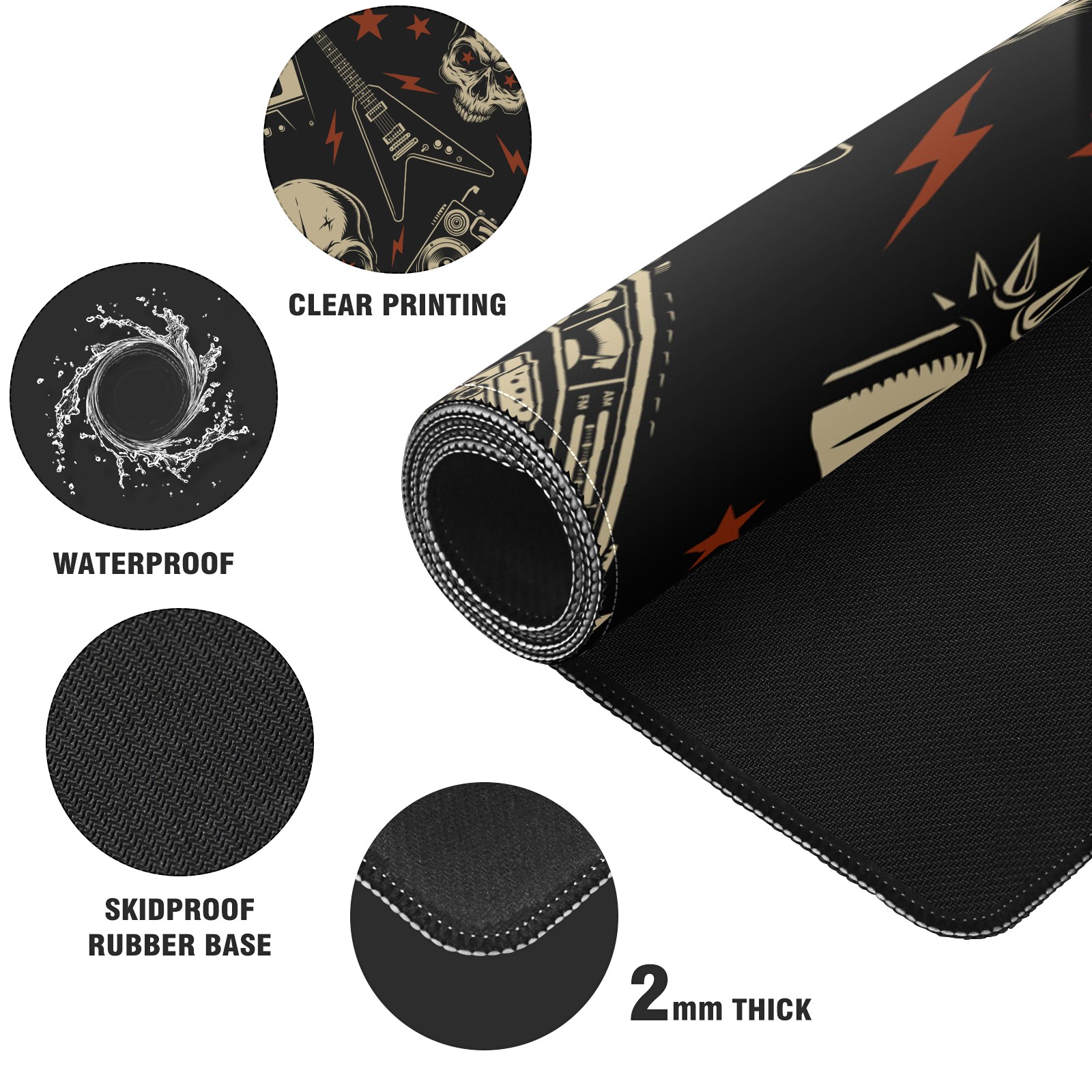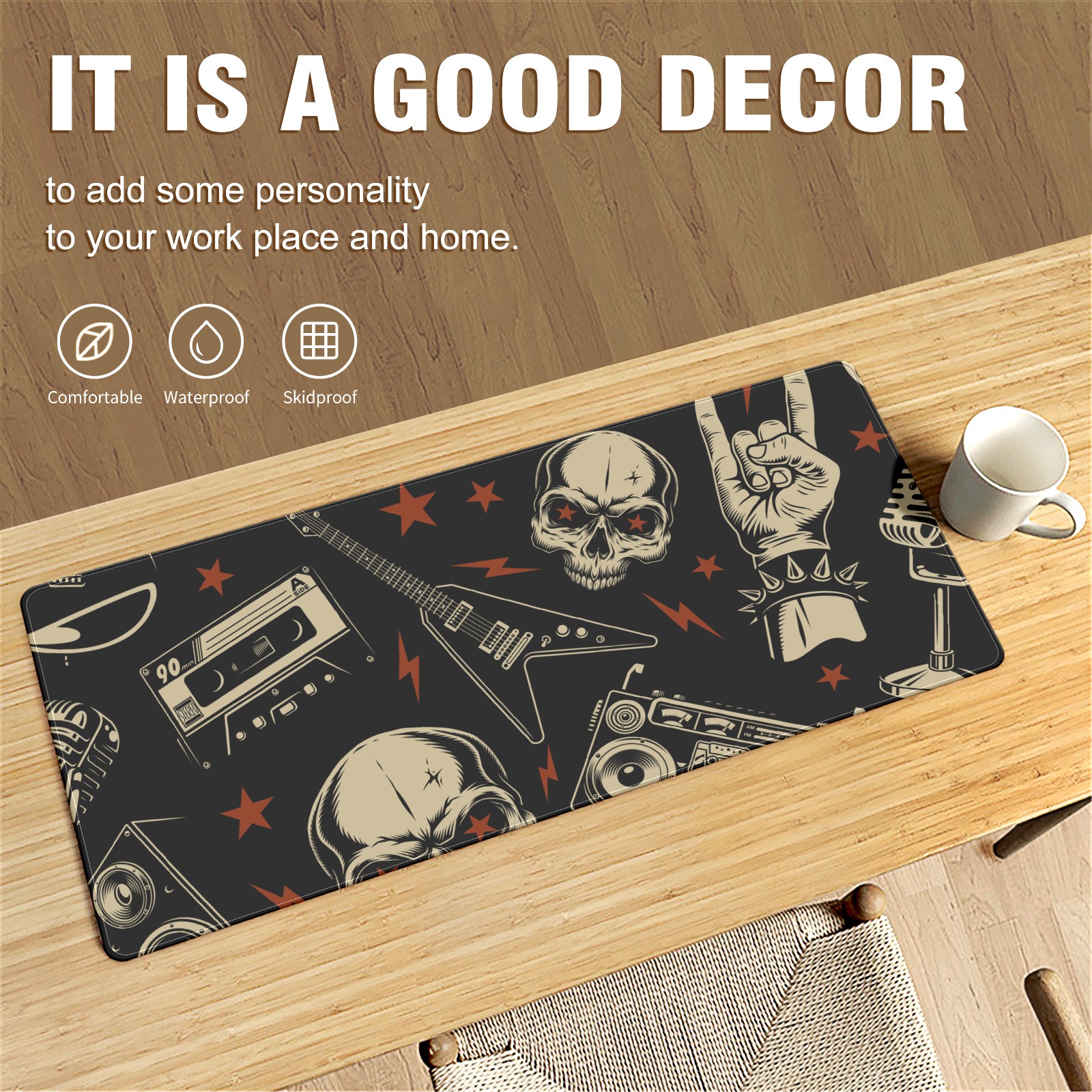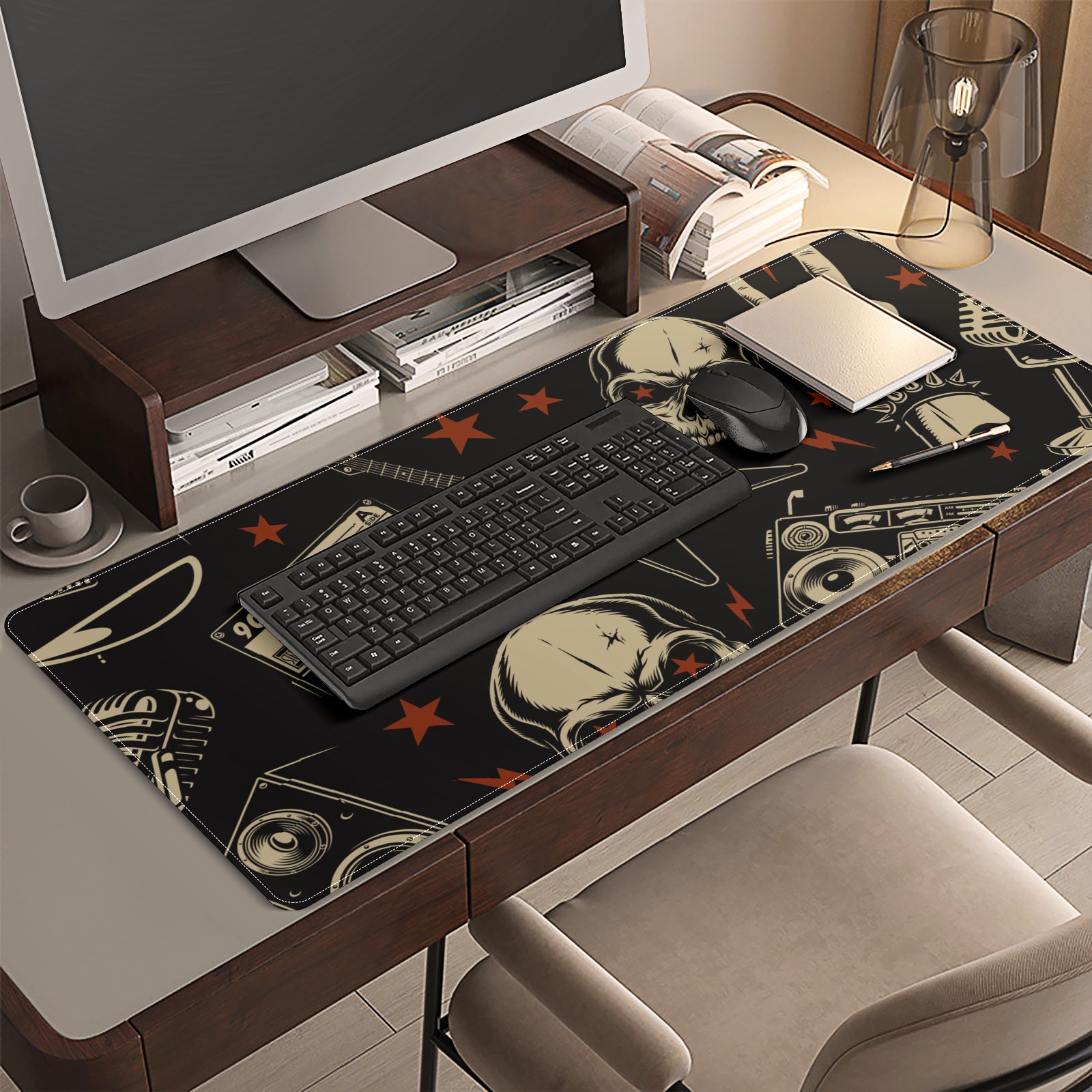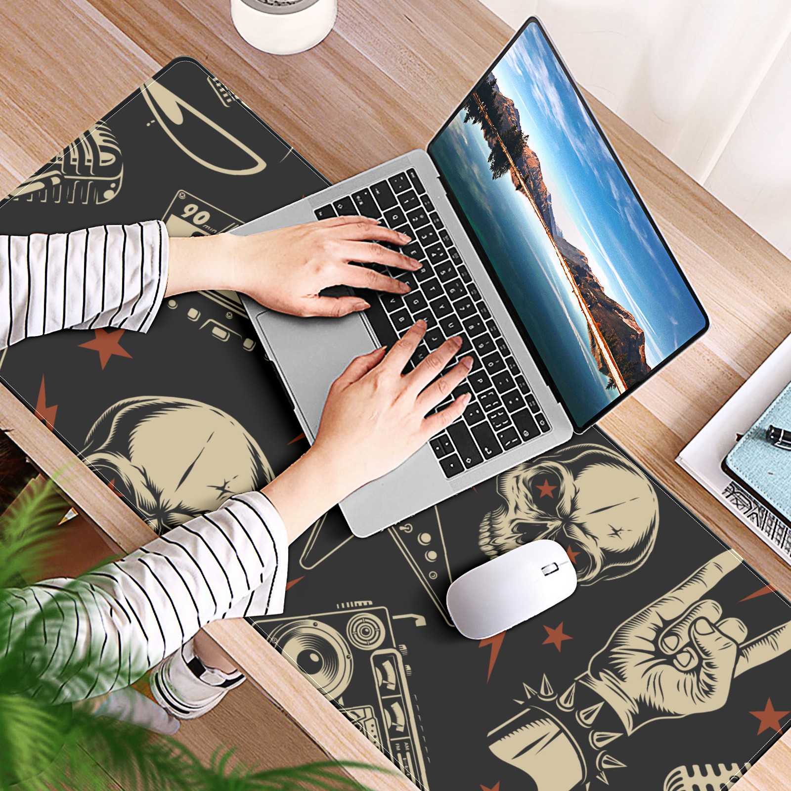 Large Mouse Pad for Desktop, Cute Desk Mat Pad Protector for Work & Gaming, Aesthetic Pretty Anti-Slip Laptop Blotter Cover for Office School Home Supplies, Skulls Rock Music Seamless , 35.4inx15.7in