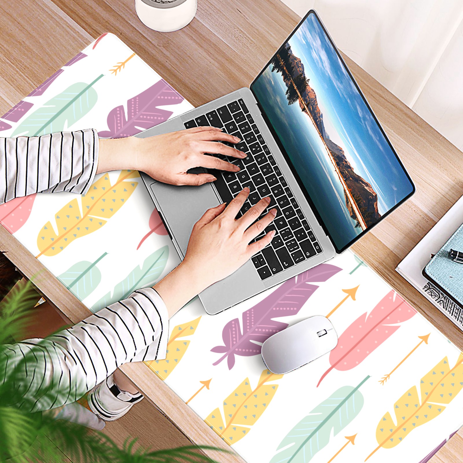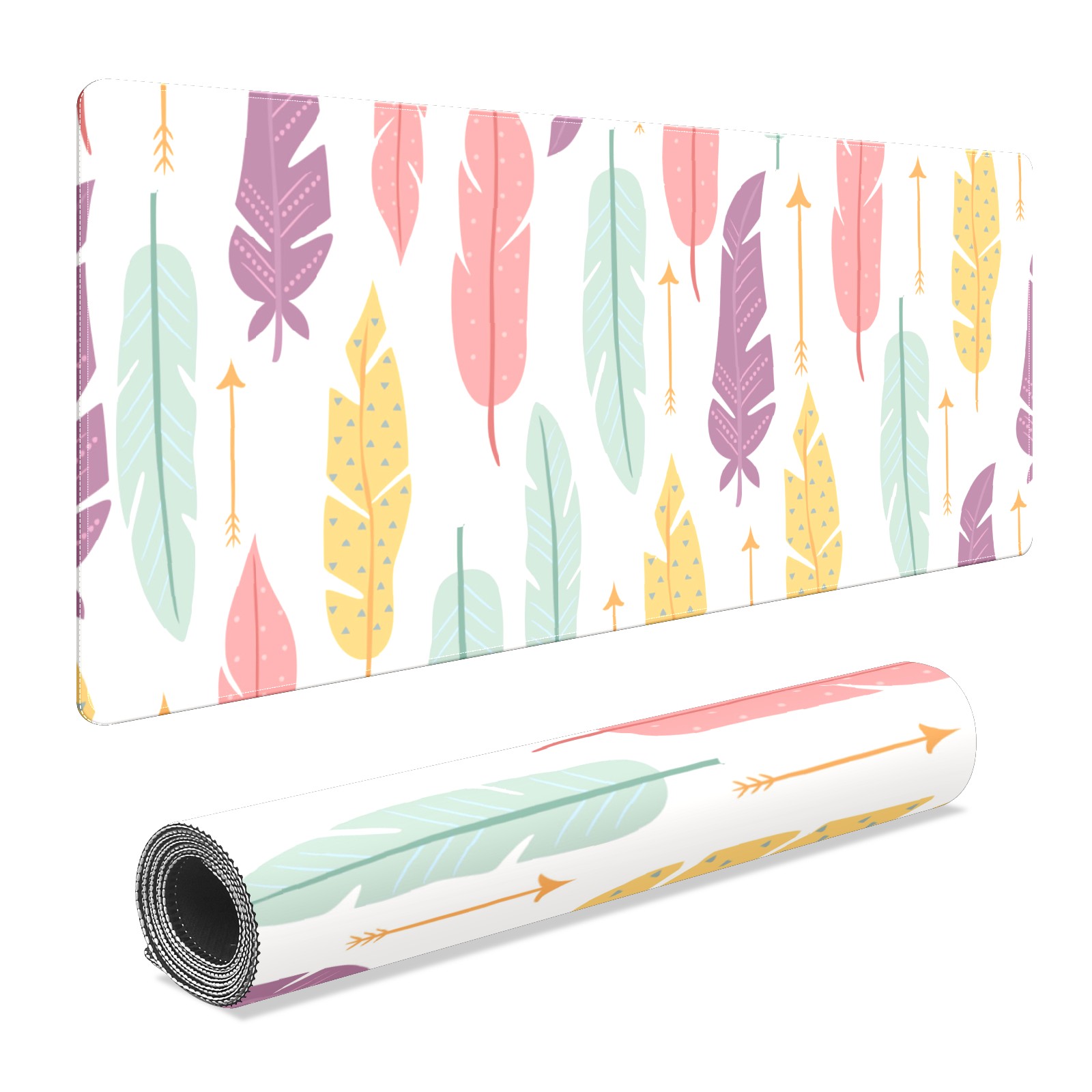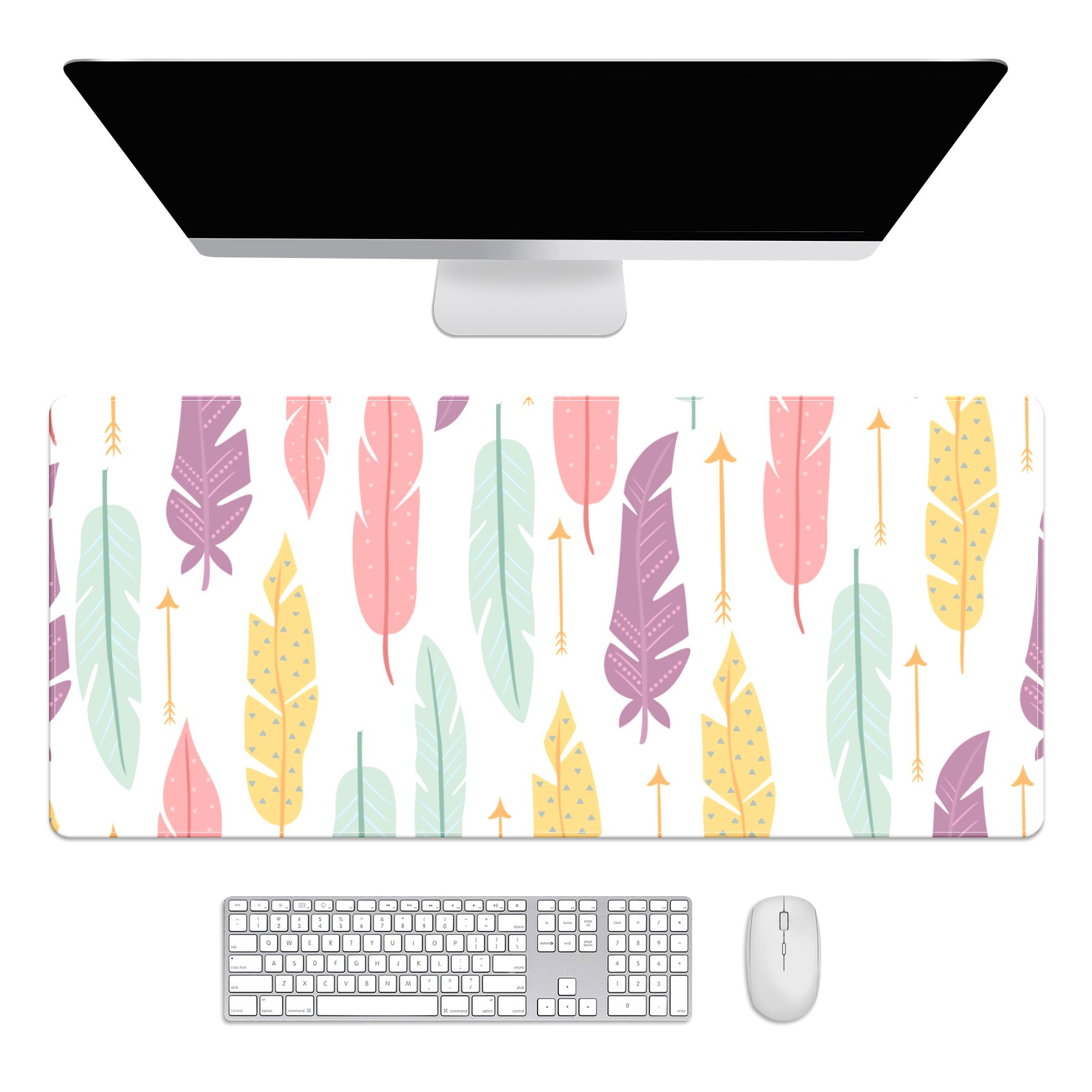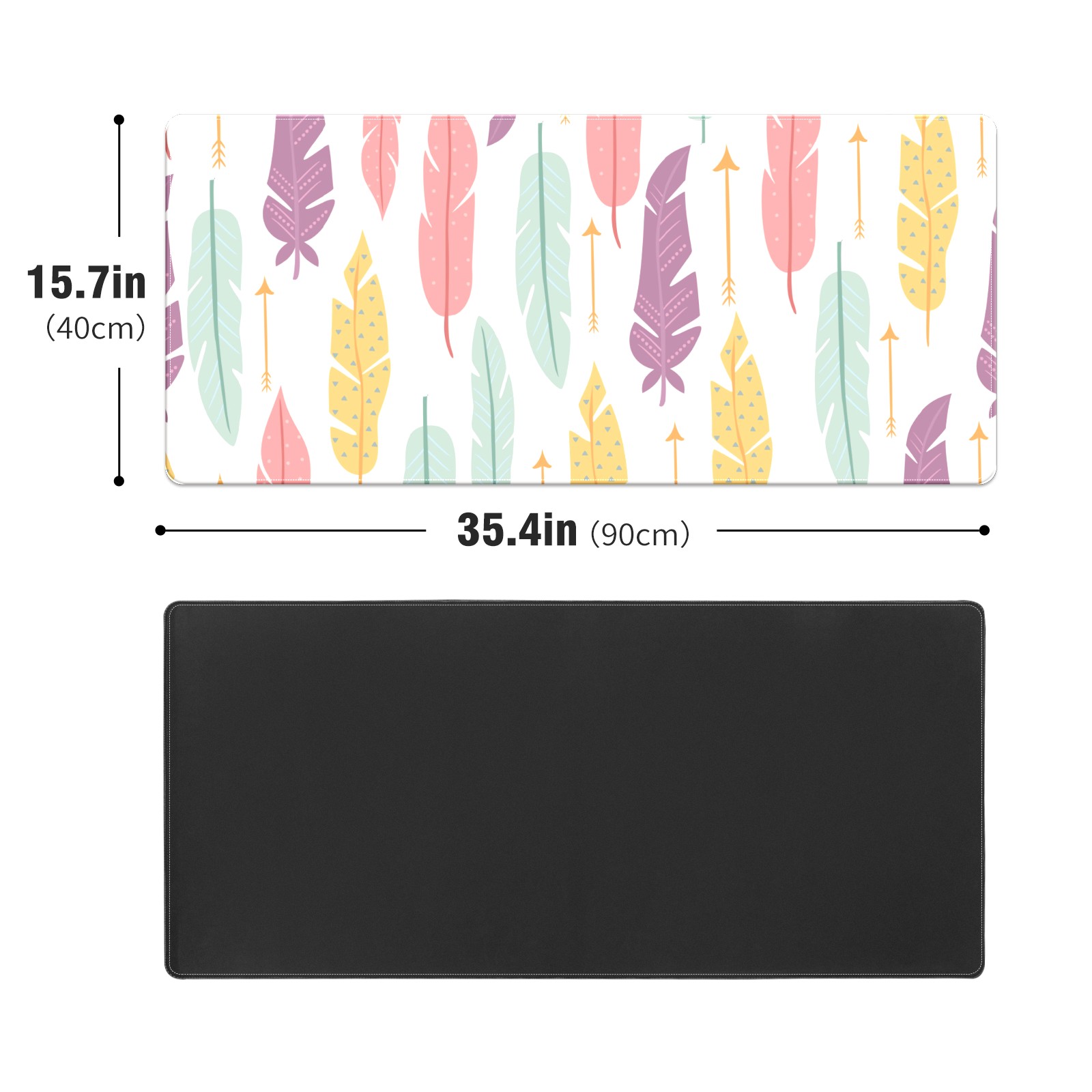 Large Mouse Pad for Desktop, Cute Desk Mat Pad Protector for Work & Gaming, Aesthetic Pretty Anti-Slip Laptop Blotter Cover for Office School Home Supplies, Feathers Colorful Seamless , 35.4inx15.7in