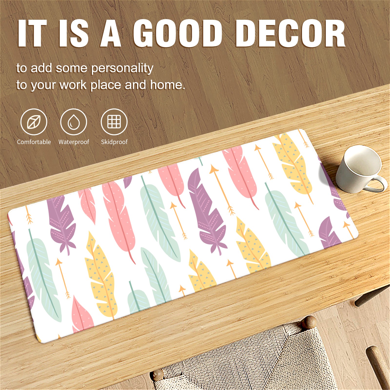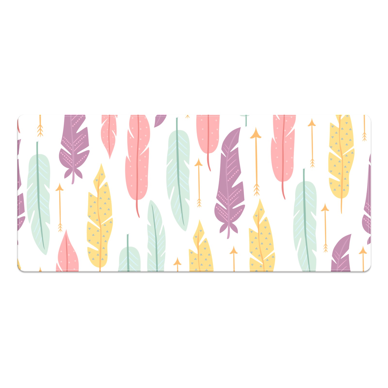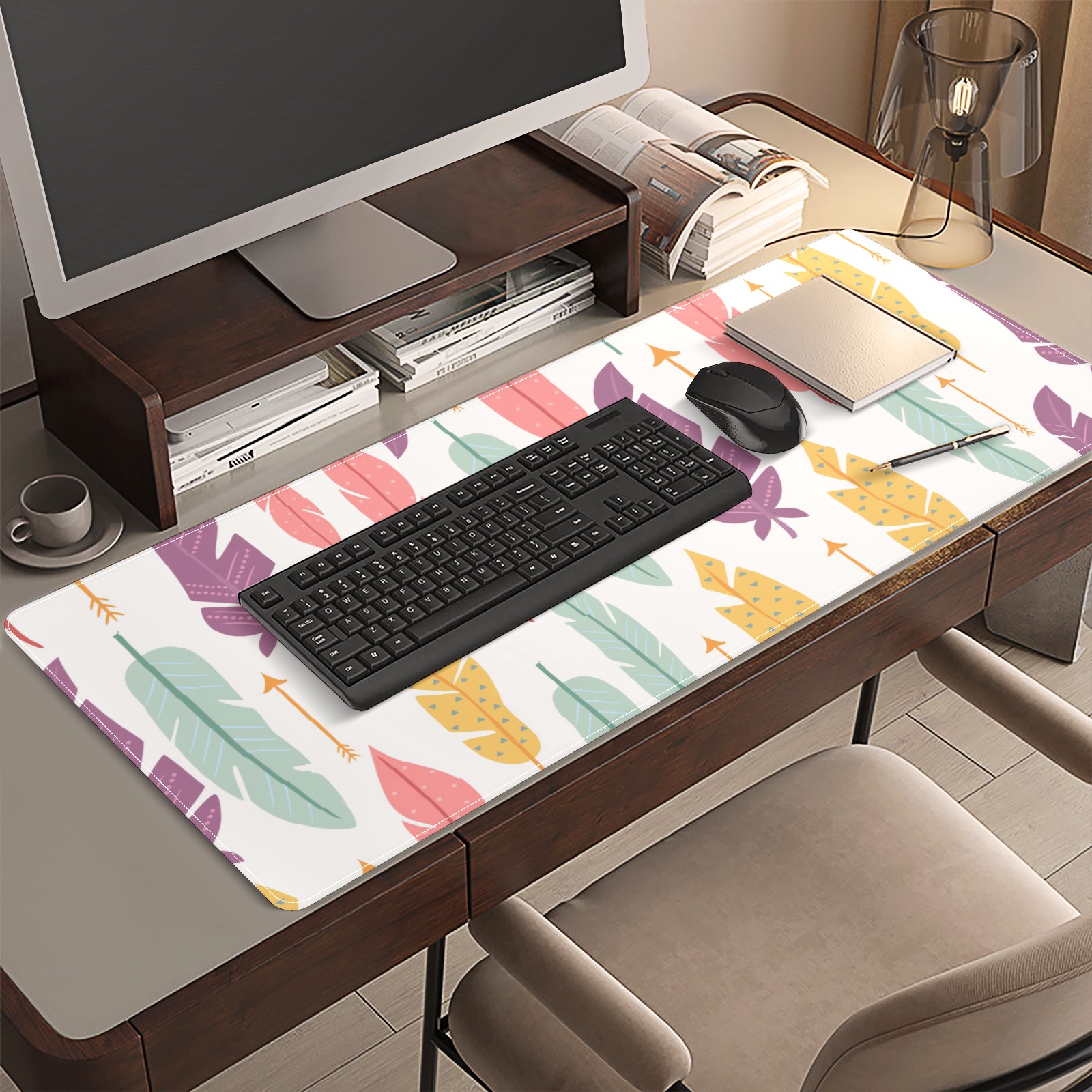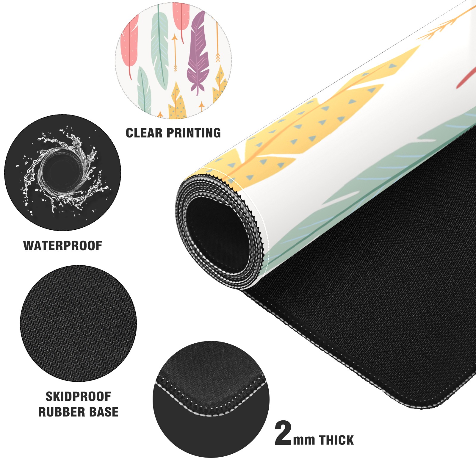 Large Mouse Pad for Desktop, Cute Desk Mat Pad Protector for Work & Gaming, Aesthetic Pretty Anti-Slip Laptop Blotter Cover for Office School Home Supplies, Feathers Colorful Seamless , 35.4inx15.7in