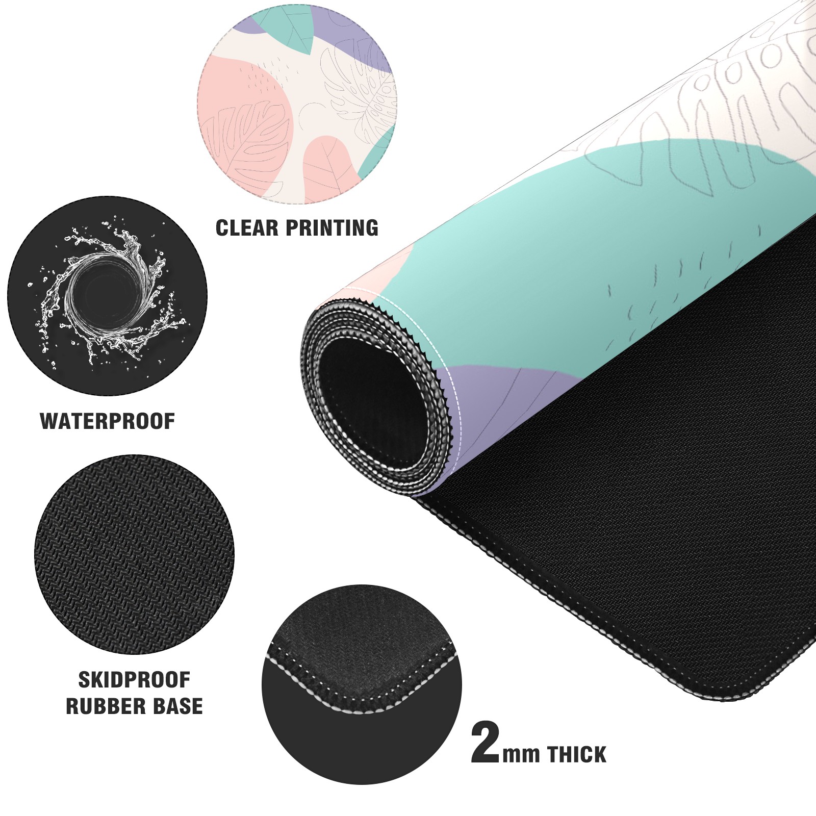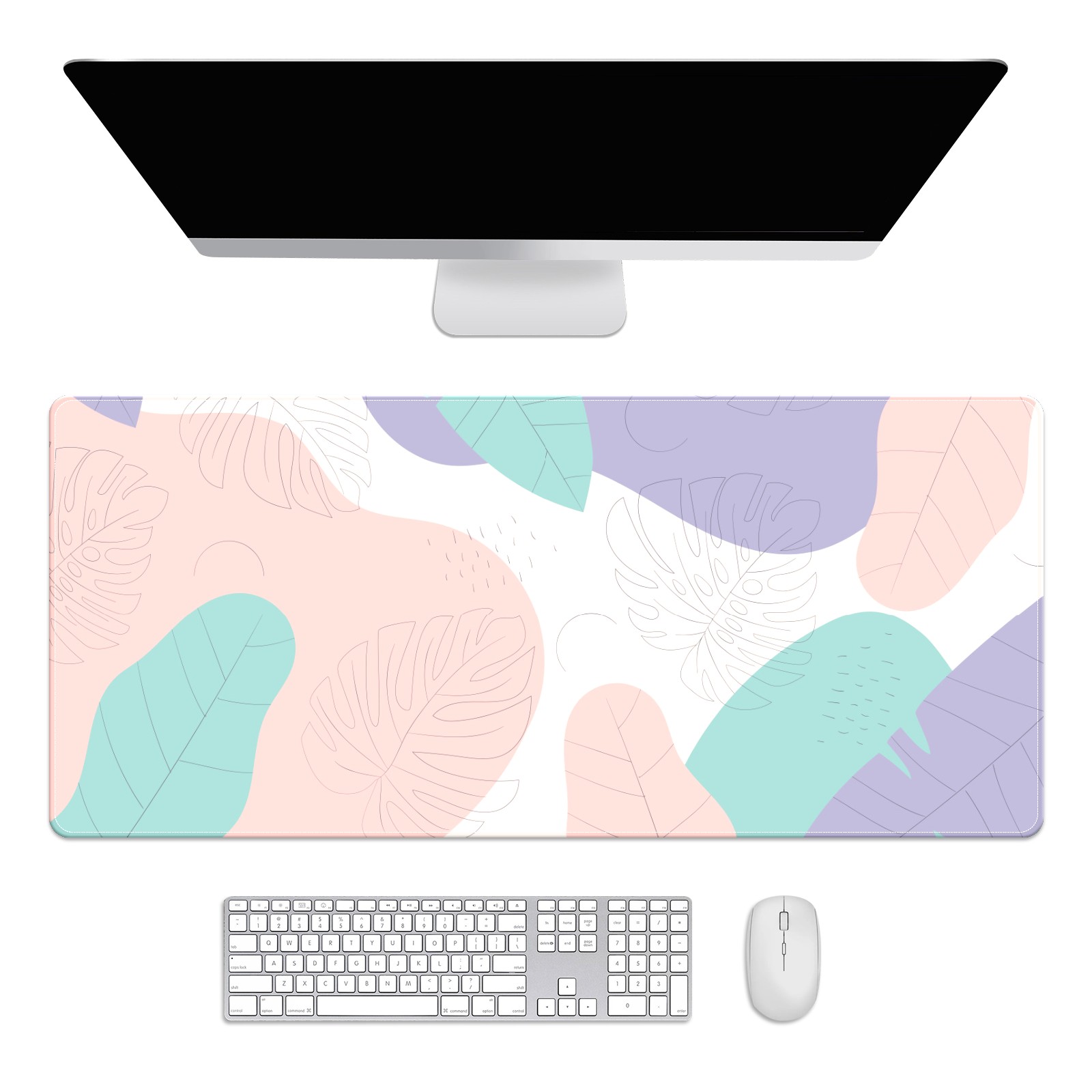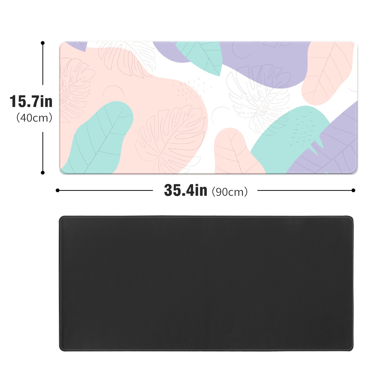 Large Mouse Pad for Desktop, Cute Desk Mat Pad Protector for Work & Gaming, Aesthetic Pretty Anti-Slip Laptop Blotter Cover for Office School Home Supplies, Leaves Colorful Seamless , 35.4inx15.7in