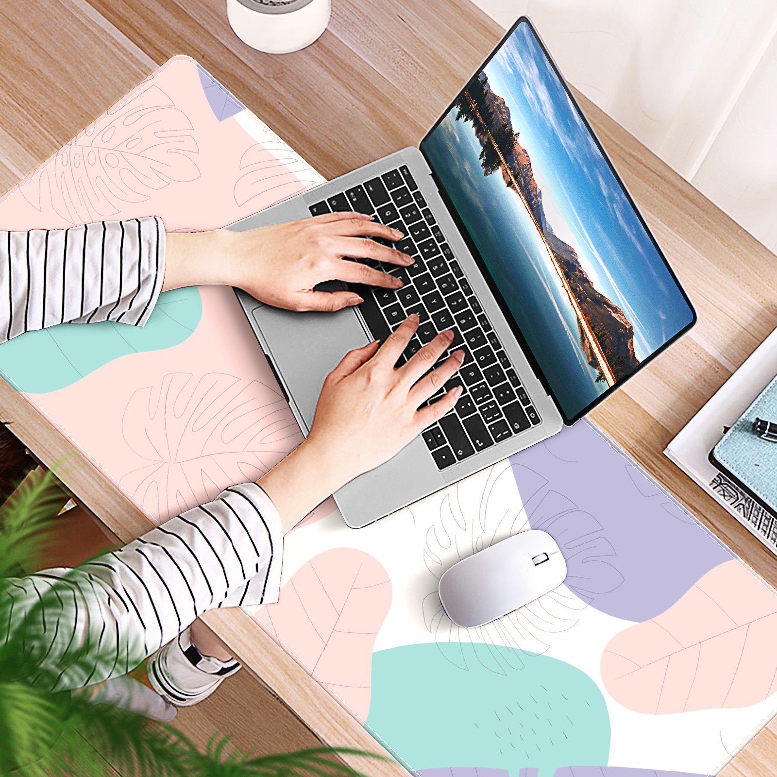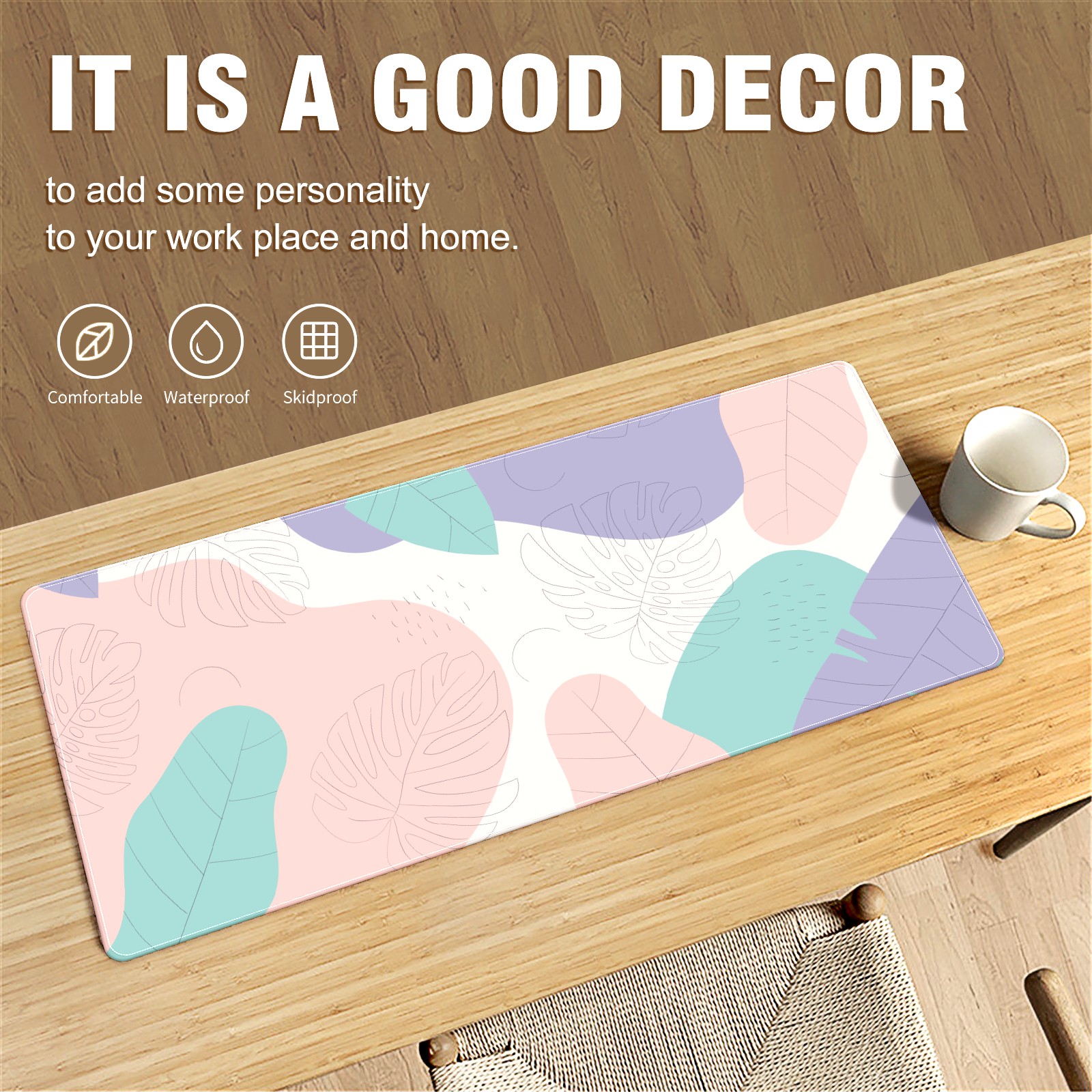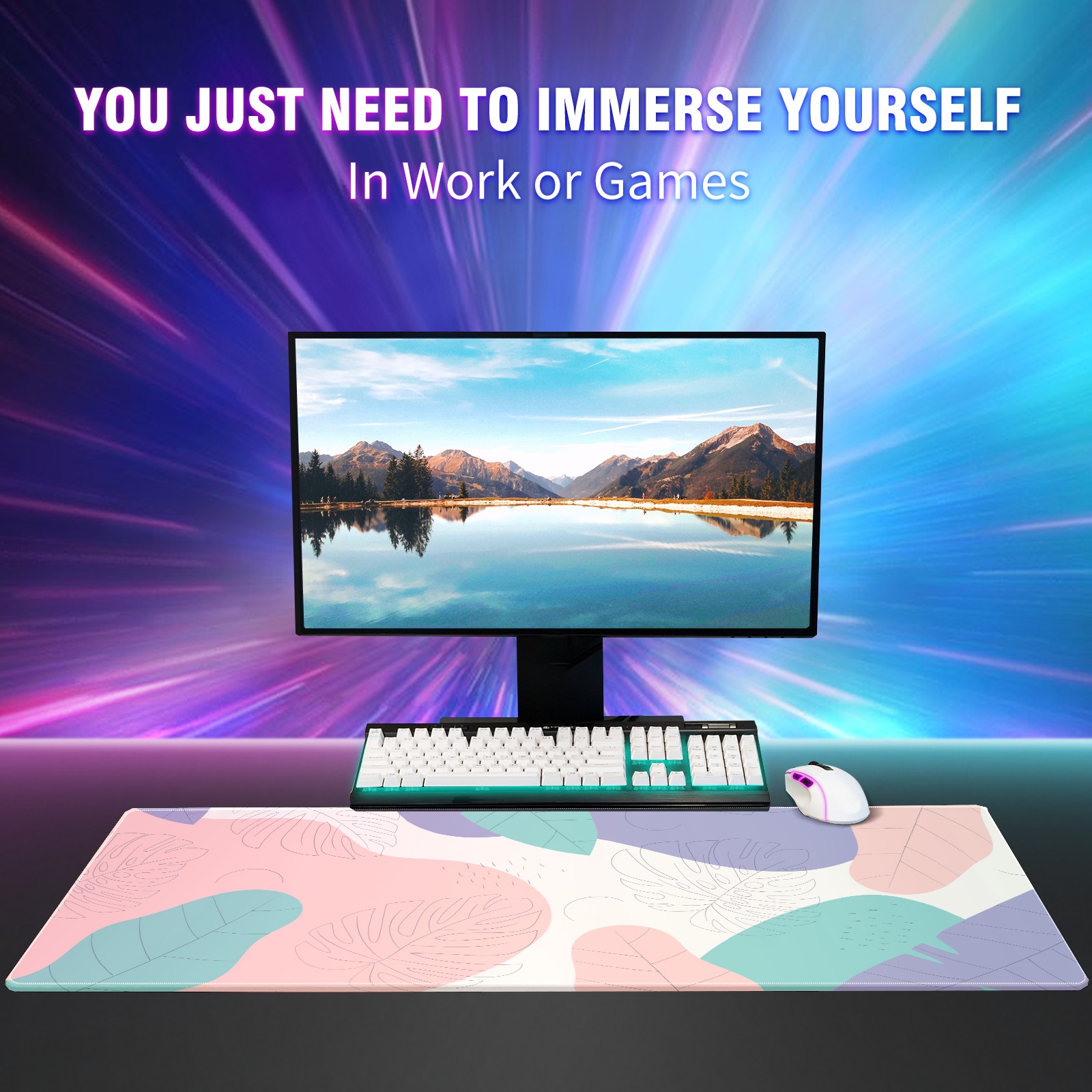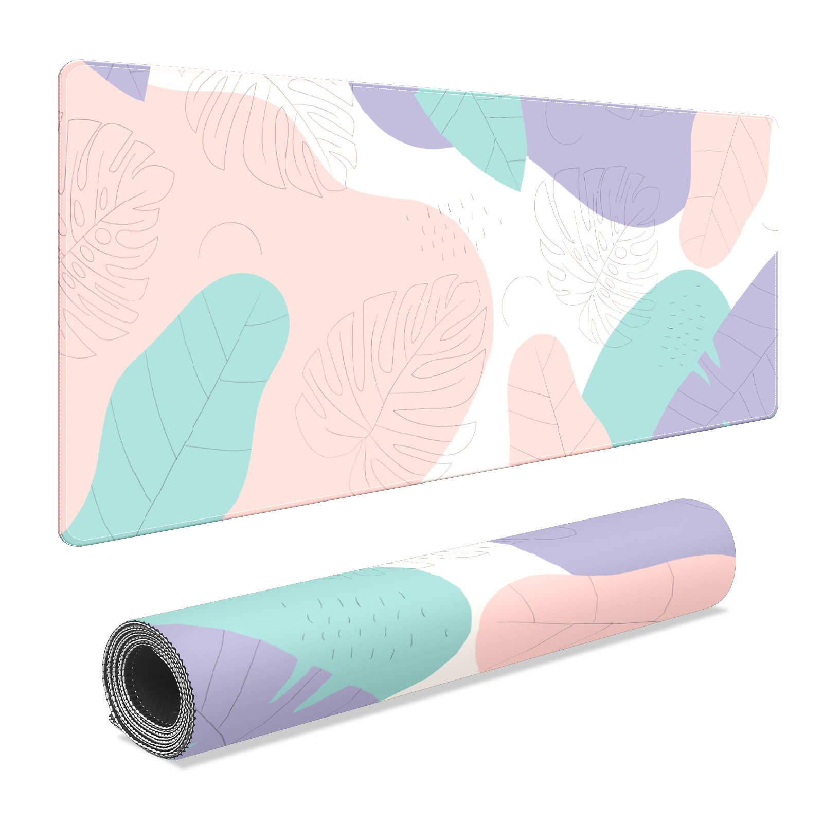 Large Mouse Pad for Desktop, Cute Desk Mat Pad Protector for Work & Gaming, Aesthetic Pretty Anti-Slip Laptop Blotter Cover for Office School Home Supplies, Leaves Colorful Seamless , 35.4inx15.7in