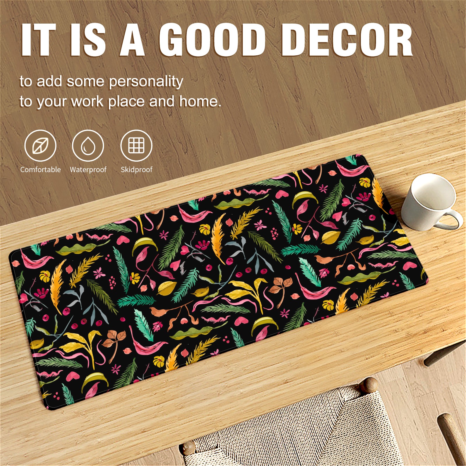• <p>This 35.4” × 15.7” extended desk mat offers ample space for your keyboard, mouse and essentials, working as a smooth work/writing pad while protecting your desktop from scratches.</p><p>With stylish artistic patterns, it adds personality to your home office, study or gaming setup. The high-density woven surface ensures precise, smooth mouse tracking for work and gaming.</p><p>Featuring an anti-slip natural rubber base for firm grip and stability, the mat is soft, elastic and odorless. Reinforced stitched edges prevent fraying and curling for long-lasting durability.</p>