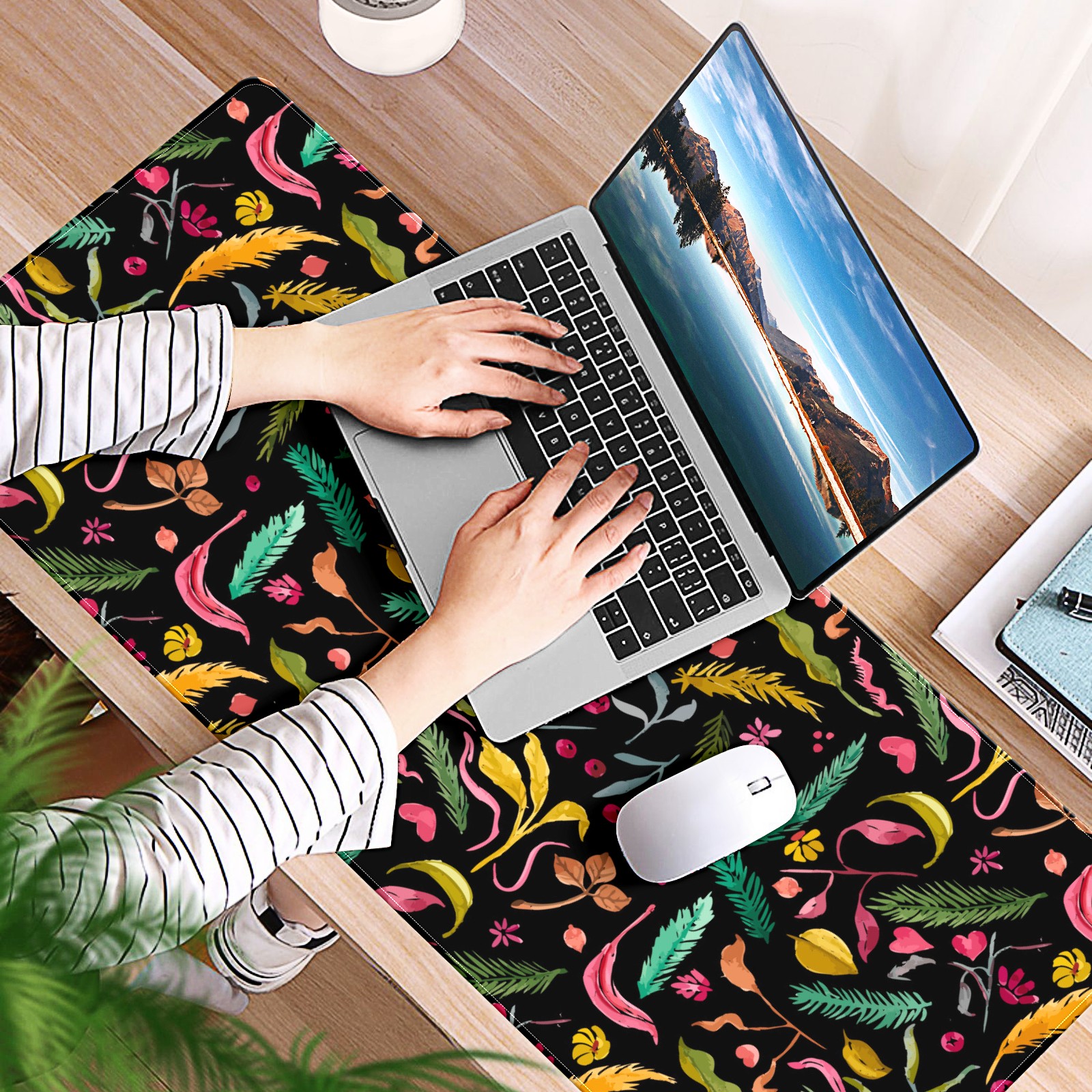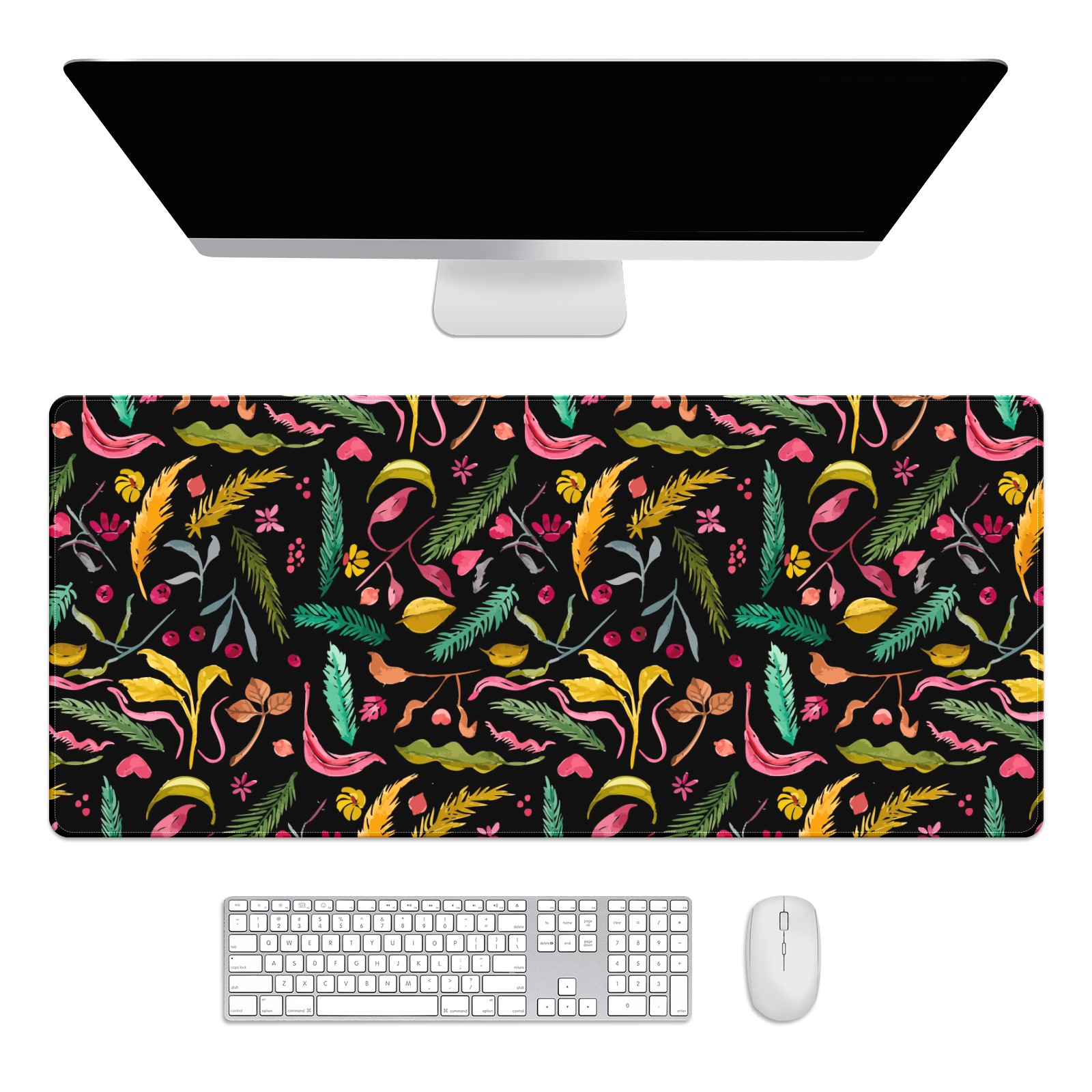 Large Mouse Pad for Desktop, Cute Desk Mat Pad Protector for Work & Gaming, Aesthetic Pretty Anti-Slip Laptop Blotter Cover for Office School Home Supplies, Palm Colorful Seamless , 35.4inx15.7in