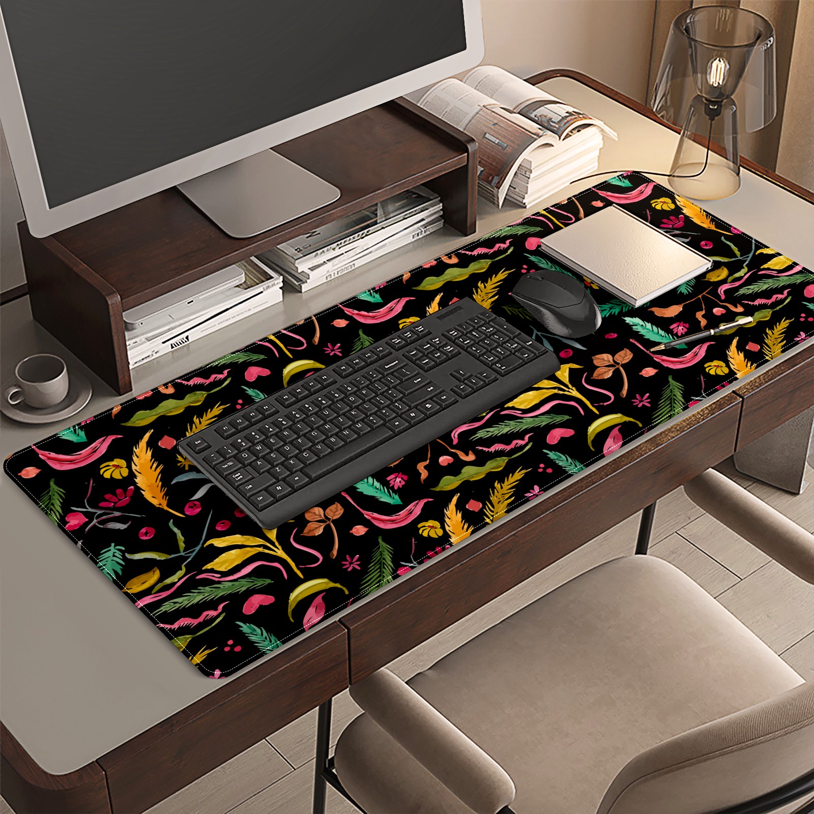 <p>This 35.4” × 15.7” extended desk mat offers ample space for your keyboard, mouse and essentials, working as a smooth work/writing pad while protecting your desktop from scratches.</p><p>With stylish artistic patterns, it adds personality to your home office, study or gaming setup. The high-density woven surface ensures precise, smooth mouse tracking for work and gaming.</p><p>Featuring an anti-slip natural rubber base for firm grip and stability, the mat is soft, elastic and odorless. Reinforced stitched edges prevent fraying and curling for long-lasting durability.</p>