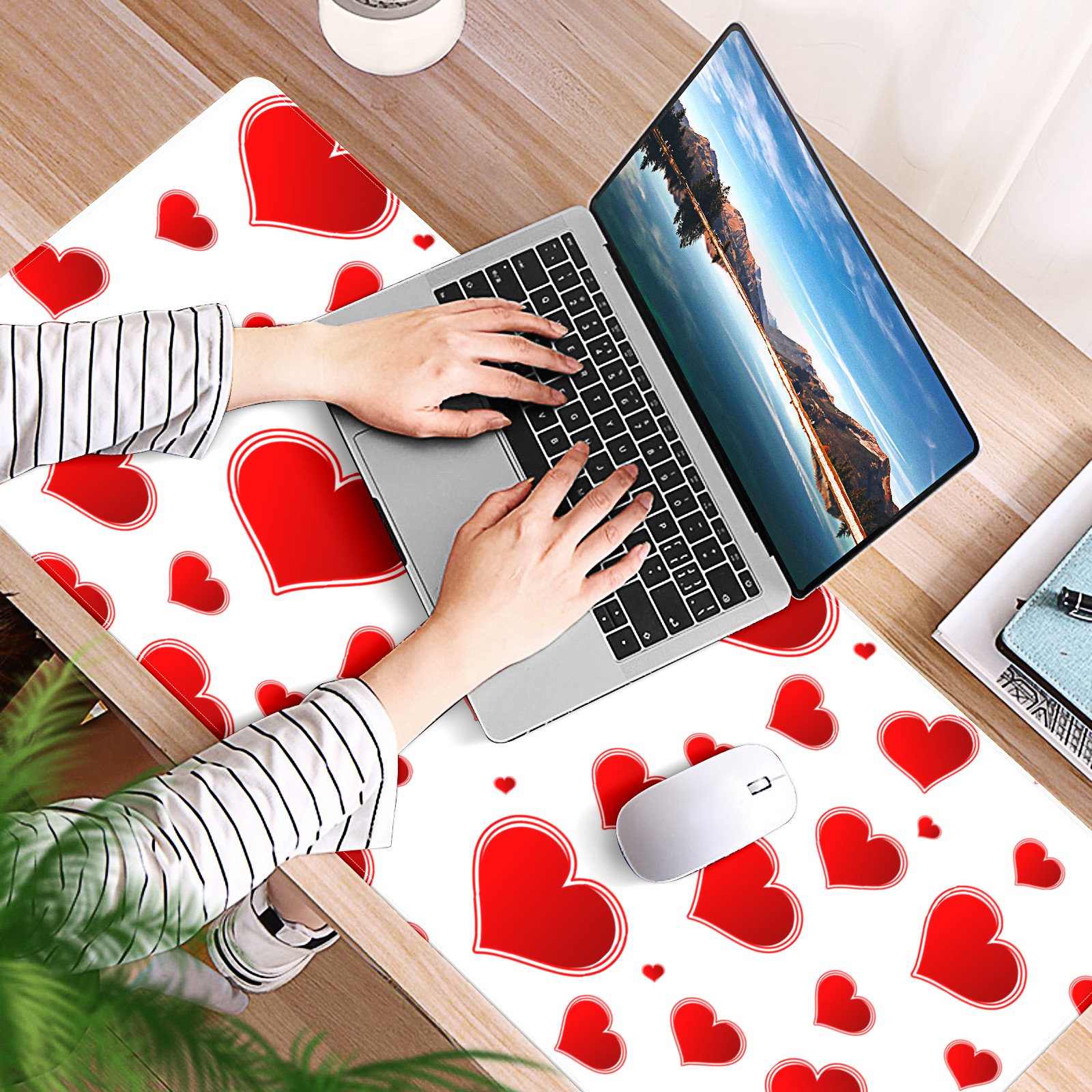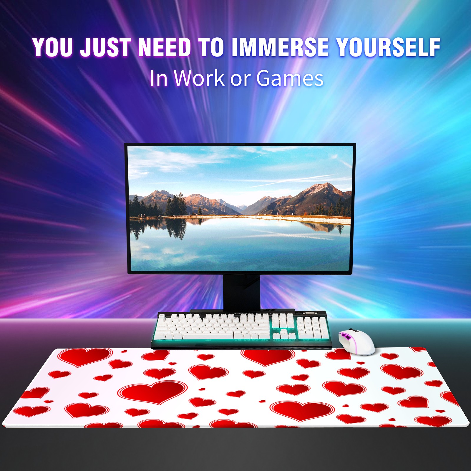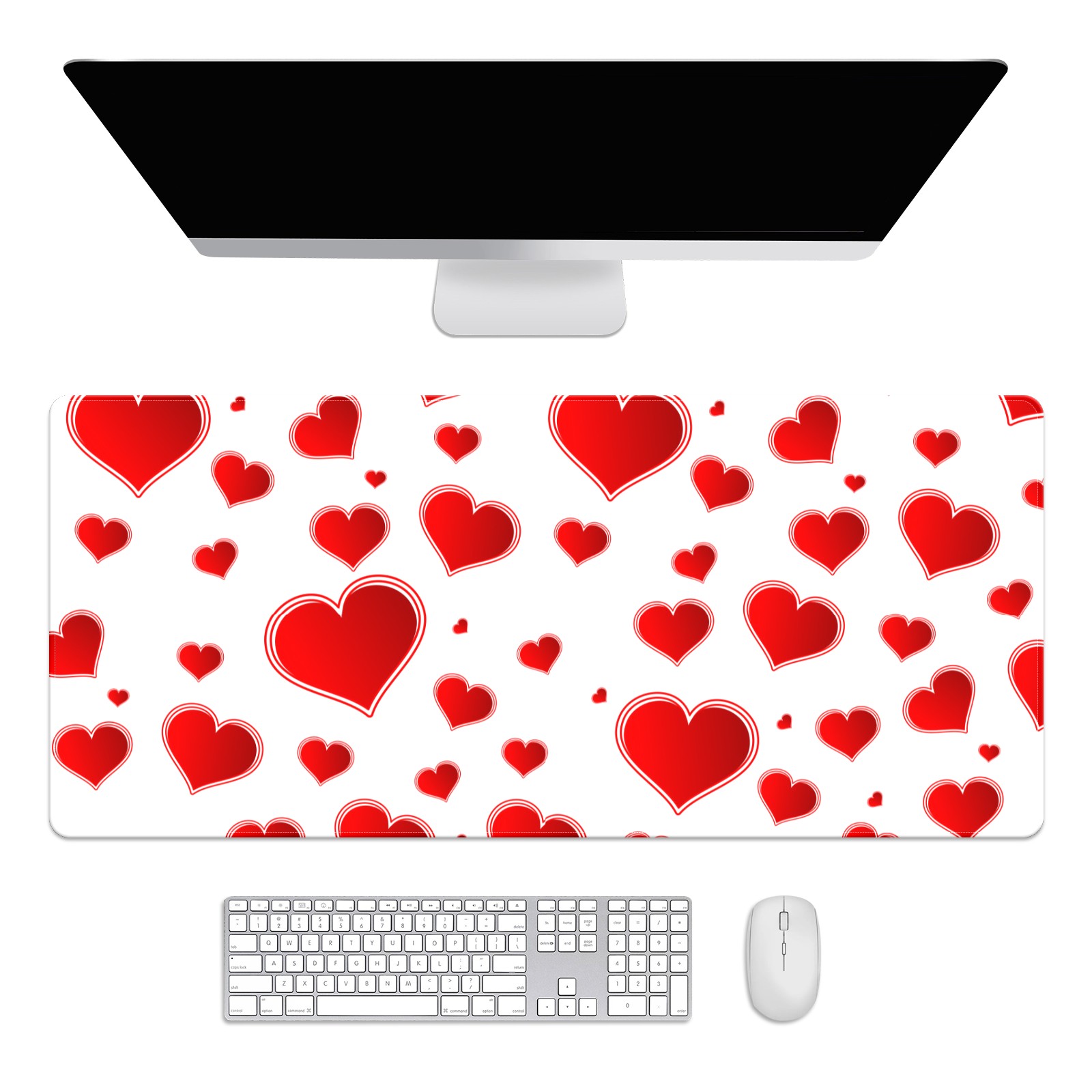 Large Mouse Pad for Desktop, Cute Desk Mat Pad Protector for Work & Gaming, Aesthetic Pretty Anti-Slip Laptop Blotter Cover for Office School Home Supplies, Love Heart Seamless , 35.4inx15.7in