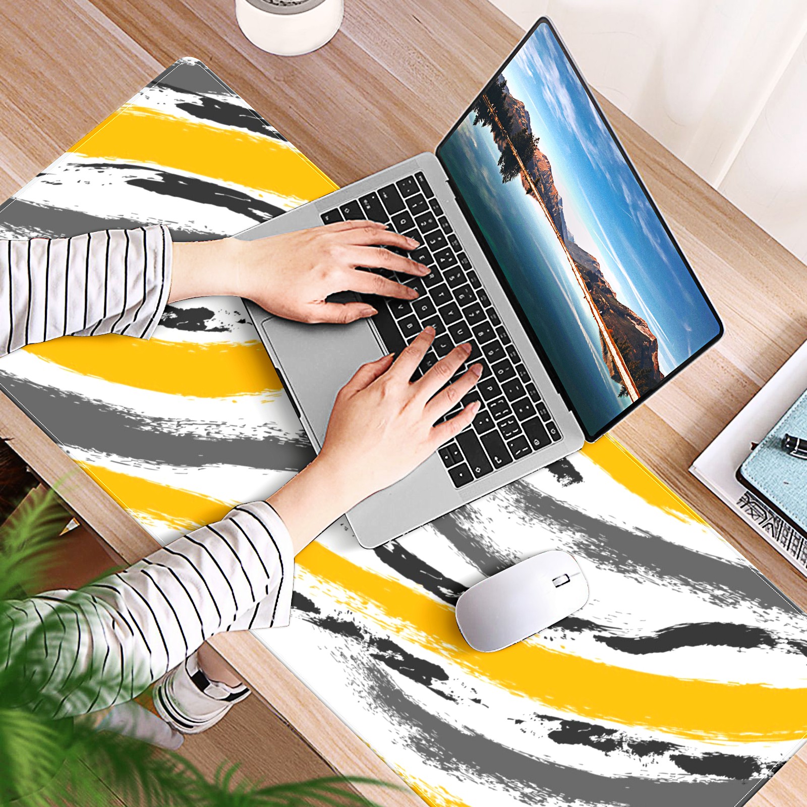 Large Mouse Pad for Desktop, Cute Desk Mat Pad Protector for Work & Gaming, Aesthetic Pretty Anti-Slip Laptop Blotter Cover for Office School Home Supplies, Brush Texture Seamless , 35.4inx15.7in