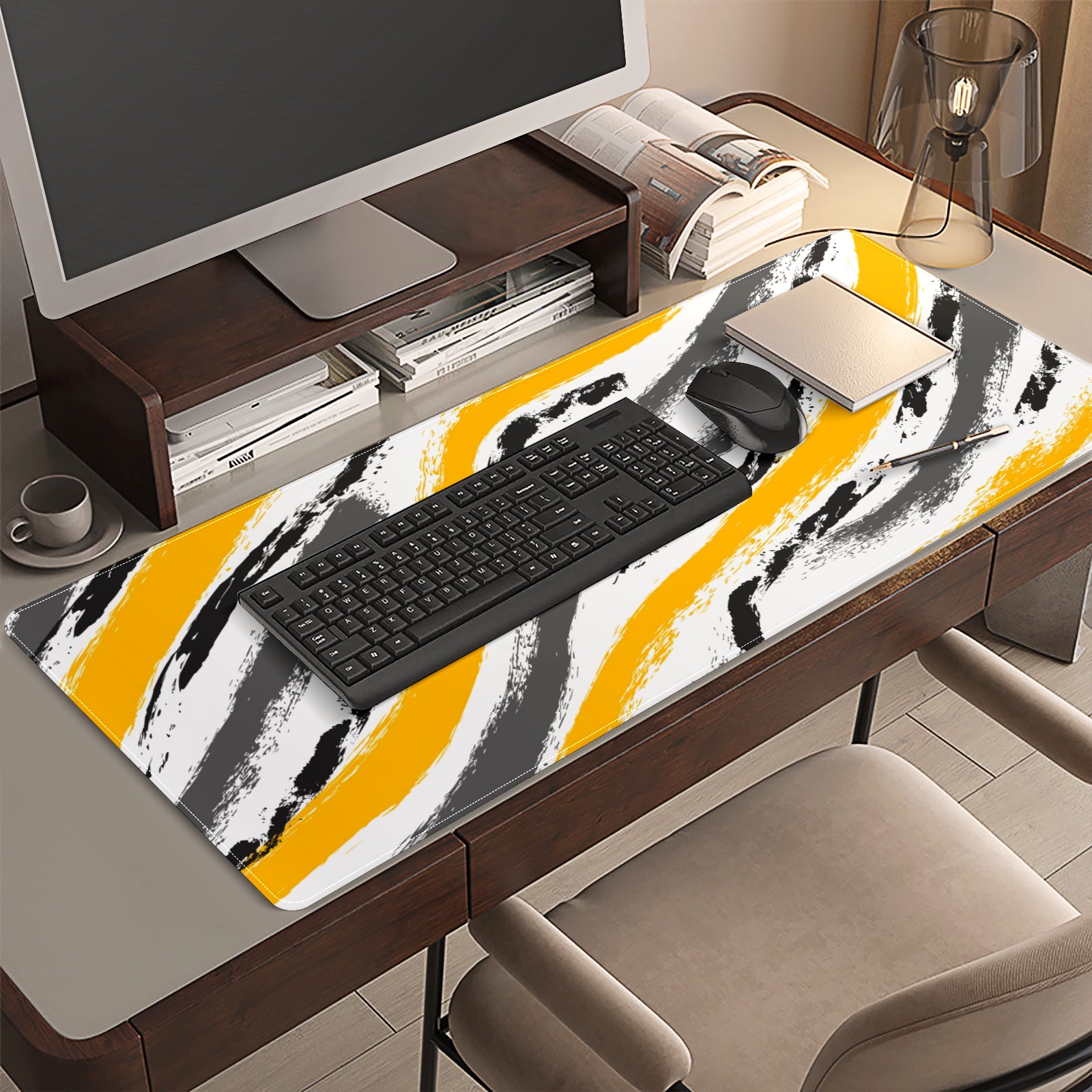 <p>This 35.4” × 15.7” extended desk mat offers ample space for your keyboard, mouse and essentials, working as a smooth work/writing pad while protecting your desktop from scratches.</p><p>With stylish artistic patterns, it adds personality to your home office, study or gaming setup. The high-density woven surface ensures precise, smooth mouse tracking for work and gaming.</p><p>Featuring an anti-slip natural rubber base for firm grip and stability, the mat is soft, elastic and odorless. Reinforced stitched edges prevent fraying and curling for long-lasting durability.</p>