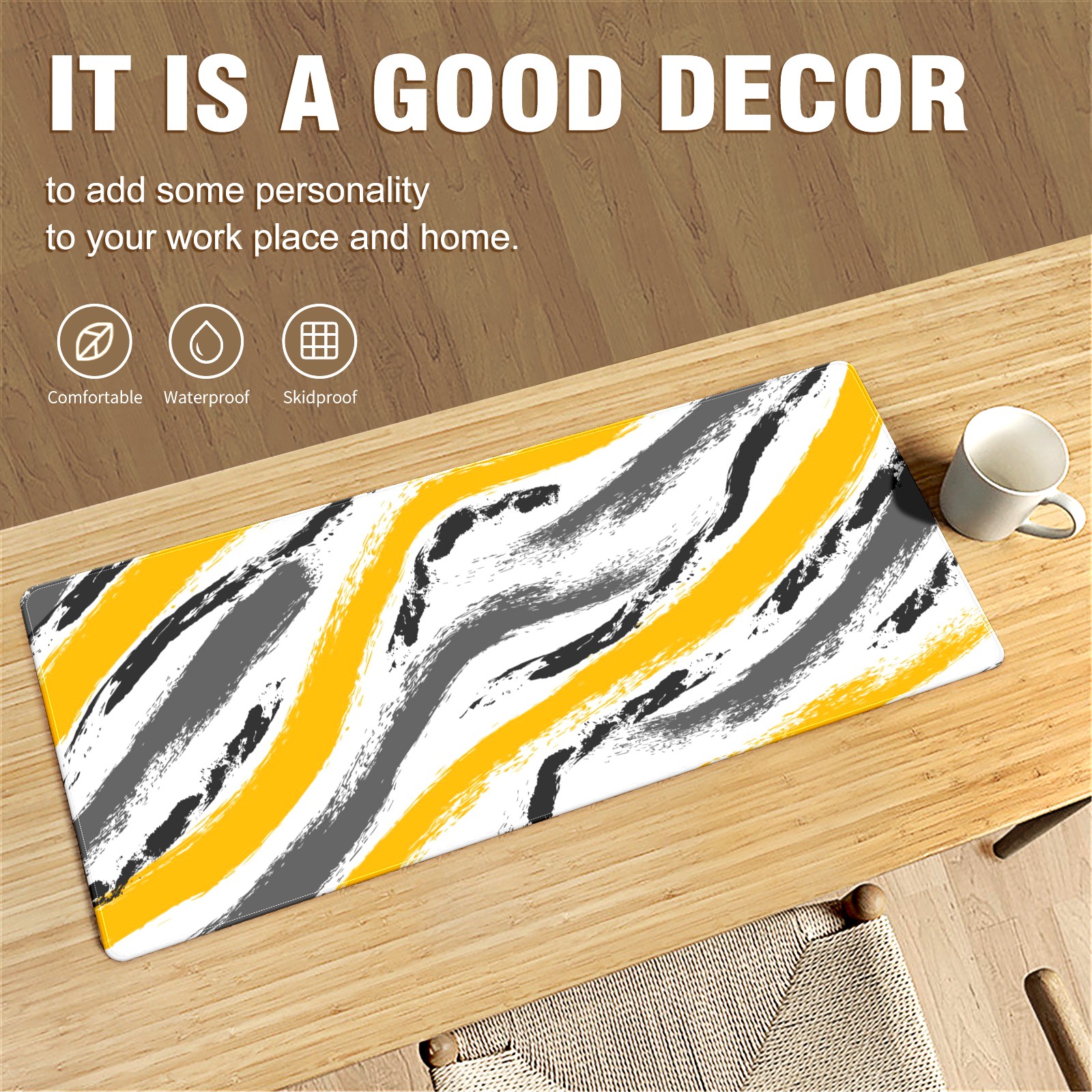 • <p>This 35.4” × 15.7” extended desk mat offers ample space for your keyboard, mouse and essentials, working as a smooth work/writing pad while protecting your desktop from scratches.</p><p>With stylish artistic patterns, it adds personality to your home office, study or gaming setup. The high-density woven surface ensures precise, smooth mouse tracking for work and gaming.</p><p>Featuring an anti-slip natural rubber base for firm grip and stability, the mat is soft, elastic and odorless. Reinforced stitched edges prevent fraying and curling for long-lasting durability.</p>