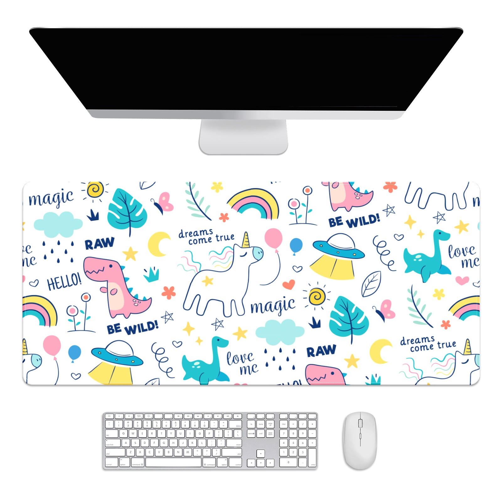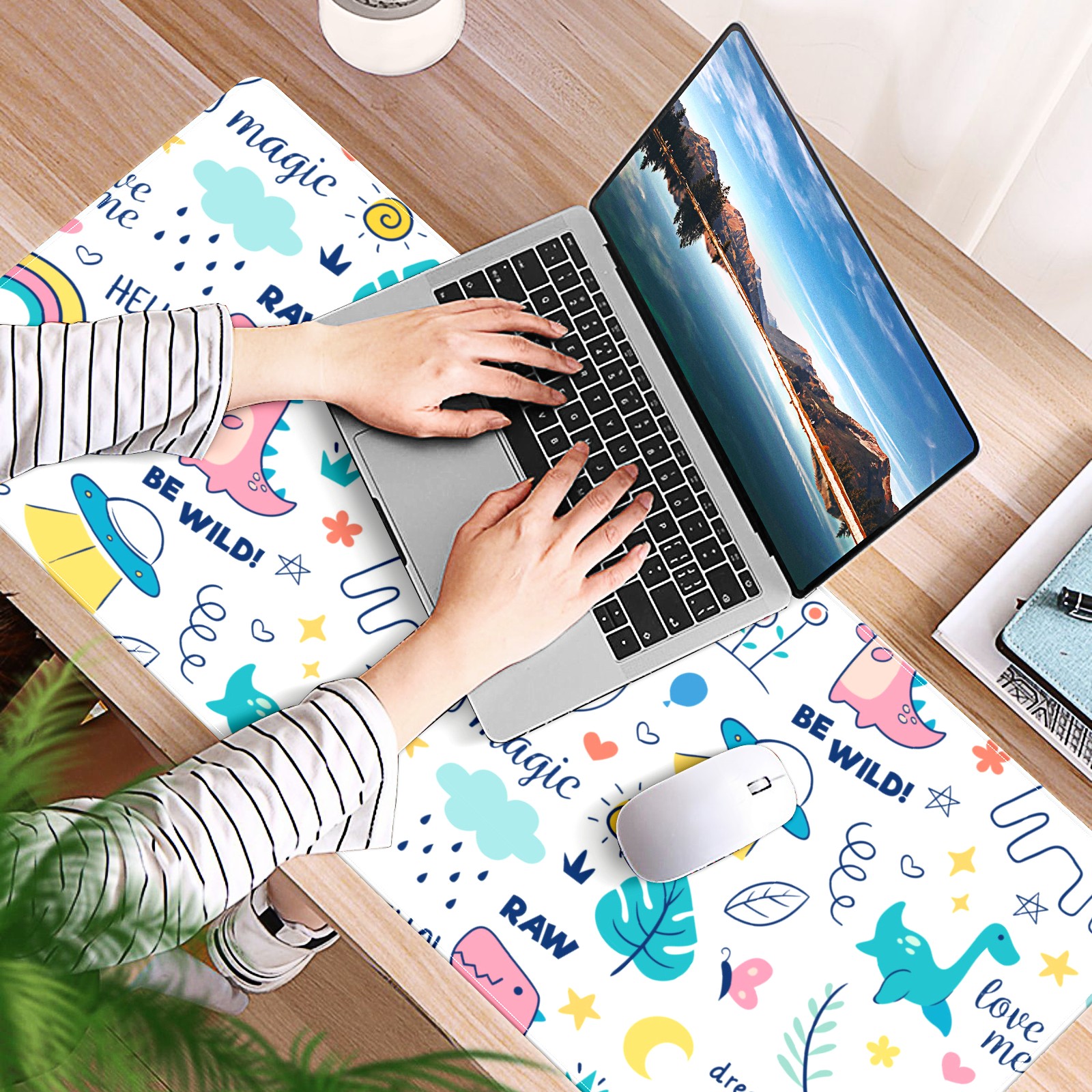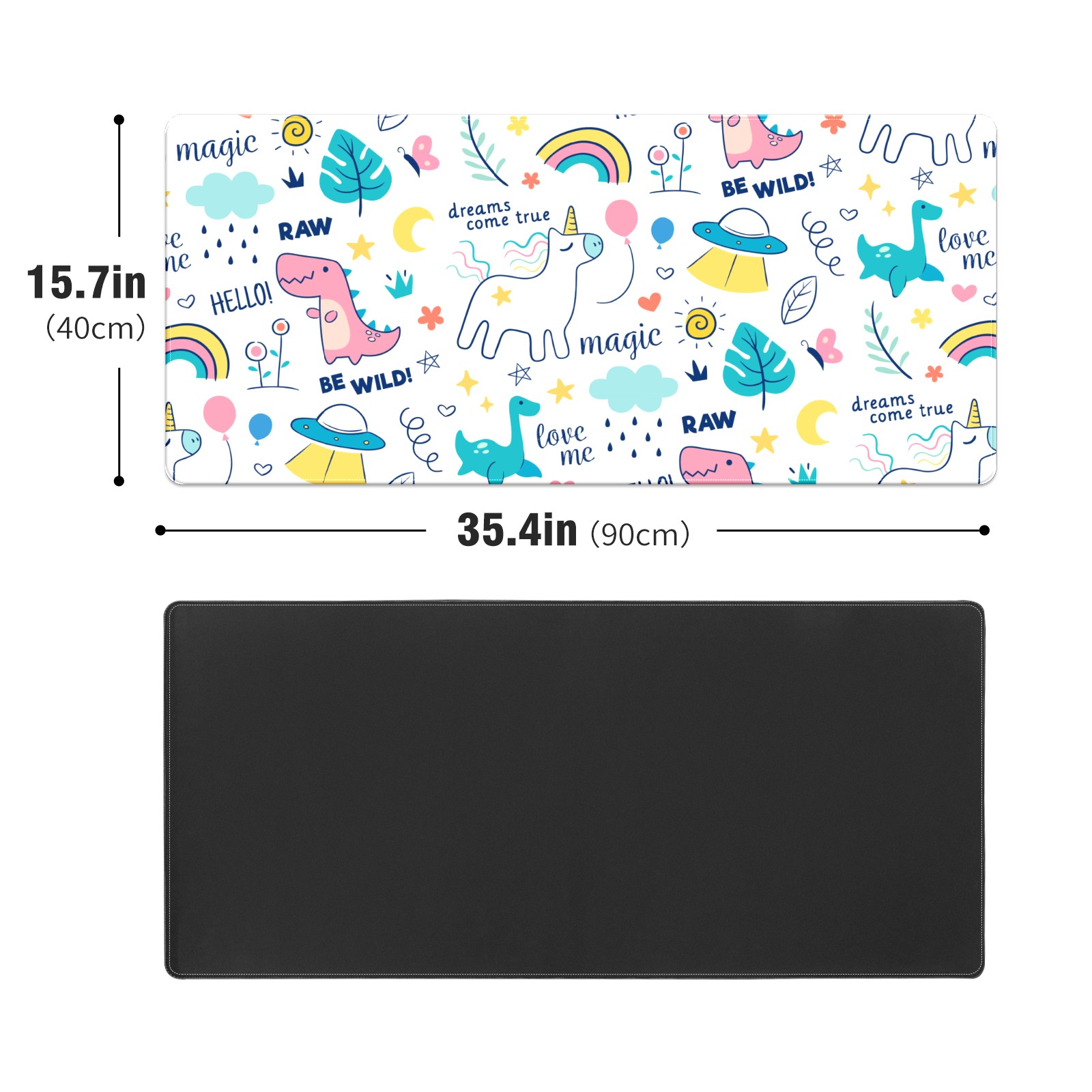 Large Mouse Pad for Desktop, Cute Desk Mat Pad Protector for Work & Gaming, Aesthetic Pretty Anti-Slip Laptop Blotter Cover for Office School Home Supplies, Animals Words Seamless , 35.4inx15.7in