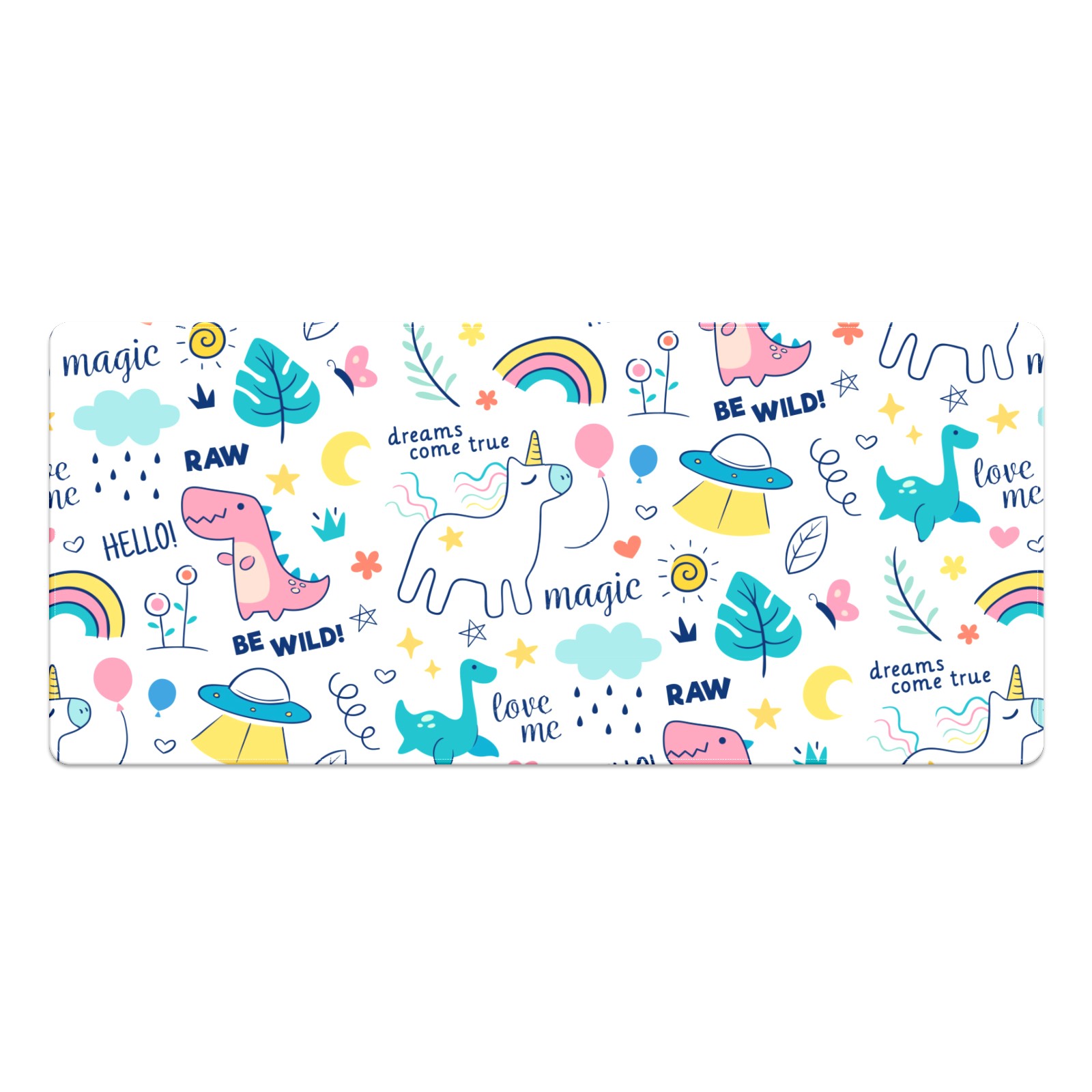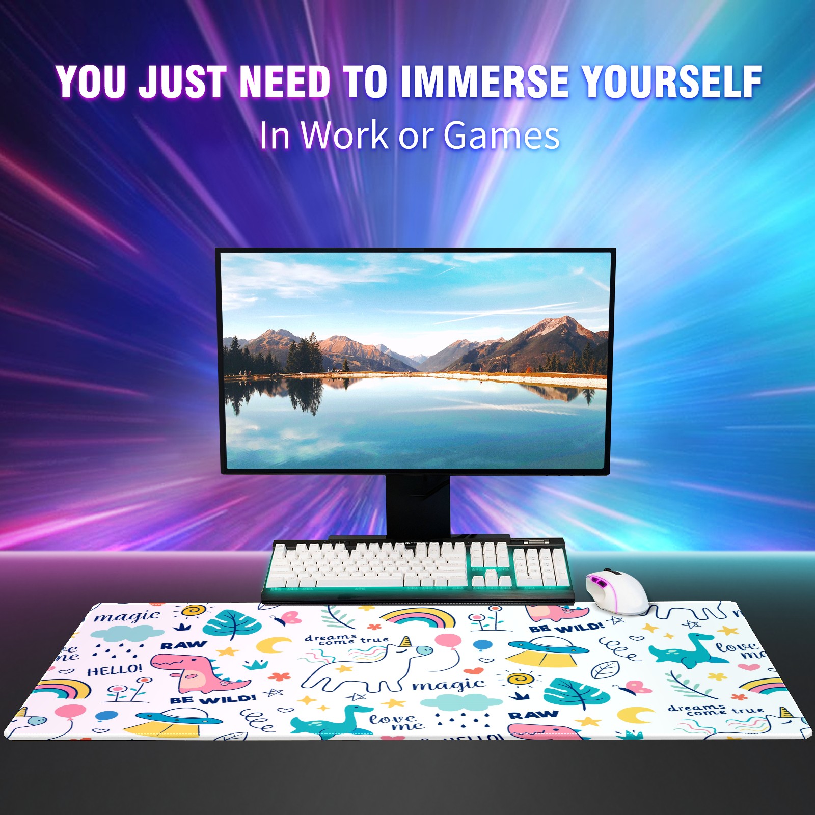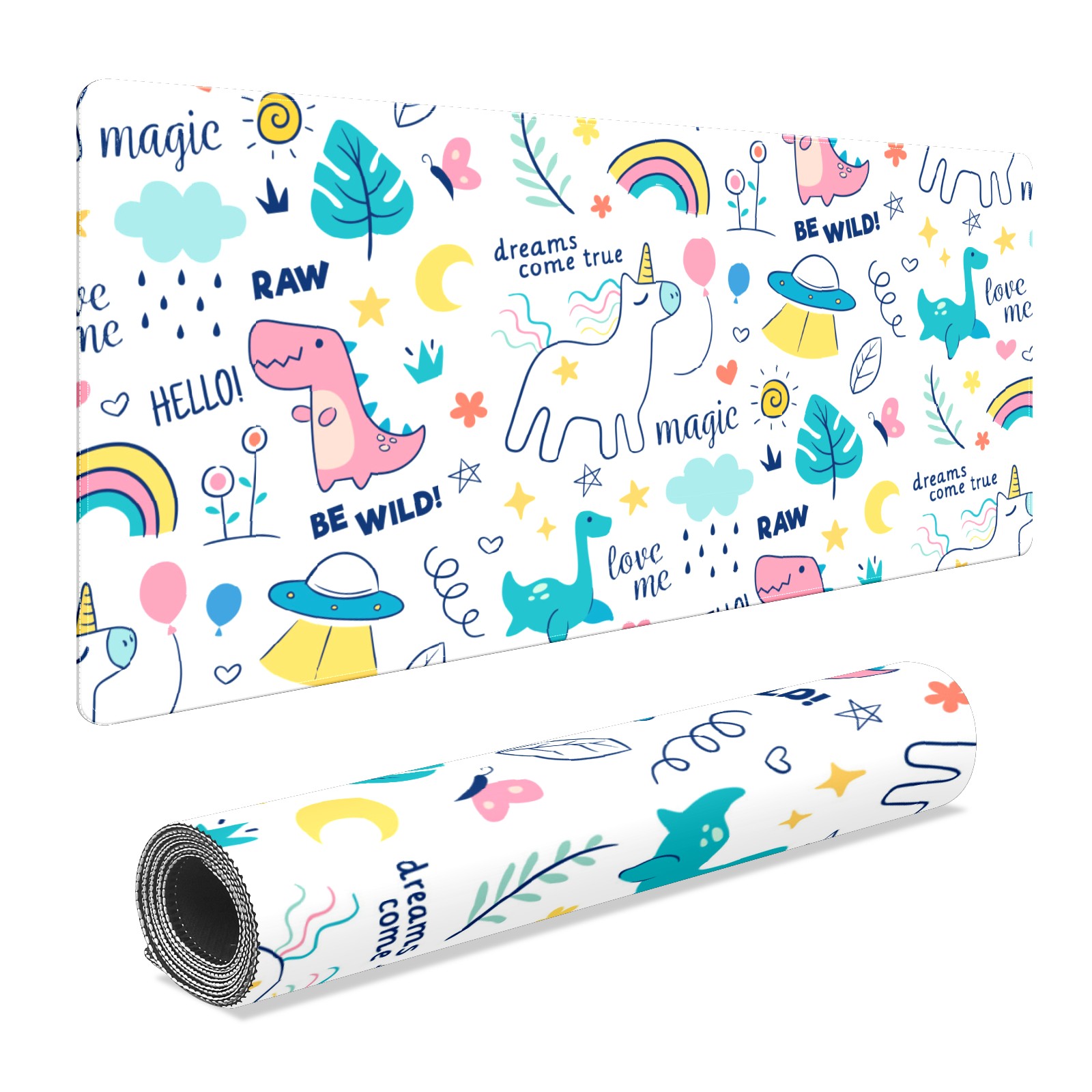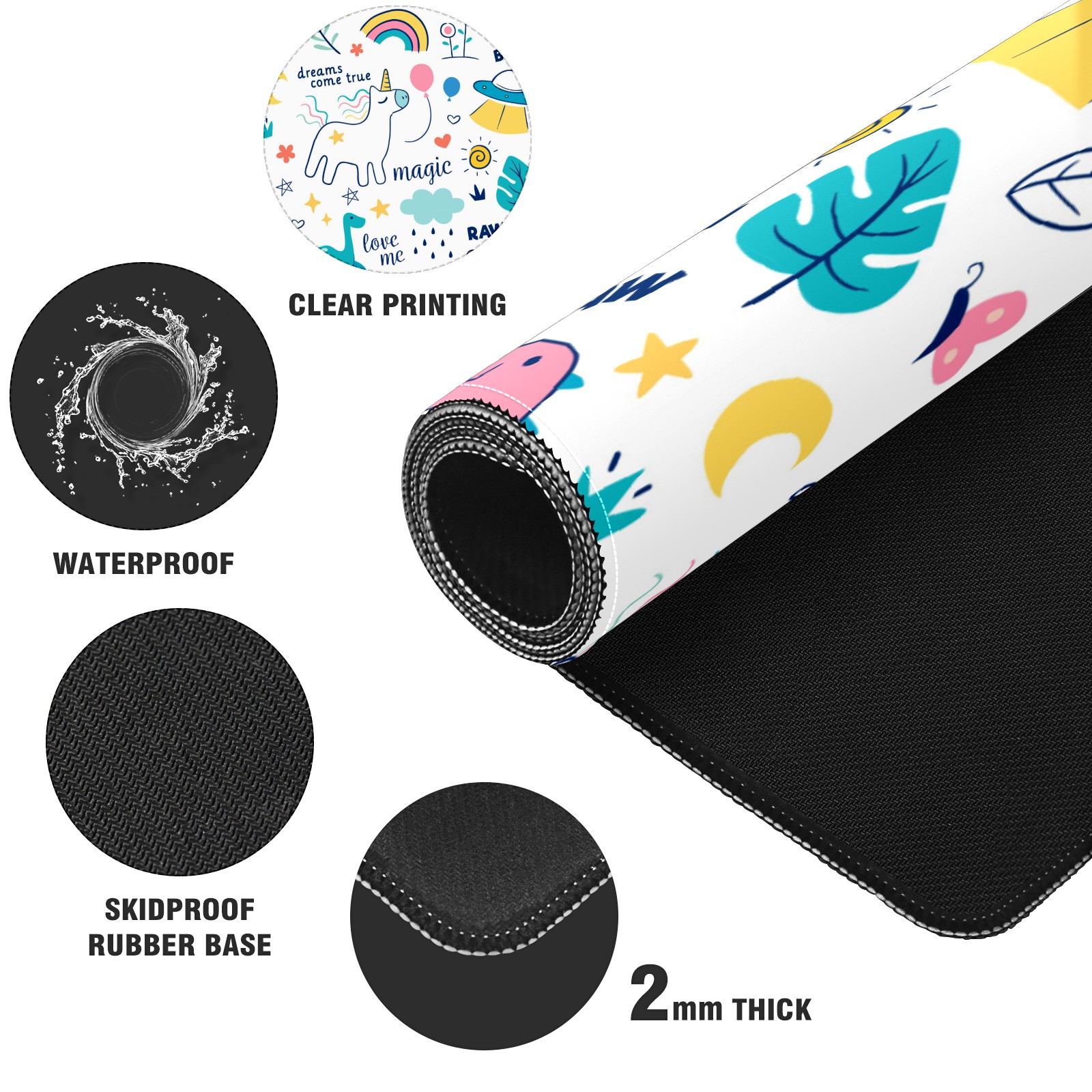 Large Mouse Pad for Desktop, Cute Desk Mat Pad Protector for Work & Gaming, Aesthetic Pretty Anti-Slip Laptop Blotter Cover for Office School Home Supplies, Animals Words Seamless , 35.4inx15.7in