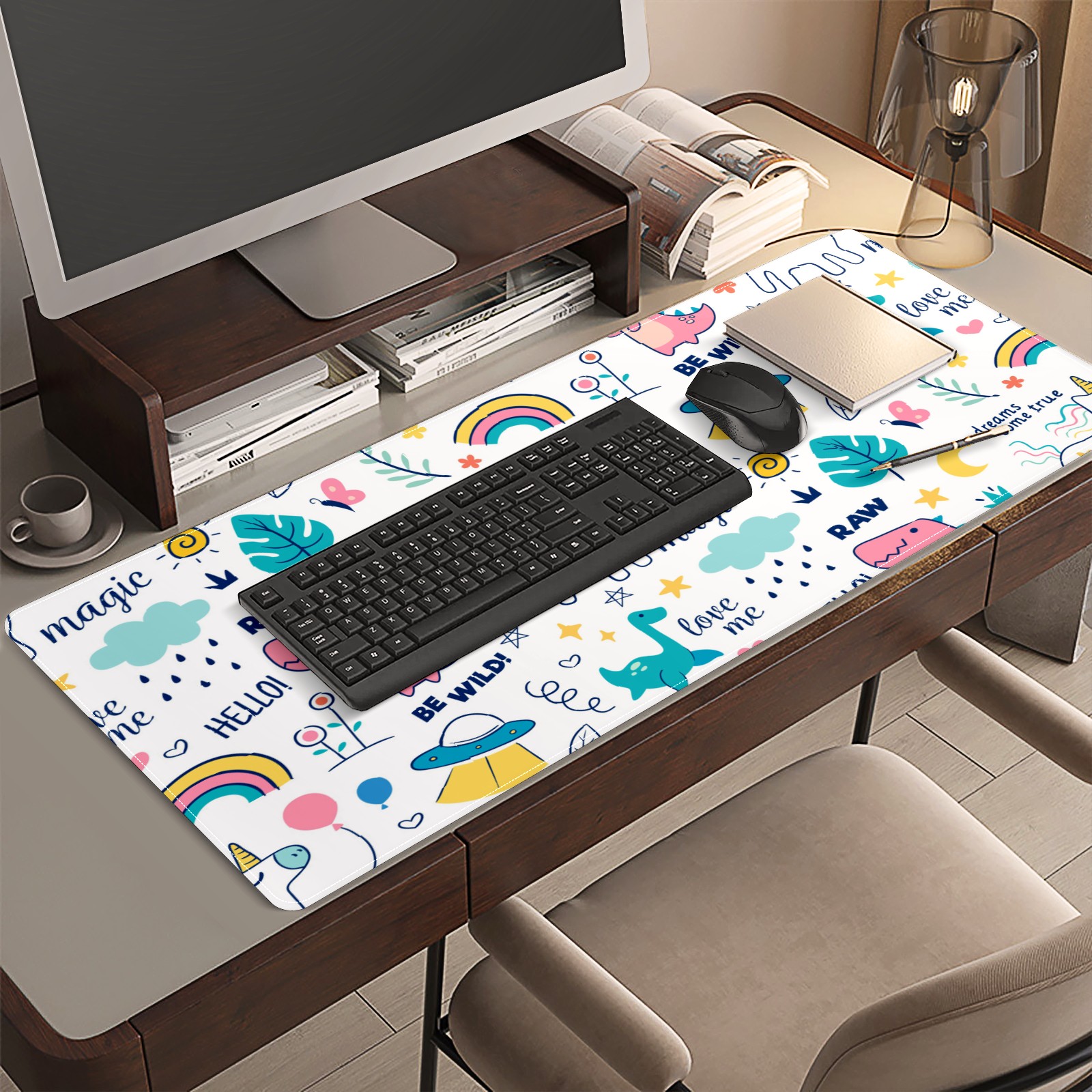 <p>This 35.4” × 15.7” extended desk mat offers ample space for your keyboard, mouse and essentials, working as a smooth work/writing pad while protecting your desktop from scratches.</p><p>With stylish artistic patterns, it adds personality to your home office, study or gaming setup. The high-density woven surface ensures precise, smooth mouse tracking for work and gaming.</p><p>Featuring an anti-slip natural rubber base for firm grip and stability, the mat is soft, elastic and odorless. Reinforced stitched edges prevent fraying and curling for long-lasting durability.</p>