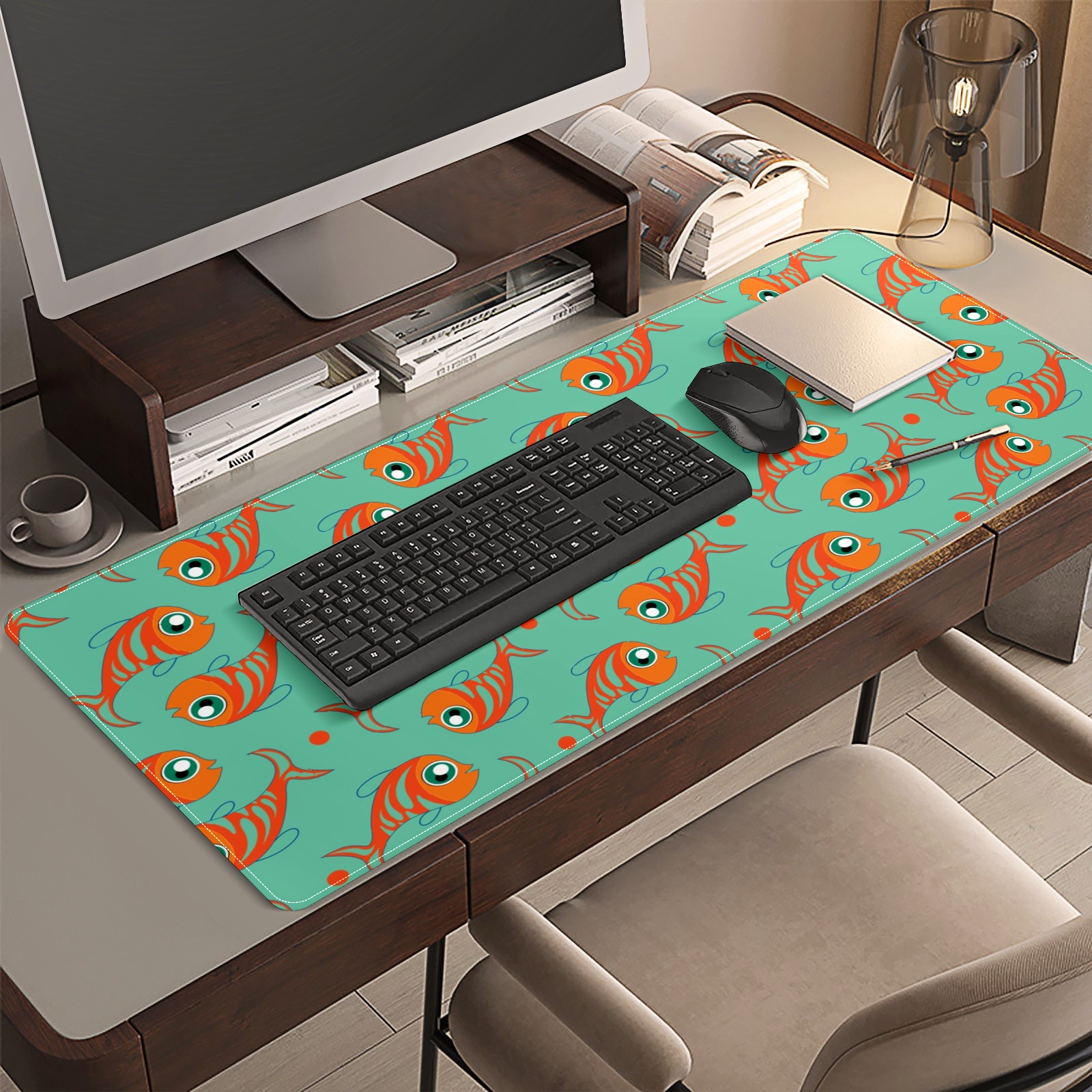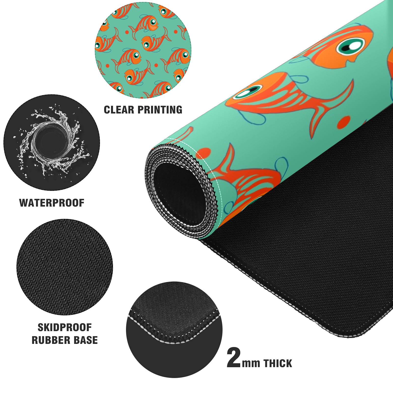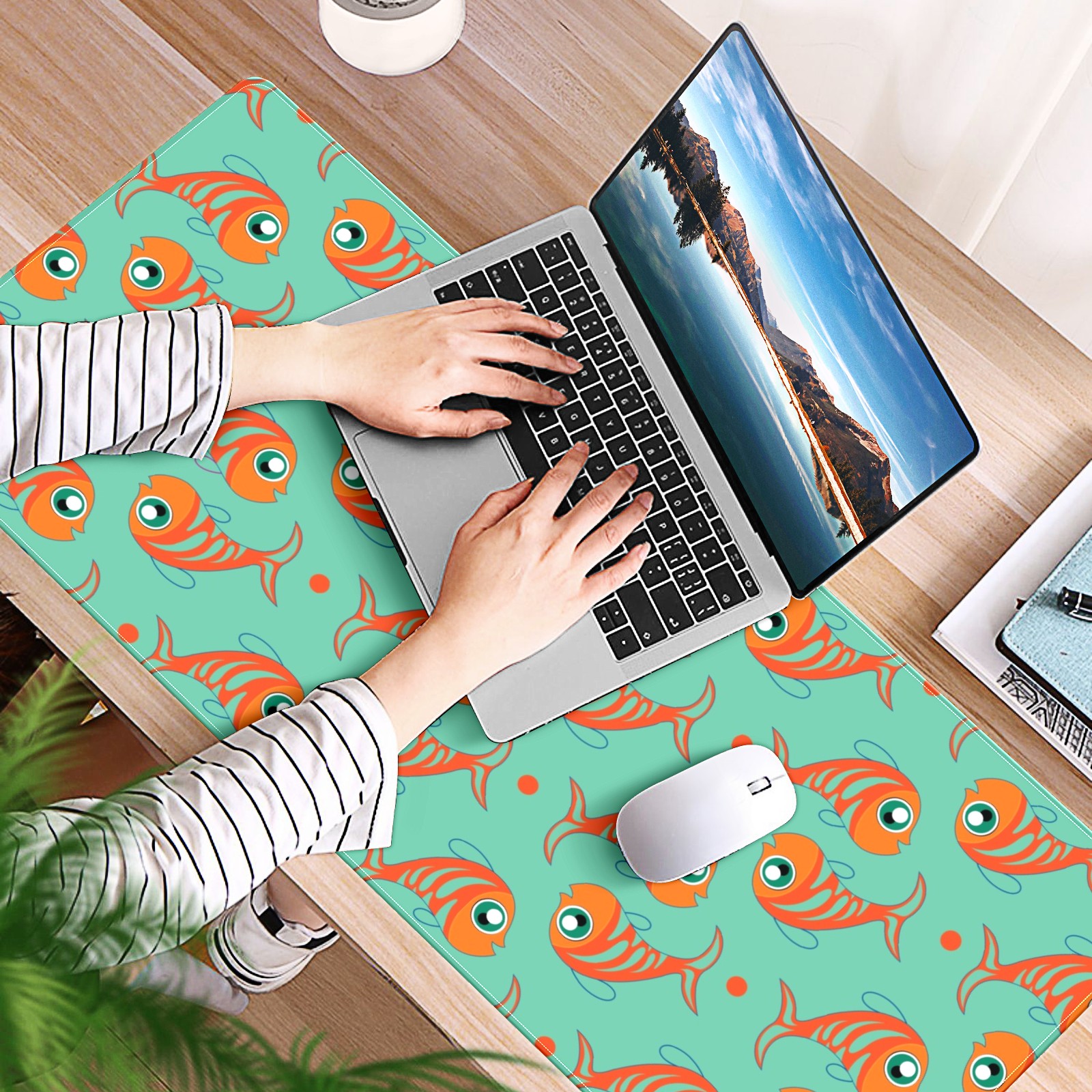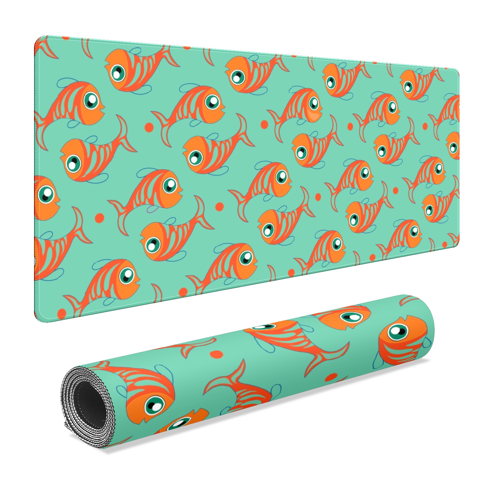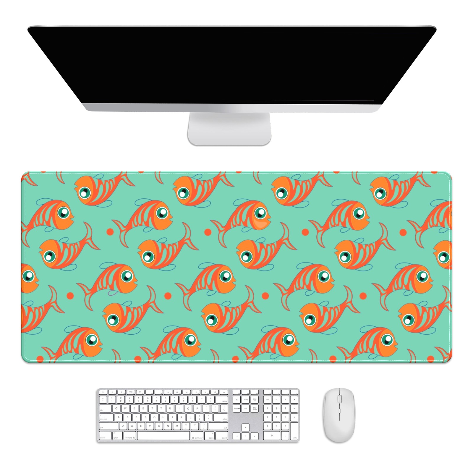 Large Mouse Pad for Desktop, Cute Desk Mat Pad Protector for Work & Gaming, Aesthetic Pretty Anti-Slip Laptop Blotter Cover for Office School Home Supplies, Seamless Fish Sea , 35.4inx15.7in