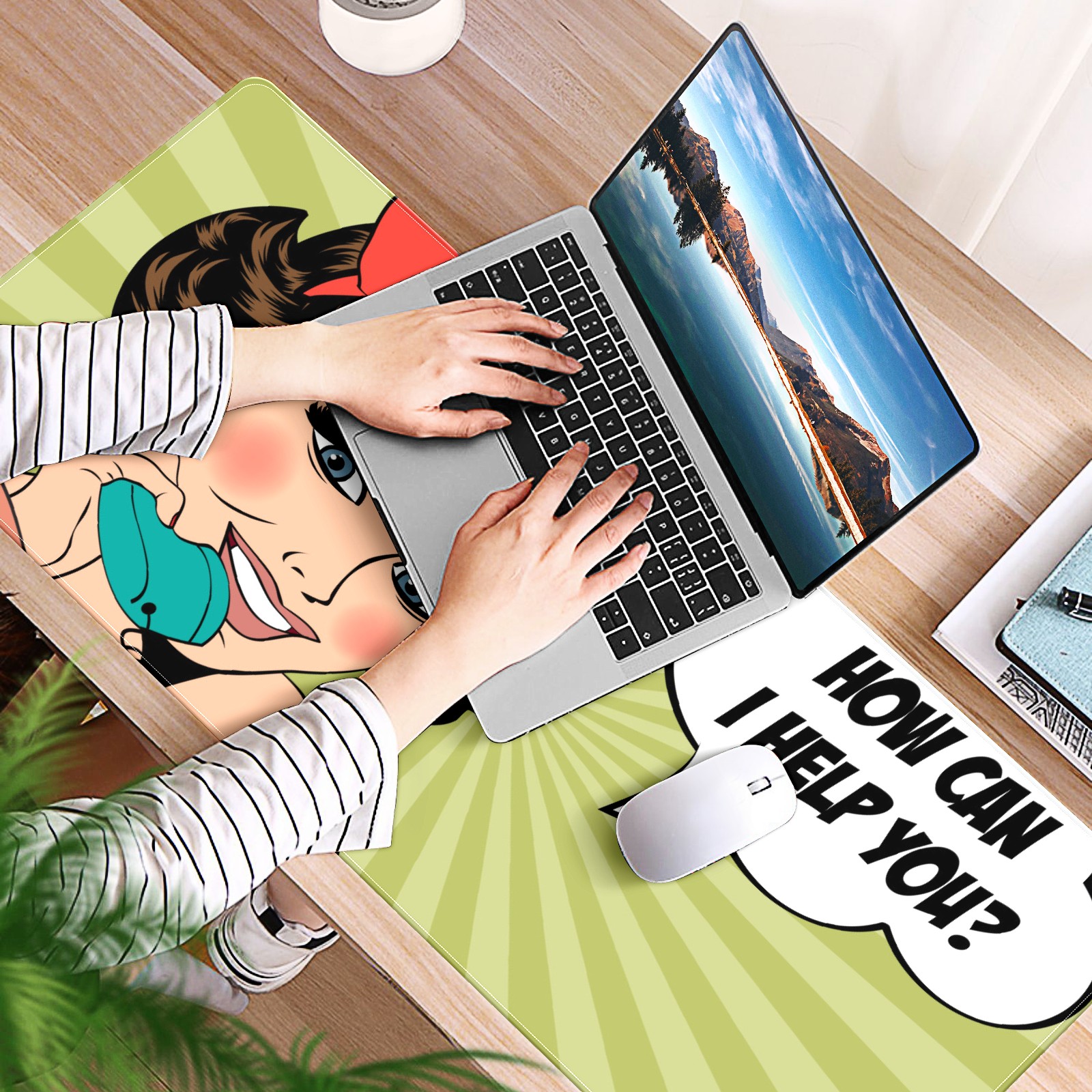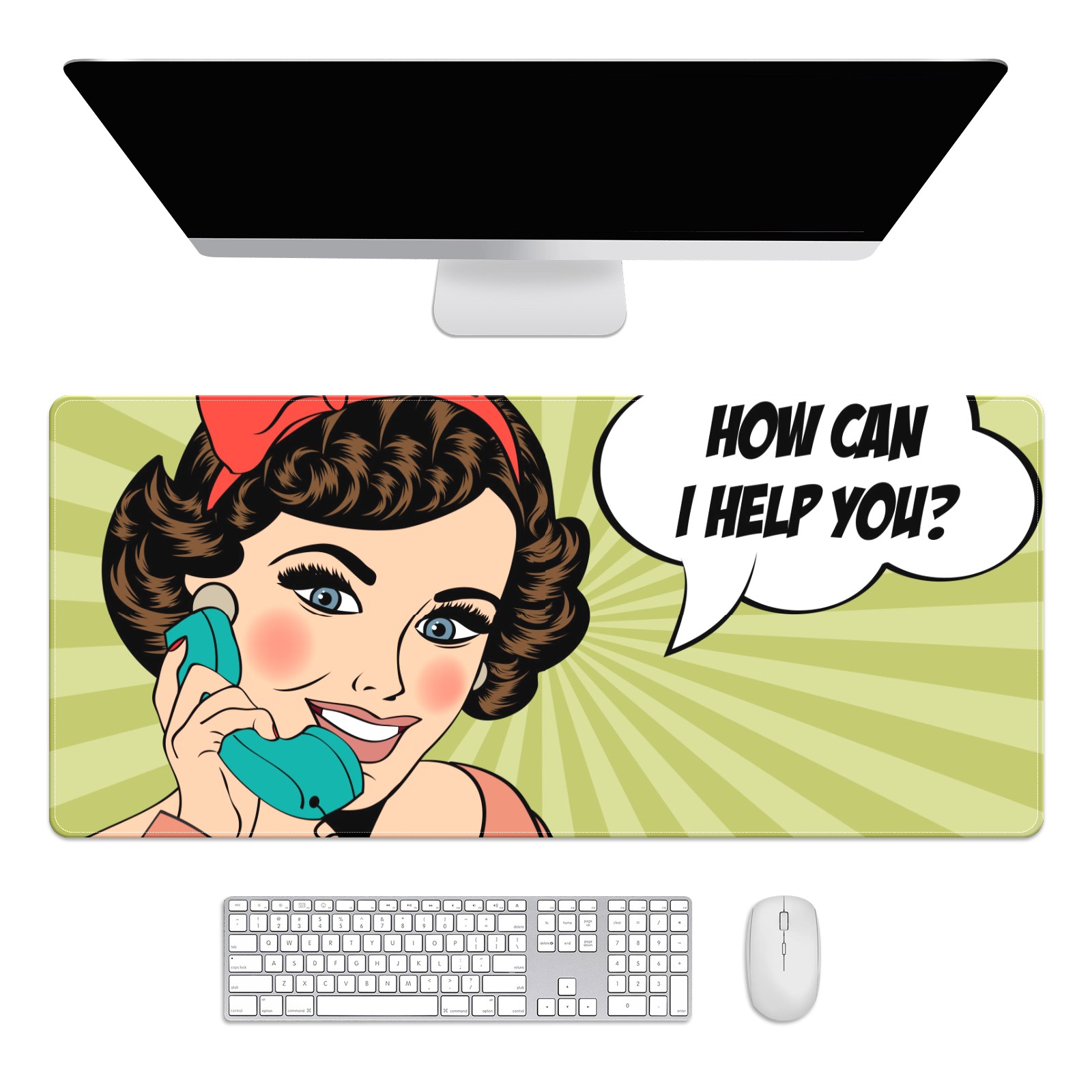 Large Mouse Pad for Desktop, Cute Desk Mat Pad Protector for Work & Gaming, Aesthetic Pretty Anti-Slip Laptop Blotter Cover for Office School Home Supplies, Smile Woman , 35.4inx15.7in