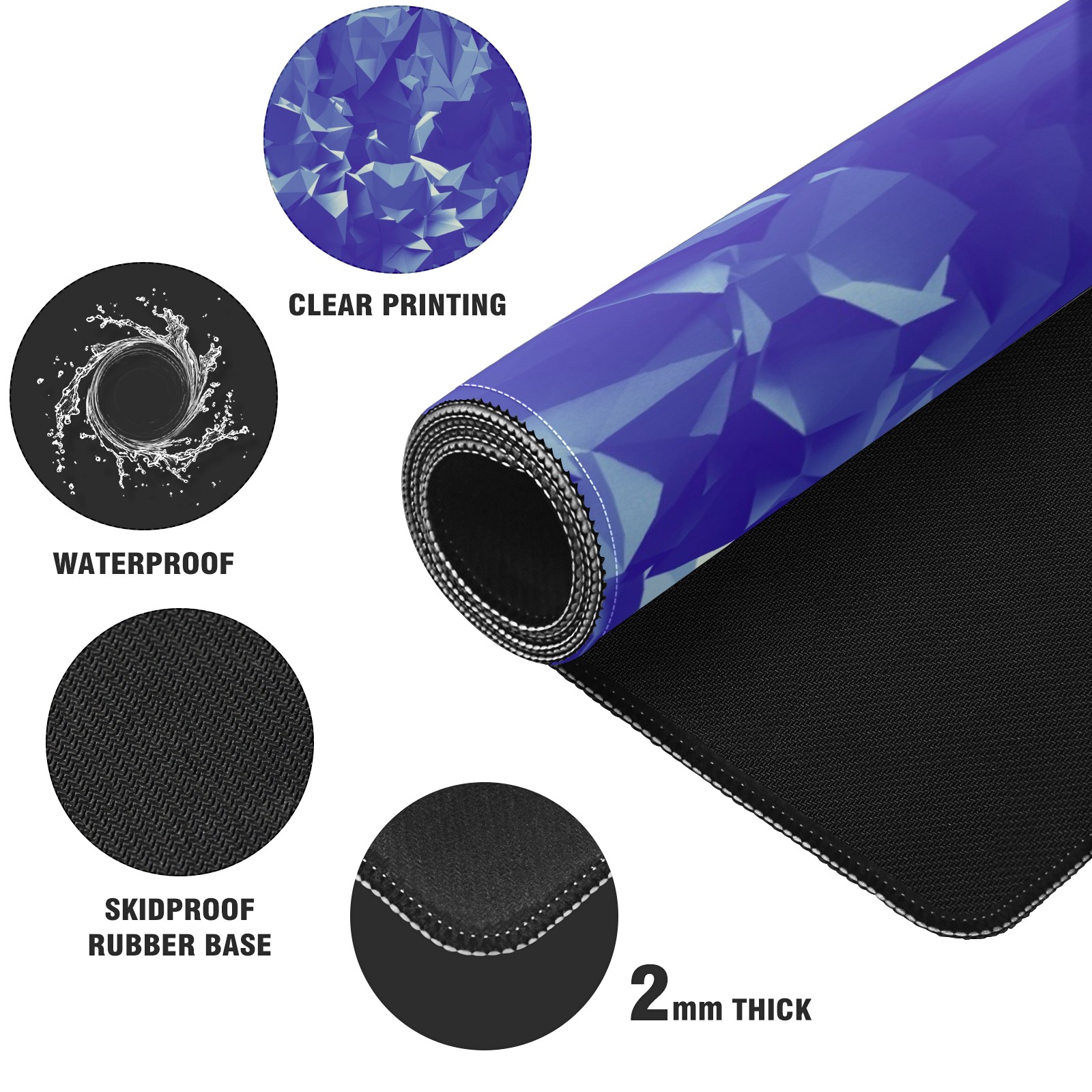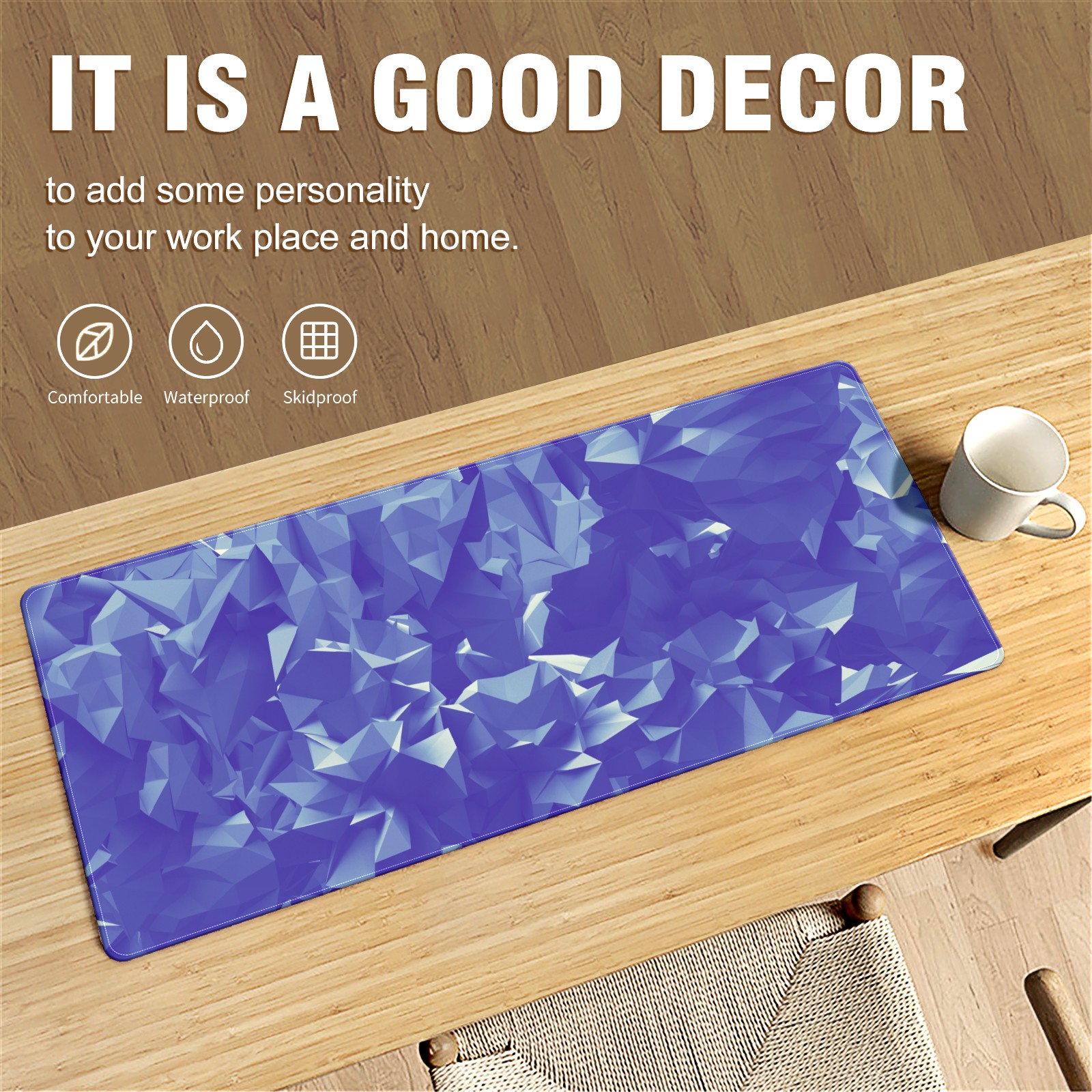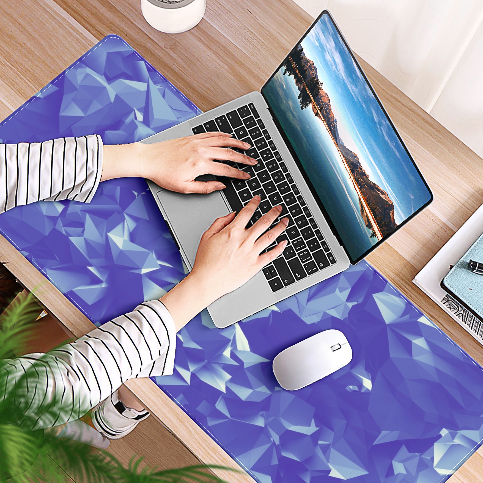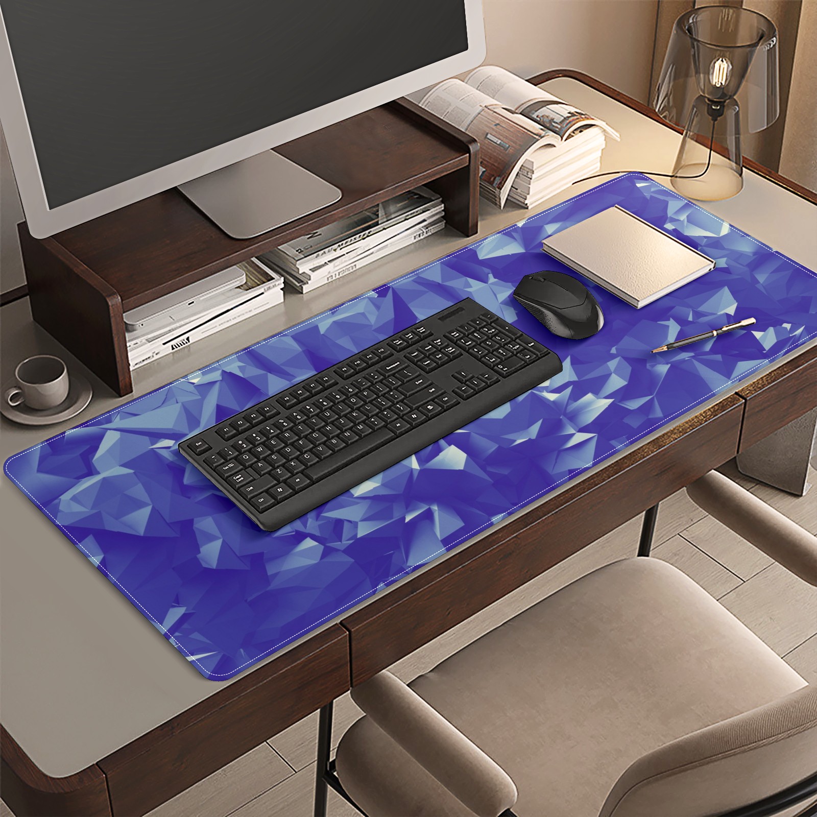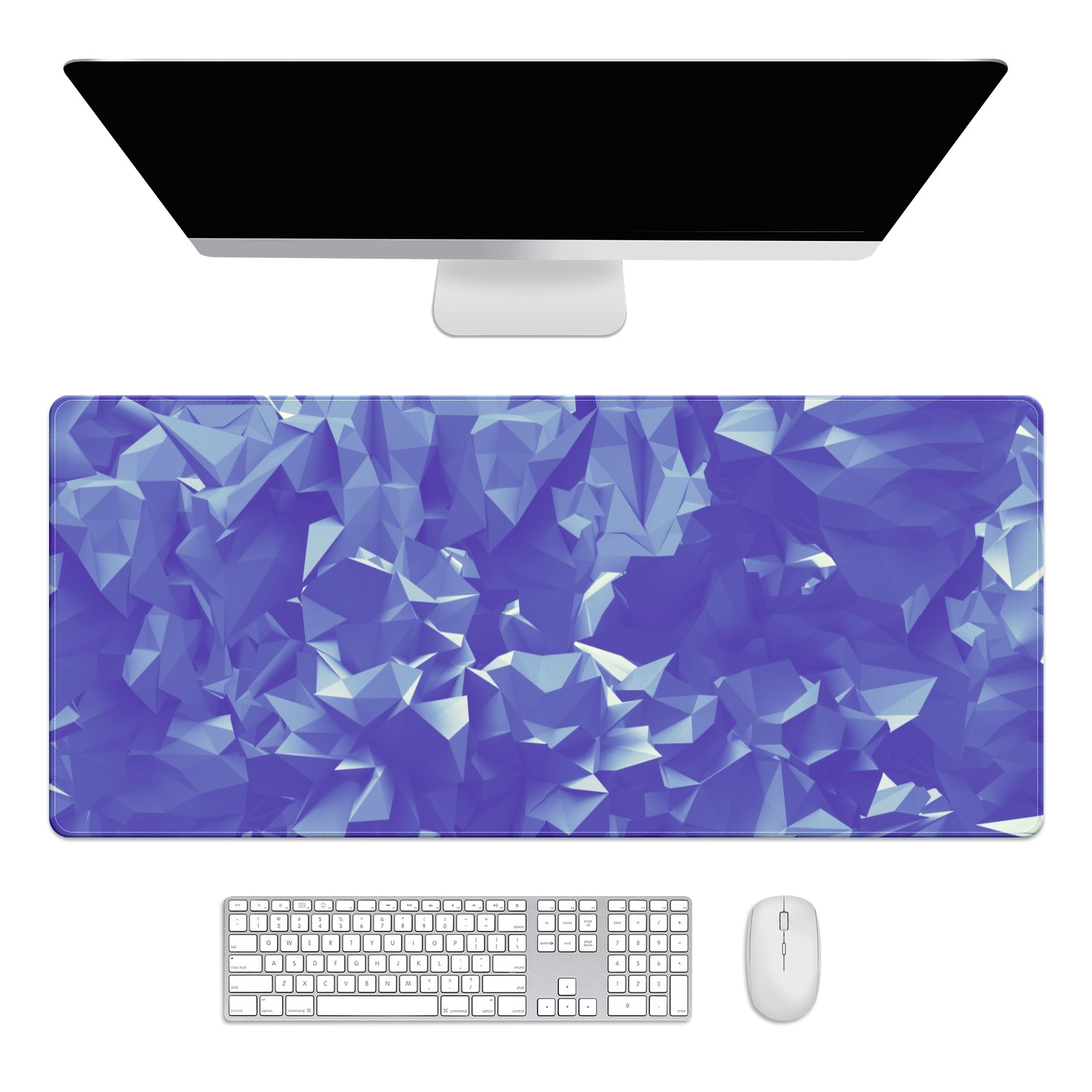 Large Mouse Pad for Desktop, Cute Desk Mat Pad Protector for Work & Gaming, Aesthetic Pretty Anti-Slip Laptop Blotter Cover for Office School Home Supplies, Polygon Blue , 35.4inx15.7in