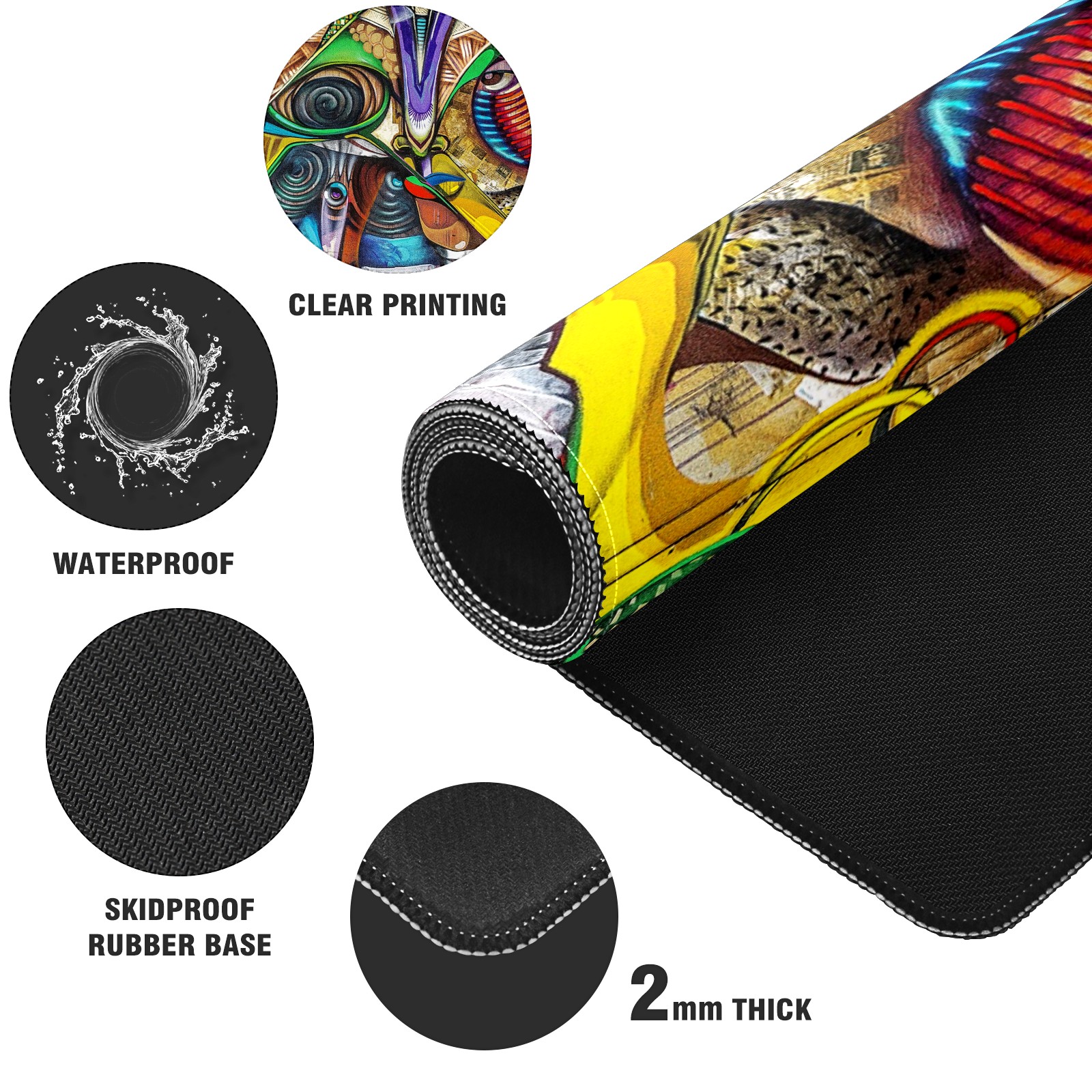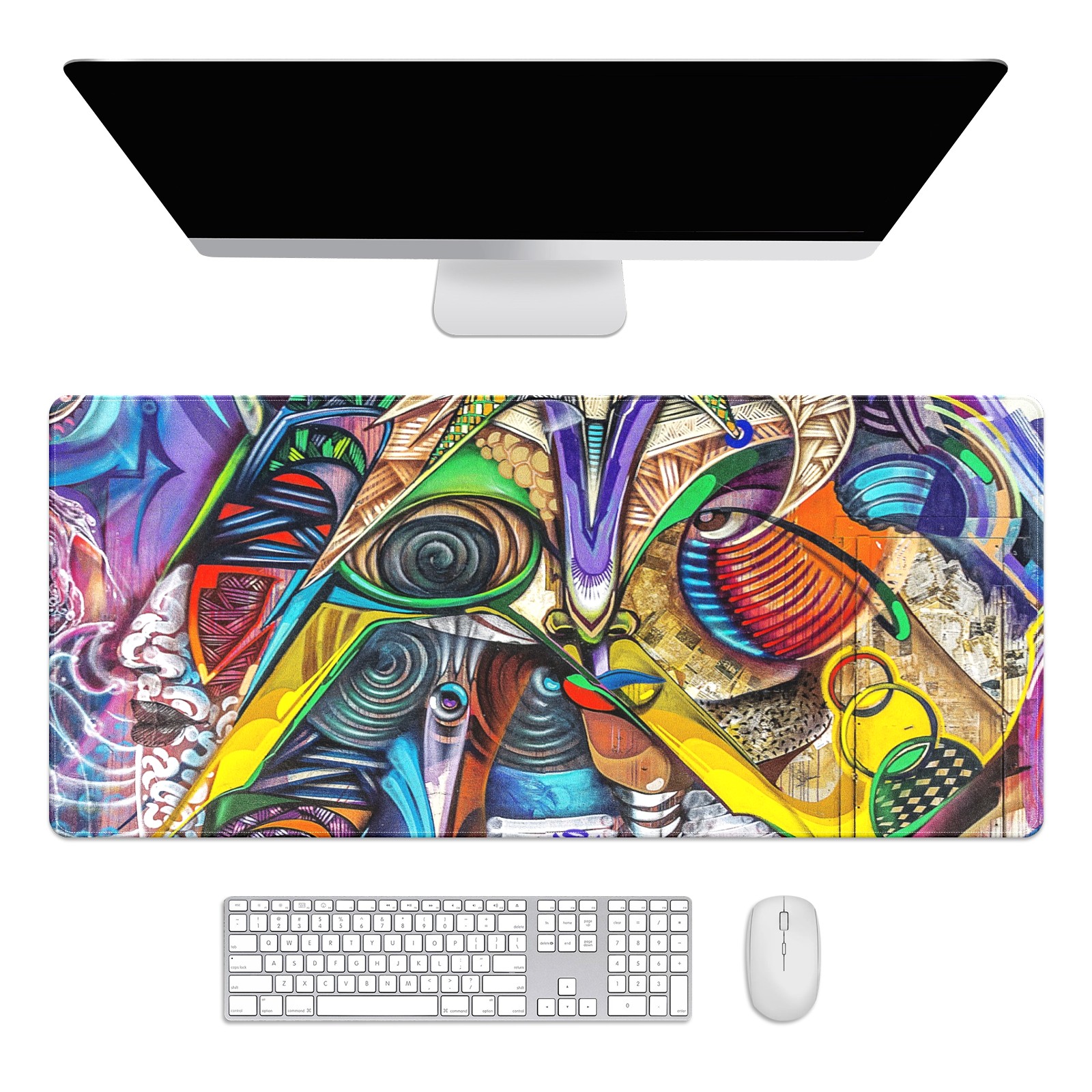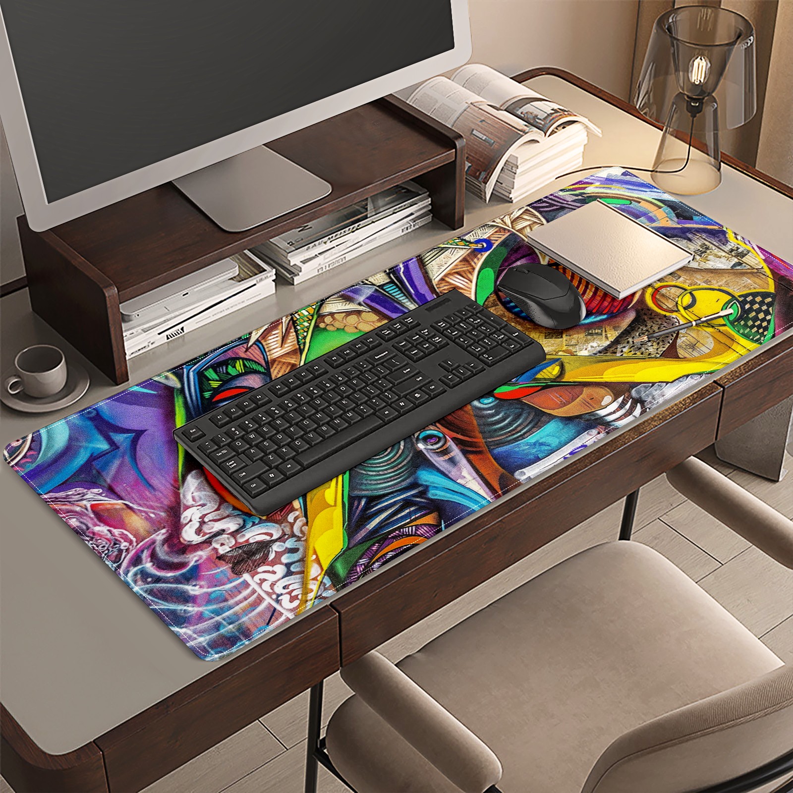 Large Mouse Pad for Desktop, Cute Desk Mat Pad Protector for Work & Gaming, Aesthetic Pretty Anti-Slip Laptop Blotter Cover for Office School Home Supplies, Graffiti Colorful , 35.4inx15.7in