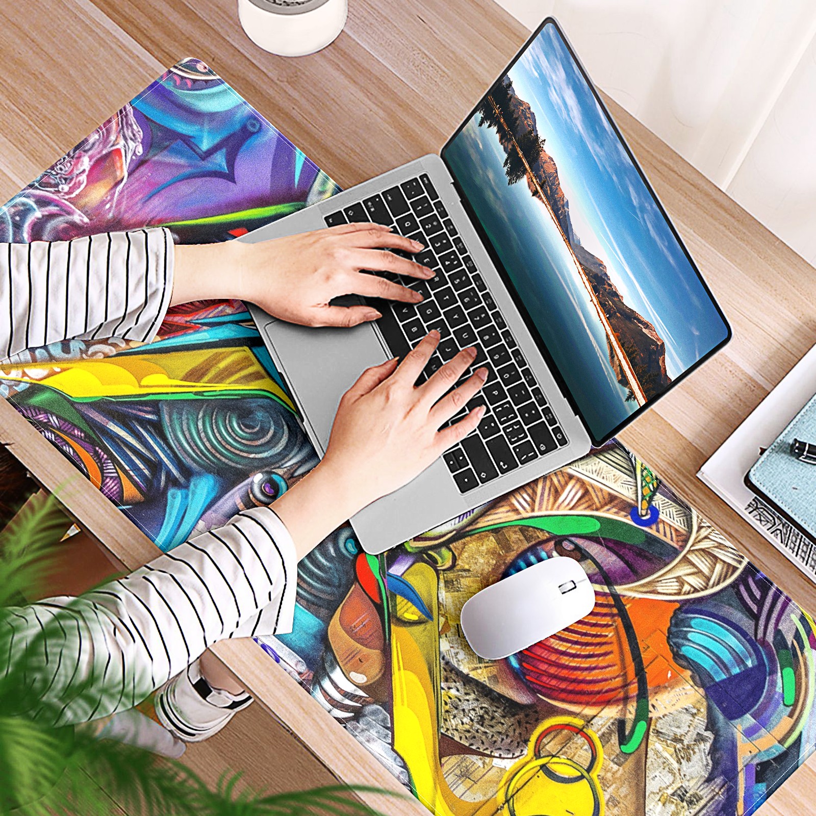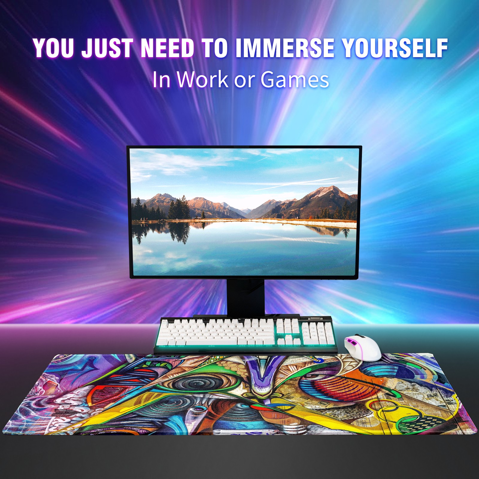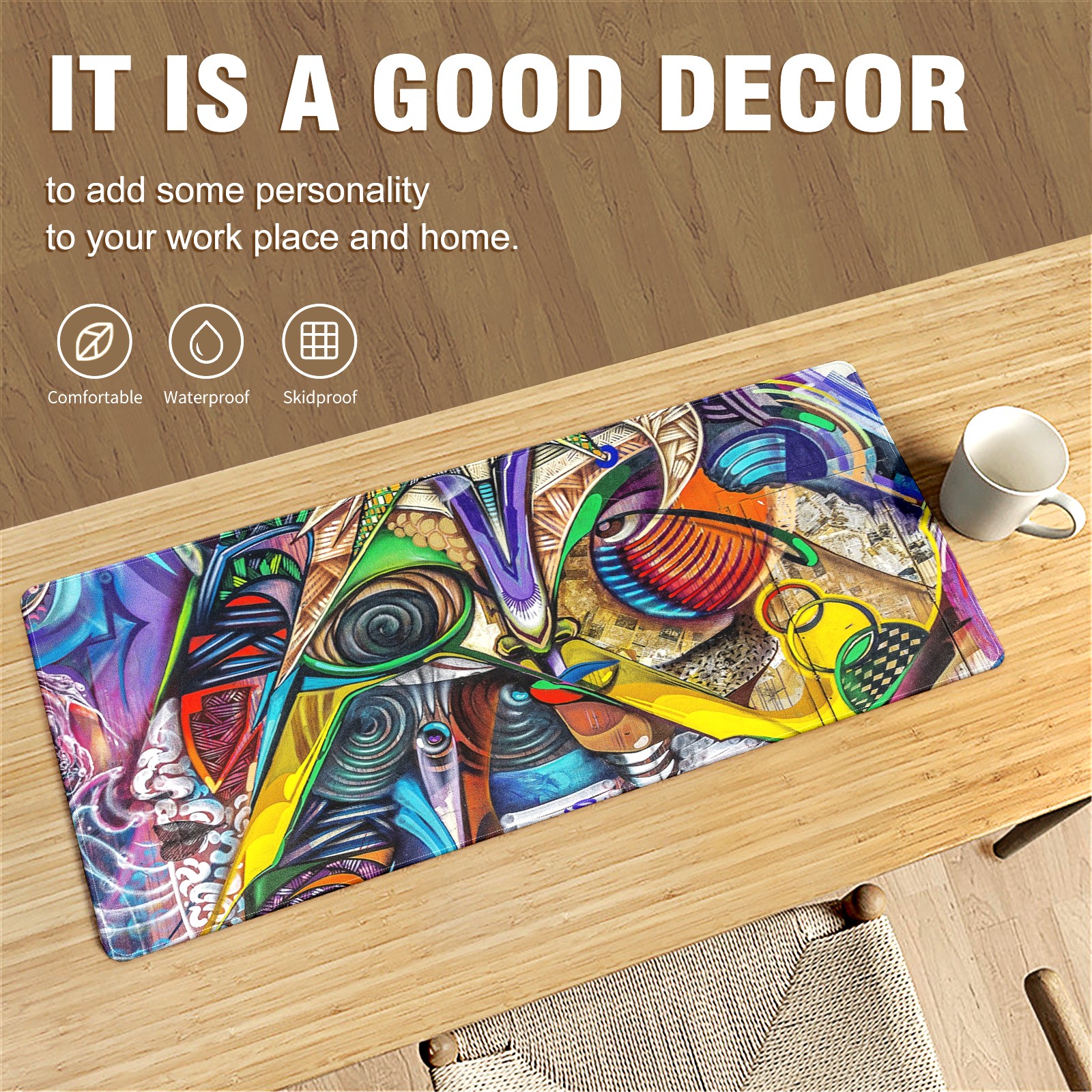 Large Mouse Pad for Desktop, Cute Desk Mat Pad Protector for Work & Gaming, Aesthetic Pretty Anti-Slip Laptop Blotter Cover for Office School Home Supplies, Graffiti Colorful , 35.4inx15.7in