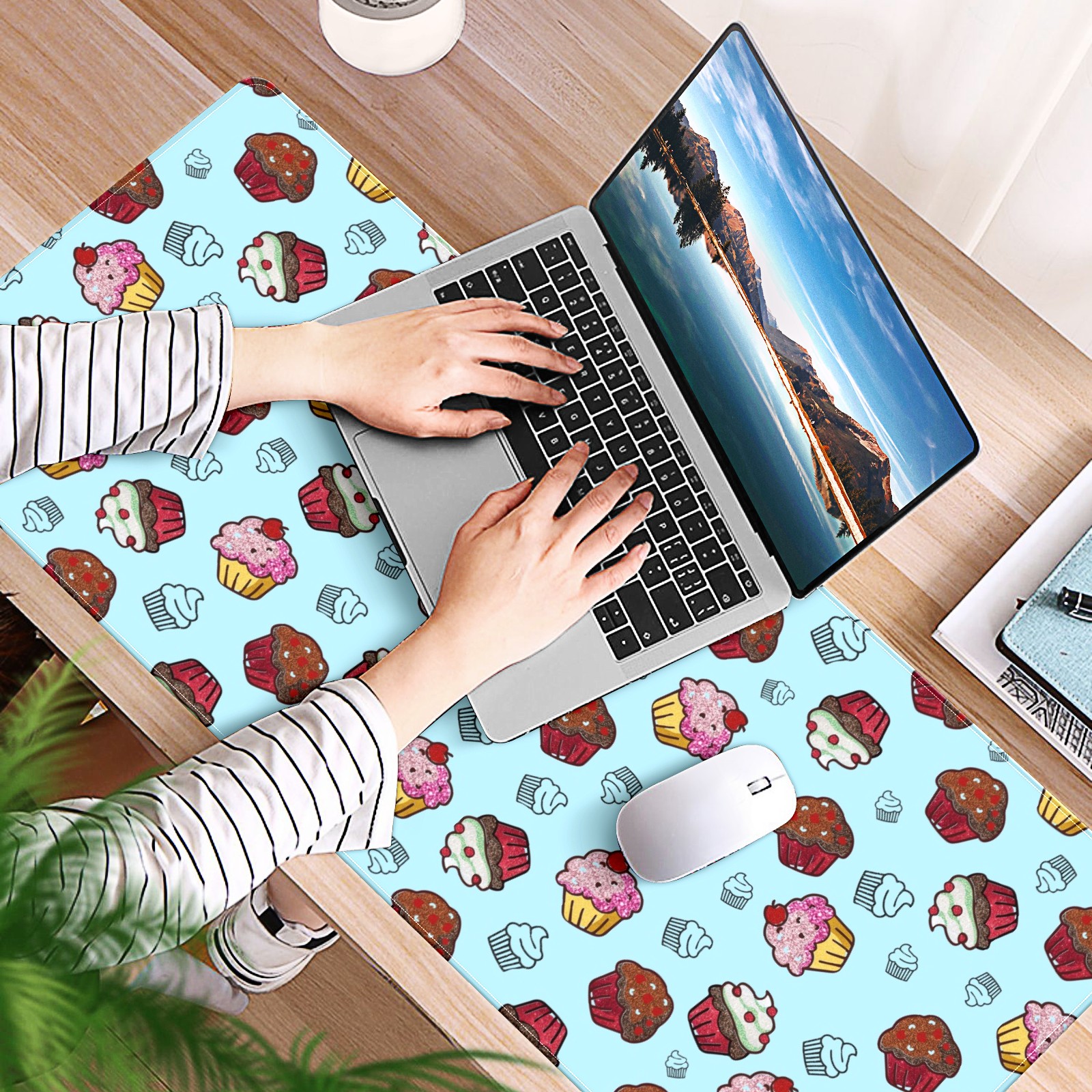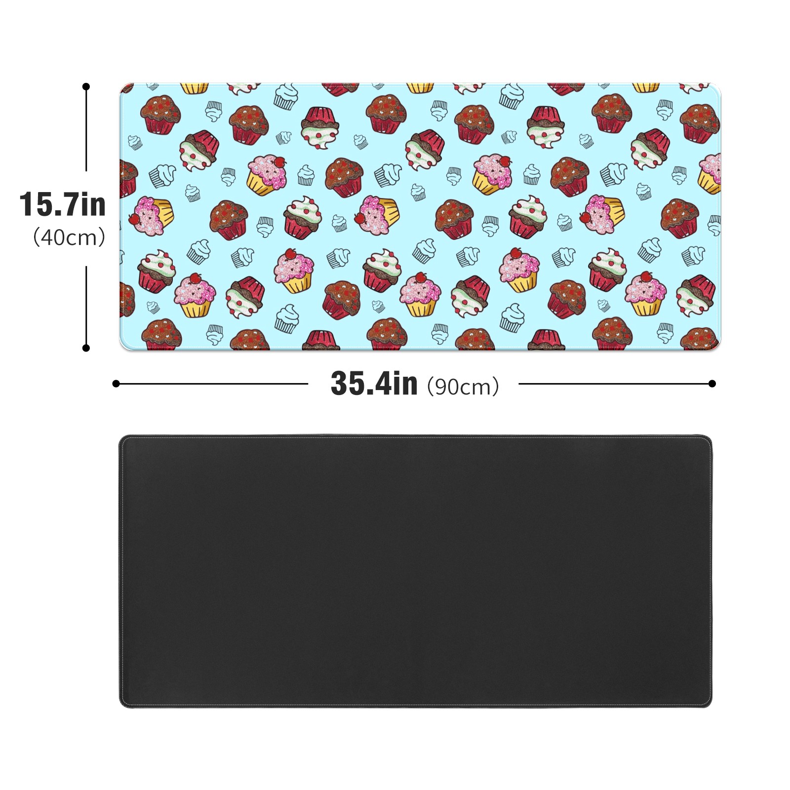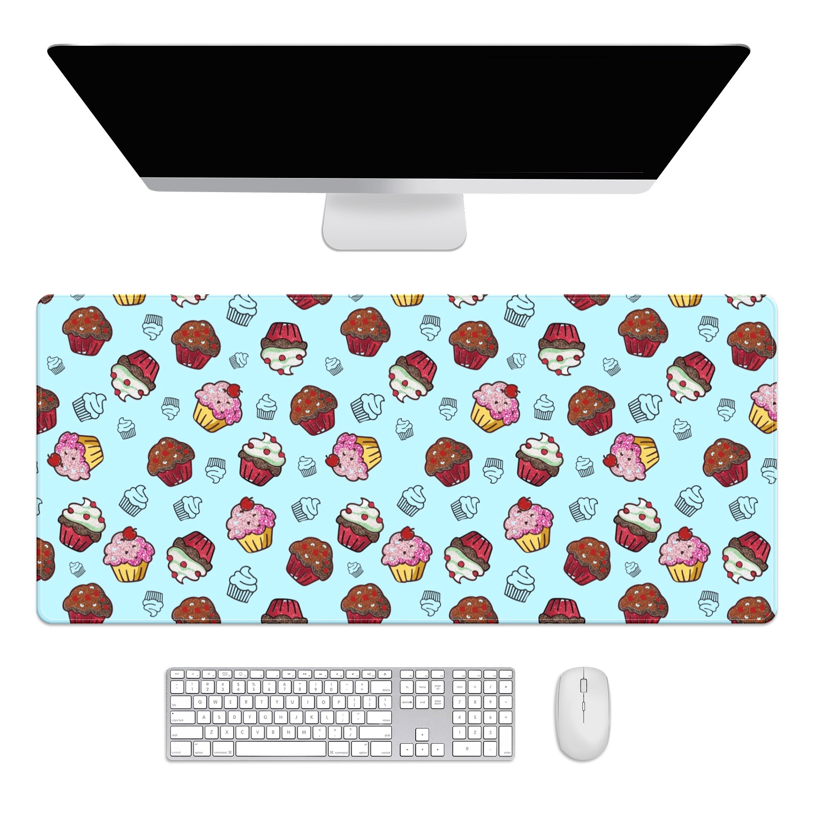 Large Mouse Pad for Desktop, Cute Desk Mat Pad Protector for Work & Gaming, Aesthetic Pretty Anti-Slip Laptop Blotter Cover for Office School Home Supplies, Cupcakes Sweet Birthday , 35.4inx15.7in