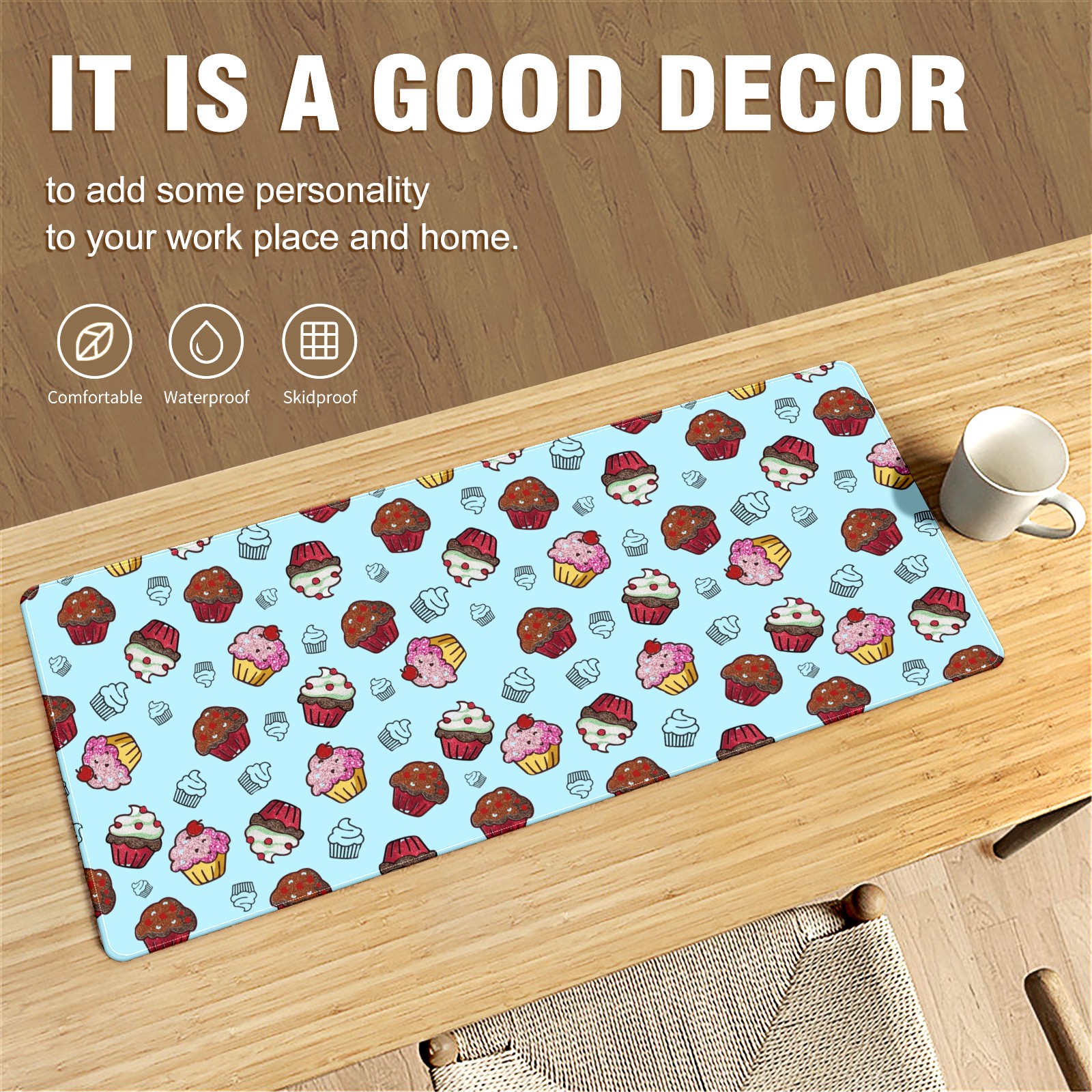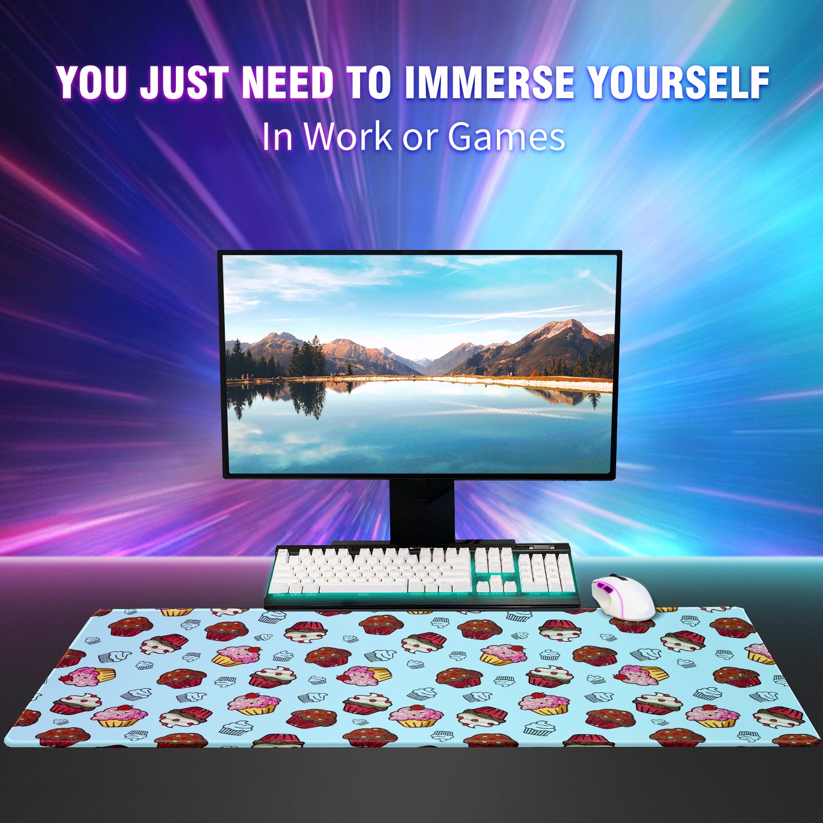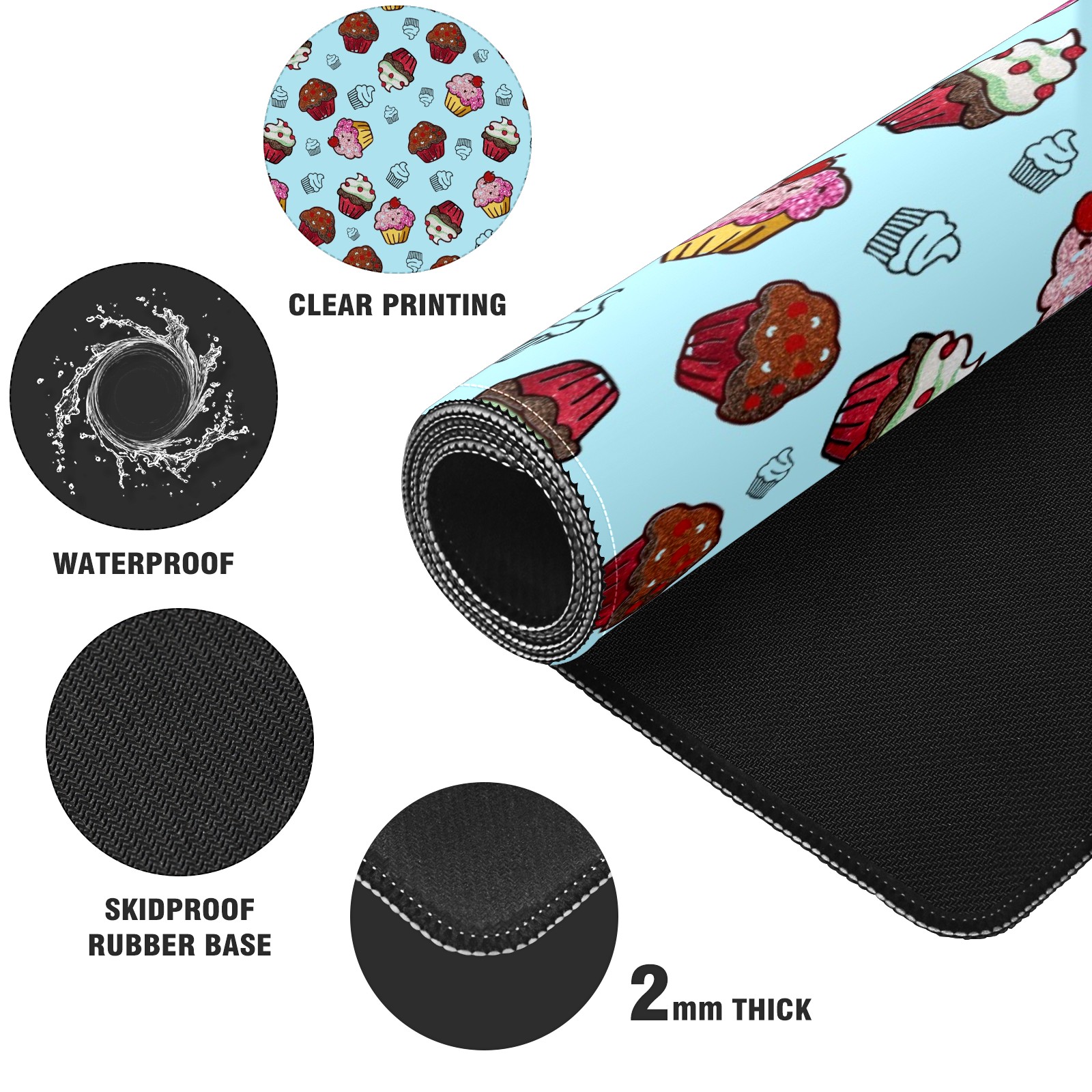 Large Mouse Pad for Desktop, Cute Desk Mat Pad Protector for Work & Gaming, Aesthetic Pretty Anti-Slip Laptop Blotter Cover for Office School Home Supplies, Cupcakes Sweet Birthday , 35.4inx15.7in