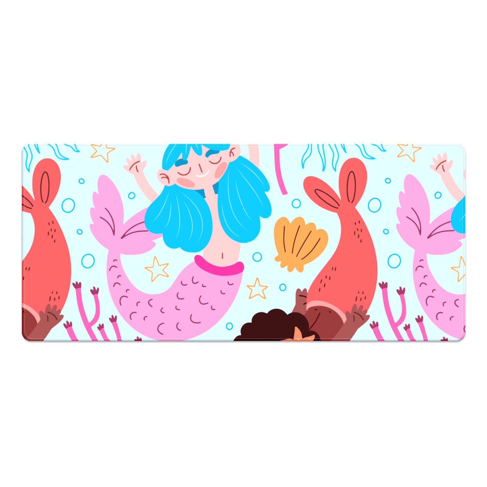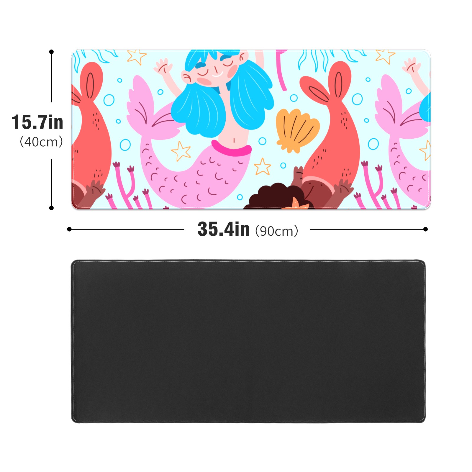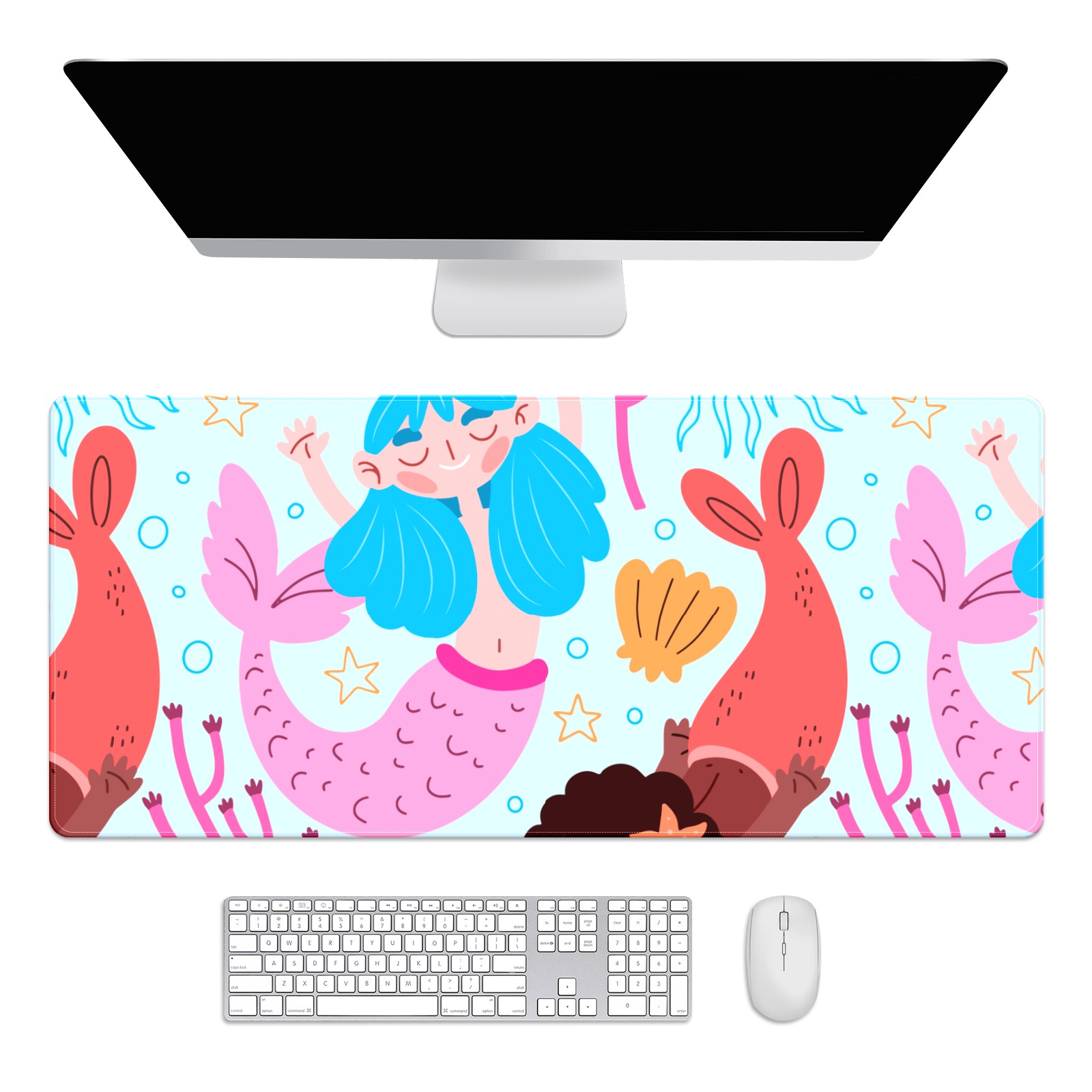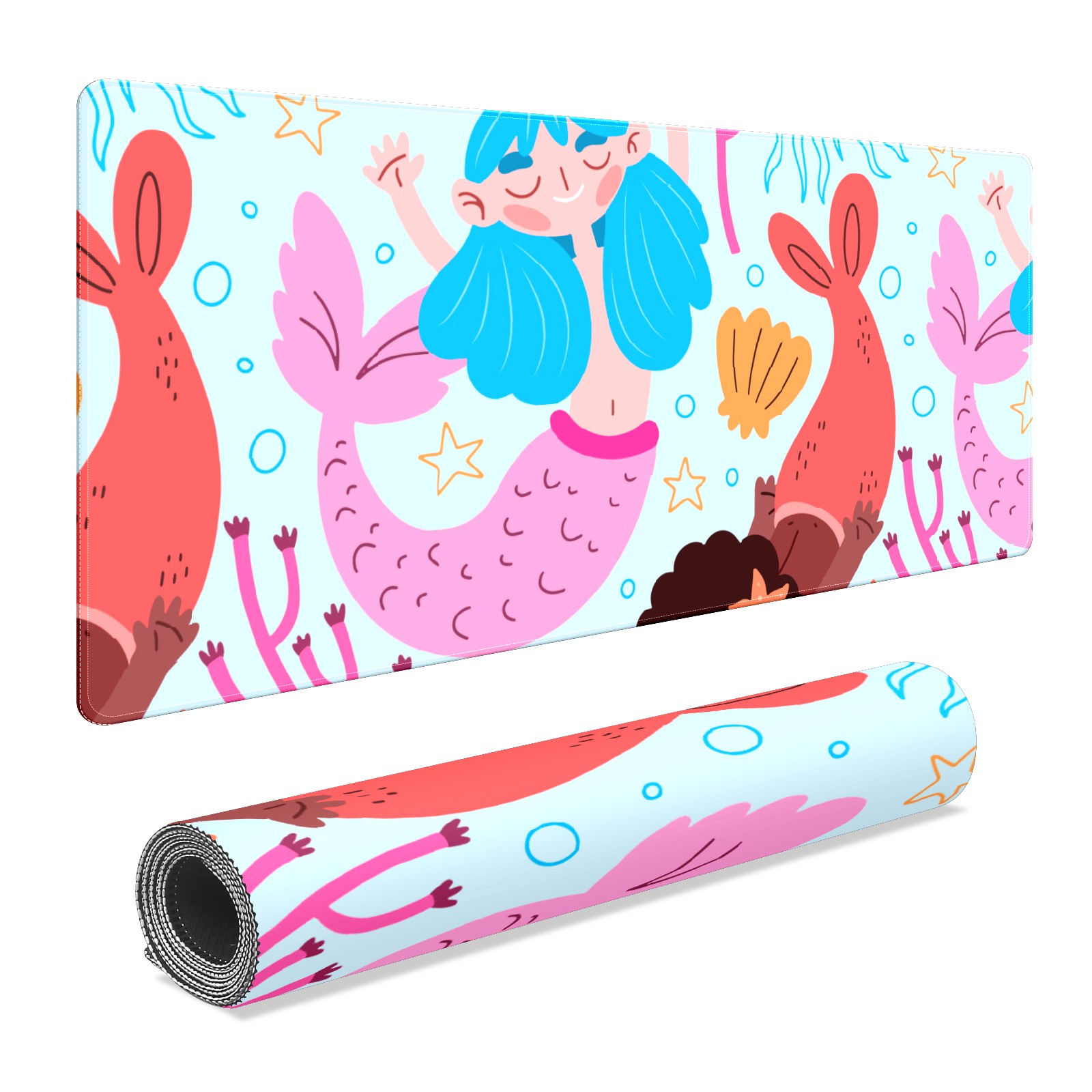 Large Mouse Pad for Desktop, Cute Desk Mat Pad Protector for Work & Gaming, Aesthetic Pretty Anti-Slip Laptop Blotter Cover for Office School Home Supplies, Coral Mermaid , 35.4inx15.7in