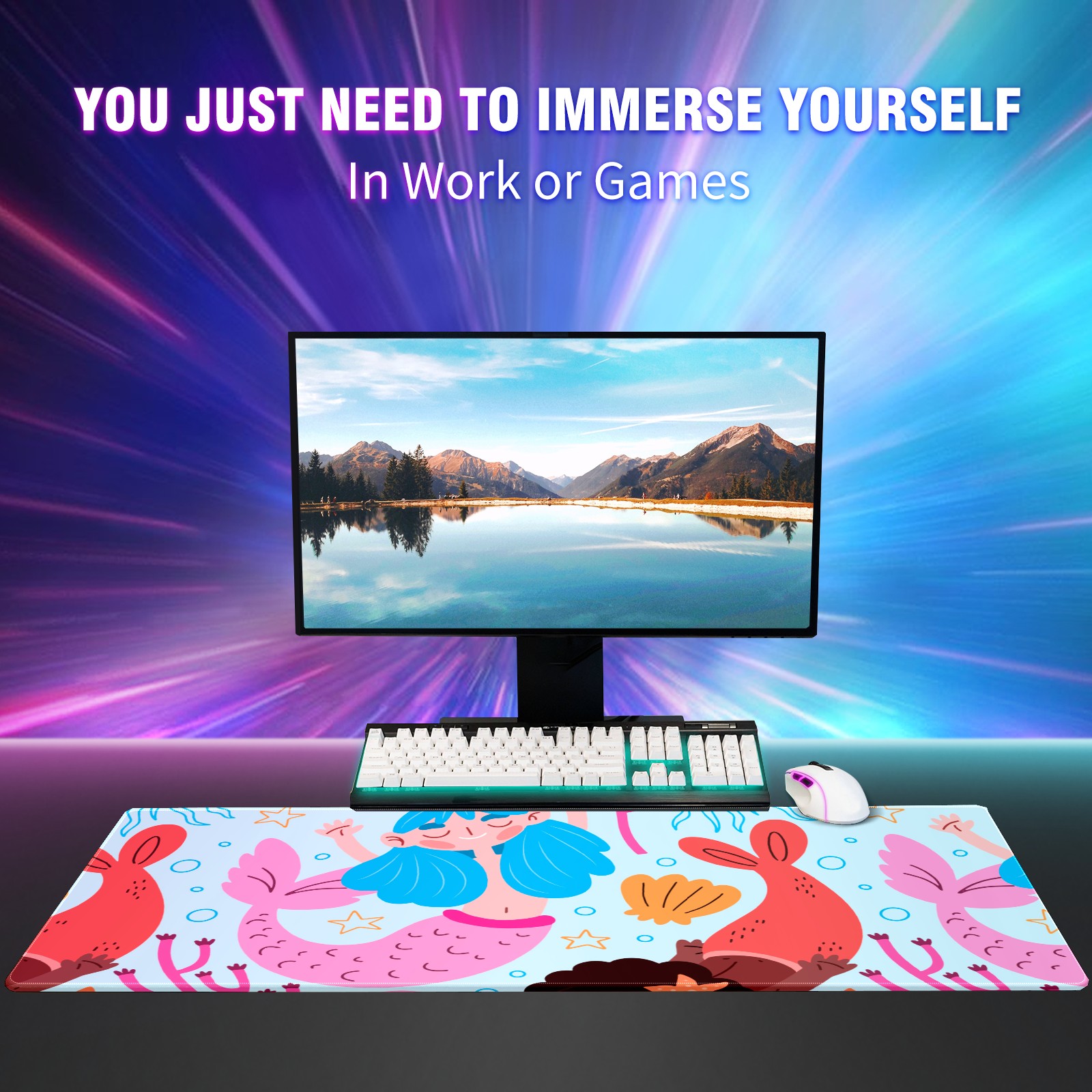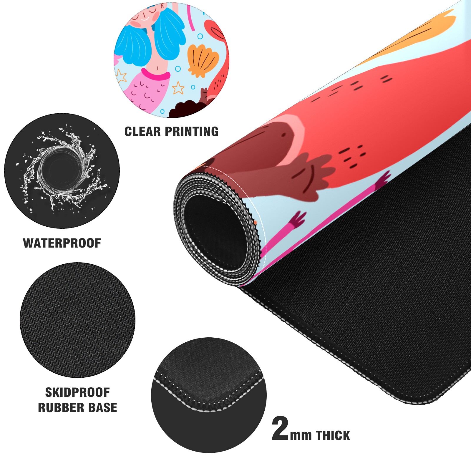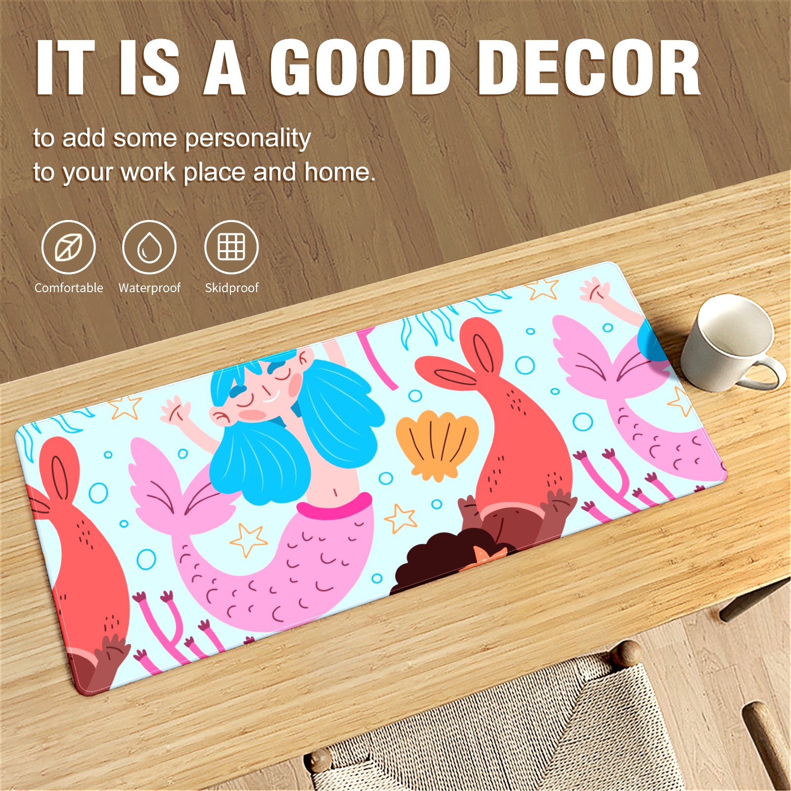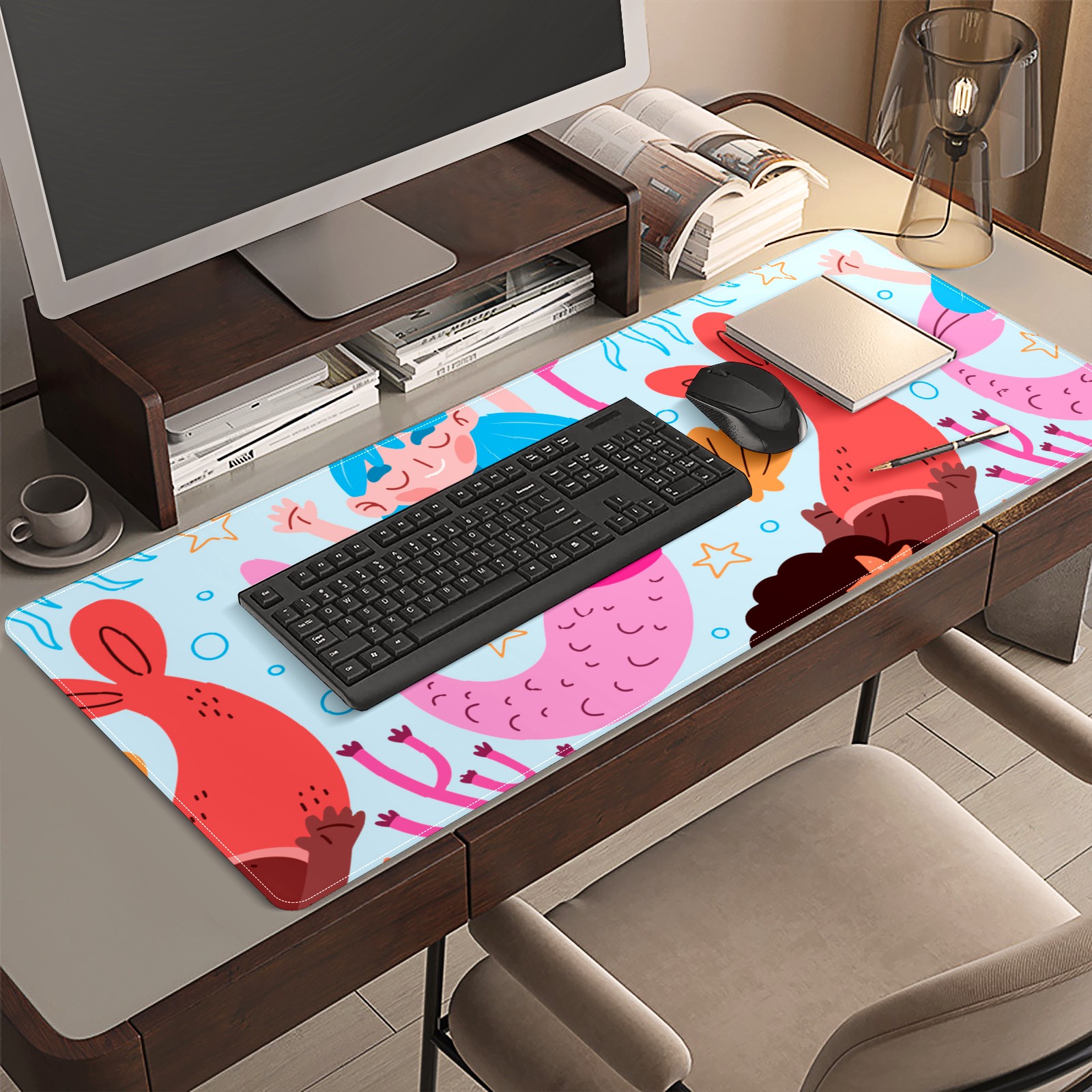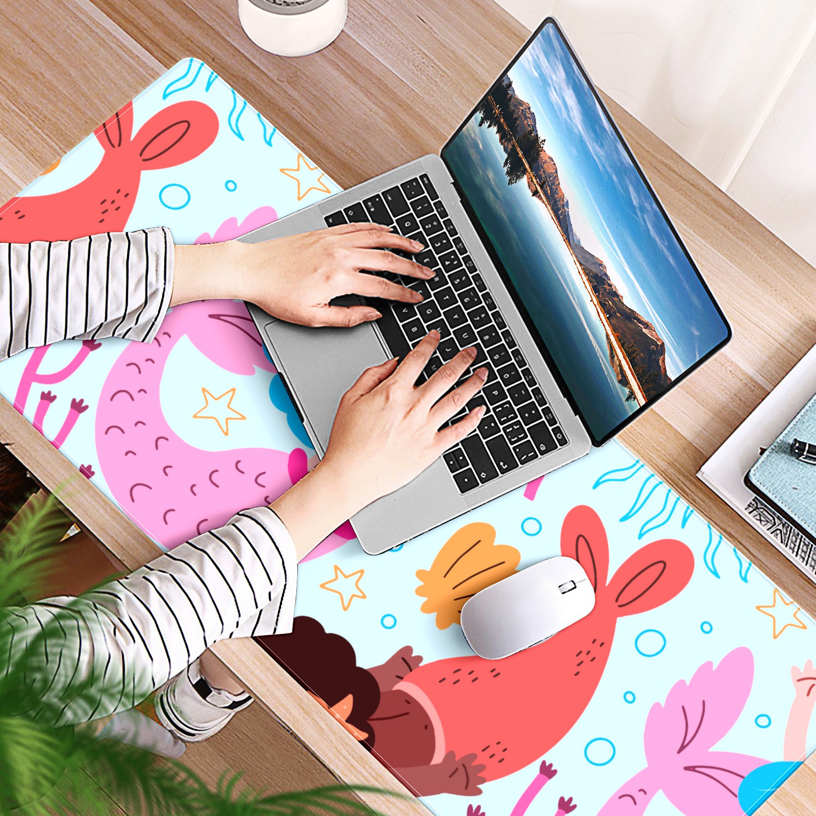 Large Mouse Pad for Desktop, Cute Desk Mat Pad Protector for Work & Gaming, Aesthetic Pretty Anti-Slip Laptop Blotter Cover for Office School Home Supplies, Coral Mermaid , 35.4inx15.7in