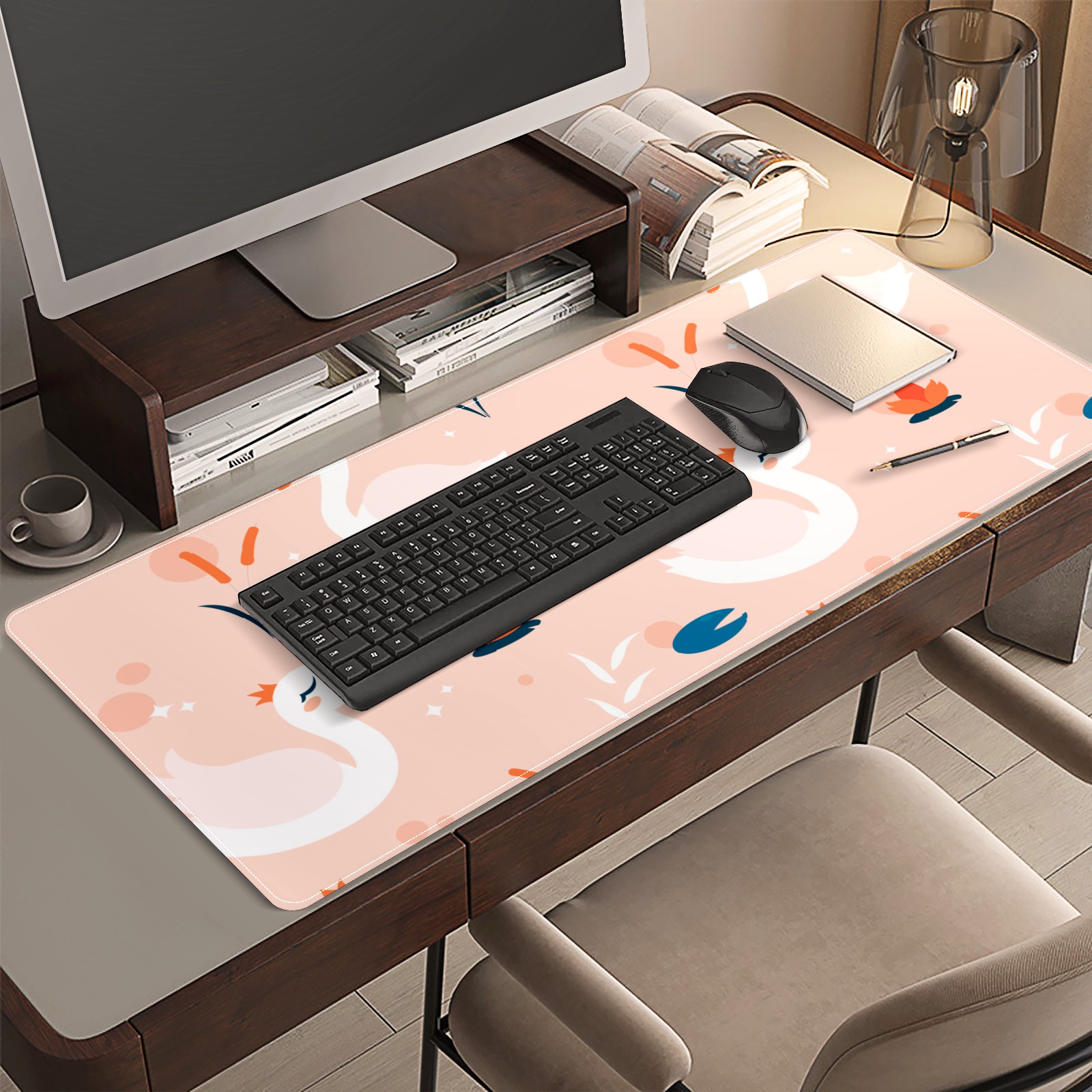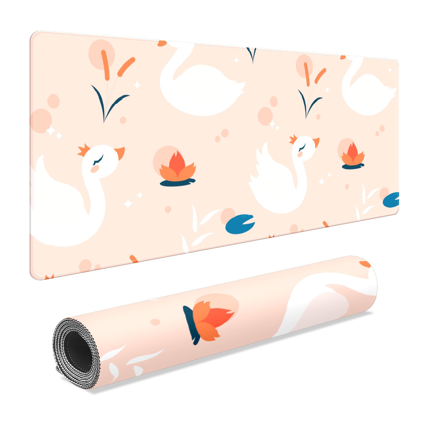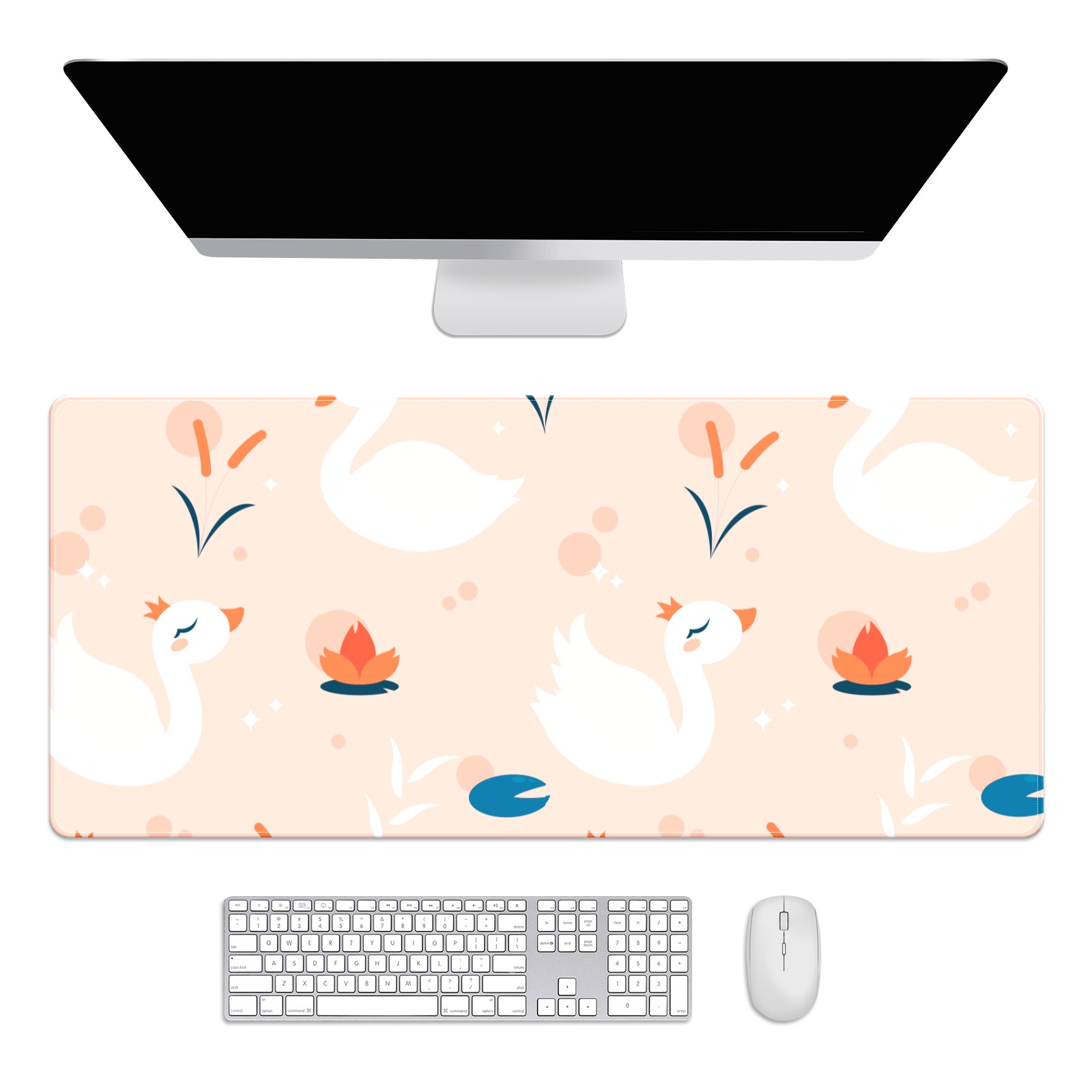 Large Mouse Pad for Desktop, Cute Desk Mat Pad Protector for Work & Gaming, Aesthetic Pretty Anti-Slip Laptop Blotter Cover for Office School Home Supplies, White Swan , 35.4inx15.7in