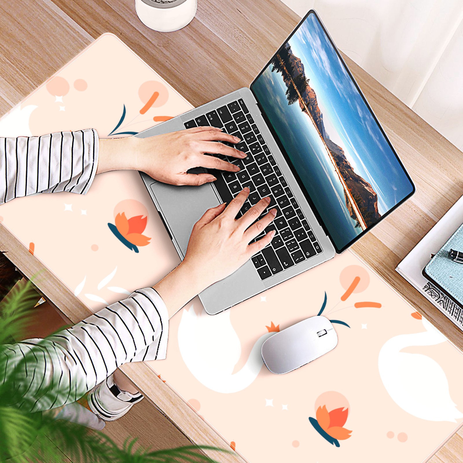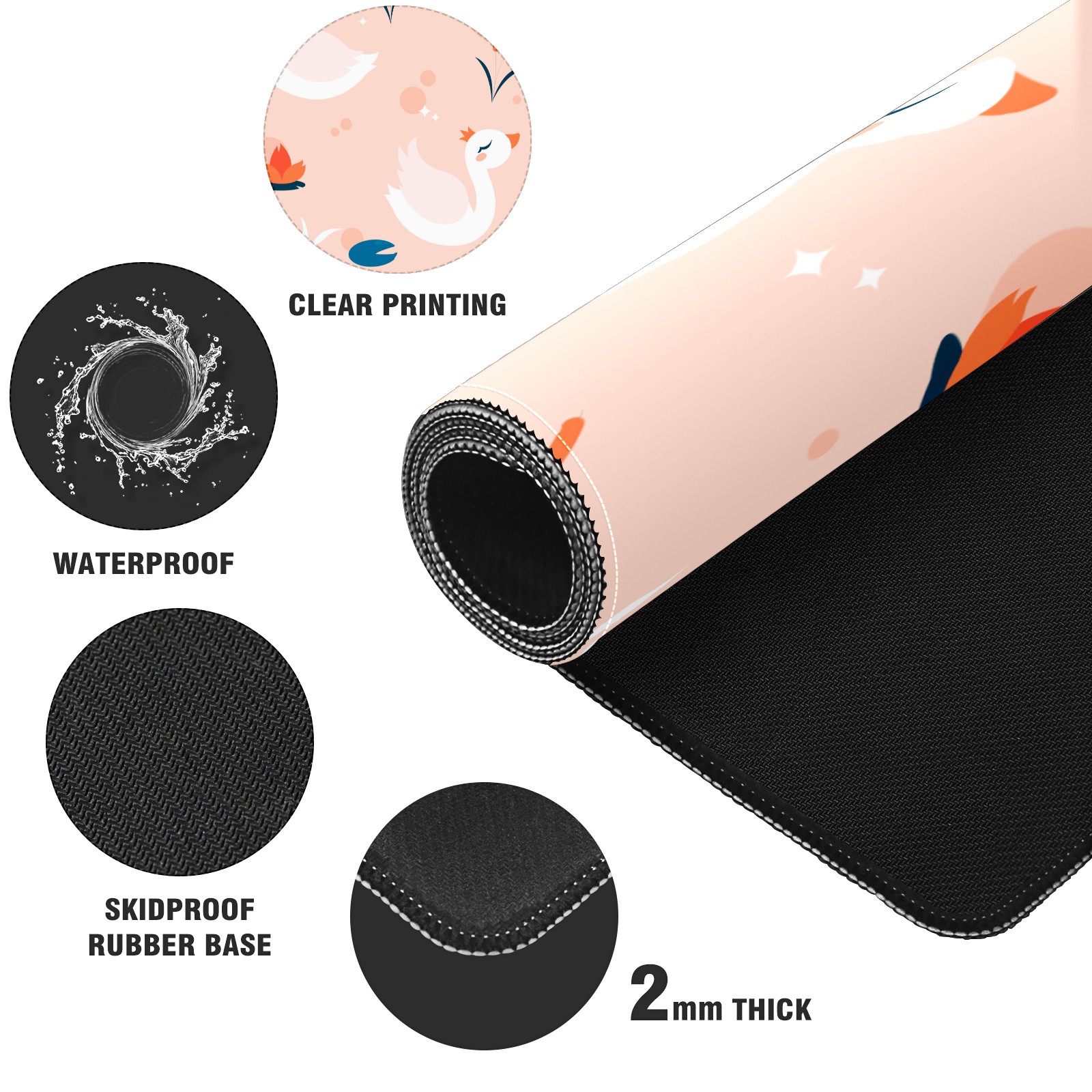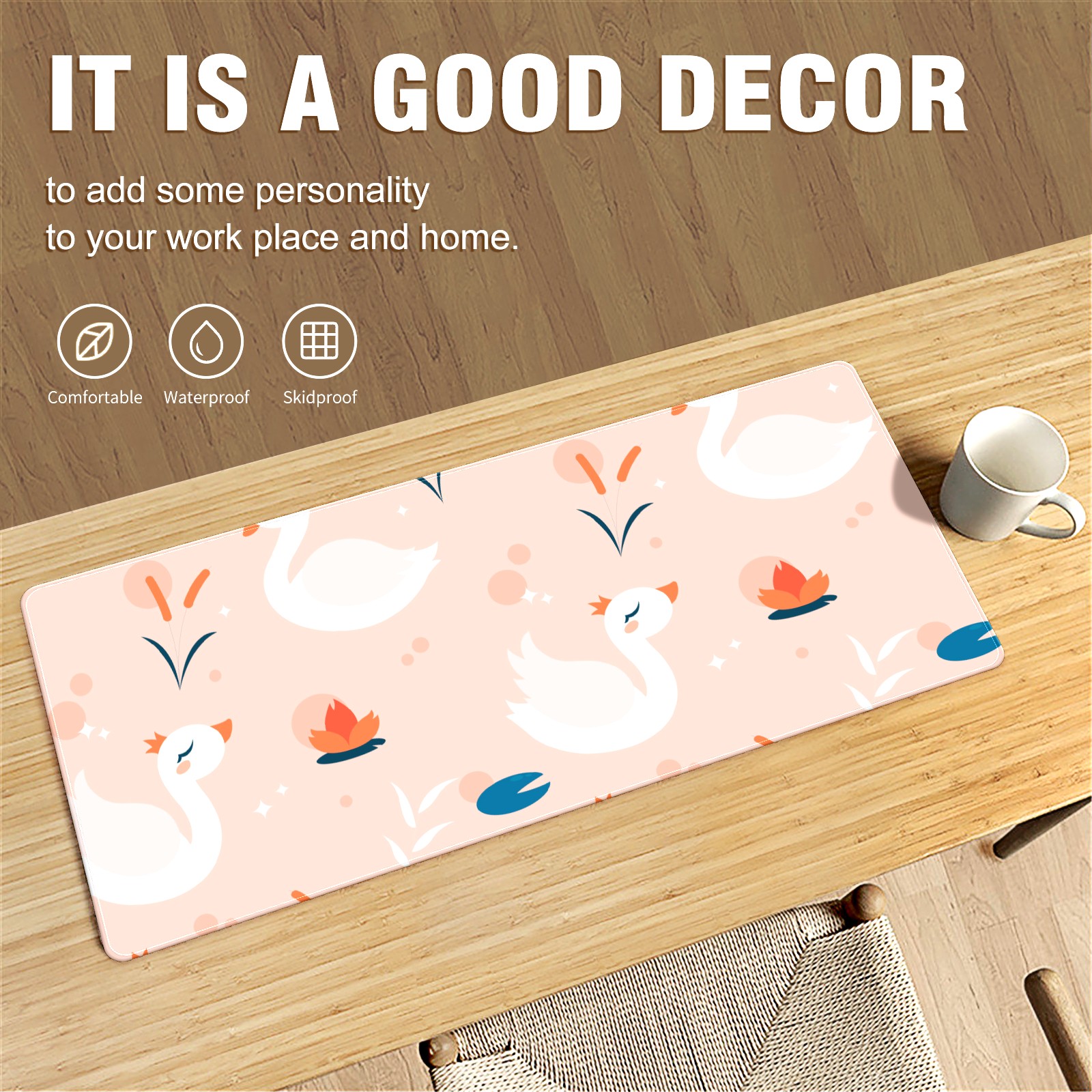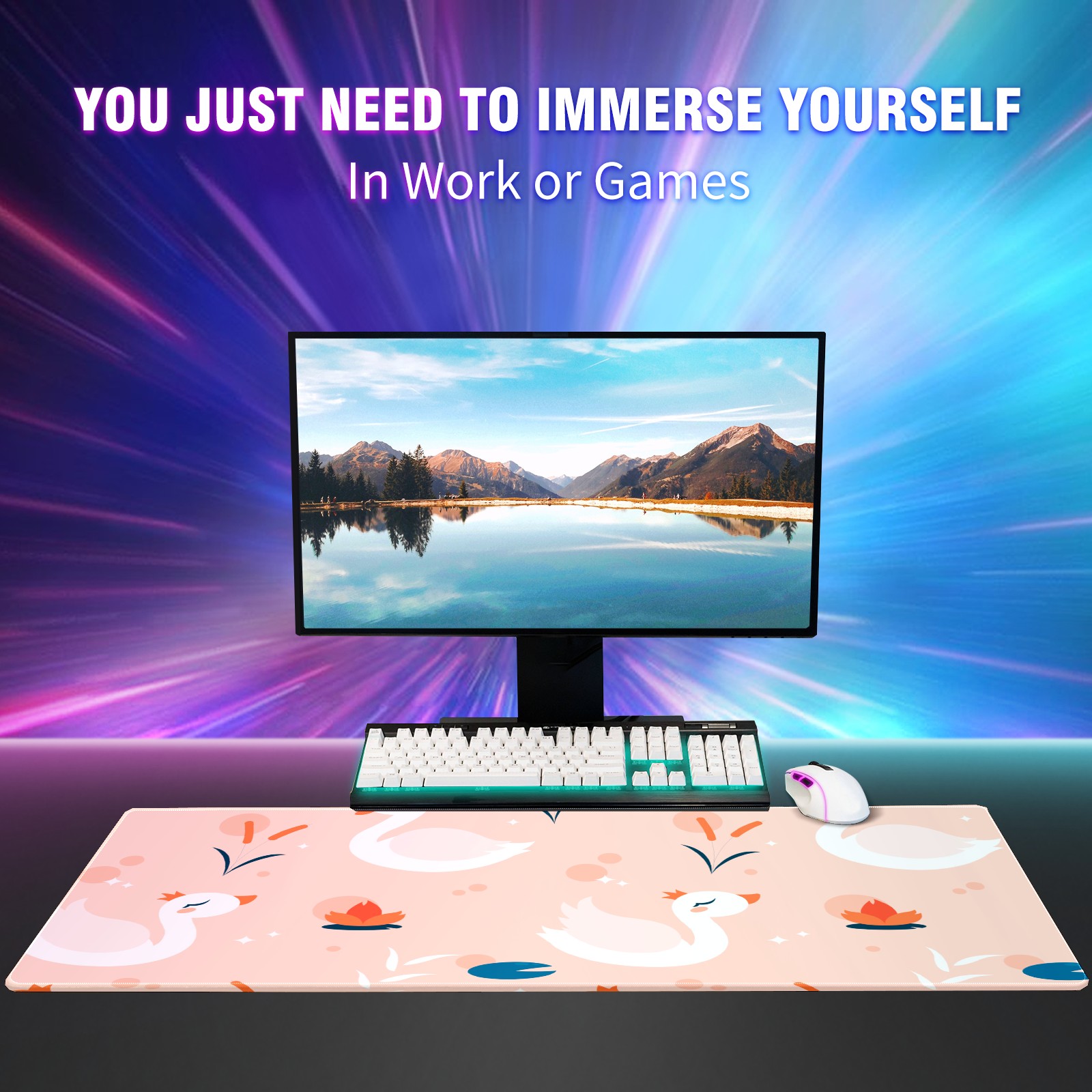 Large Mouse Pad for Desktop, Cute Desk Mat Pad Protector for Work & Gaming, Aesthetic Pretty Anti-Slip Laptop Blotter Cover for Office School Home Supplies, White Swan , 35.4inx15.7in
