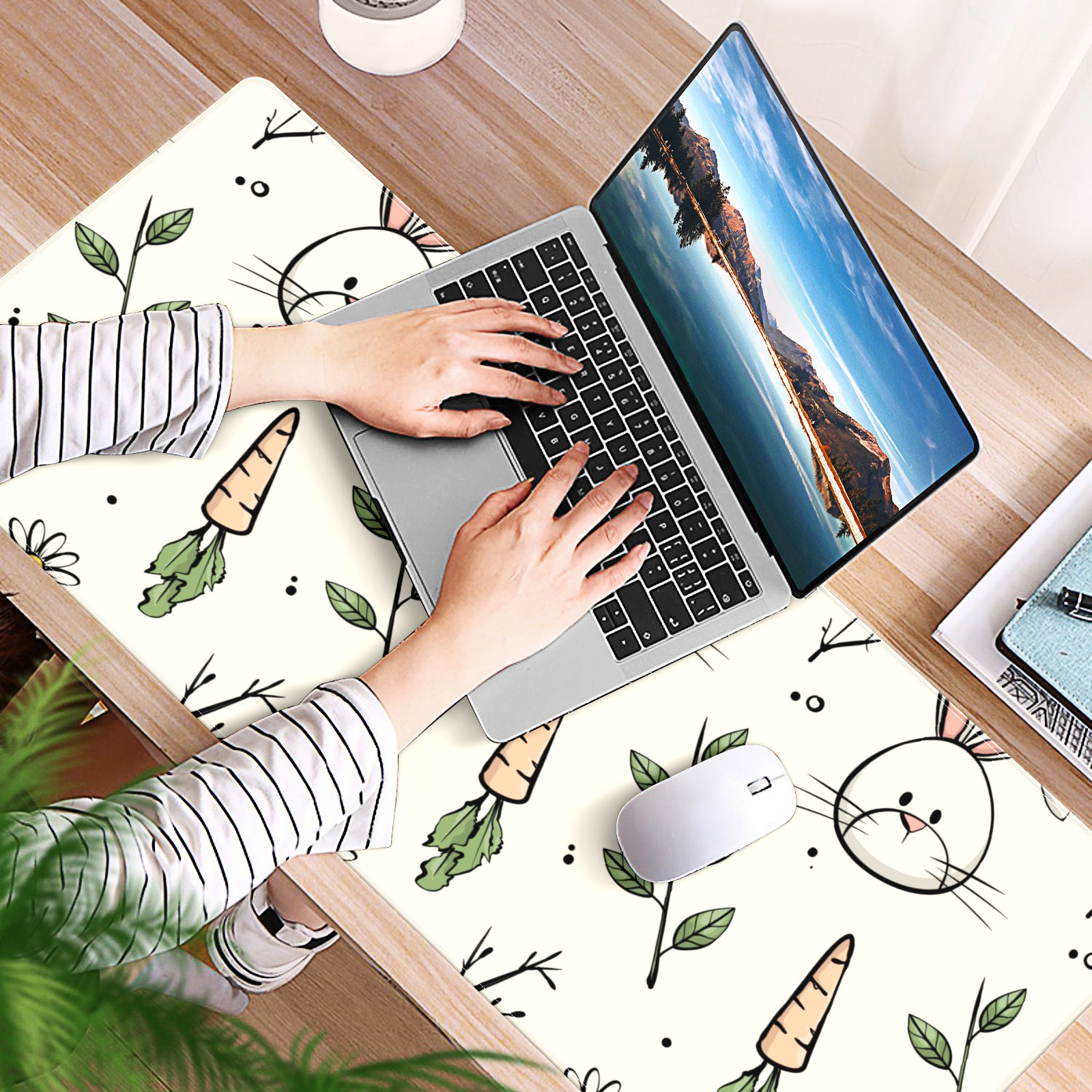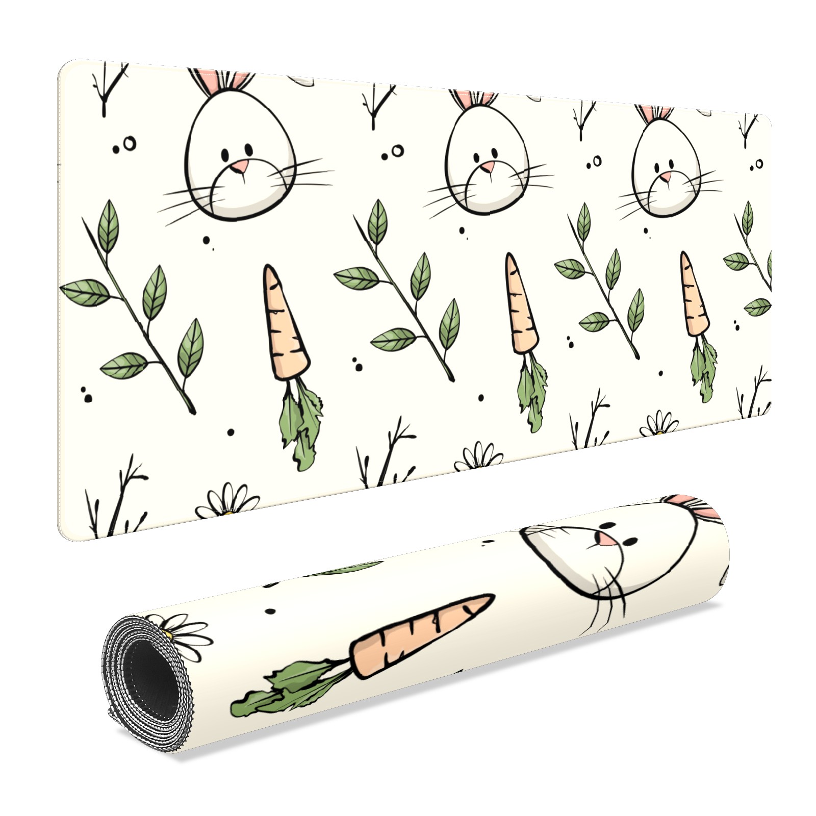 Large Mouse Pad for Desktop, Cute Desk Mat Pad Protector for Work & Gaming, Aesthetic Pretty Anti-Slip Laptop Blotter Cover for Office School Home Supplies, Rabbit Carrot , 35.4inx15.7in