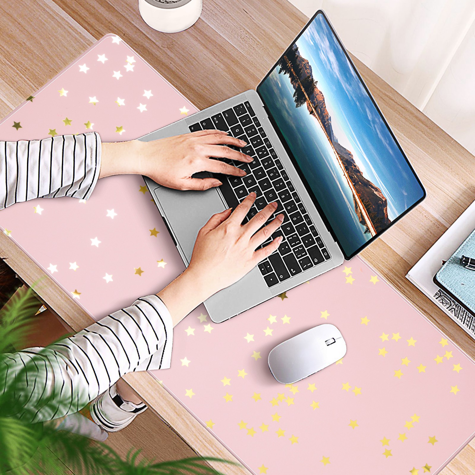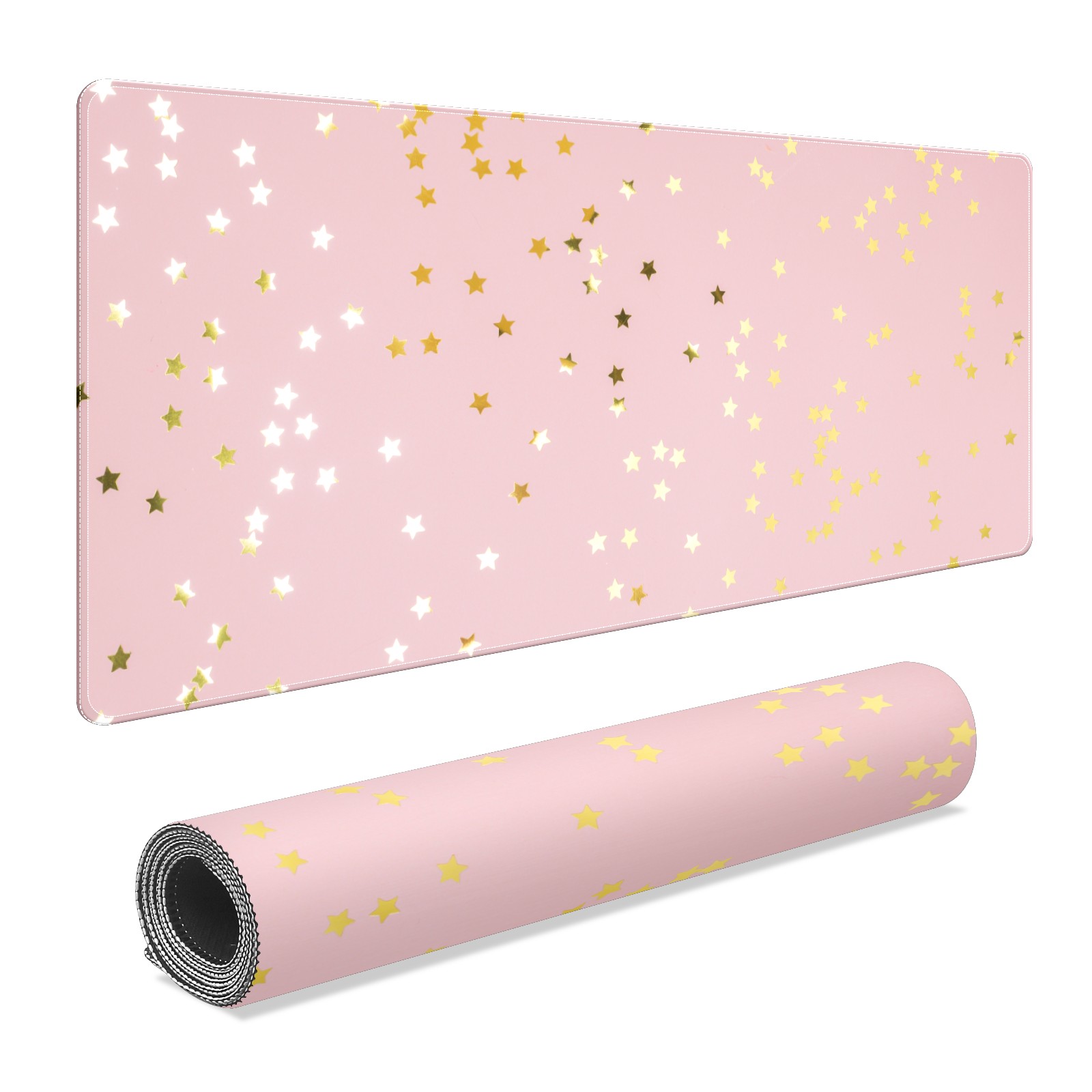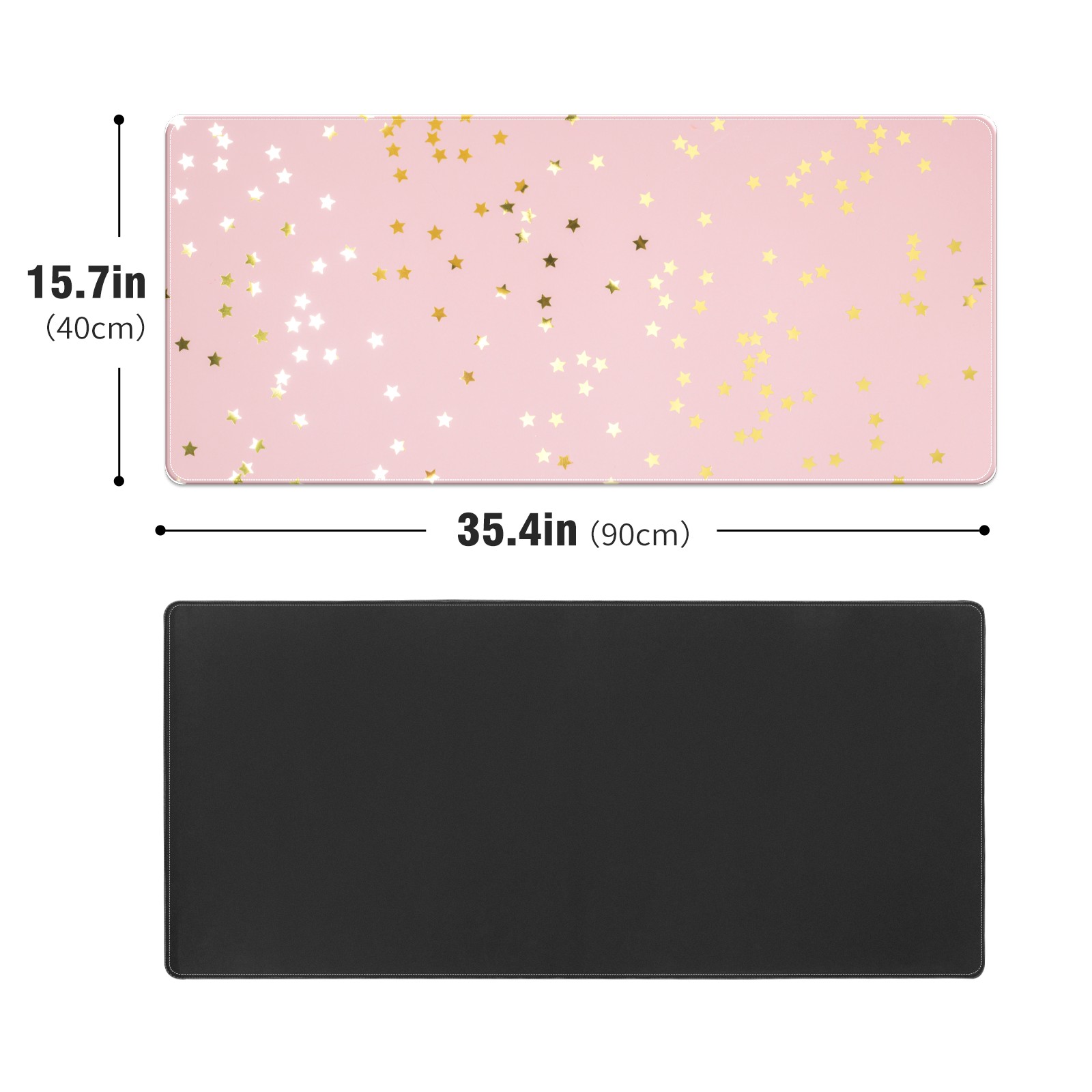 Large Mouse Pad for Desktop, Cute Desk Mat Pad Protector for Work & Gaming, Aesthetic Pretty Anti-Slip Laptop Blotter Cover for Office School Home Supplies, Pink Gold , 35.4inx15.7in