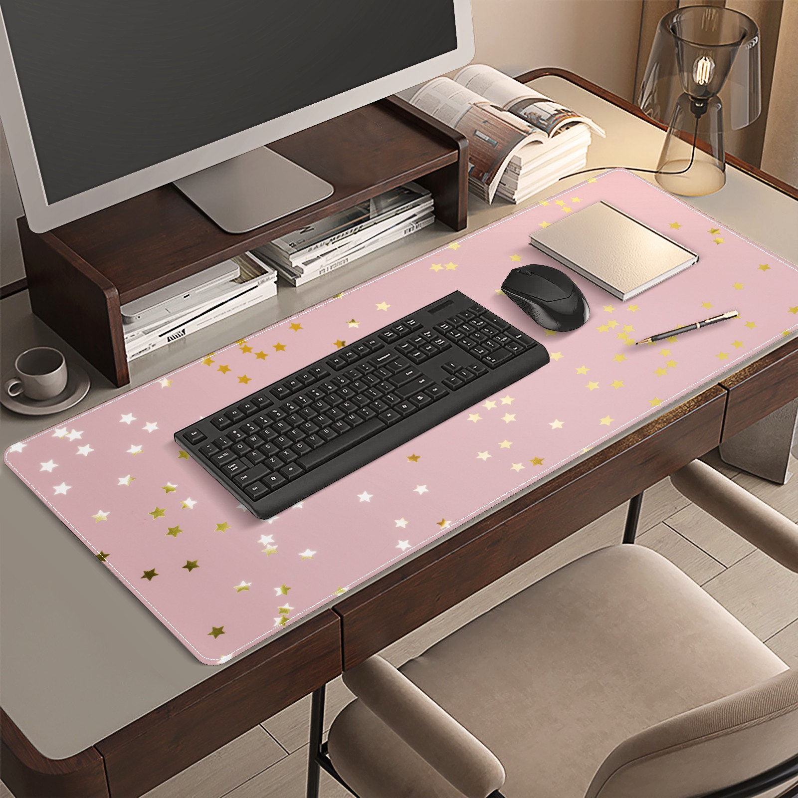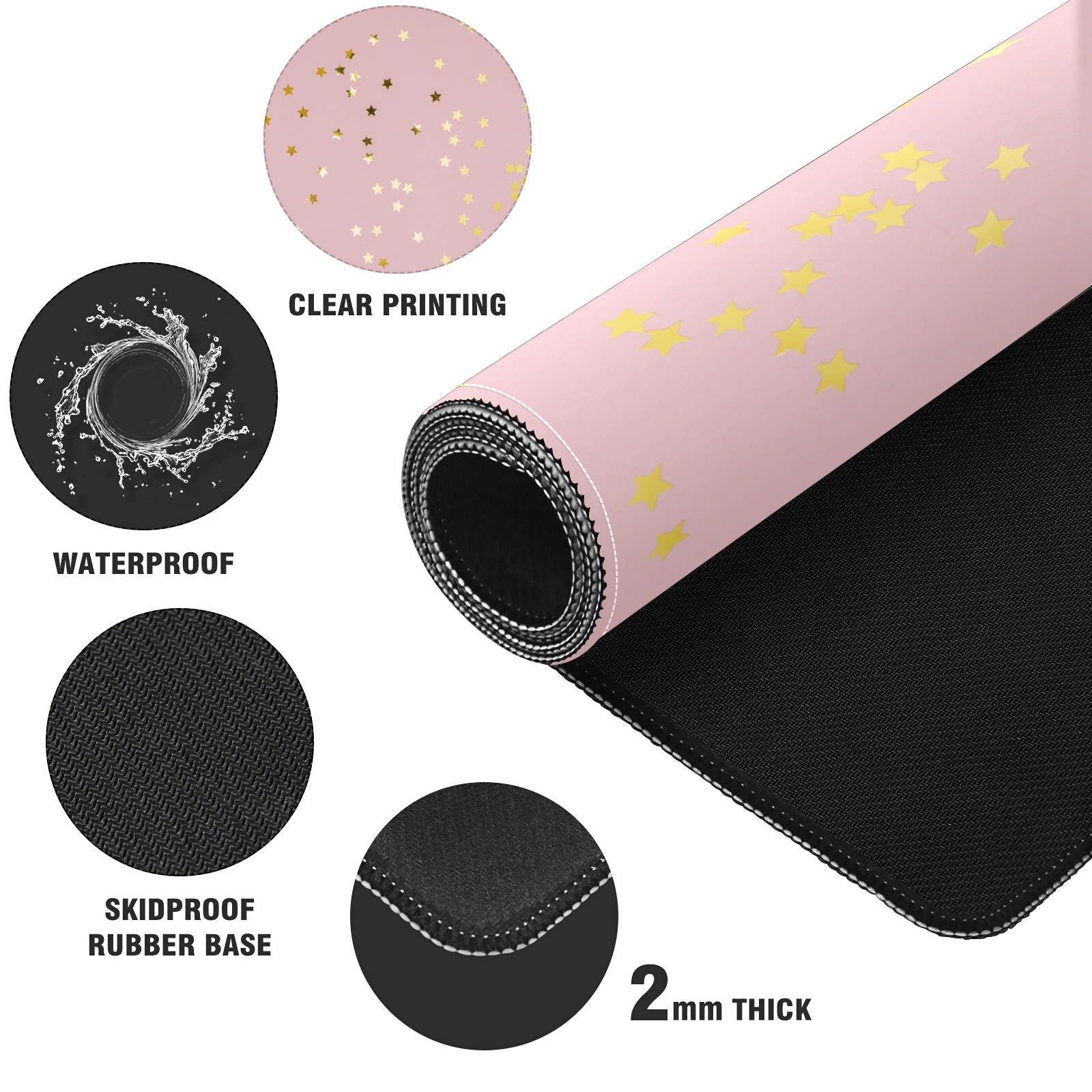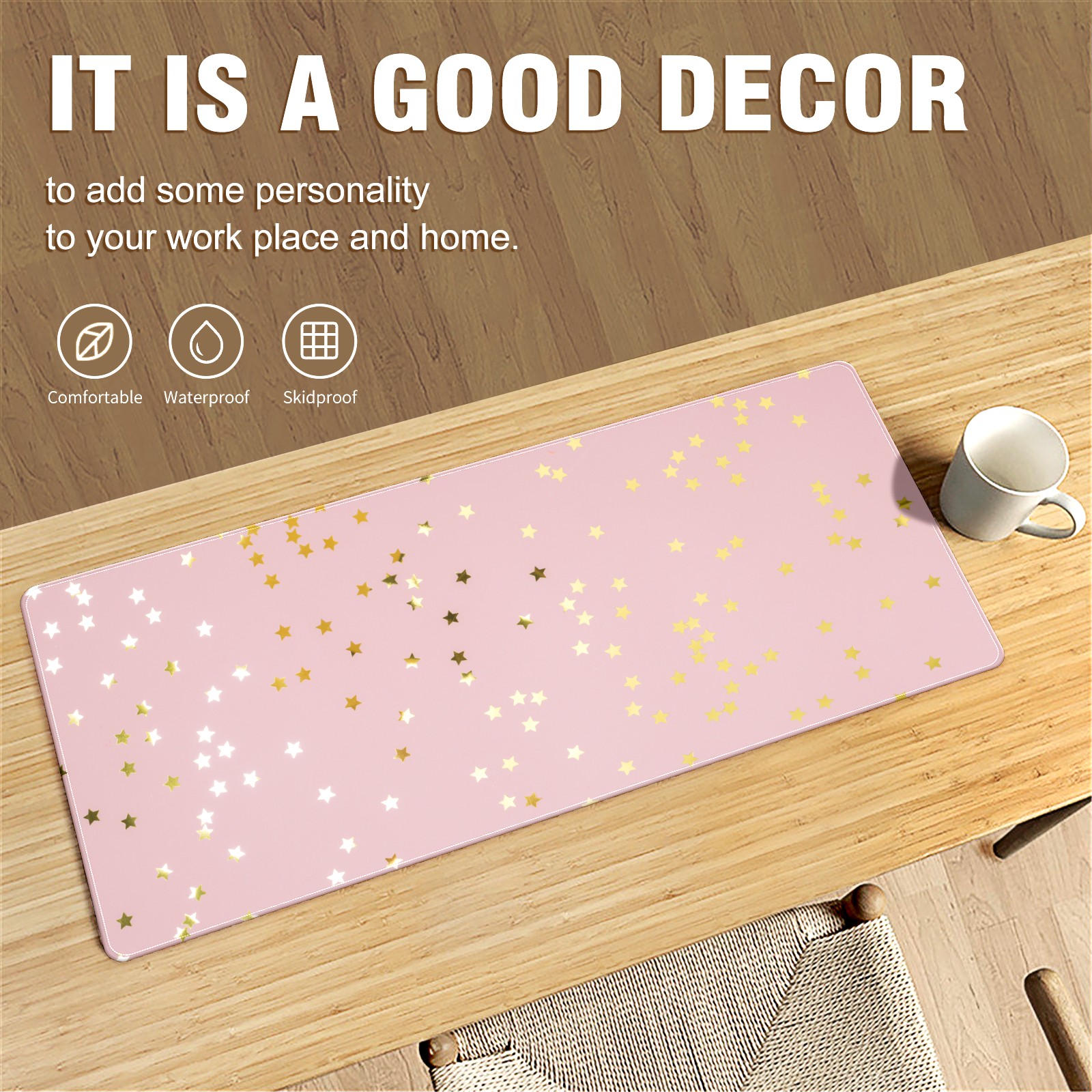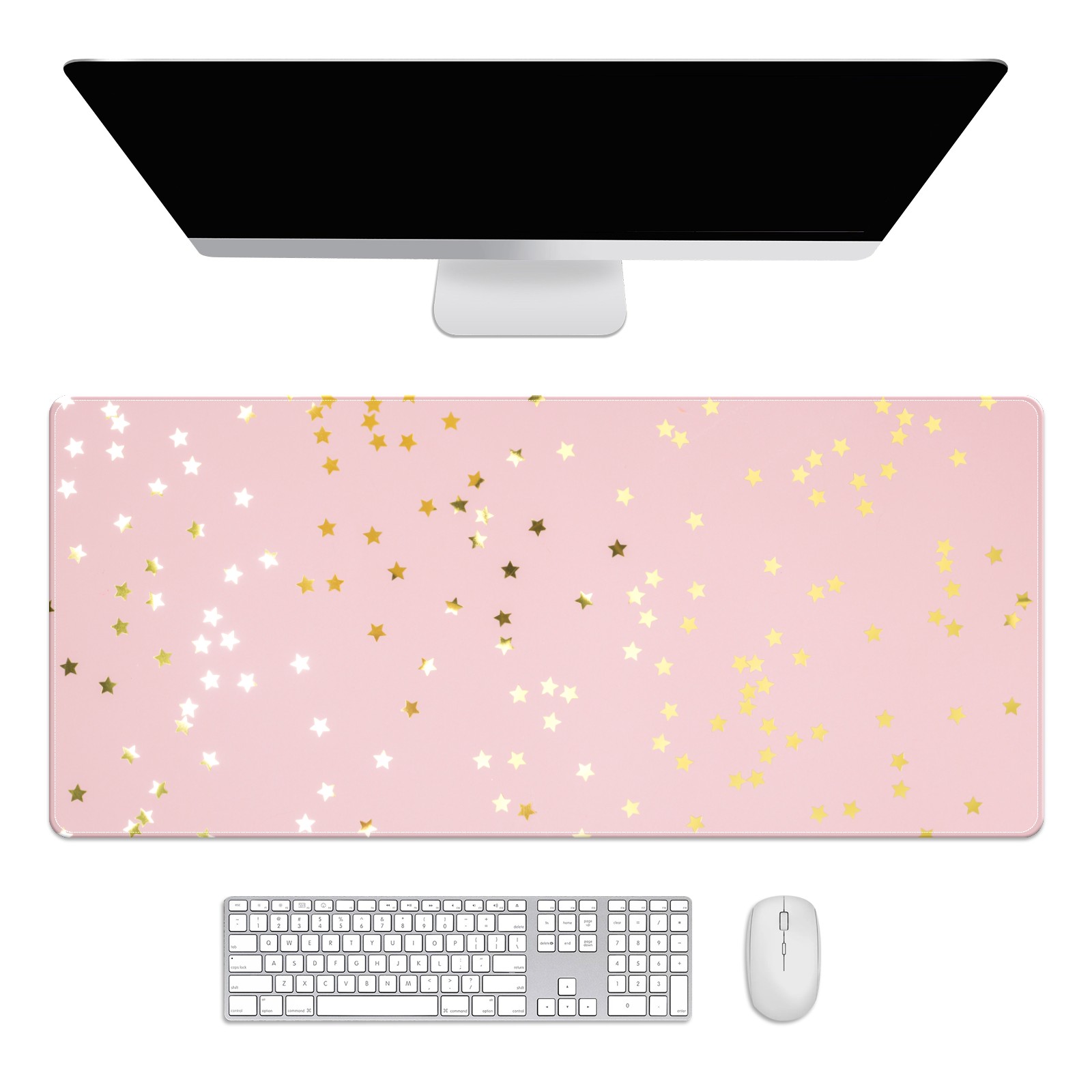 Large Mouse Pad for Desktop, Cute Desk Mat Pad Protector for Work & Gaming, Aesthetic Pretty Anti-Slip Laptop Blotter Cover for Office School Home Supplies, Pink Gold , 35.4inx15.7in