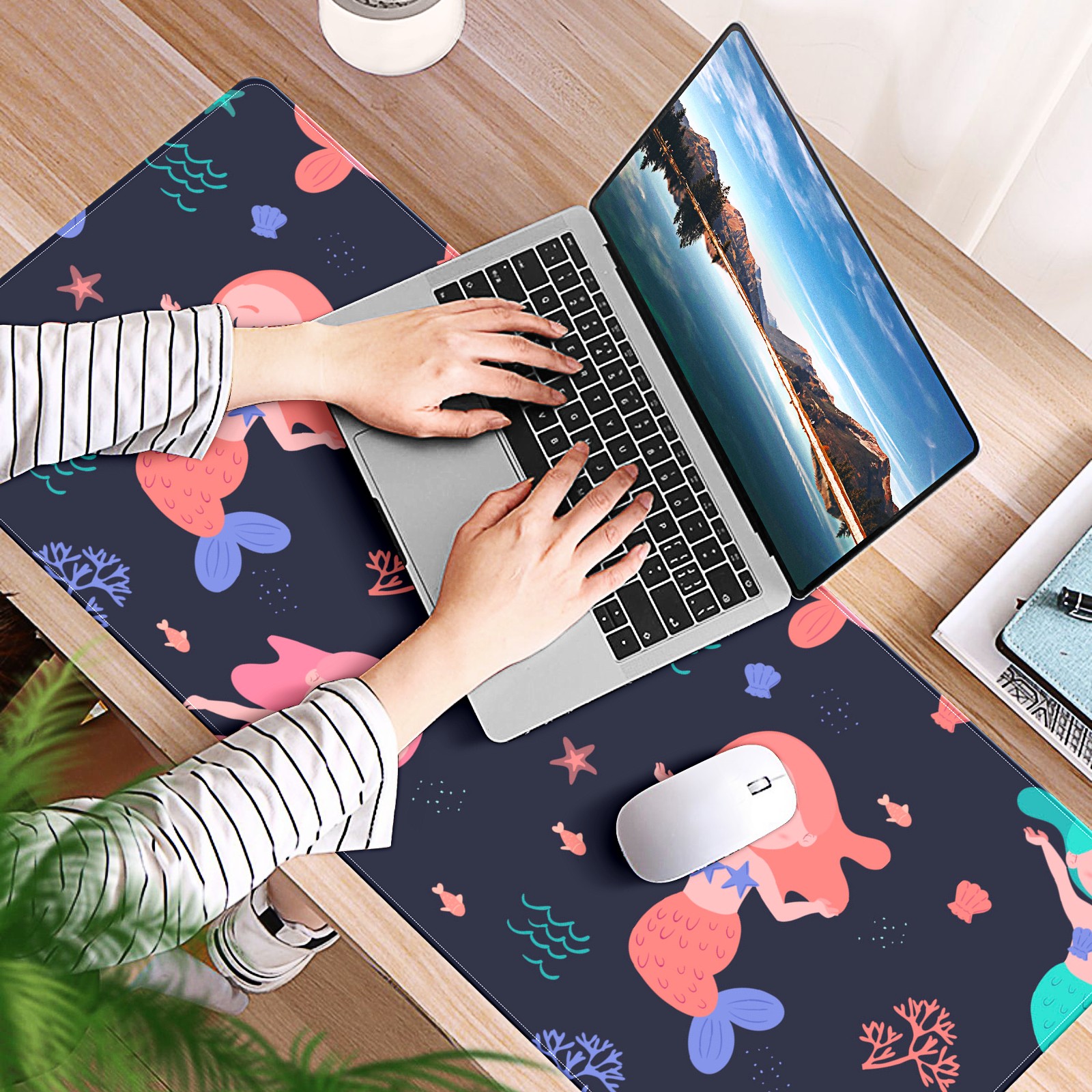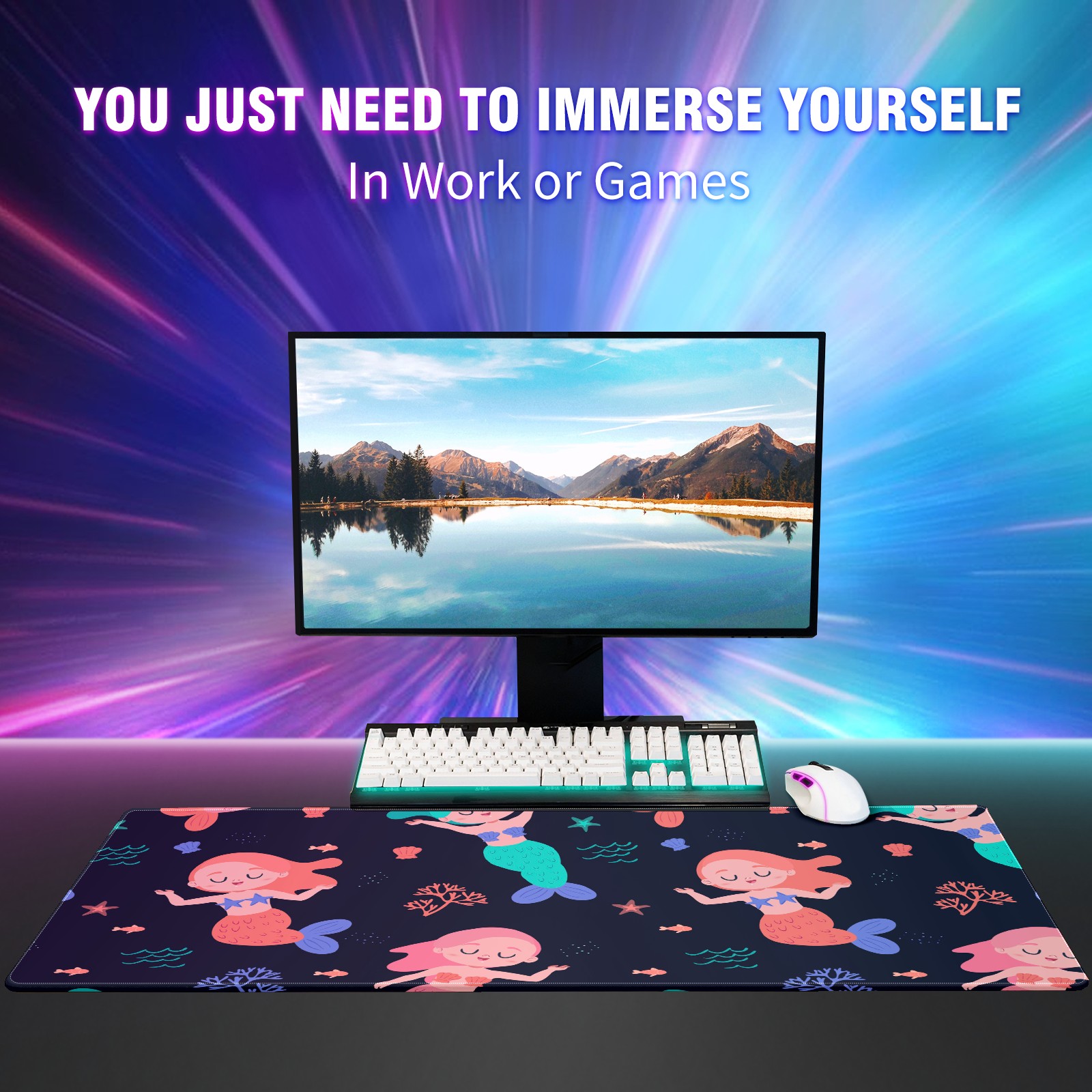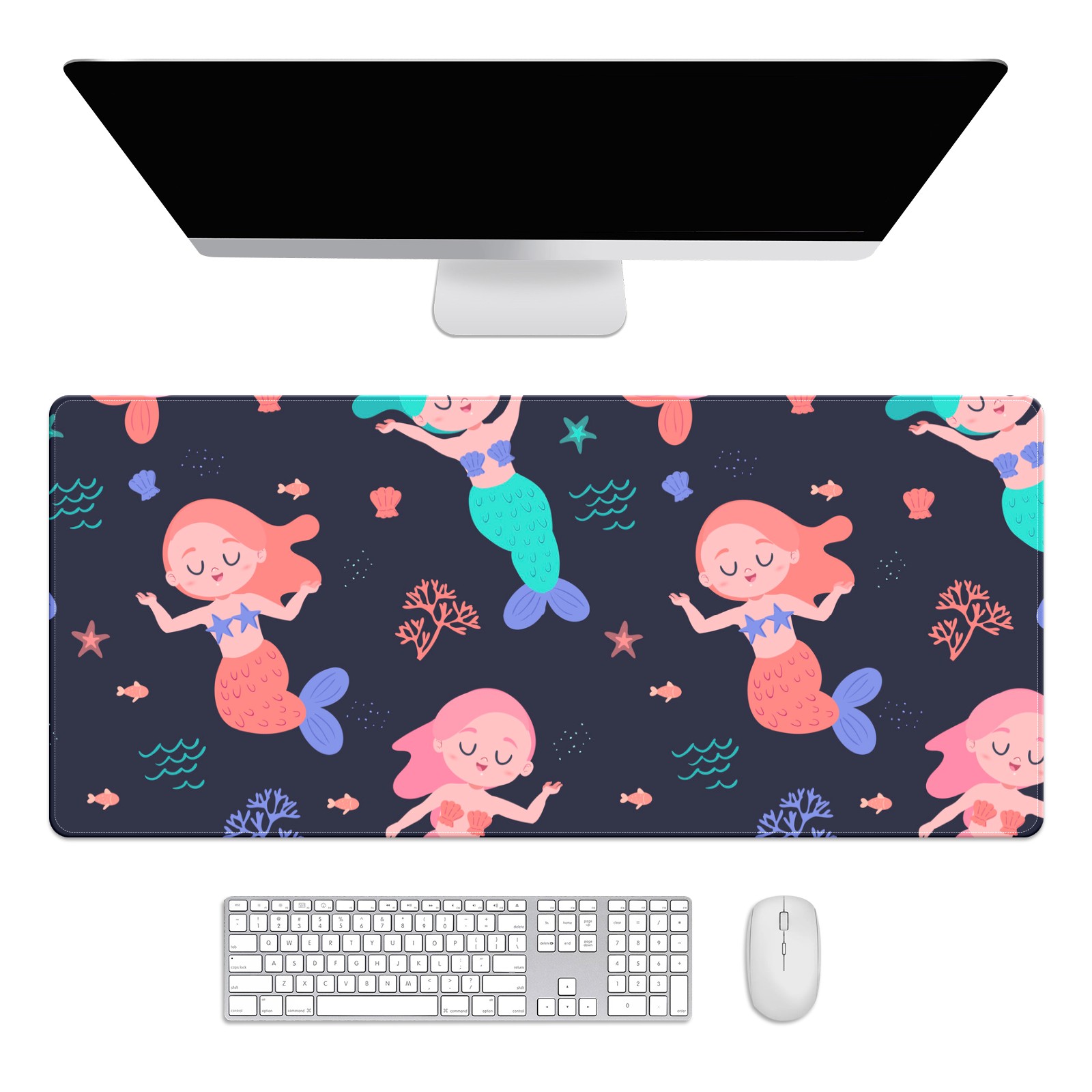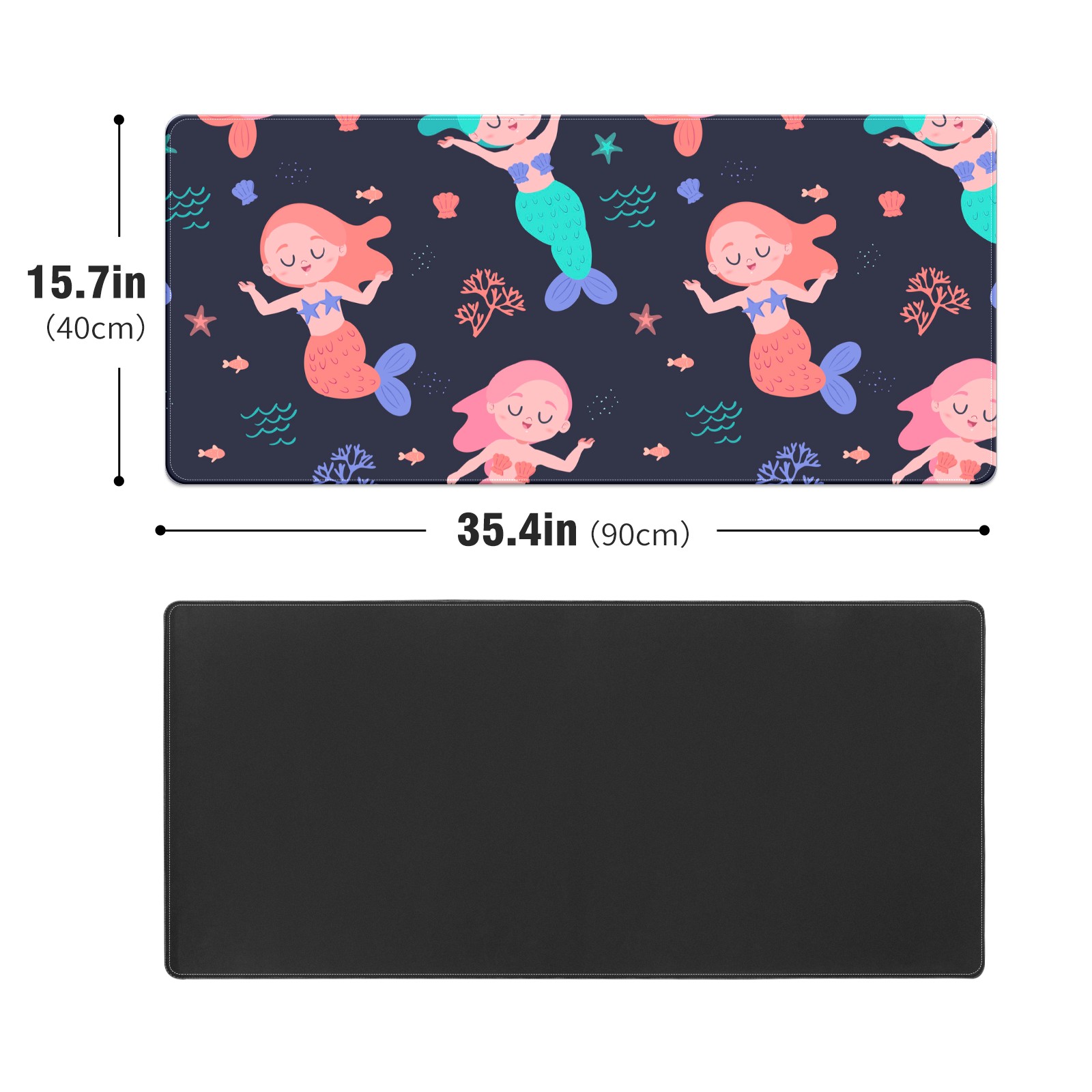 Large Mouse Pad for Desktop, Cute Desk Mat Pad Protector for Work & Gaming, Aesthetic Pretty Anti-Slip Laptop Blotter Cover for Office School Home Supplies, Mermaid Girls , 35.4inx15.7in