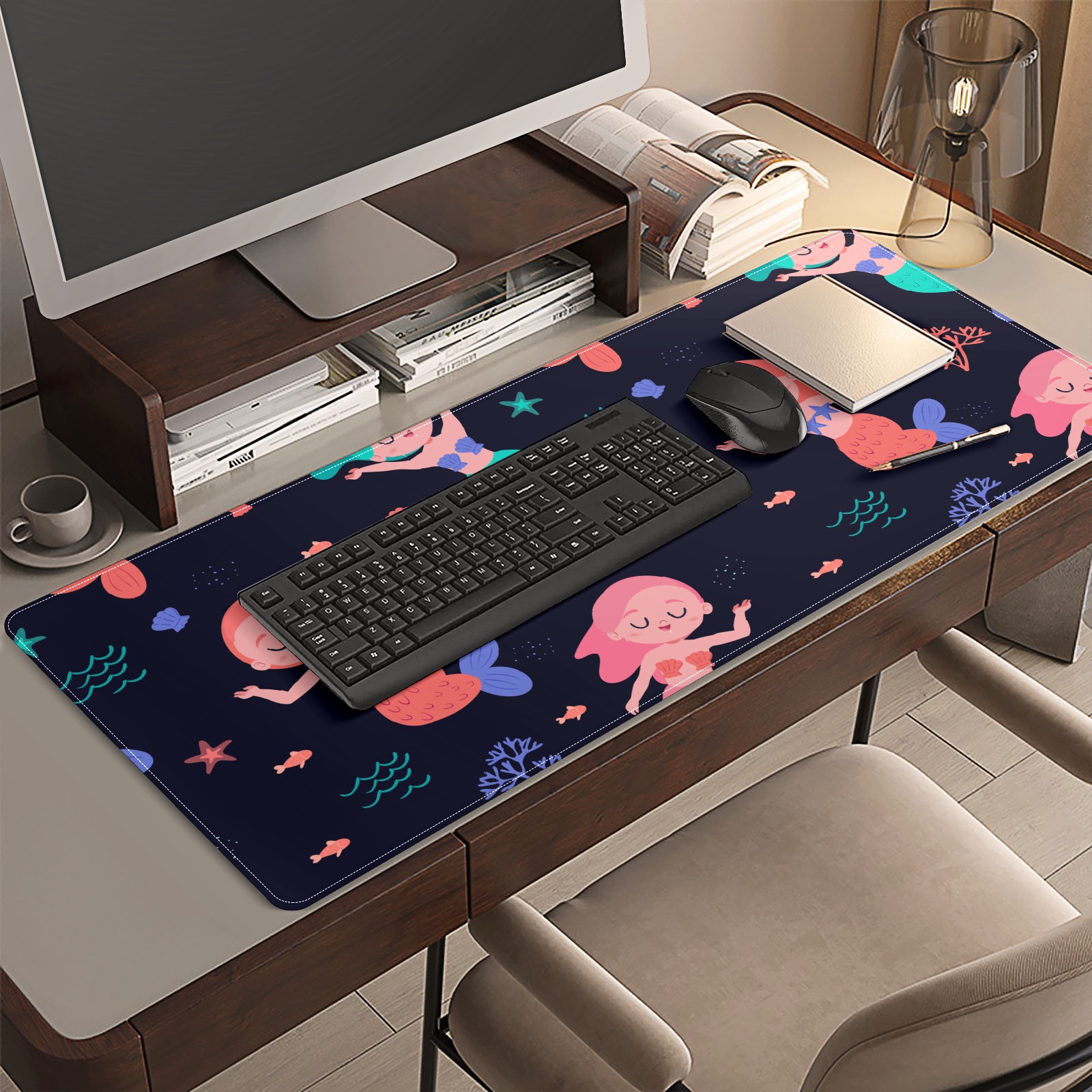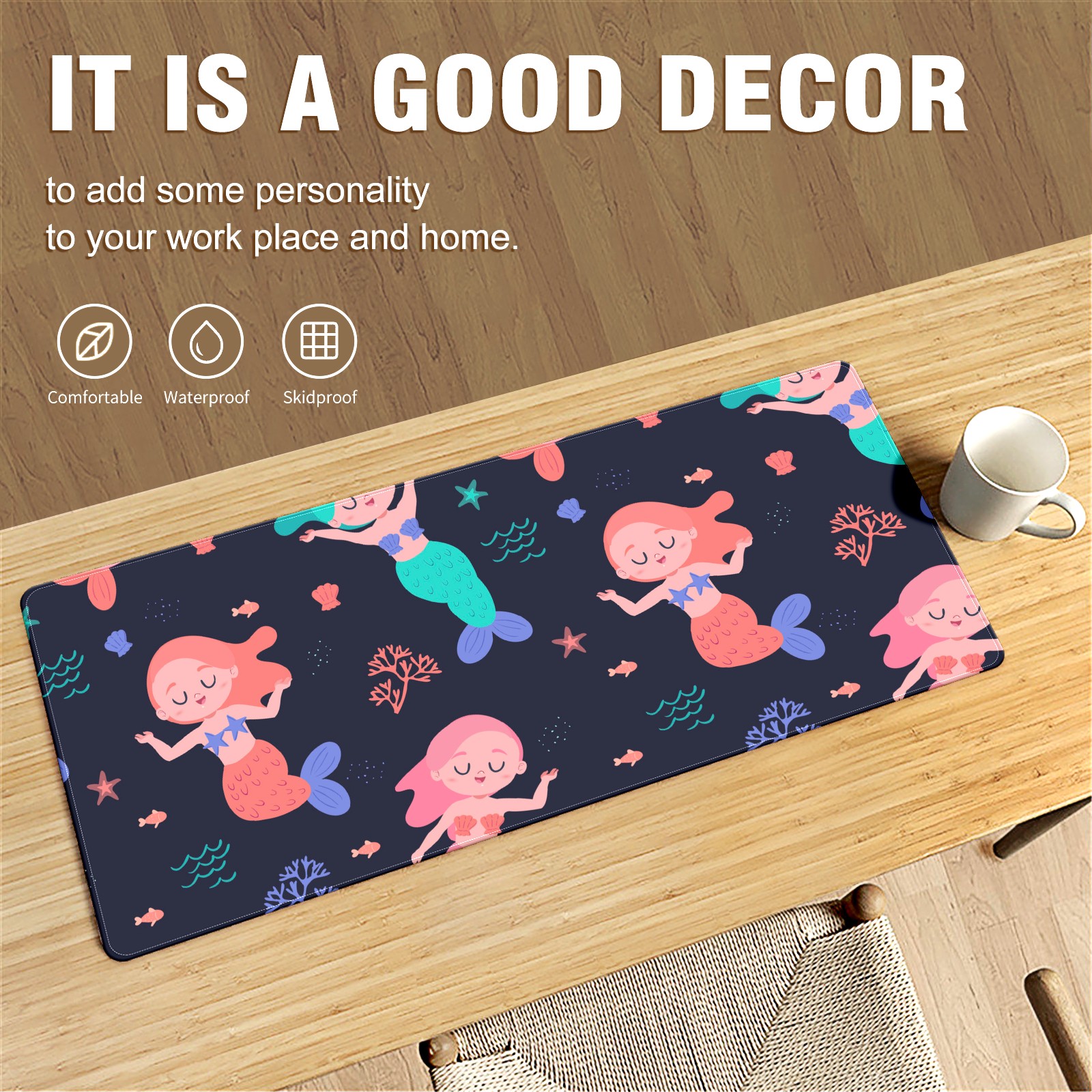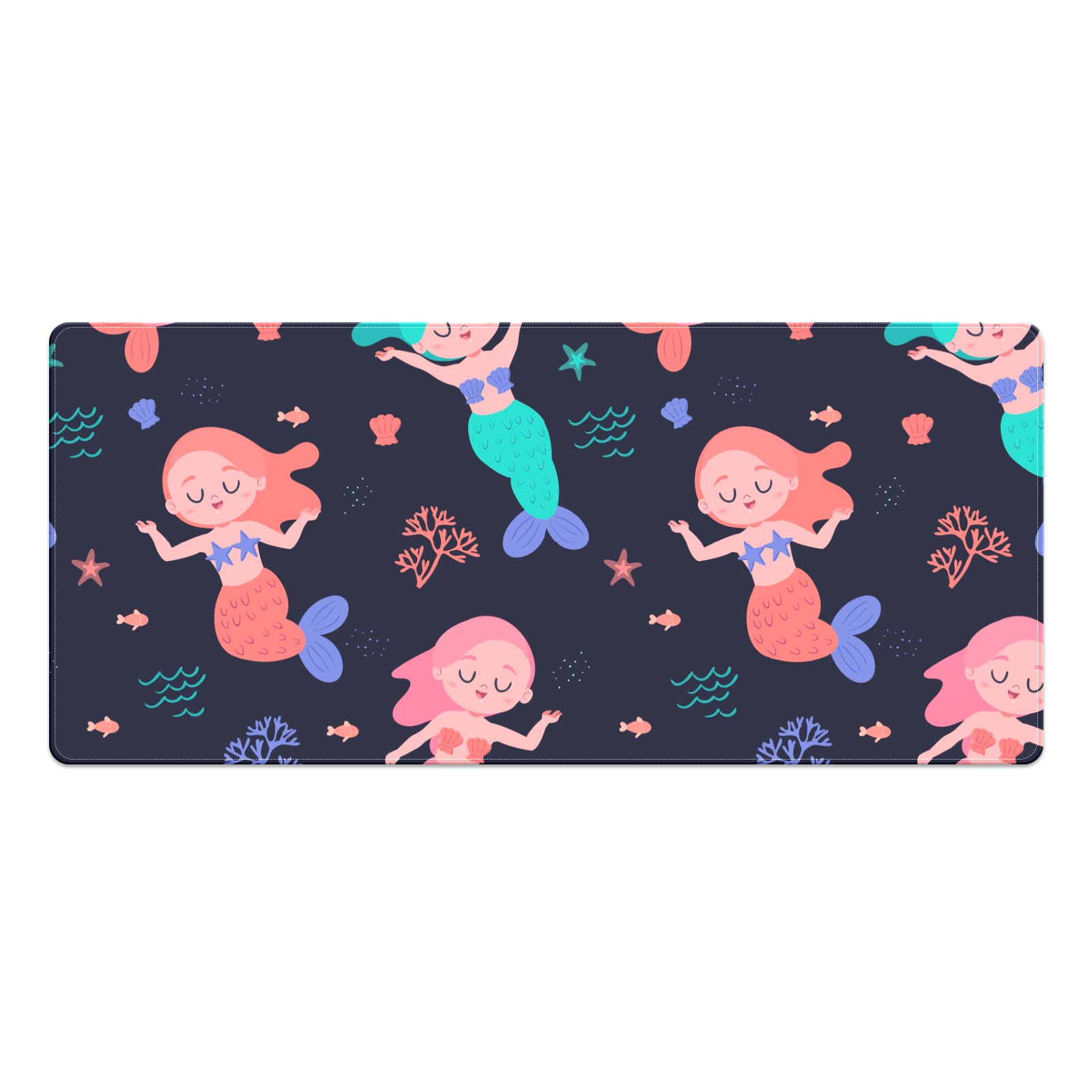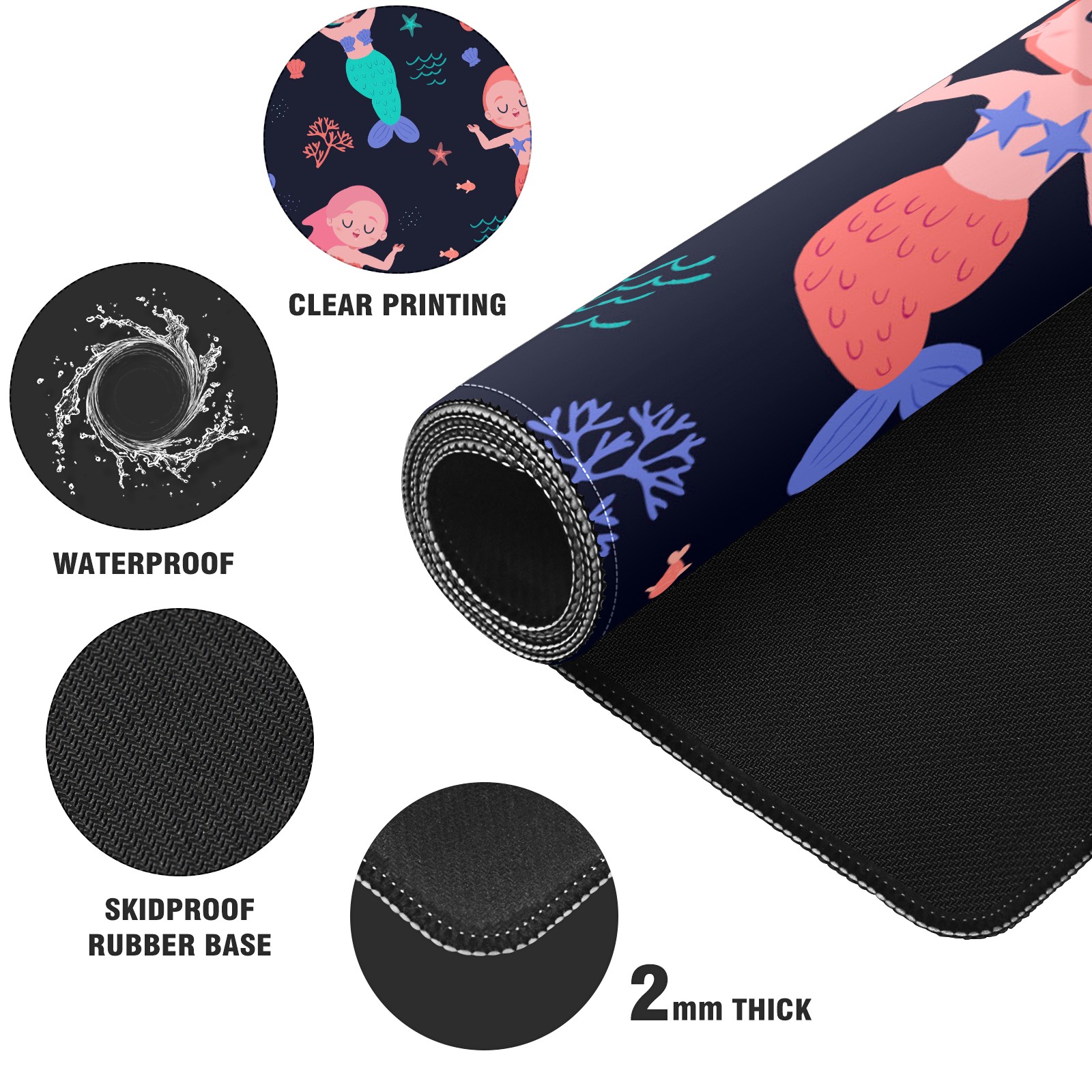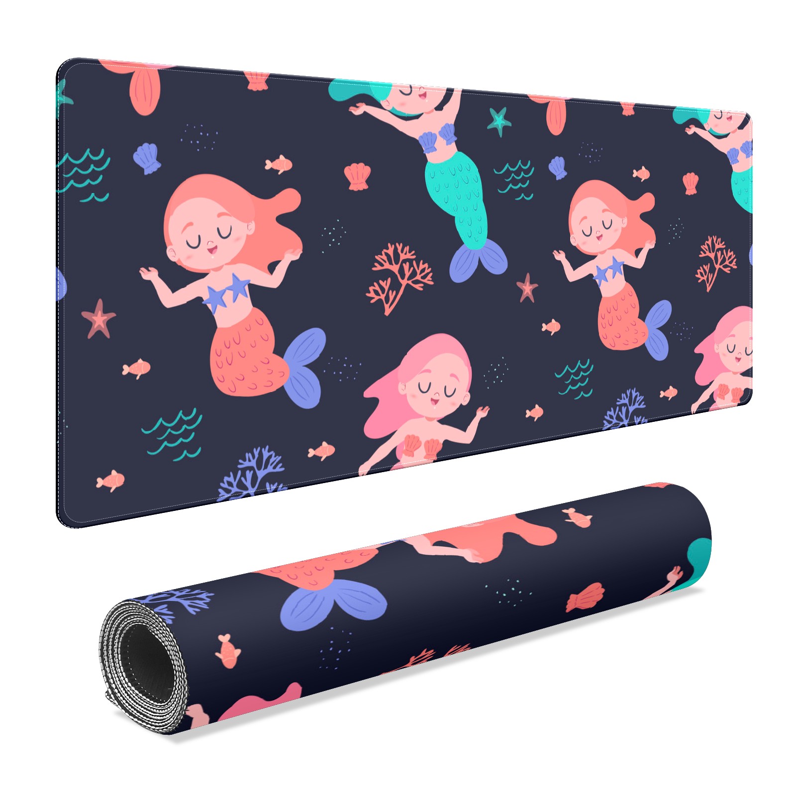 Large Mouse Pad for Desktop, Cute Desk Mat Pad Protector for Work & Gaming, Aesthetic Pretty Anti-Slip Laptop Blotter Cover for Office School Home Supplies, Mermaid Girls , 35.4inx15.7in