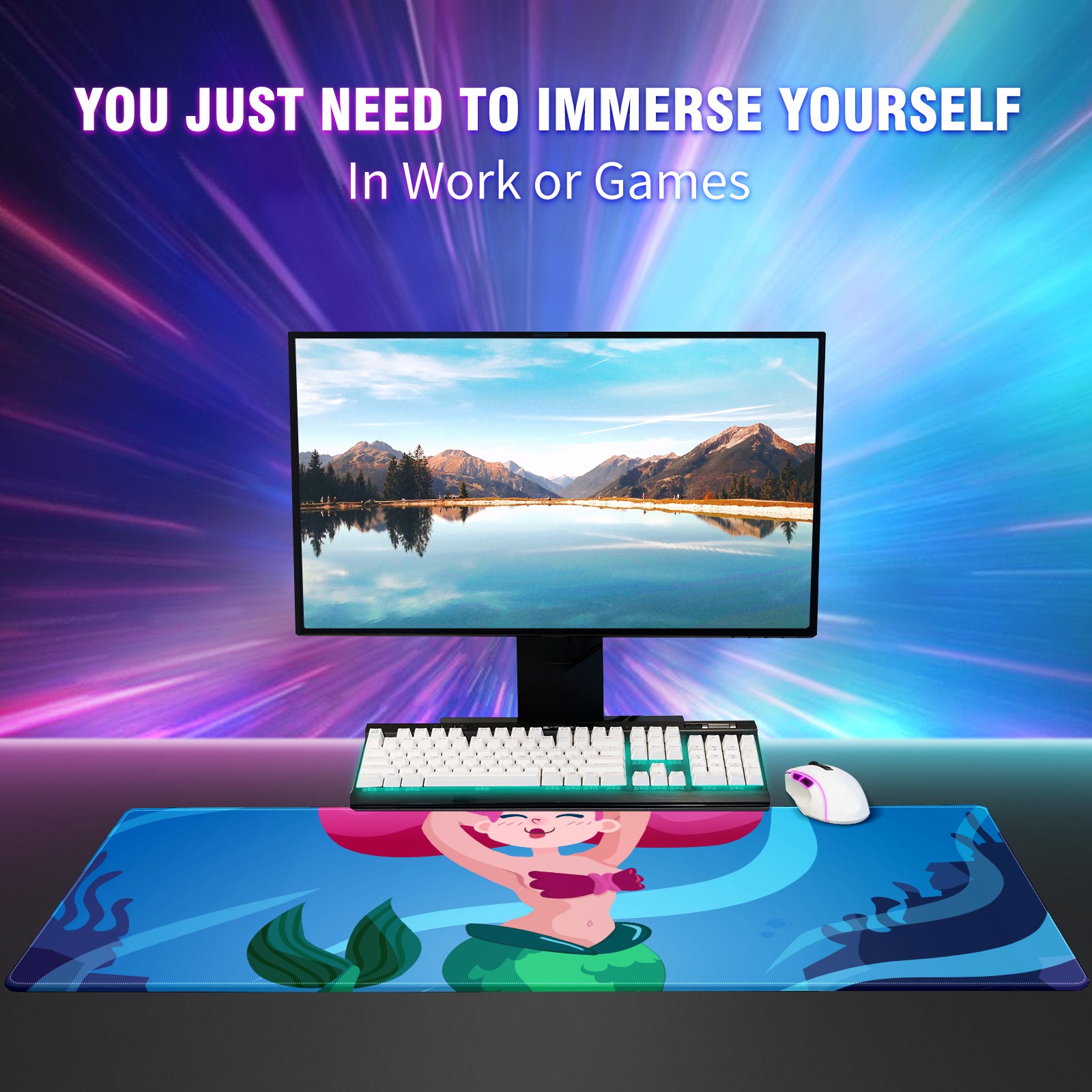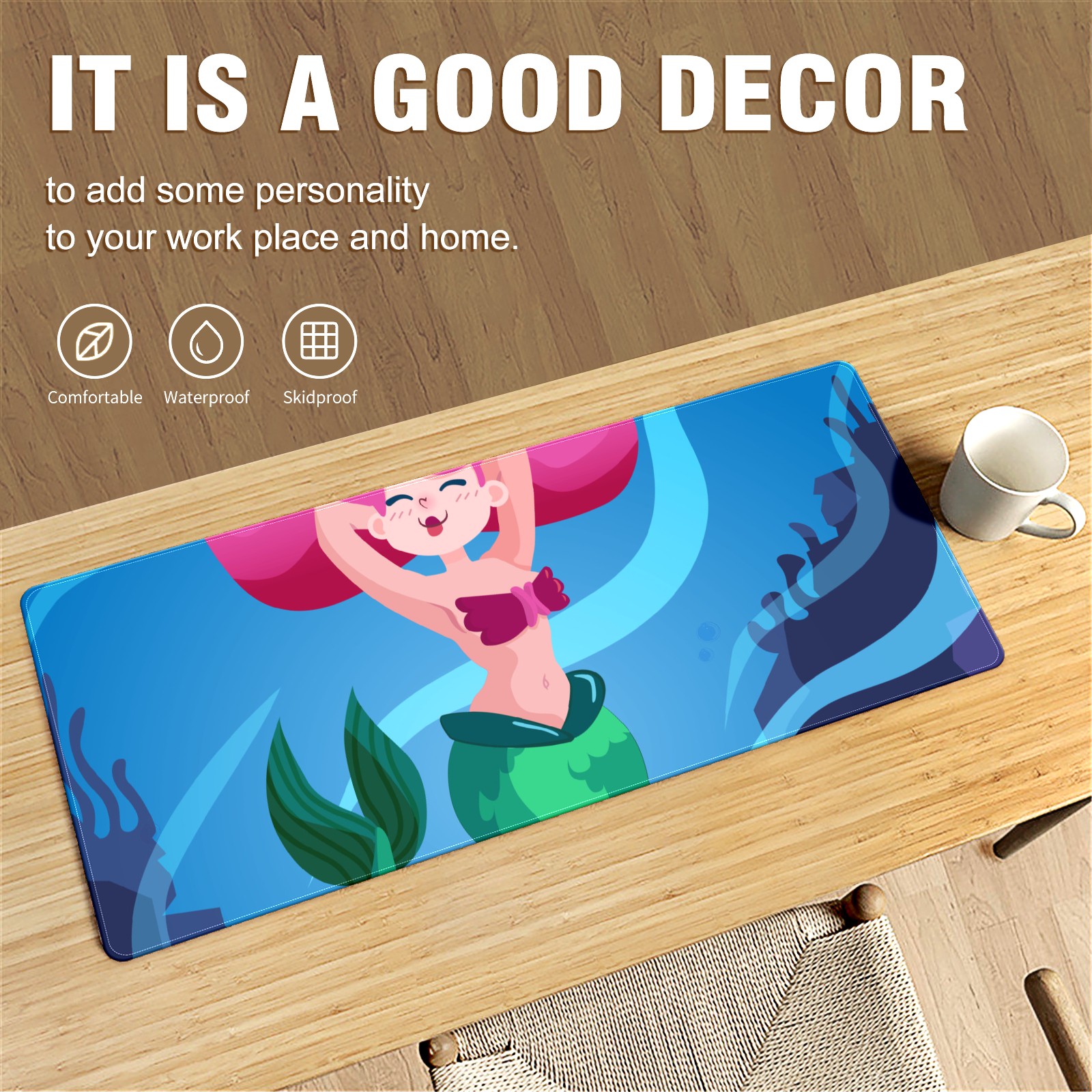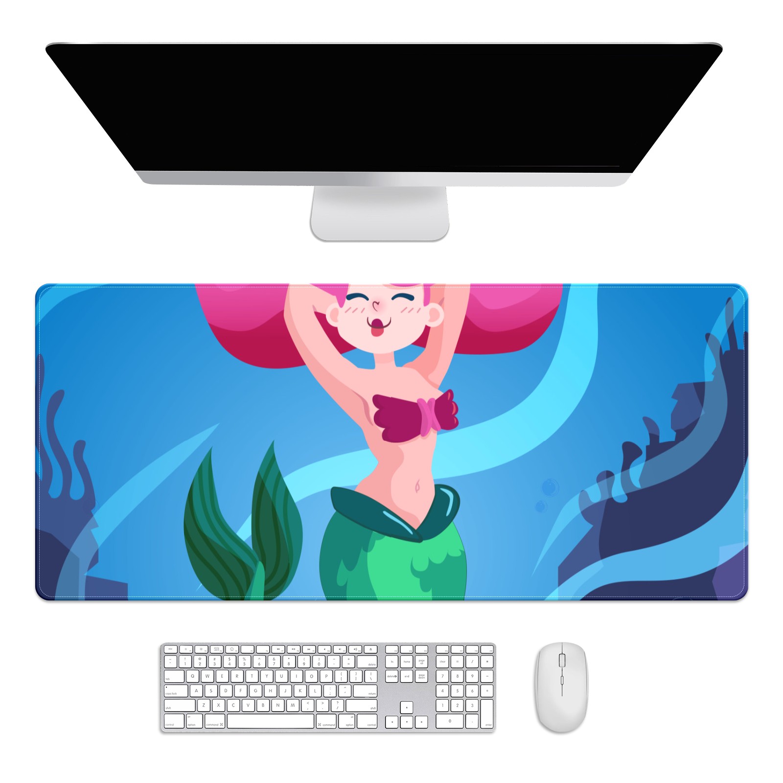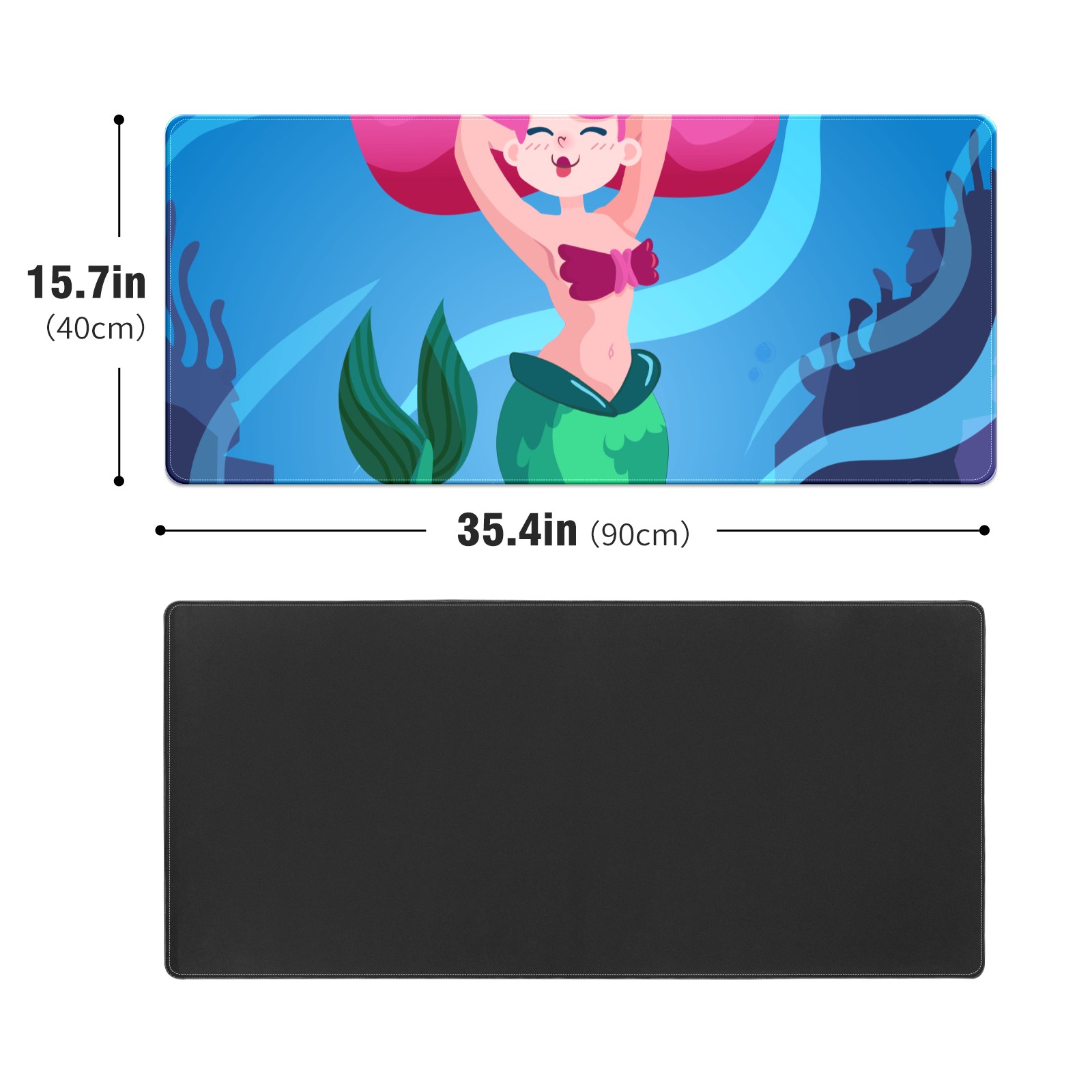Large Mouse Pad for Desktop, Cute Desk Mat Pad Protector for Work & Gaming, Aesthetic Pretty Anti-Slip Laptop Blotter Cover for Office School Home Supplies, Charming Mermaid , 35.4inx15.7in