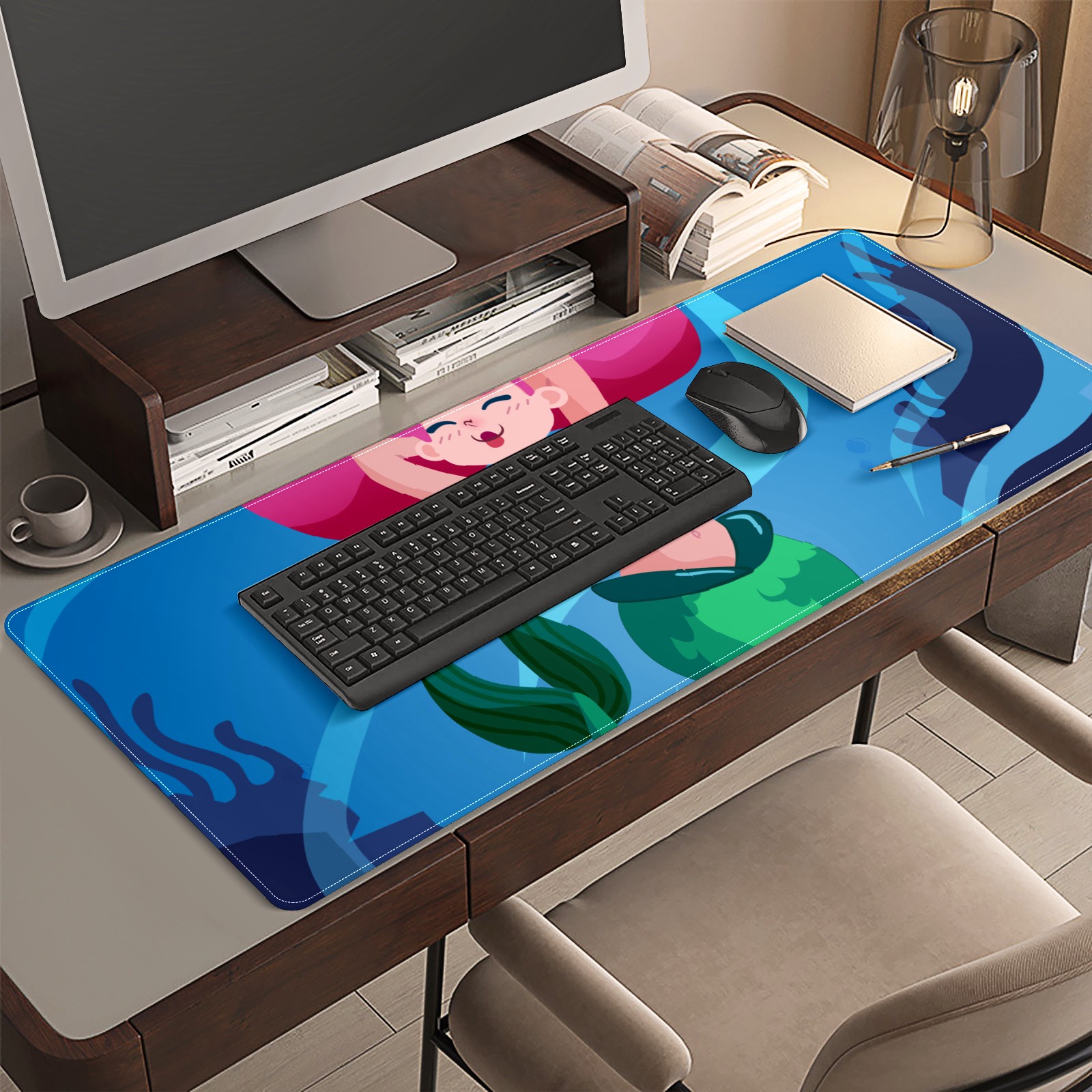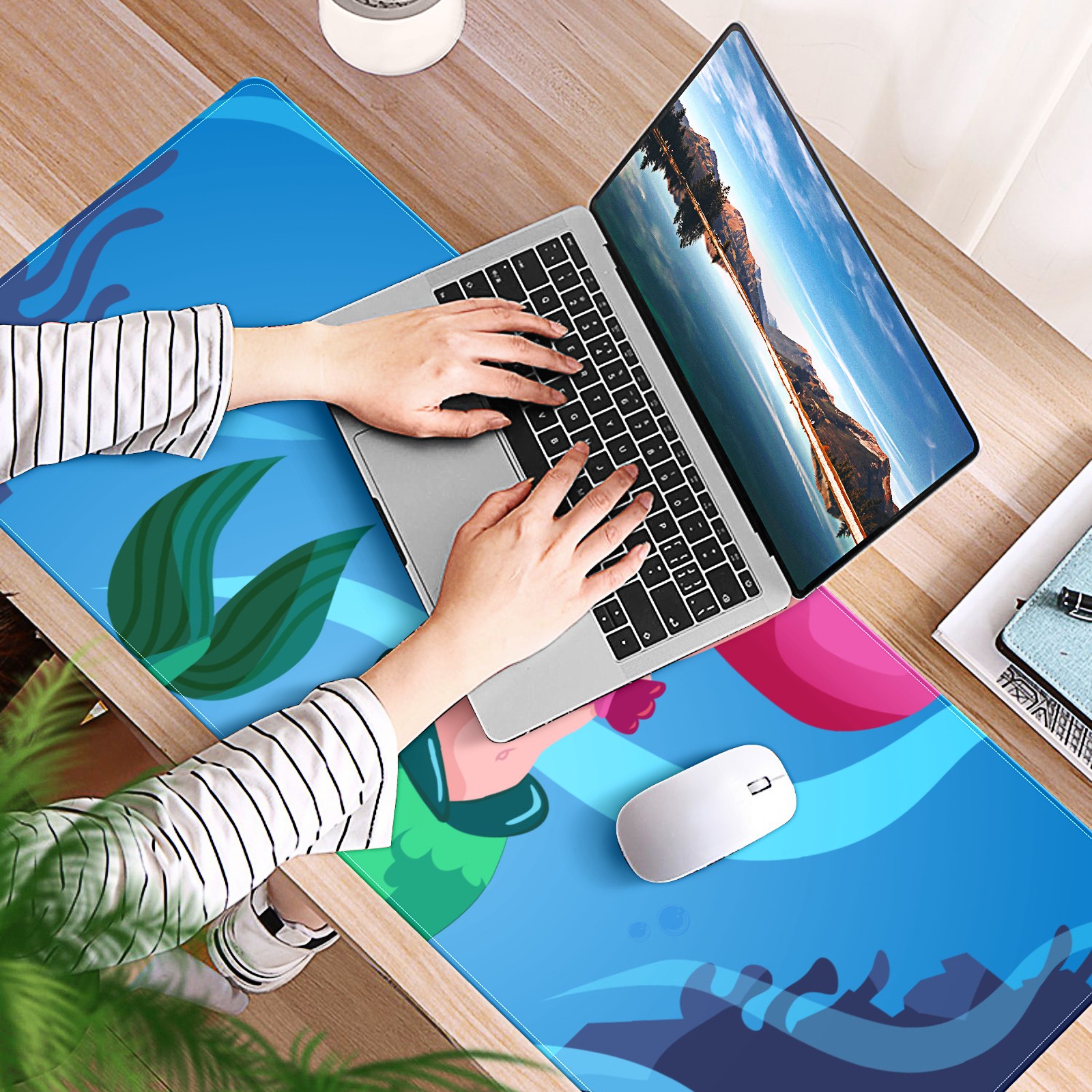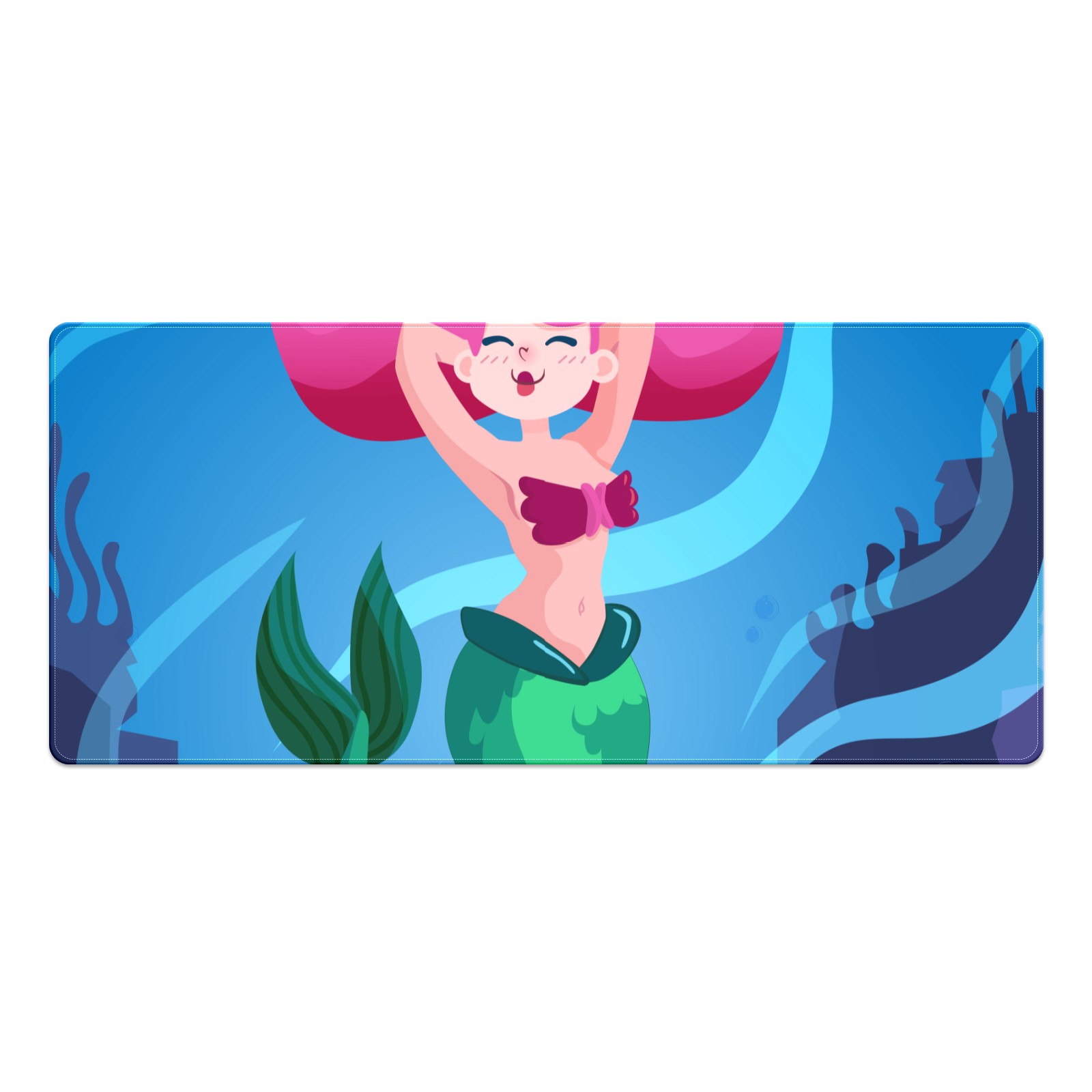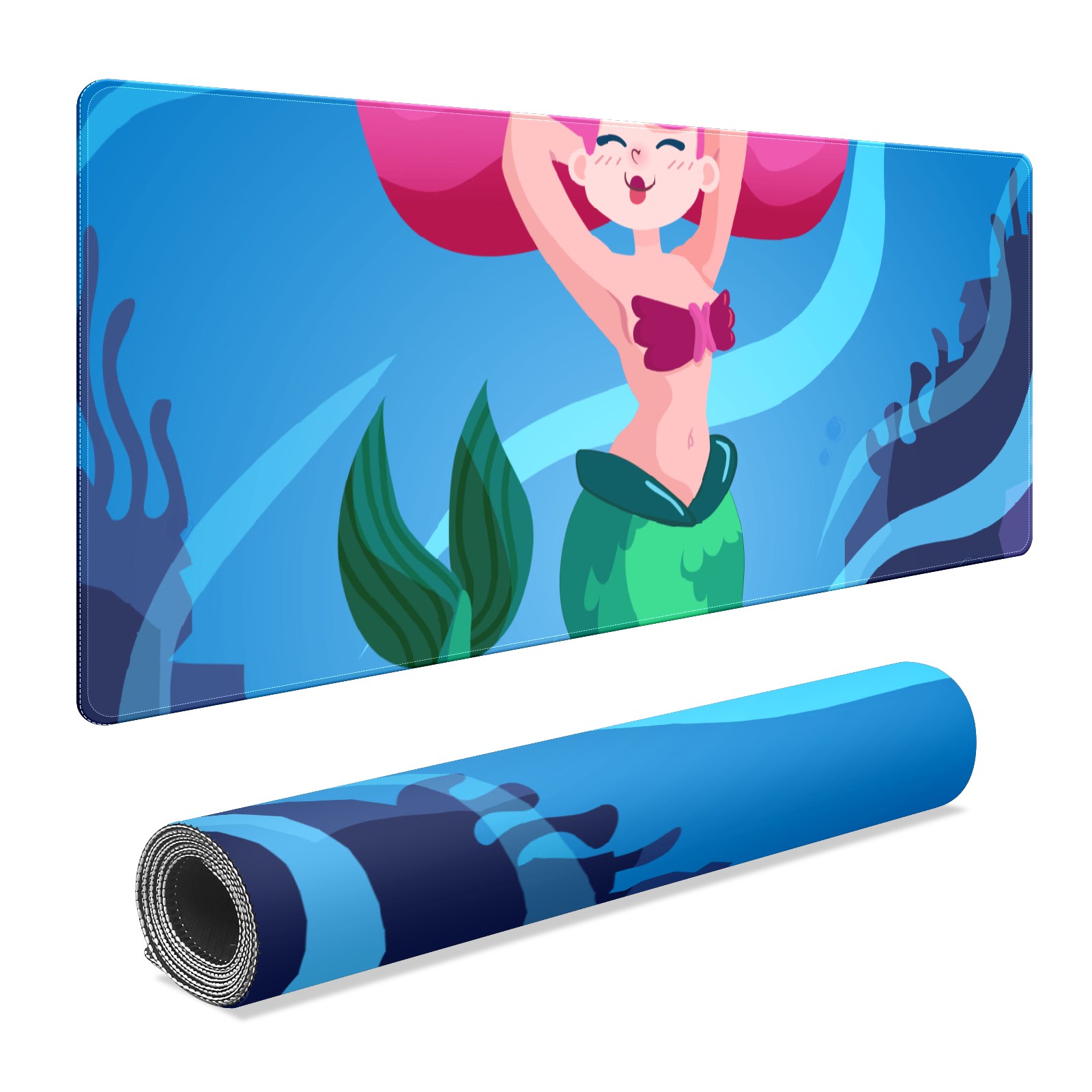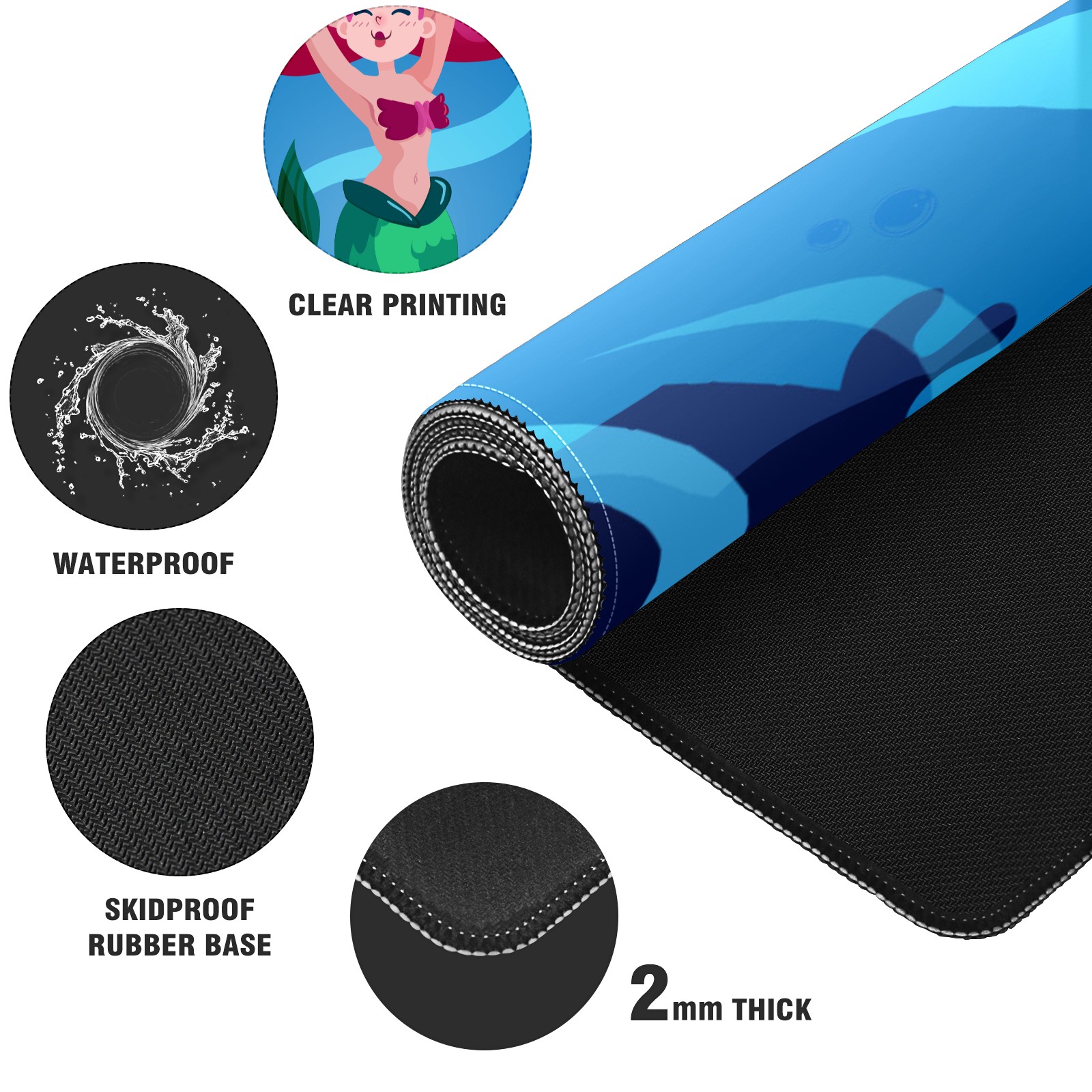 Large Mouse Pad for Desktop, Cute Desk Mat Pad Protector for Work & Gaming, Aesthetic Pretty Anti-Slip Laptop Blotter Cover for Office School Home Supplies, Charming Mermaid , 35.4inx15.7in
