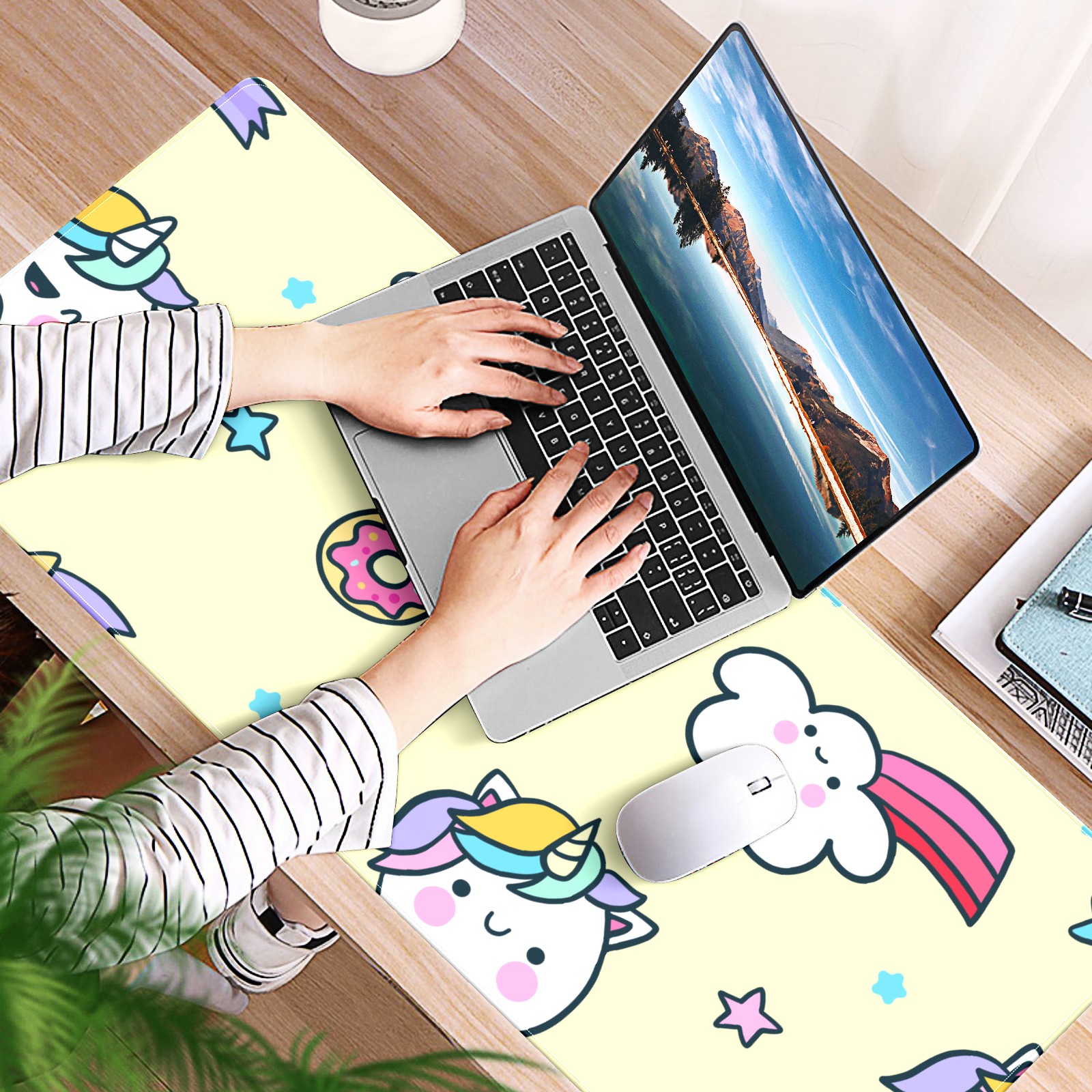 Large Mouse Pad for Desktop, Cute Desk Mat Pad Protector for Work & Gaming, Aesthetic Pretty Anti-Slip Laptop Blotter Cover for Office School Home Supplies, Unicorn Baby , 35.4inx15.7in
