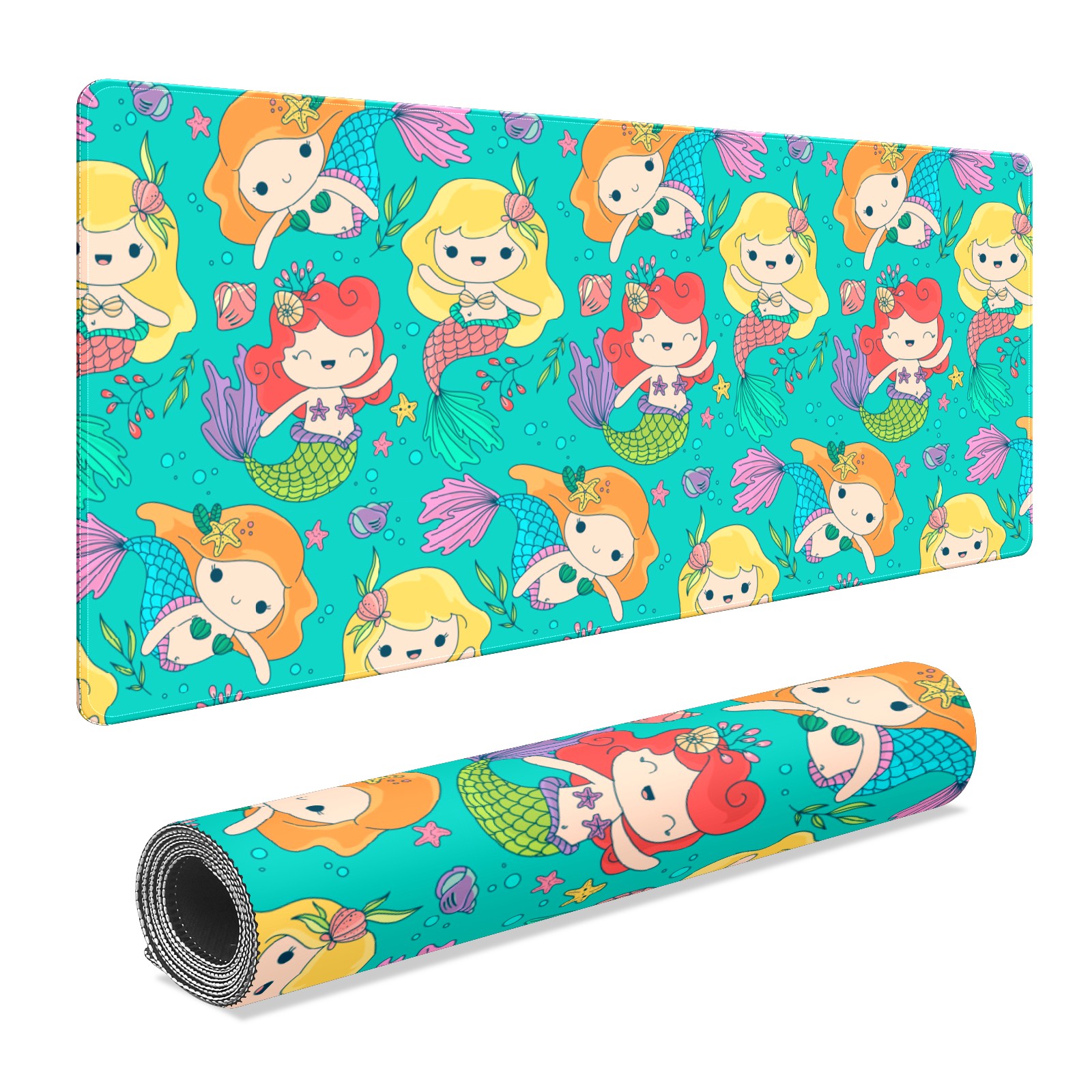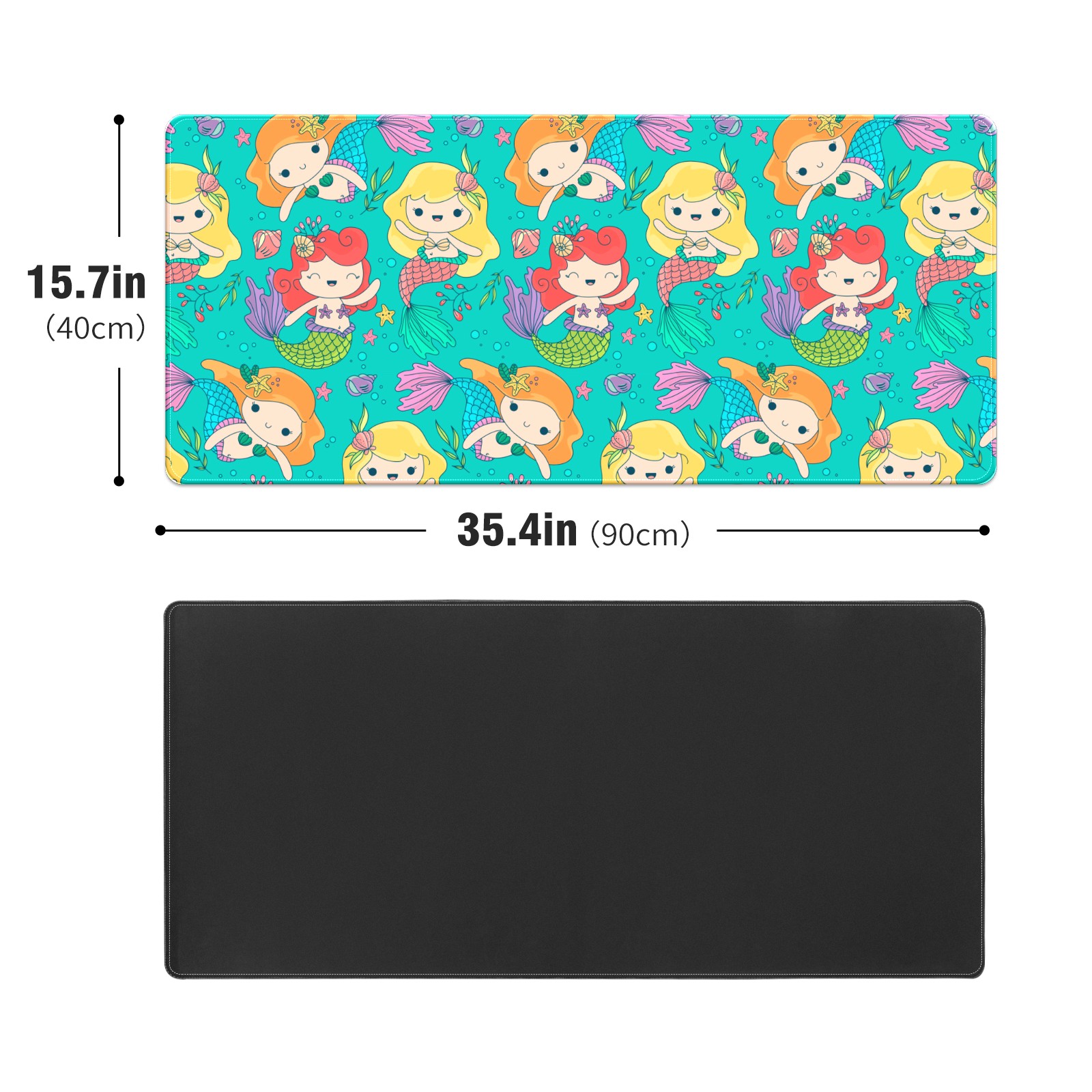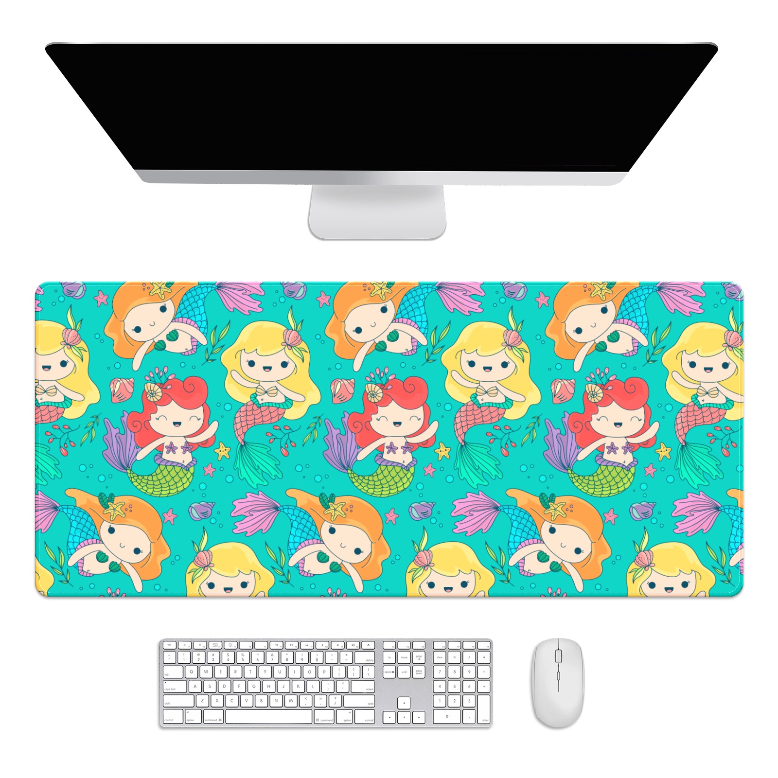 Large Mouse Pad for Desktop, Cute Desk Mat Pad Protector for Work & Gaming, Aesthetic Pretty Anti-Slip Laptop Blotter Cover for Office School Home Supplies, Small Mermaid , 35.4inx15.7in