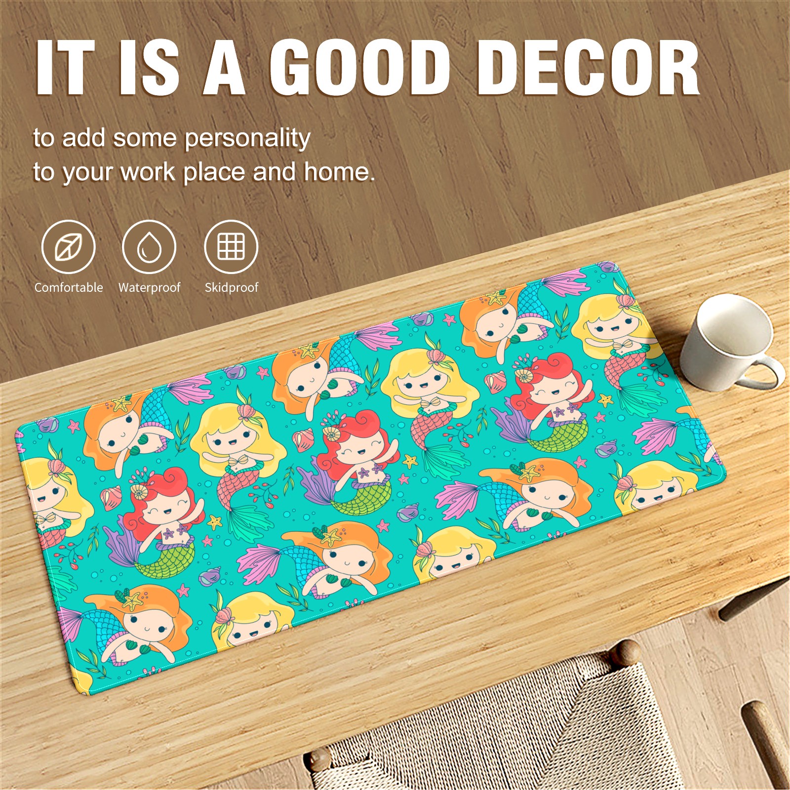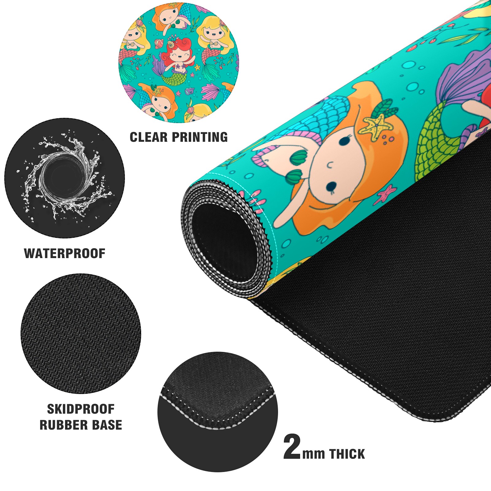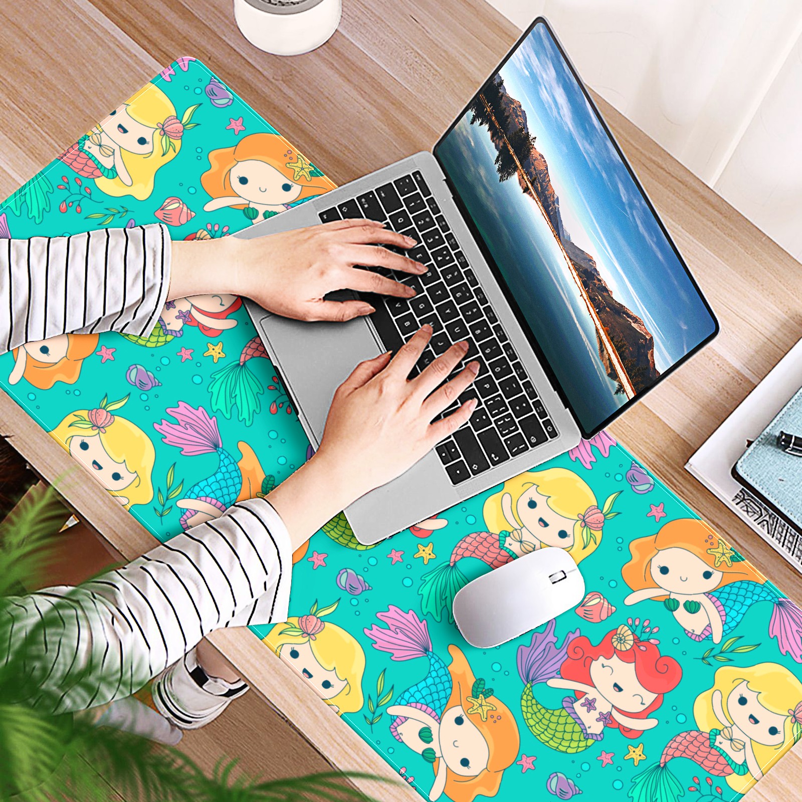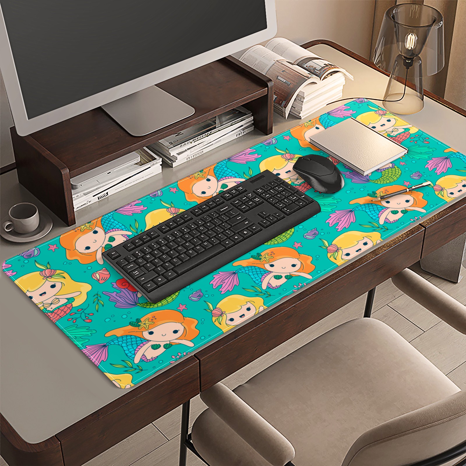 Large Mouse Pad for Desktop, Cute Desk Mat Pad Protector for Work & Gaming, Aesthetic Pretty Anti-Slip Laptop Blotter Cover for Office School Home Supplies, Small Mermaid , 35.4inx15.7in