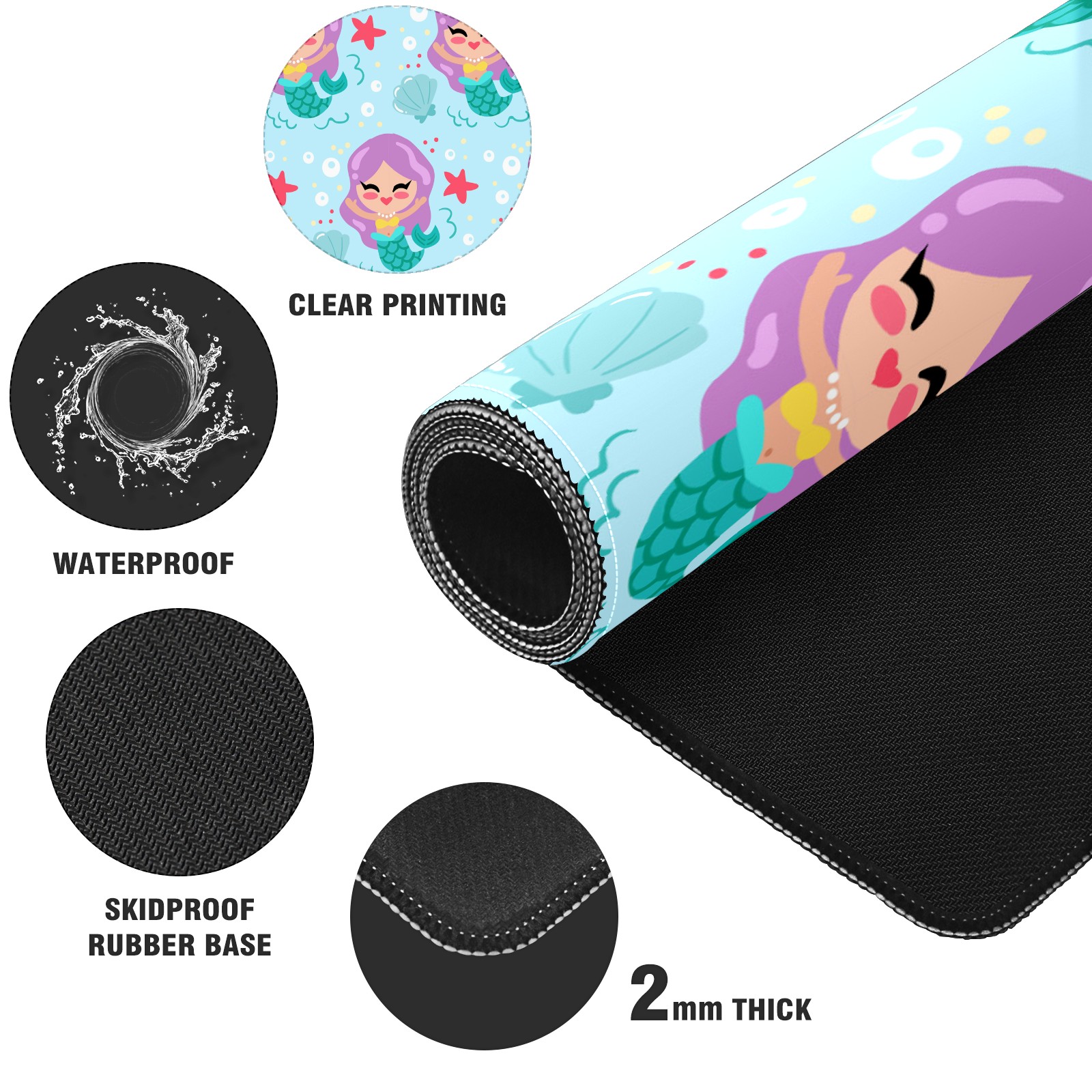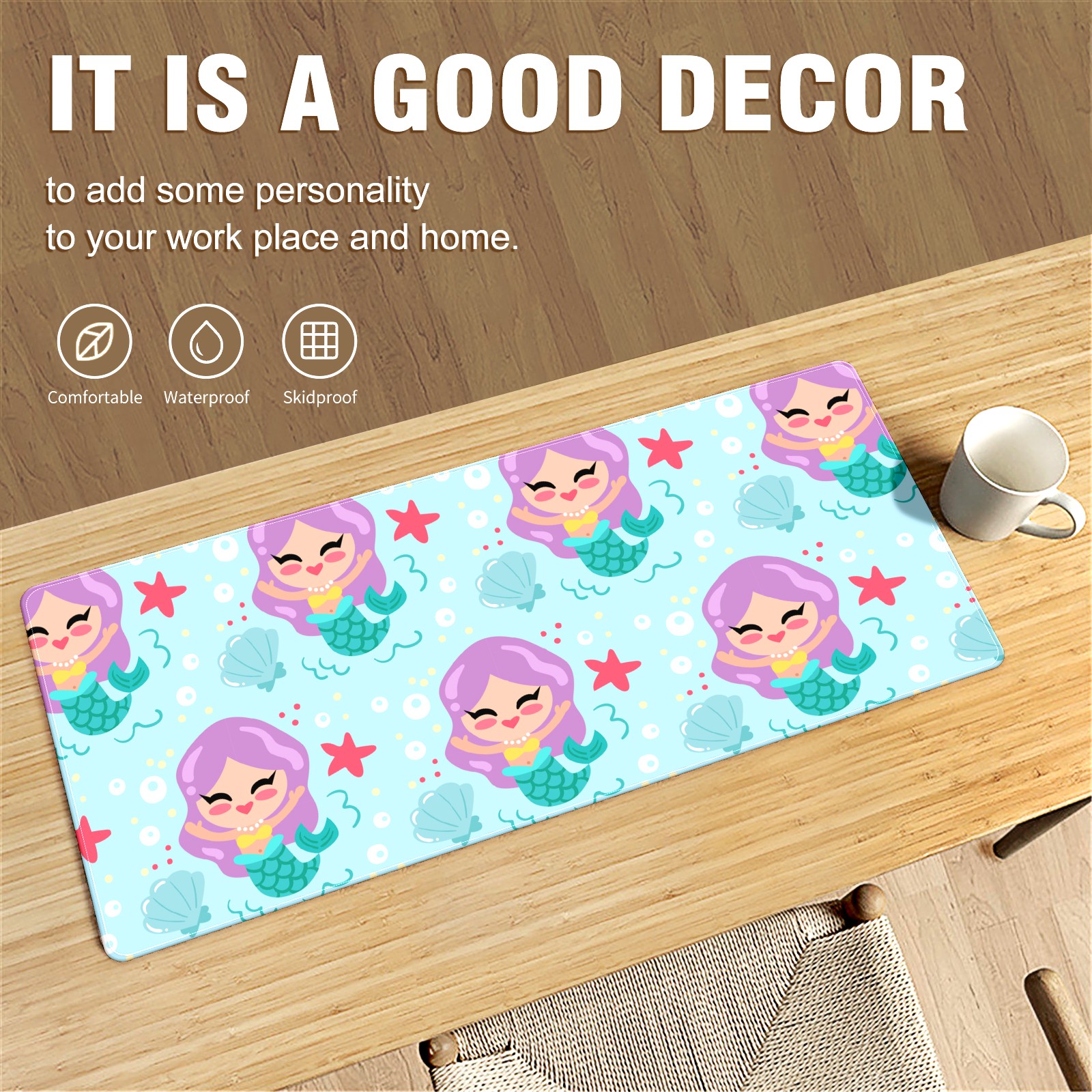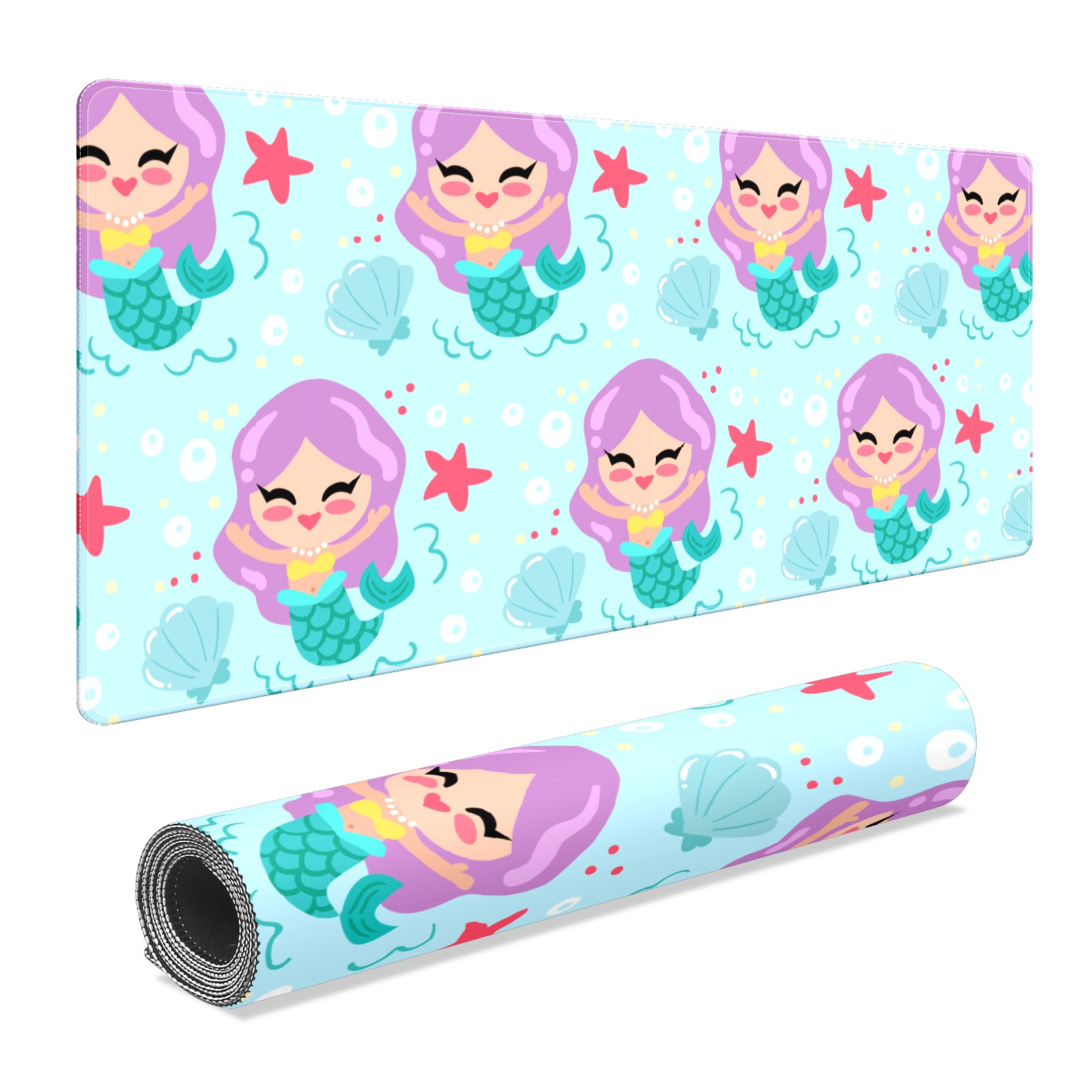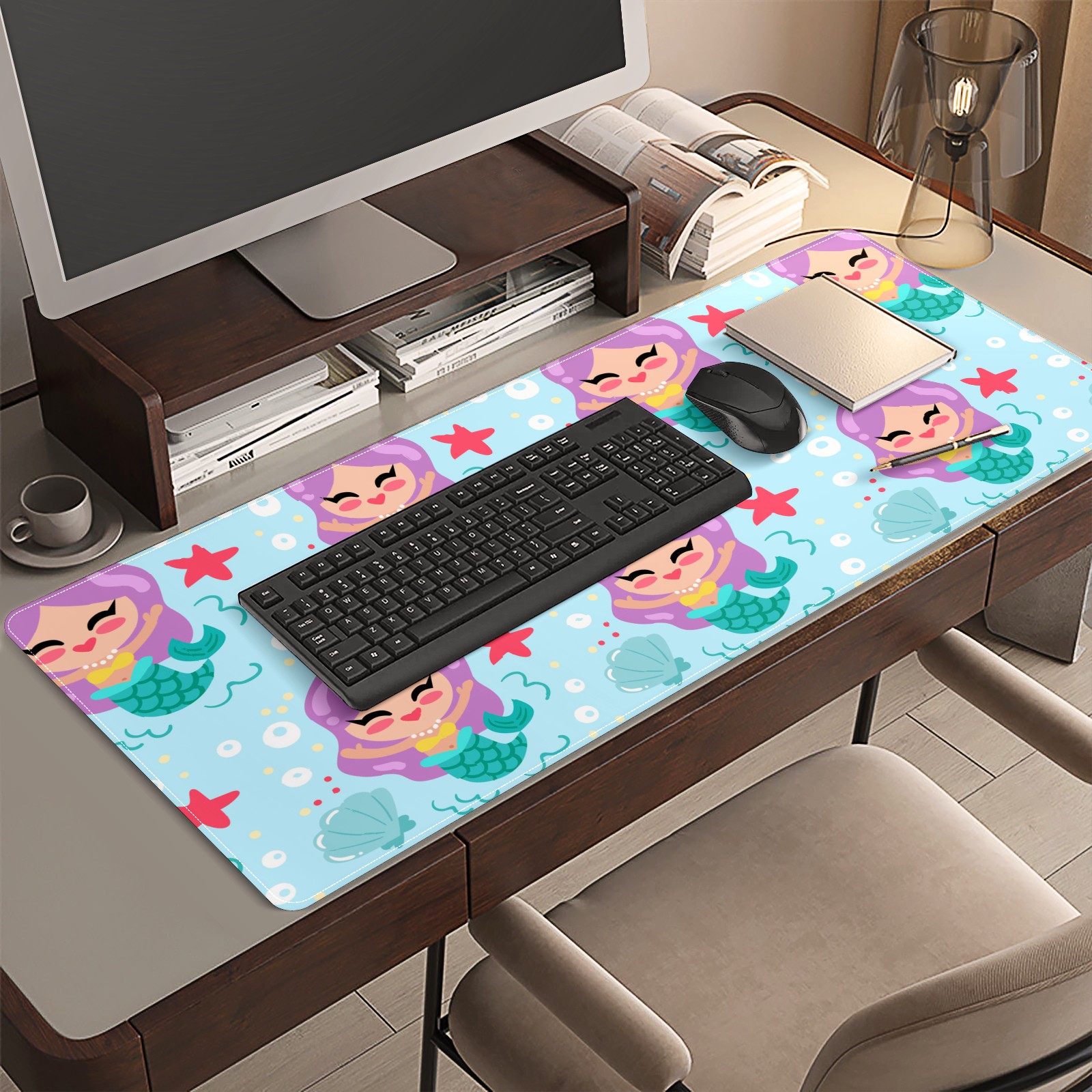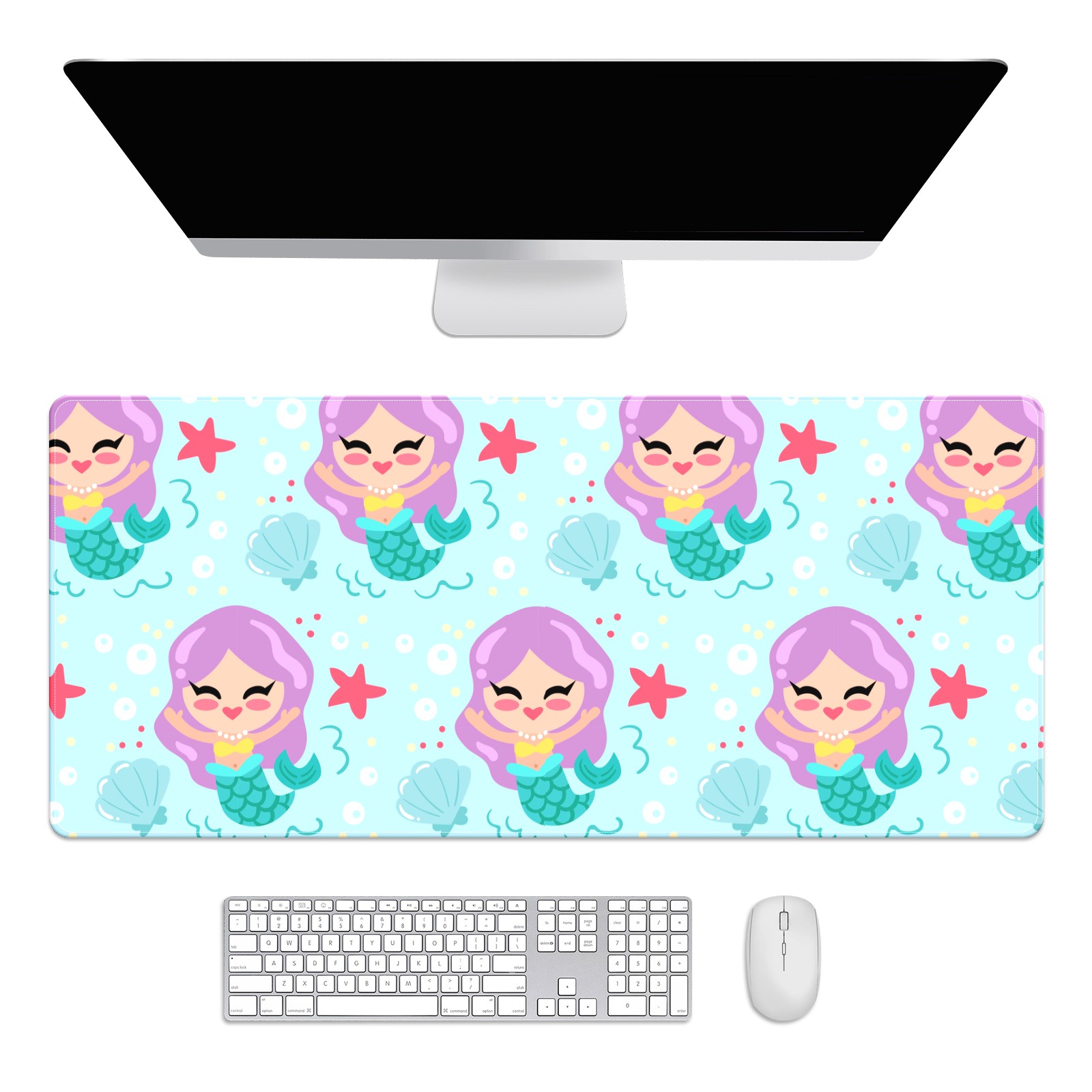 Large Mouse Pad for Desktop, Cute Desk Mat Pad Protector for Work & Gaming, Aesthetic Pretty Anti-Slip Laptop Blotter Cover for Office School Home Supplies, Cartoon Mermaid , 35.4inx15.7in