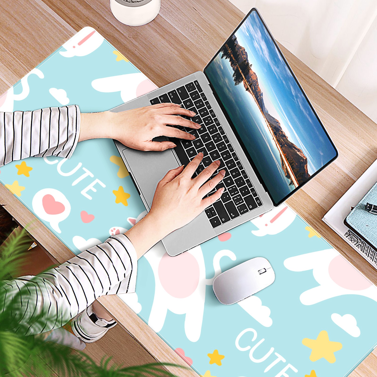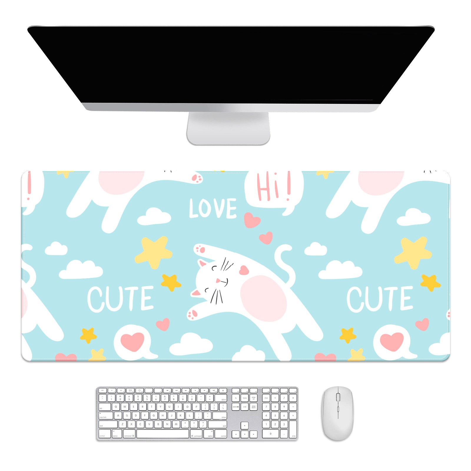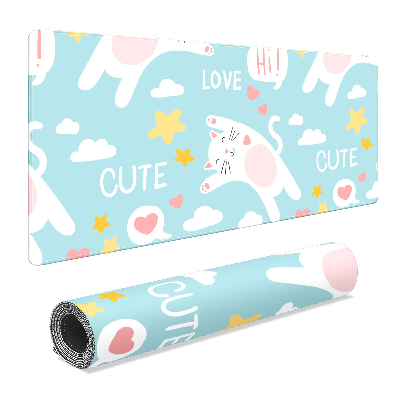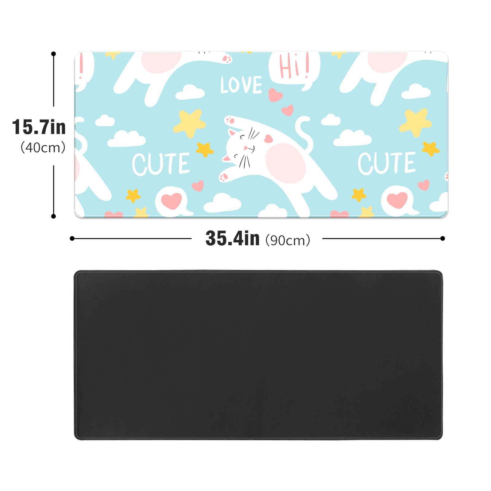 Large Mouse Pad for Desktop, Cute Desk Mat Pad Protector for Work & Gaming, Aesthetic Pretty Anti-Slip Laptop Blotter Cover for Office School Home Supplies, White Cat , 35.4inx15.7in