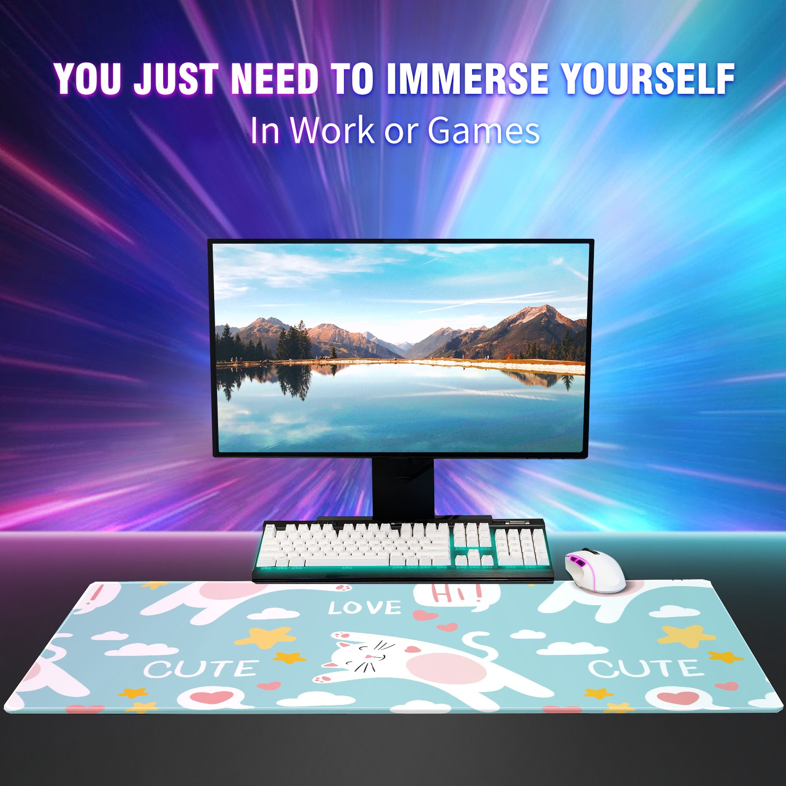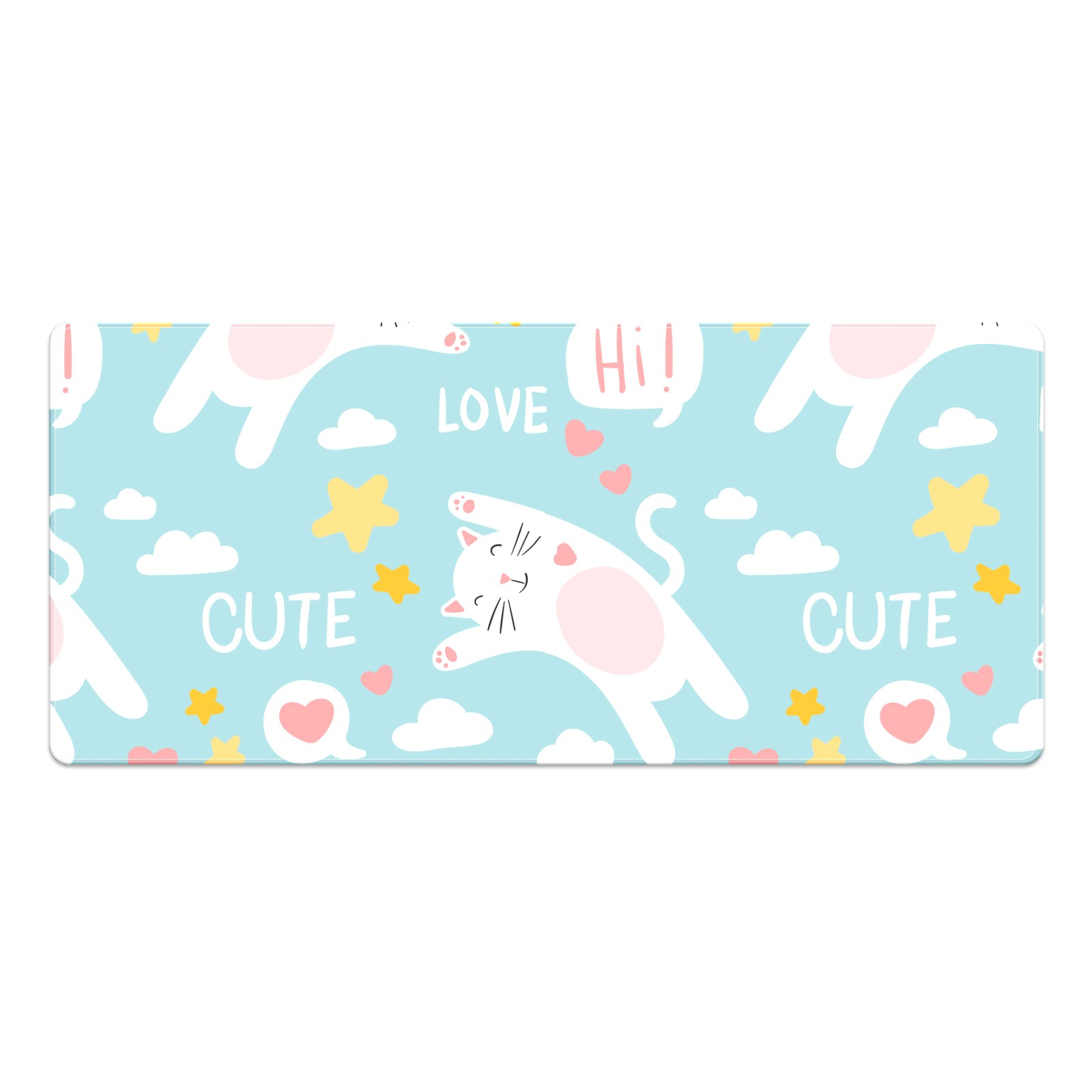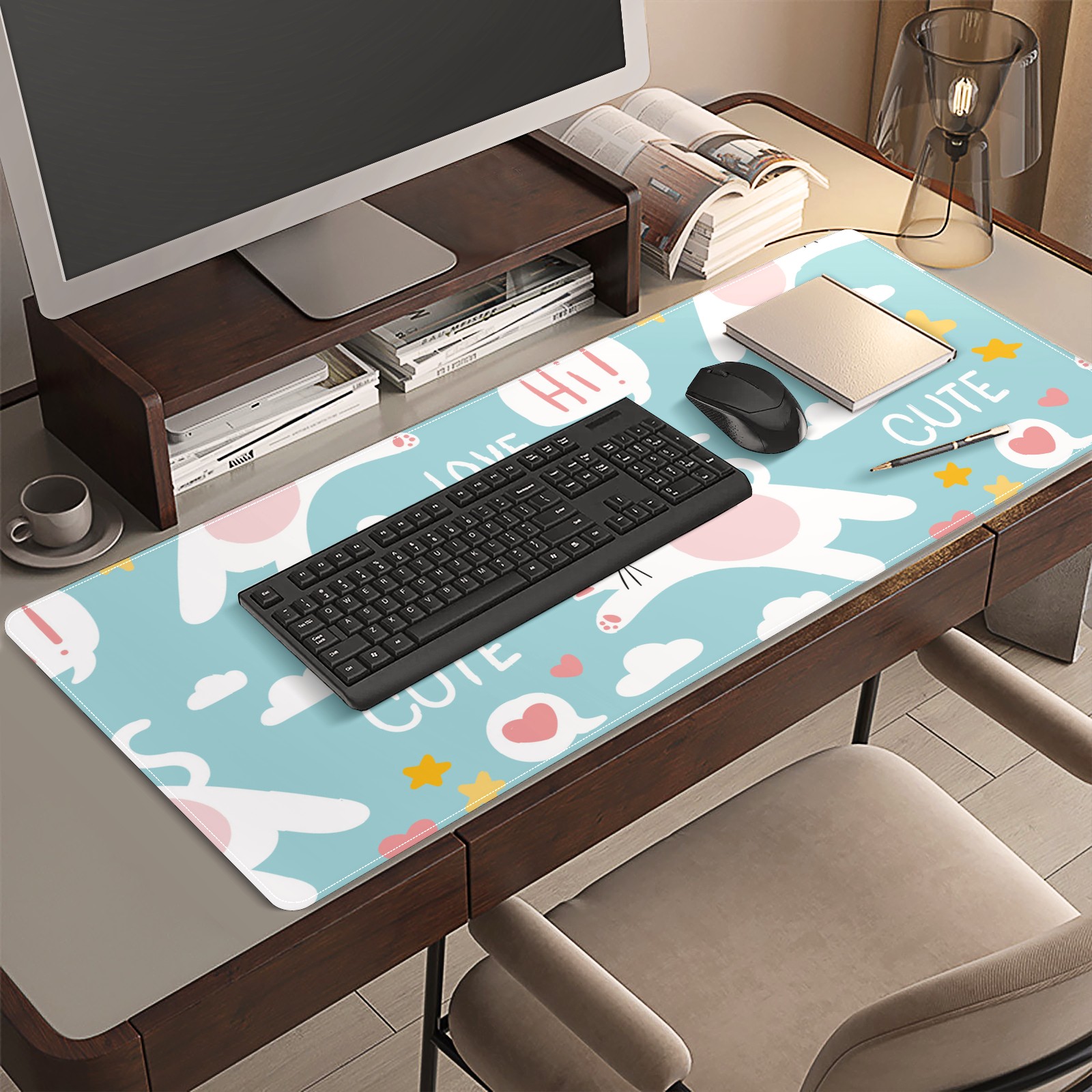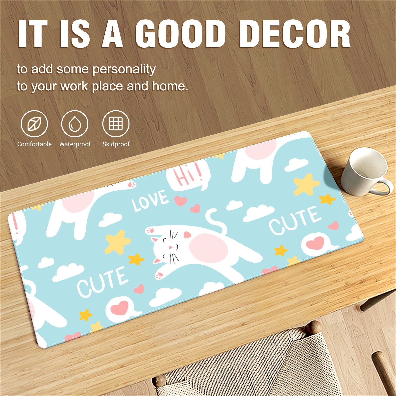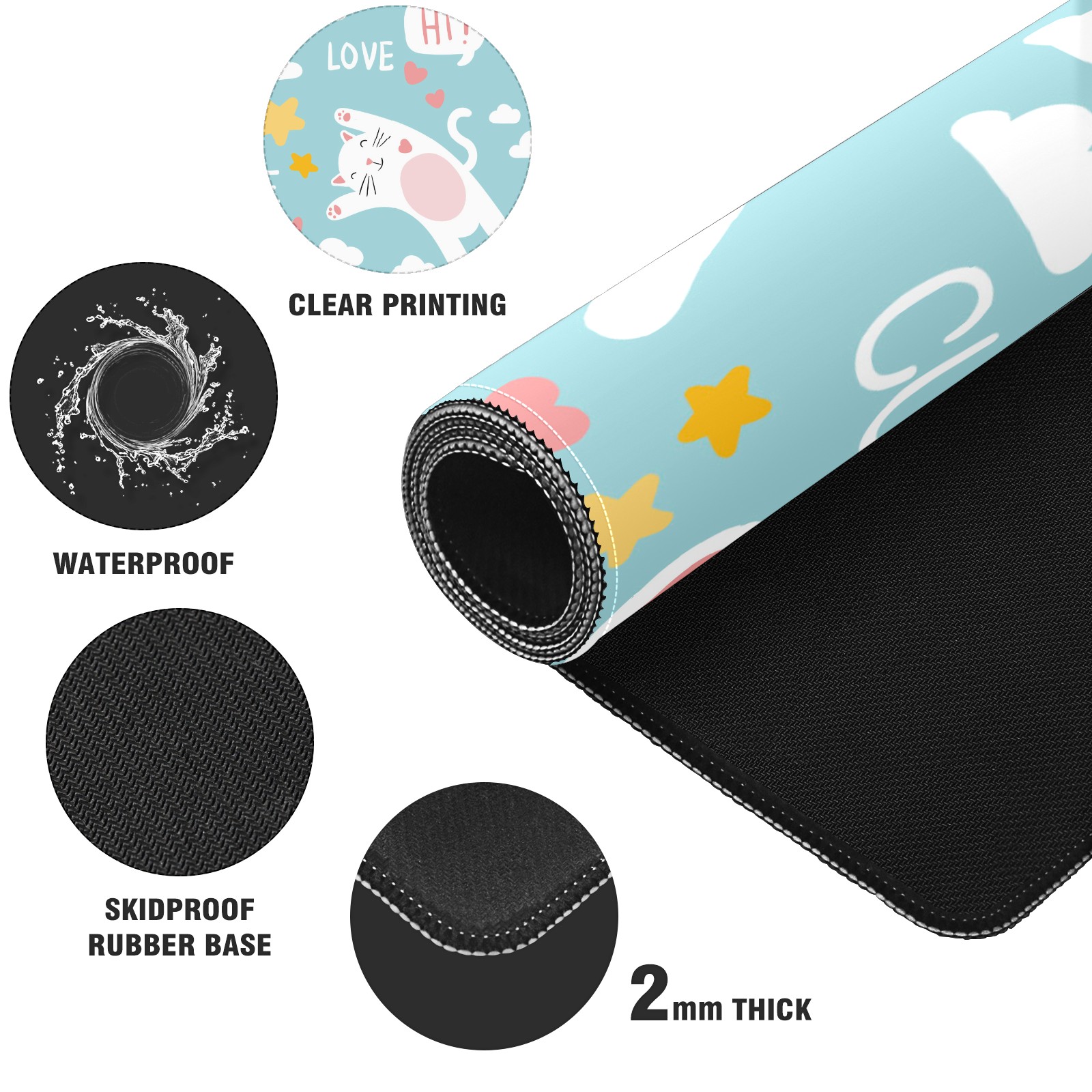 Large Mouse Pad for Desktop, Cute Desk Mat Pad Protector for Work & Gaming, Aesthetic Pretty Anti-Slip Laptop Blotter Cover for Office School Home Supplies, White Cat , 35.4inx15.7in