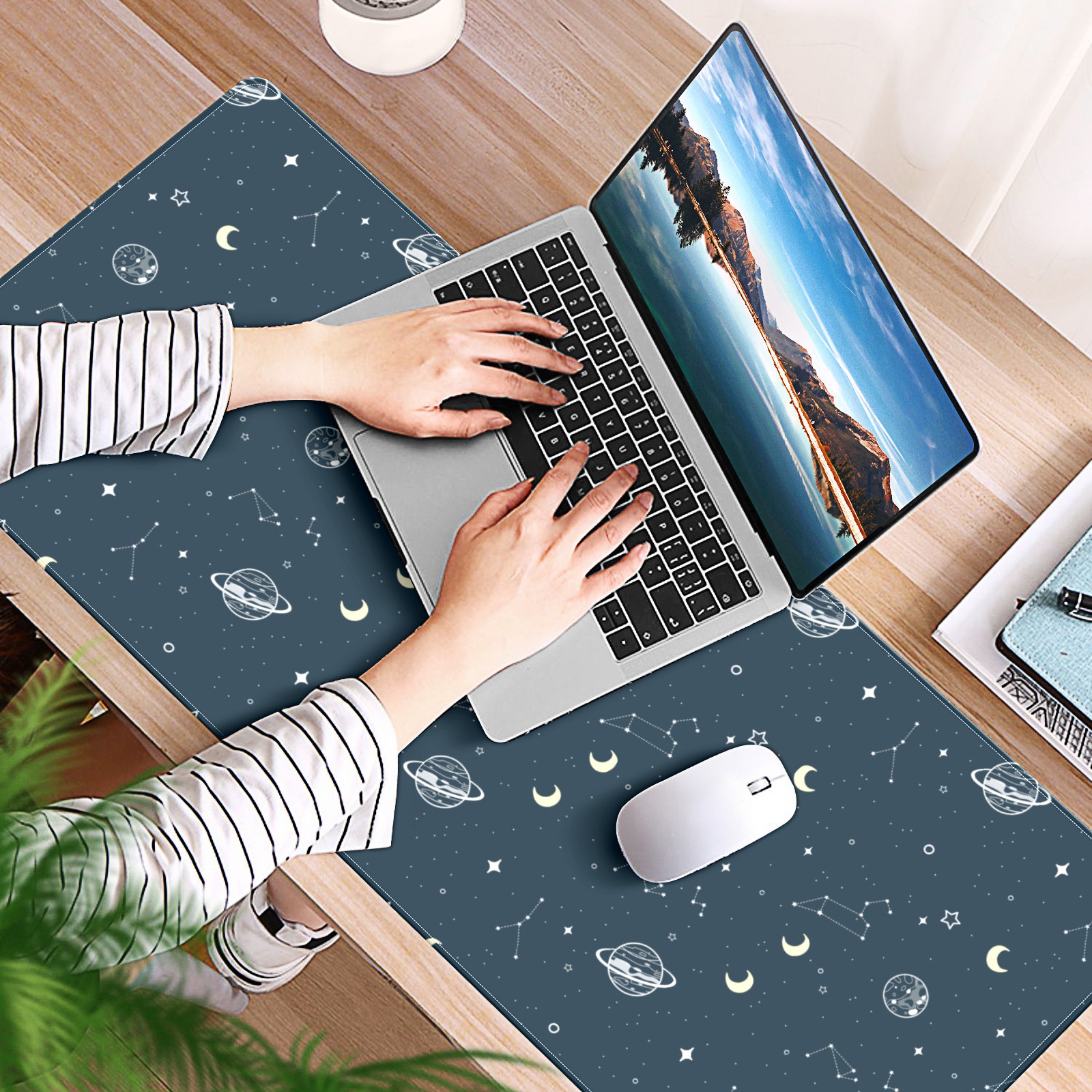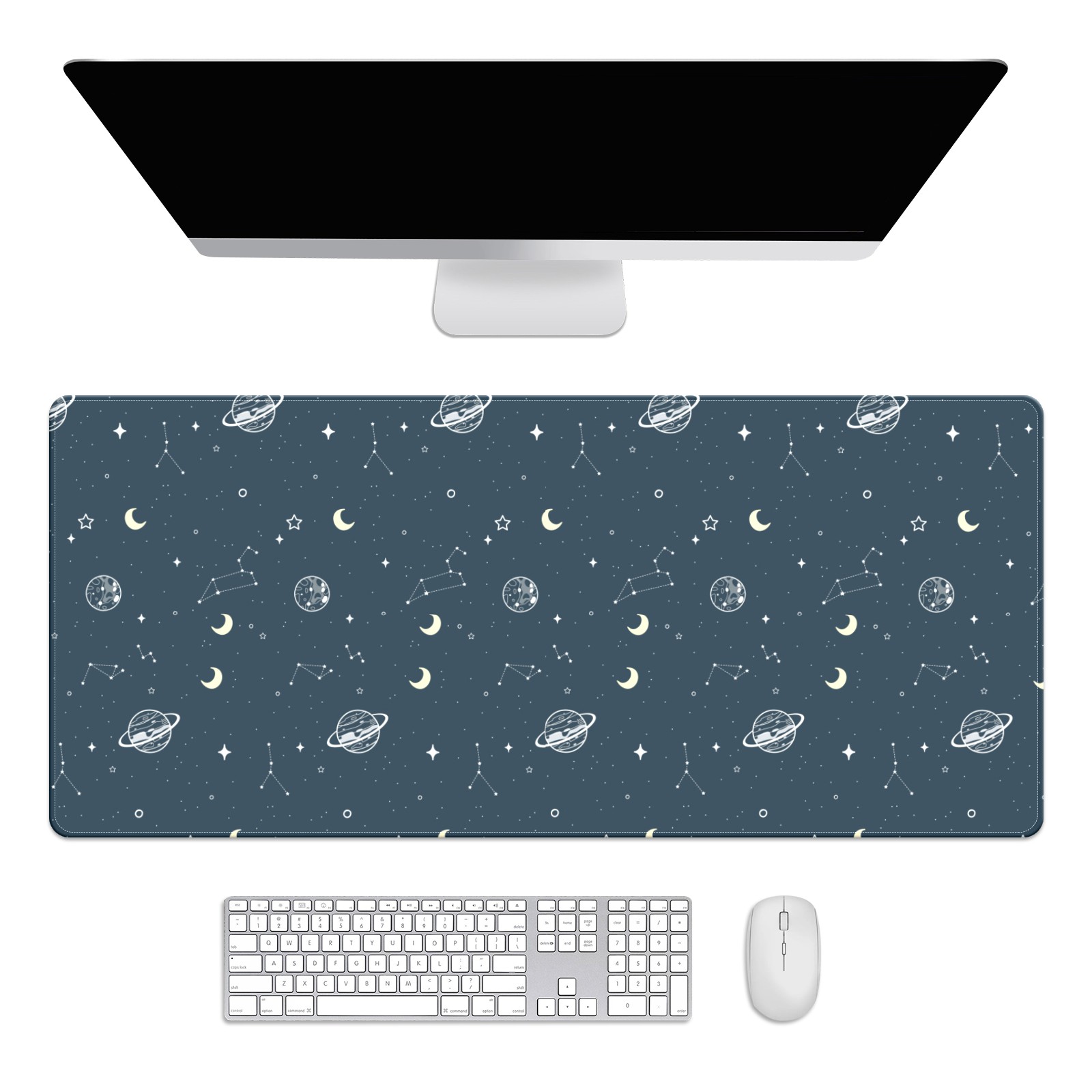 Large Mouse Pad for Desktop, Cute Desk Mat Pad Protector for Work & Gaming, Aesthetic Pretty Anti-Slip Laptop Blotter Cover for Office School Home Supplies, Spaceship , 35.4inx15.7in