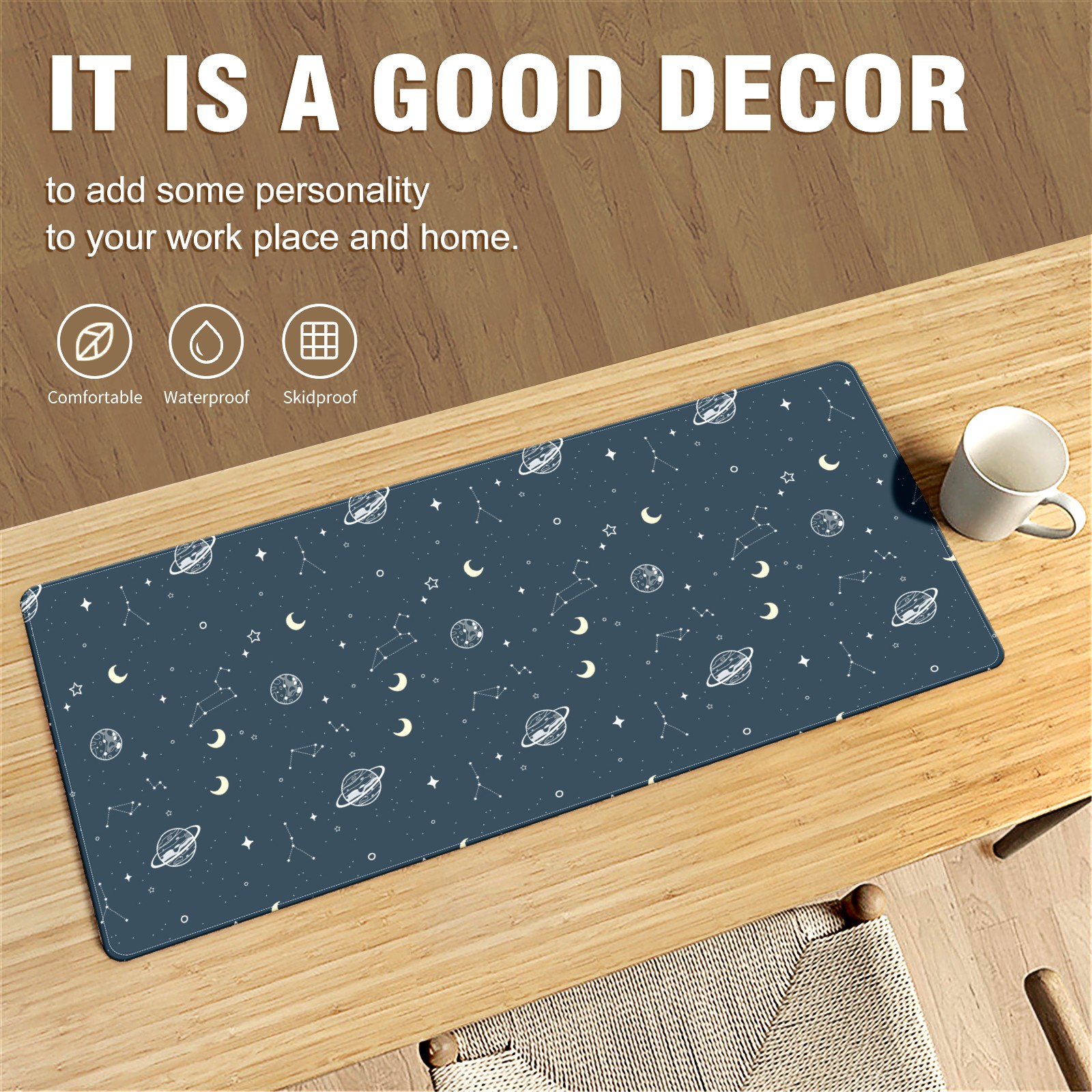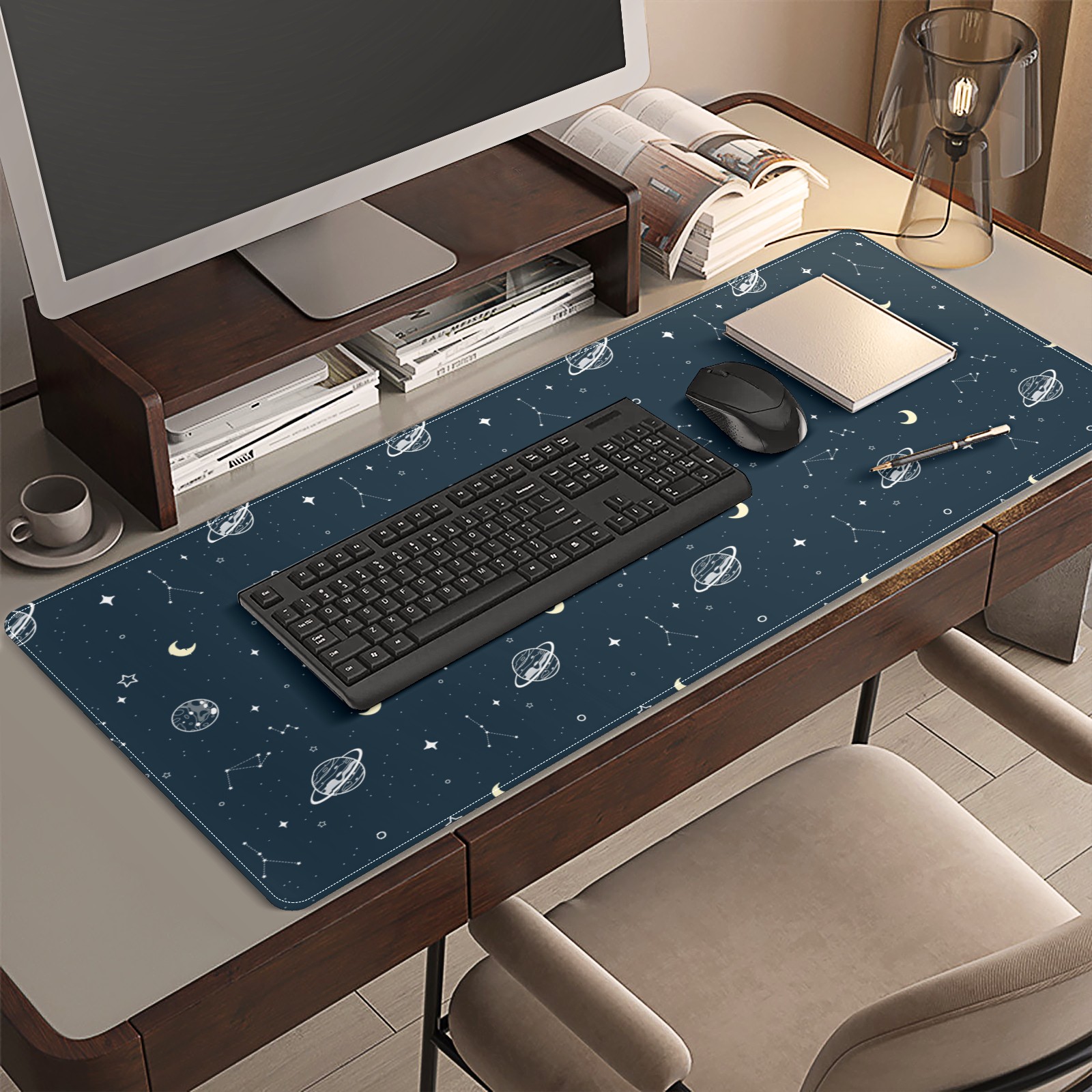 <p>This 35.4” × 15.7” extended desk mat offers ample space for your keyboard, mouse and essentials, working as a smooth work/writing pad while protecting your desktop from scratches.</p><p>With stylish artistic patterns, it adds personality to your home office, study or gaming setup. The high-density woven surface ensures precise, smooth mouse tracking for work and gaming.</p><p>Featuring an anti-slip natural rubber base for firm grip and stability, the mat is soft, elastic and odorless. Reinforced stitched edges prevent fraying and curling for long-lasting durability.</p>