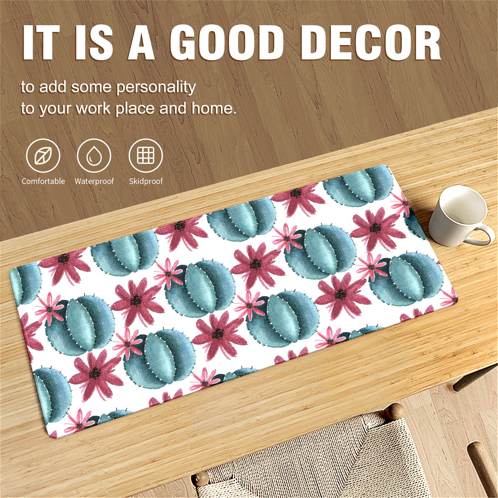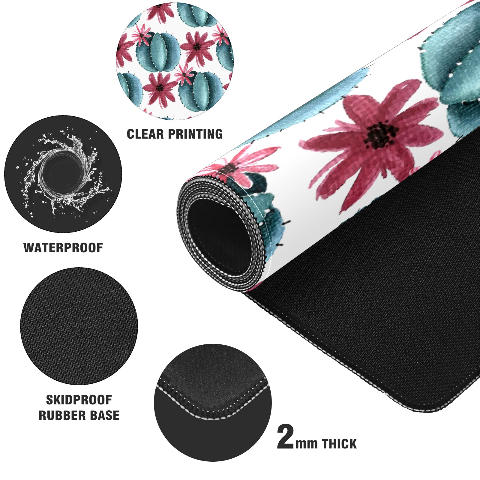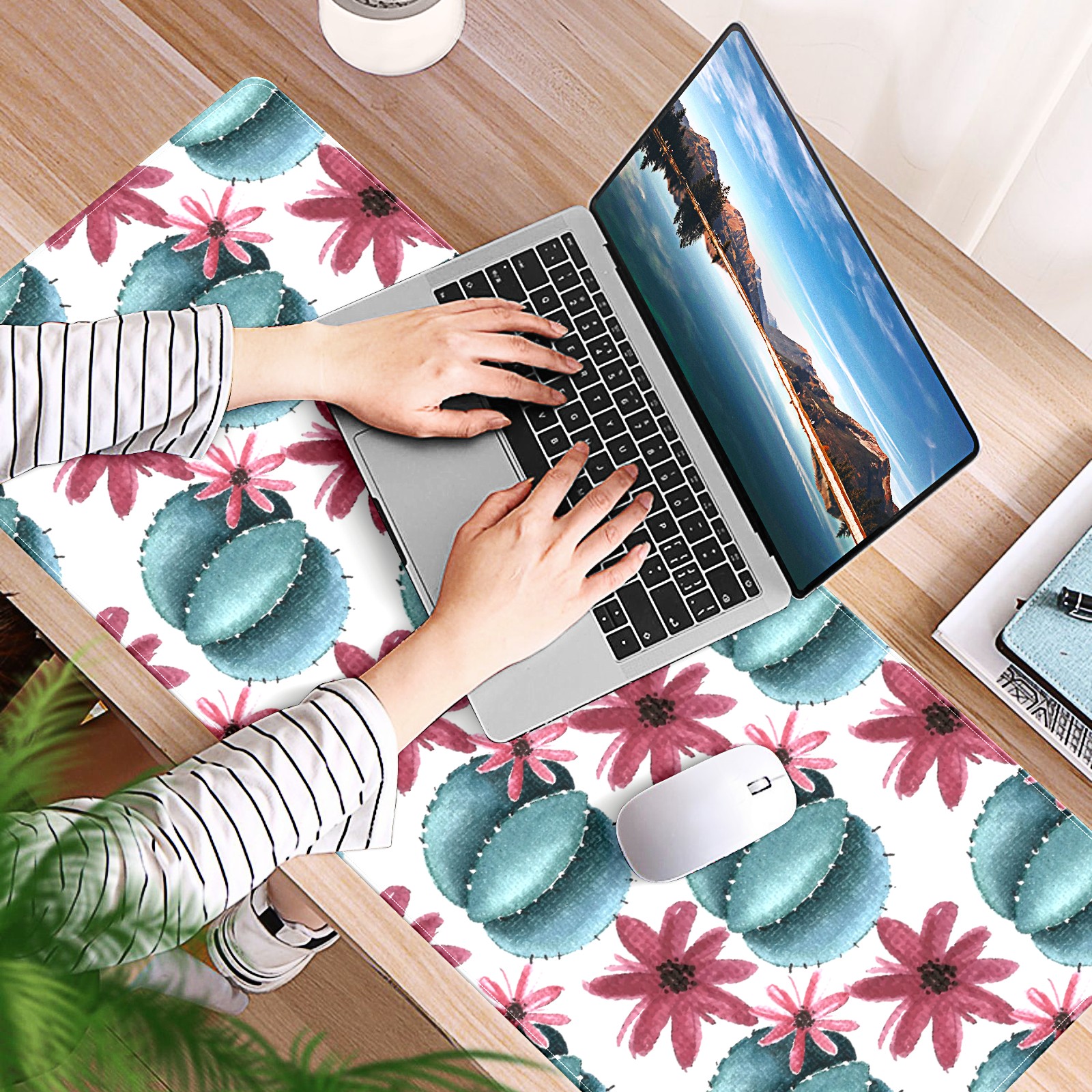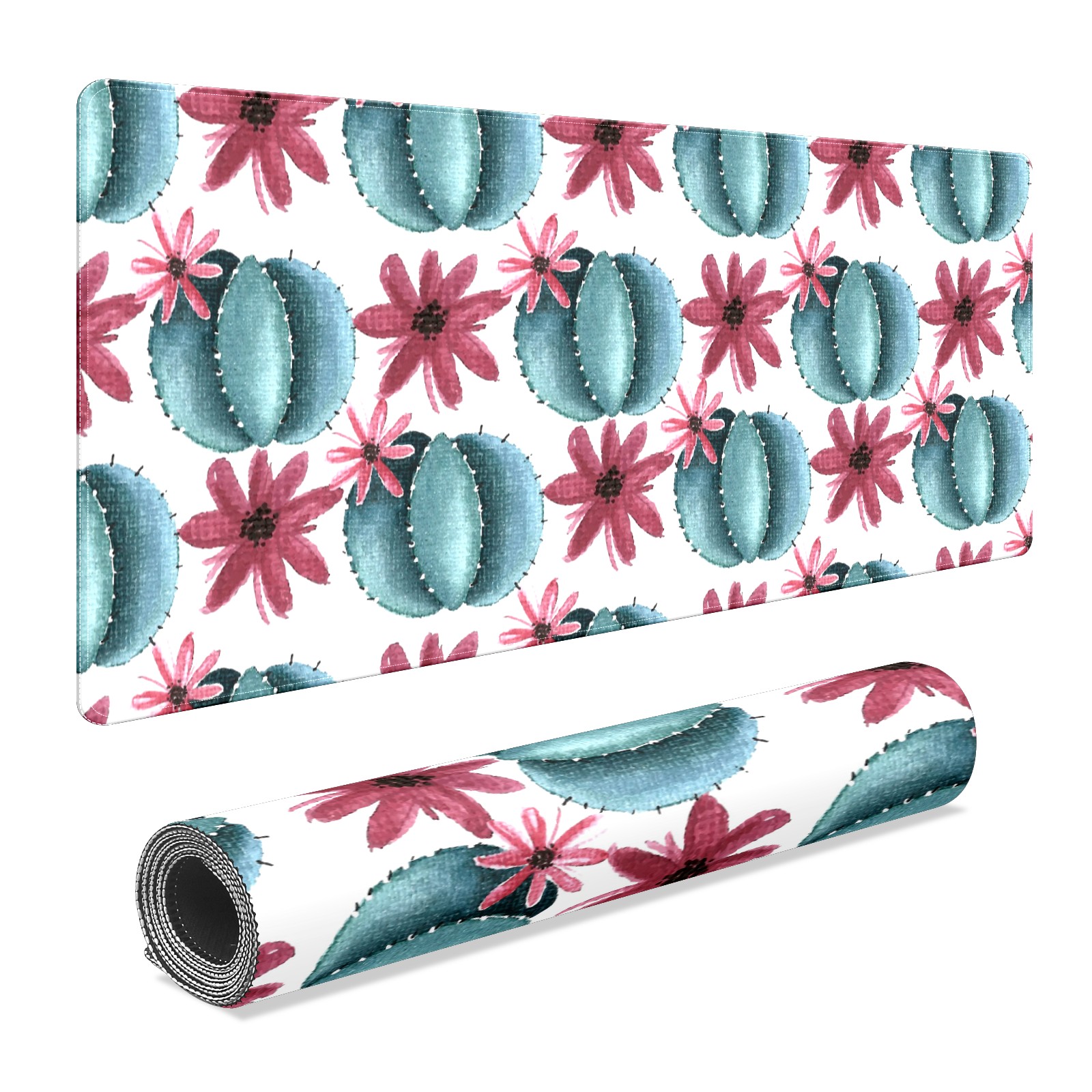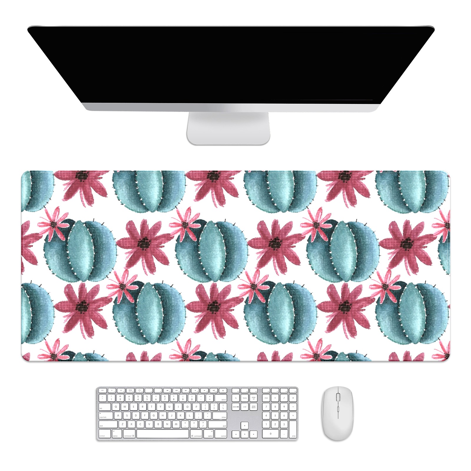 Large Mouse Pad for Desktop, Cute Desk Mat Pad Protector for Work & Gaming, Aesthetic Pretty Anti-Slip Laptop Blotter Cover for Office School Home Supplies, Cactus Flower , 35.4inx15.7in