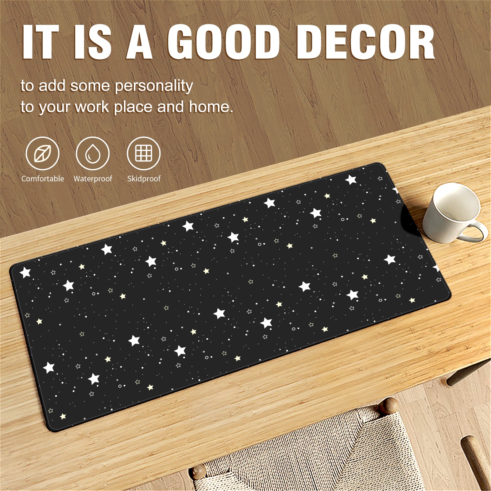 • <p>This 35.4” × 15.7” extended desk mat offers ample space for your keyboard, mouse and essentials, working as a smooth work/writing pad while protecting your desktop from scratches.</p><p>With stylish artistic patterns, it adds personality to your home office, study or gaming setup. The high-density woven surface ensures precise, smooth mouse tracking for work and gaming.</p><p>Featuring an anti-slip natural rubber base for firm grip and stability, the mat is soft, elastic and odorless. Reinforced stitched edges prevent fraying and curling for long-lasting durability.</p>