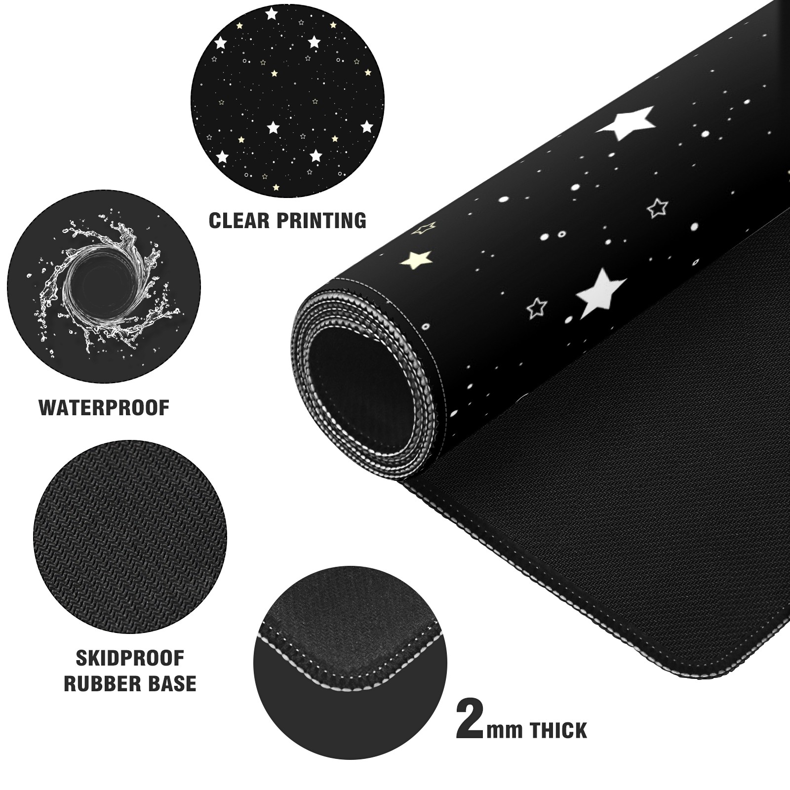 Large Mouse Pad for Desktop, Cute Desk Mat Pad Protector for Work & Gaming, Aesthetic Pretty Anti-Slip Laptop Blotter Cover for Office School Home Supplies, Black Background , 35.4inx15.7in