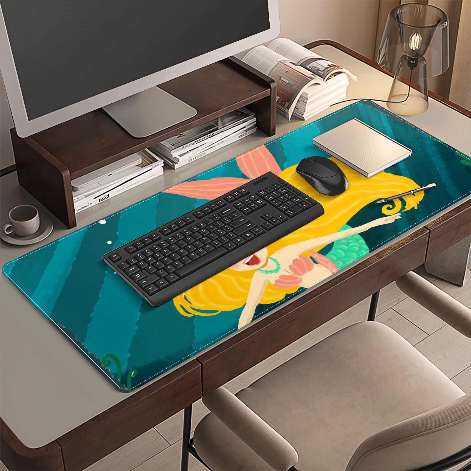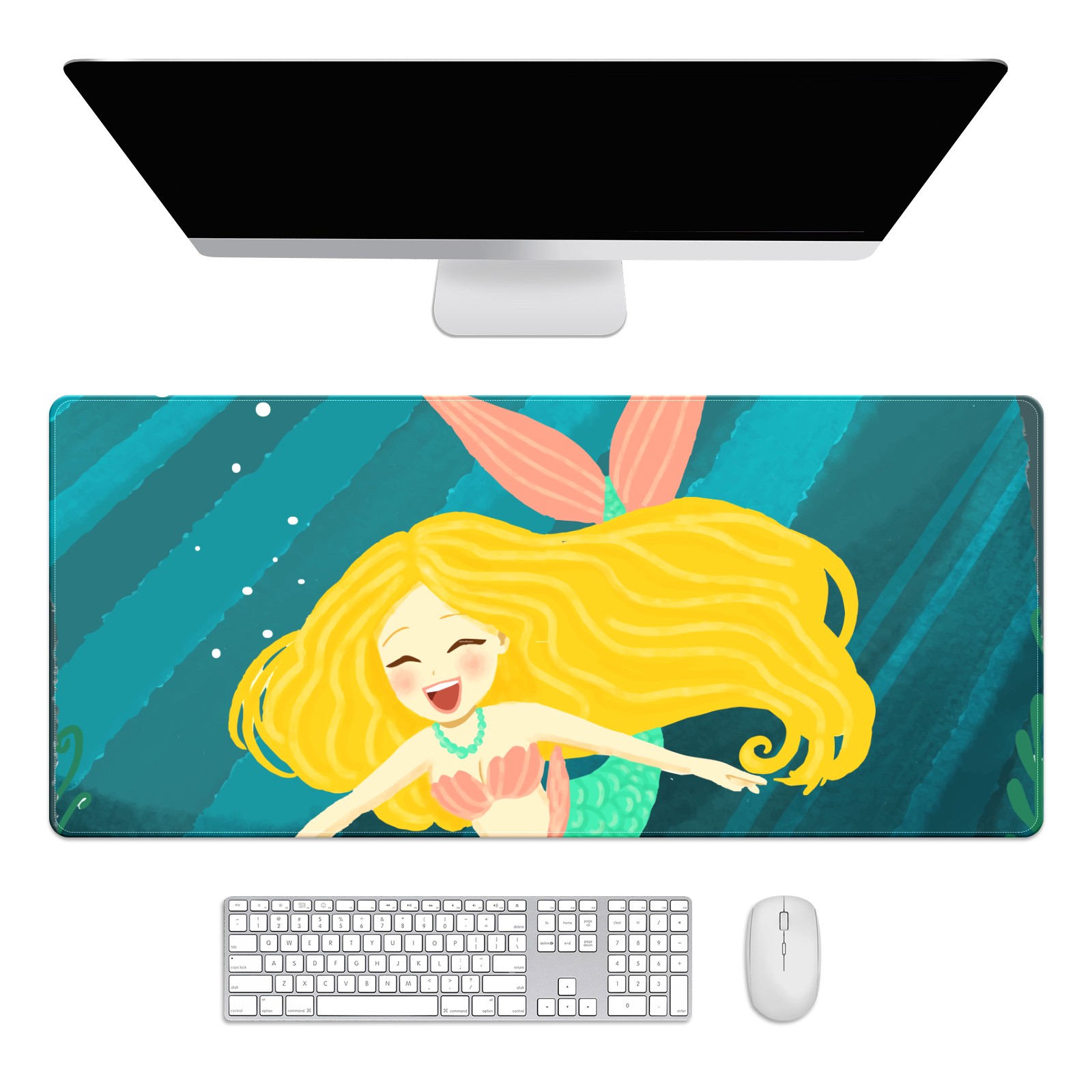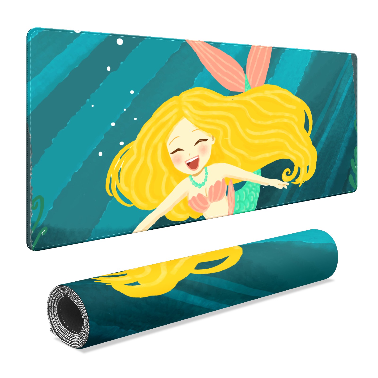 Large Mouse Pad for Desktop, Cute Desk Mat Pad Protector for Work & Gaming, Aesthetic Pretty Anti-Slip Laptop Blotter Cover for Office School Home Supplies, Blonde Mermaid , 35.4inx15.7in