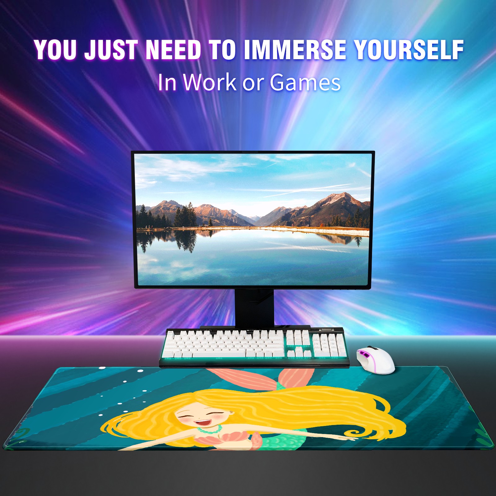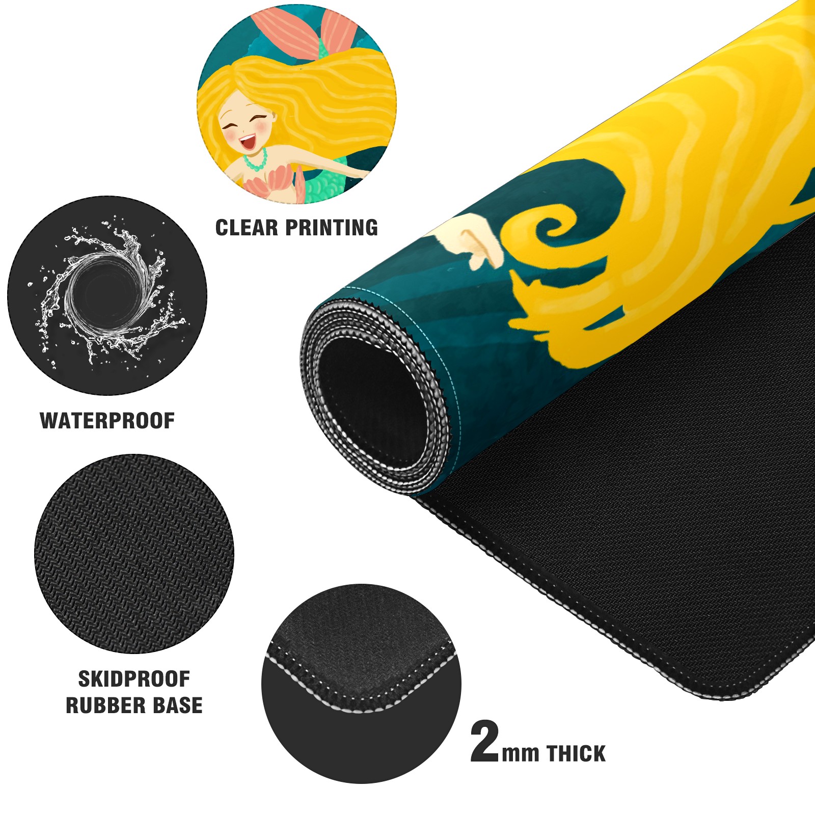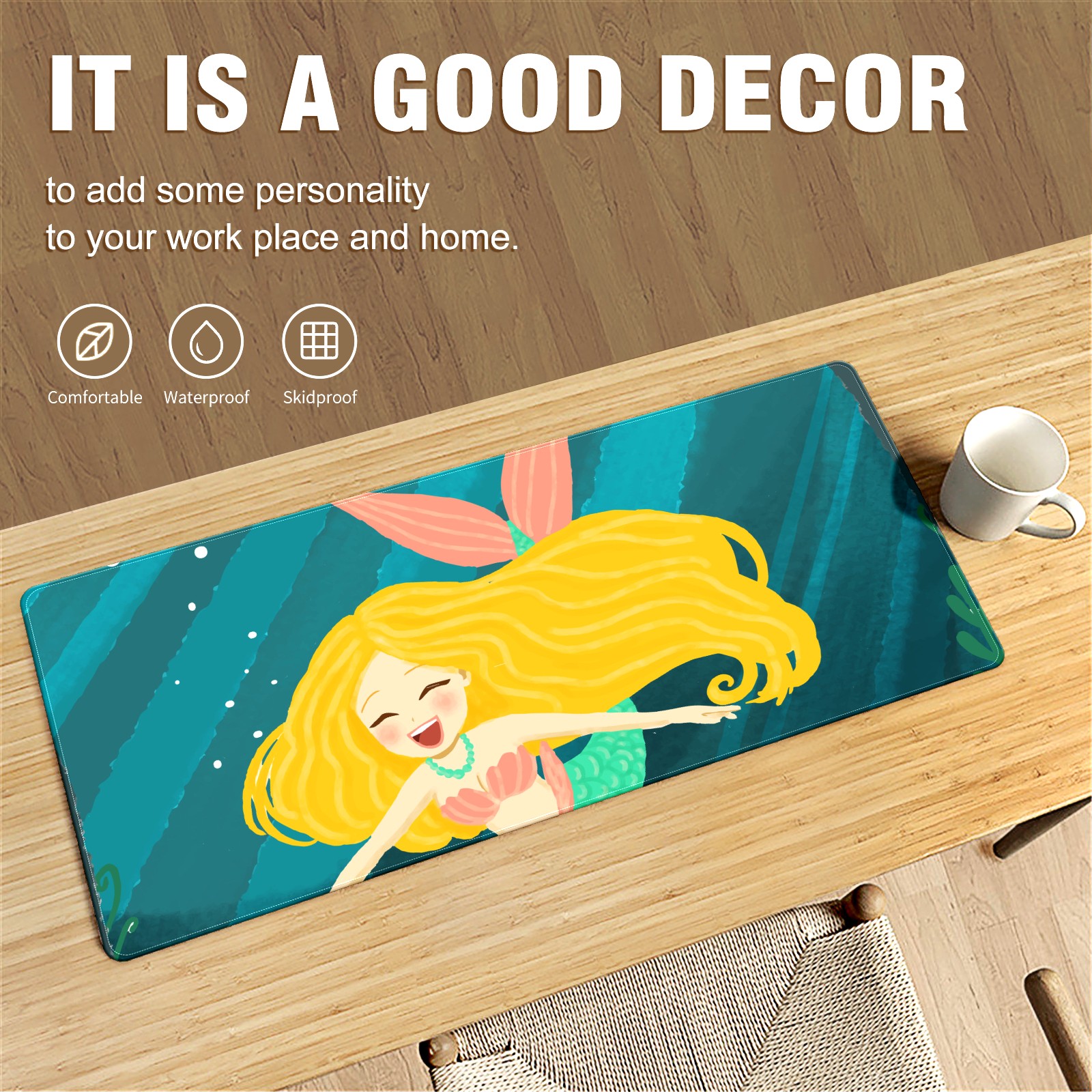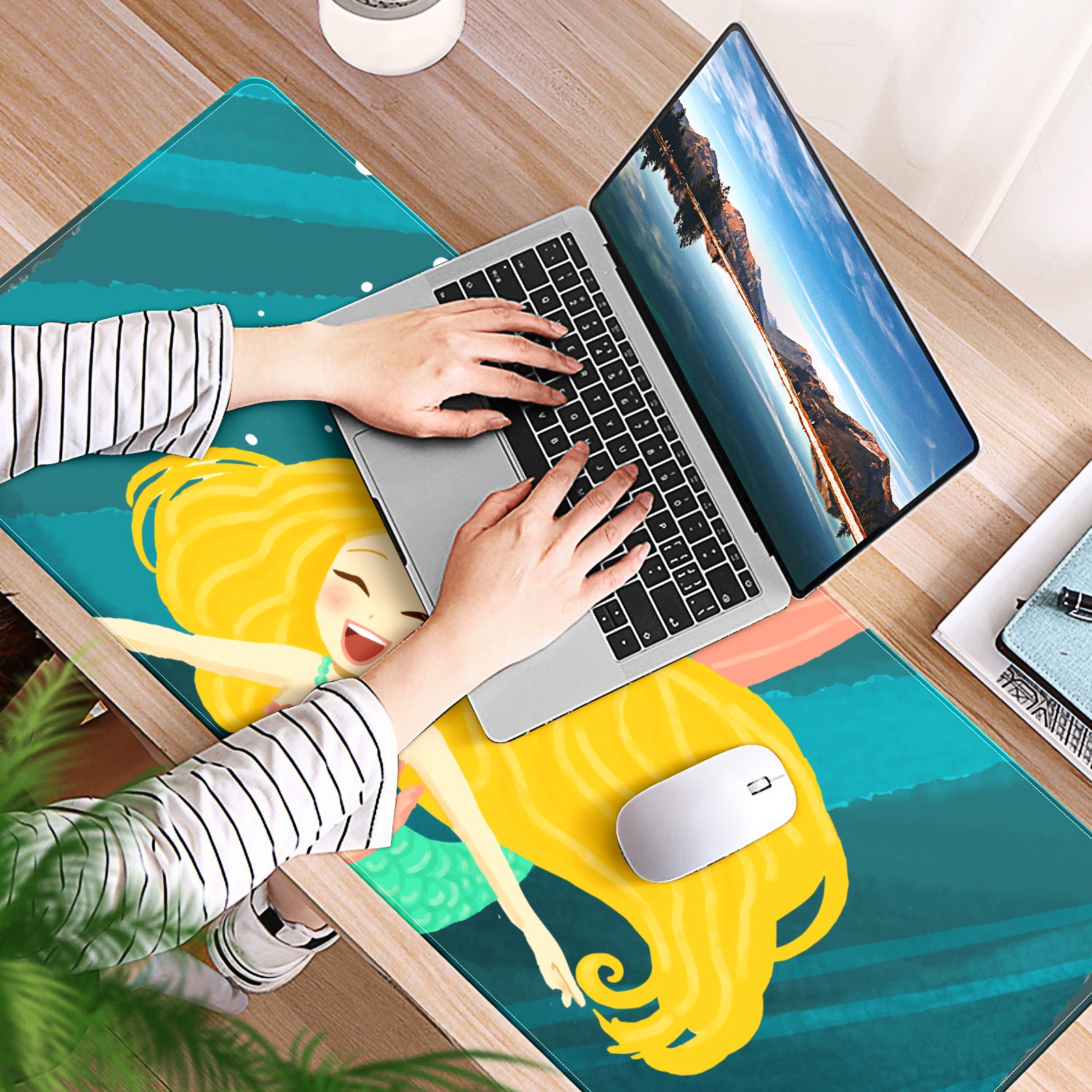 Large Mouse Pad for Desktop, Cute Desk Mat Pad Protector for Work & Gaming, Aesthetic Pretty Anti-Slip Laptop Blotter Cover for Office School Home Supplies, Blonde Mermaid , 35.4inx15.7in